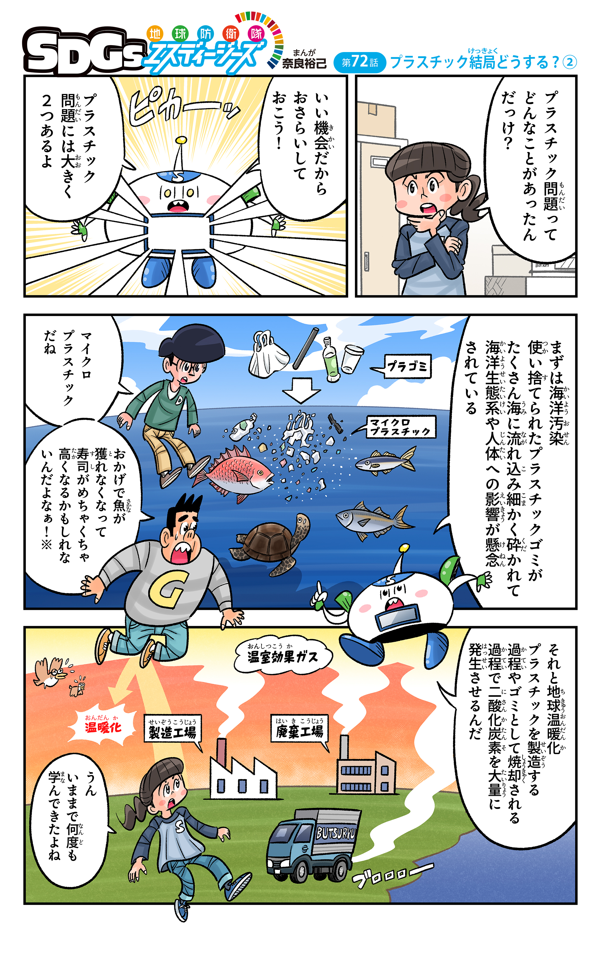 地球温暖化からごみ・リサイクルまで、環境についてわかりやすく説明しているよ。