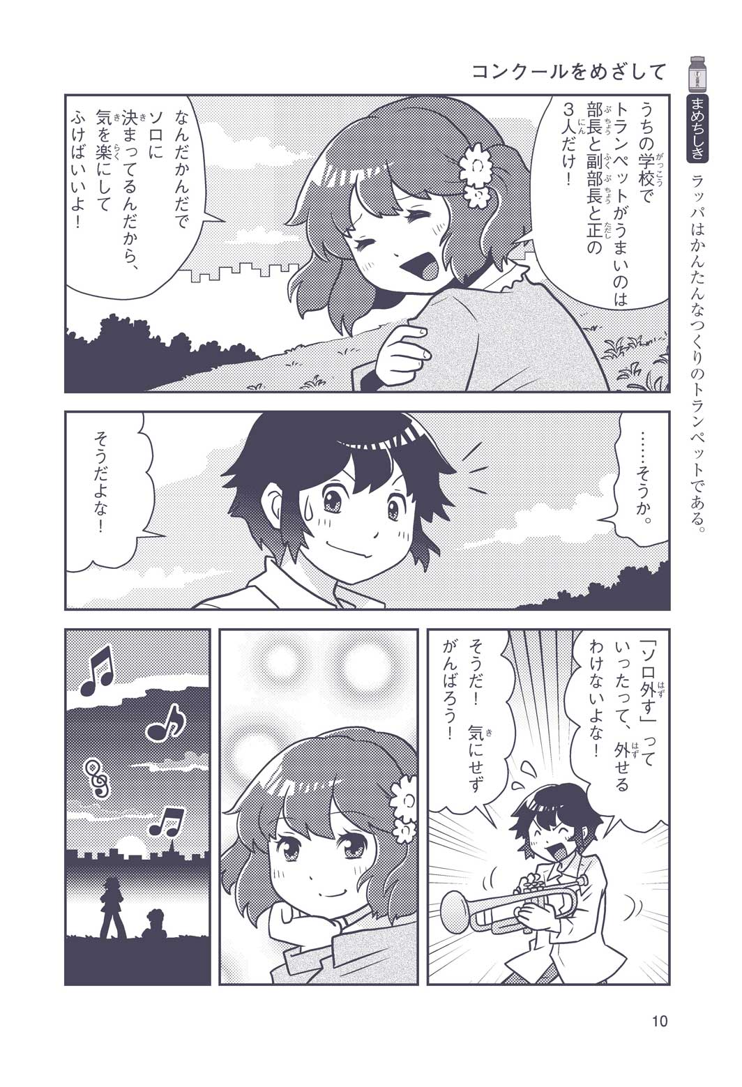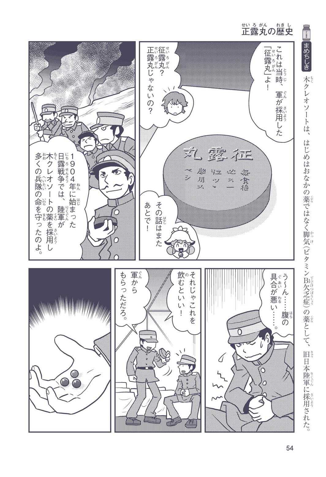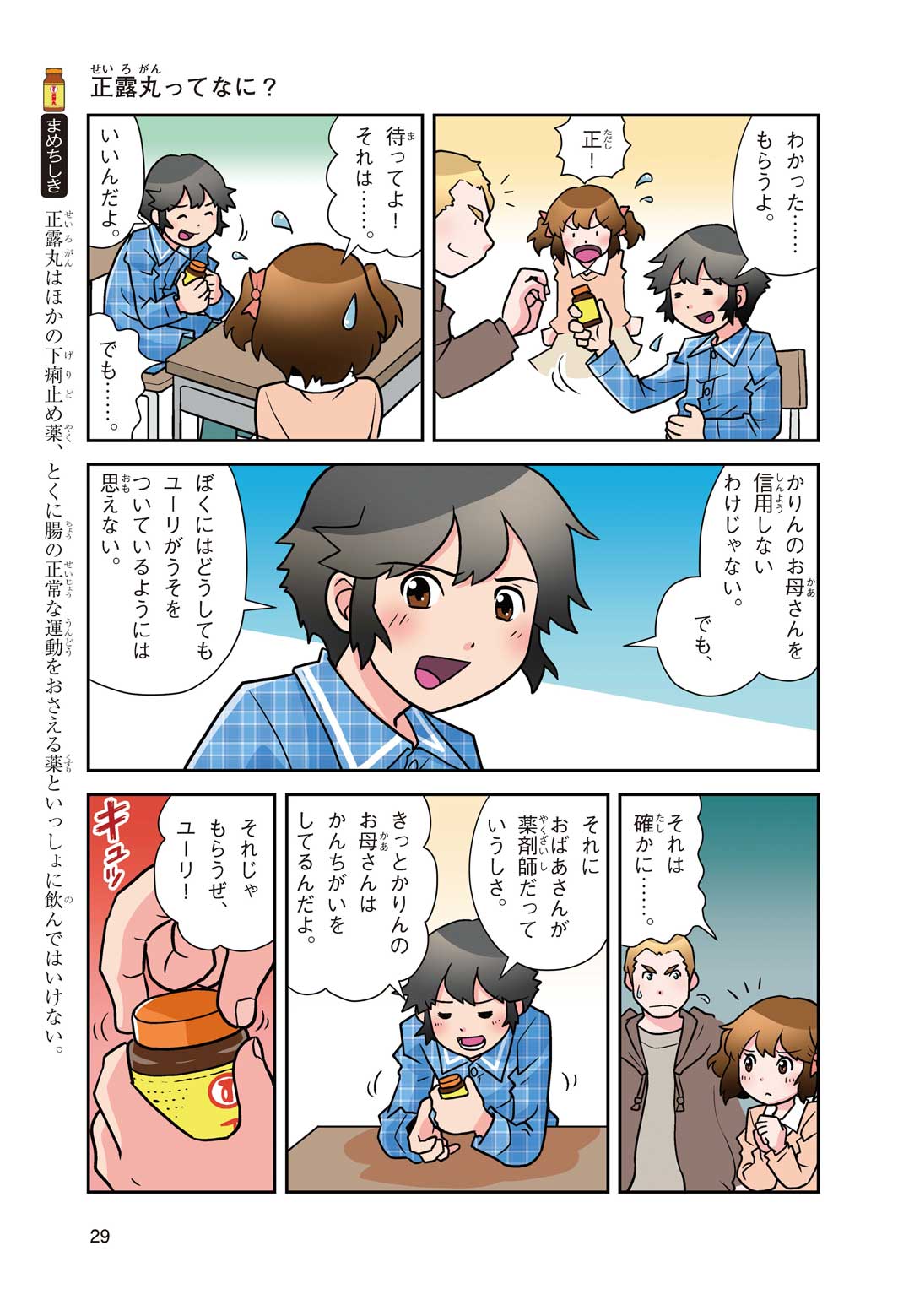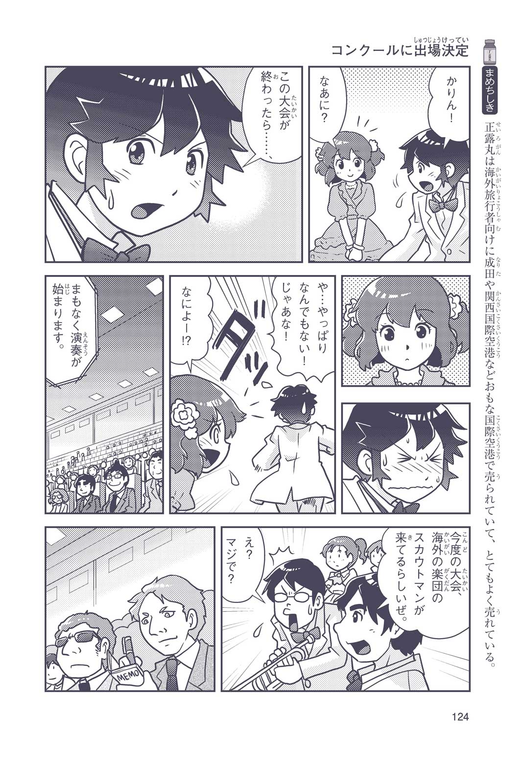 正はトランペットのソロ演奏者(えんそうしゃ)。きんちょうするとすぐおなかがいたくなっちゃって、本番では失敗ばかり。そんな時、トランペットの得意なユーリが転校してきて、さあ大変! 正はユーリと正々堂々戦うために、おなかの薬「正露丸(せいろがん)」を飲んだけれど…。正露丸って、どんな薬? いつから使われ始めたんだろう? 正はトランペットの精(せい)、セイろんといっしょに、時空をこえた旅に出る!