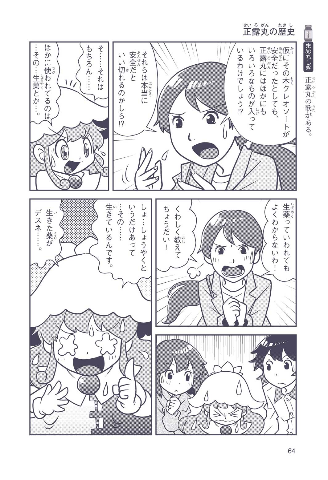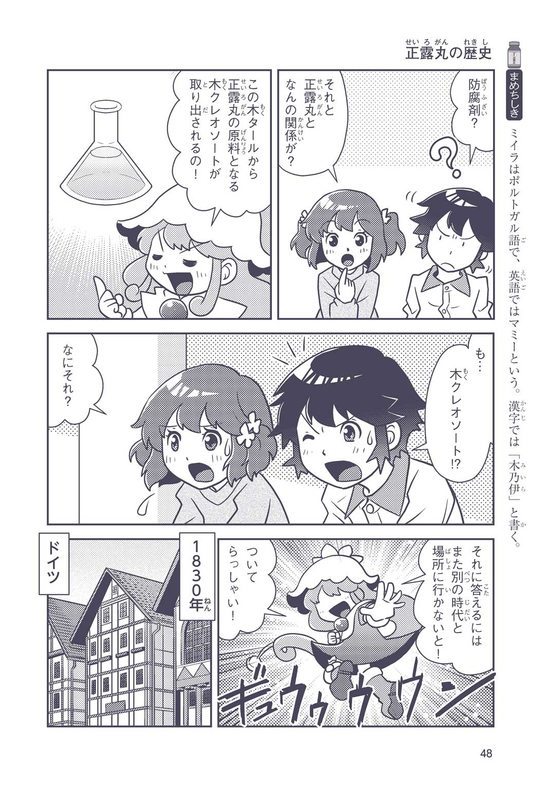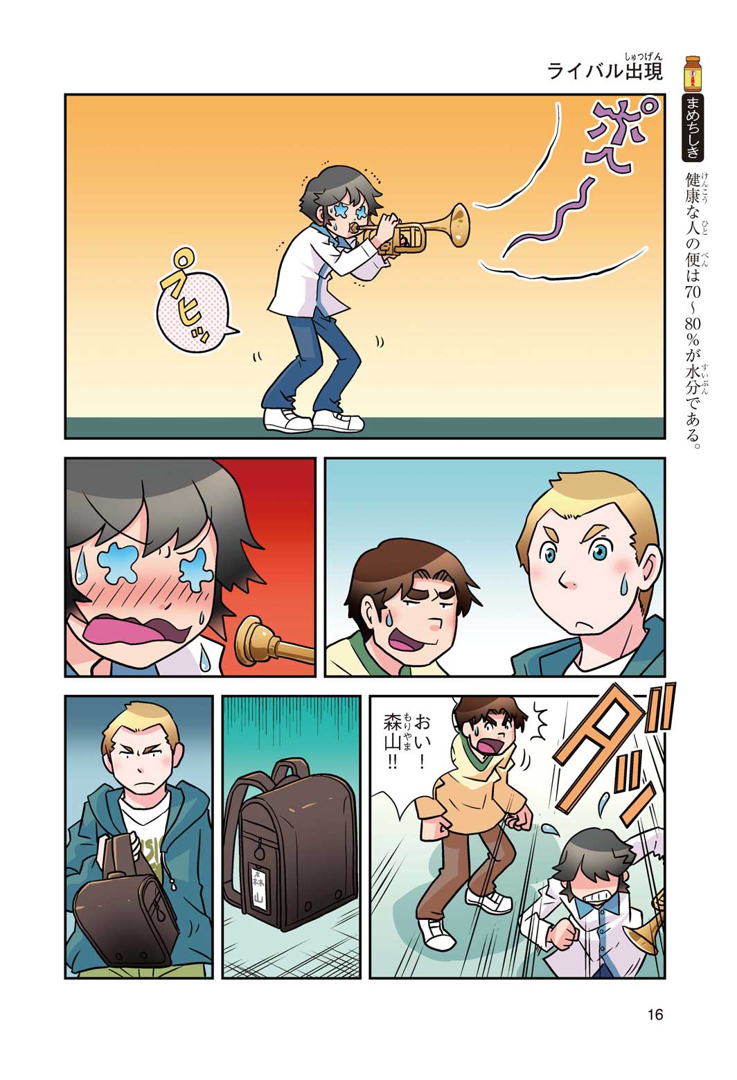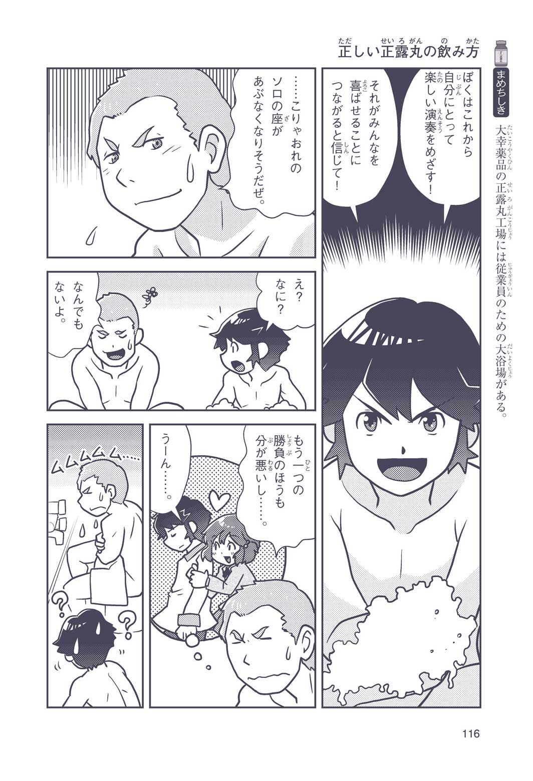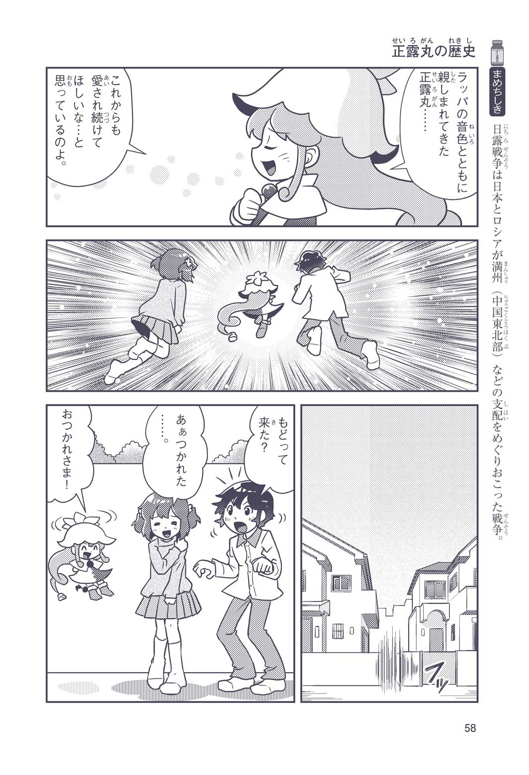 正はトランペットのソロ演奏者(えんそうしゃ)。きんちょうするとすぐおなかがいたくなっちゃって、本番では失敗ばかり。そんな時、トランペットの得意なユーリが転校してきて、さあ大変! 正はユーリと正々堂々戦うために、おなかの薬「正露丸(せいろがん)」を飲んだけれど…。正露丸って、どんな薬? いつから使われ始めたんだろう? 正はトランペットの精(せい)、セイろんといっしょに、時空をこえた旅に出る!