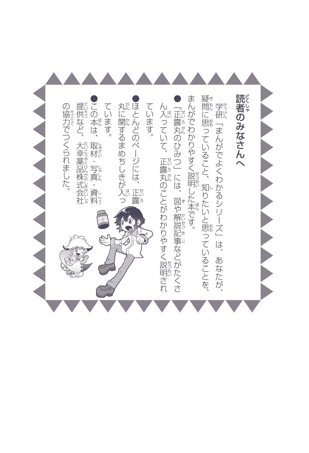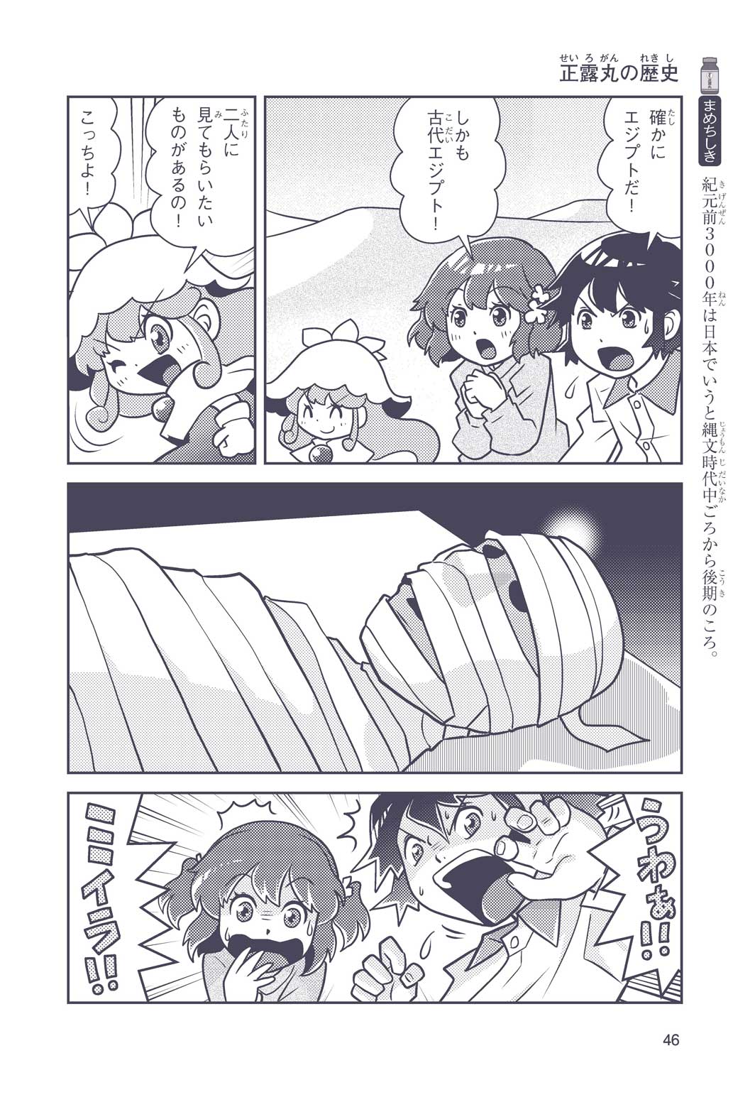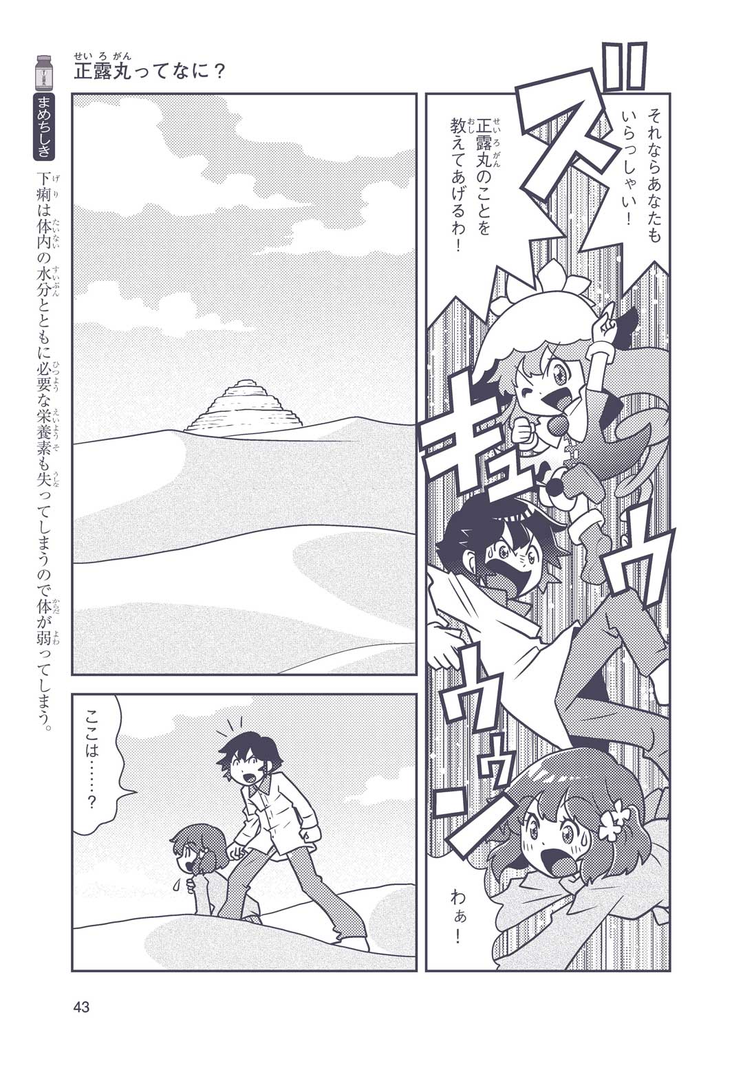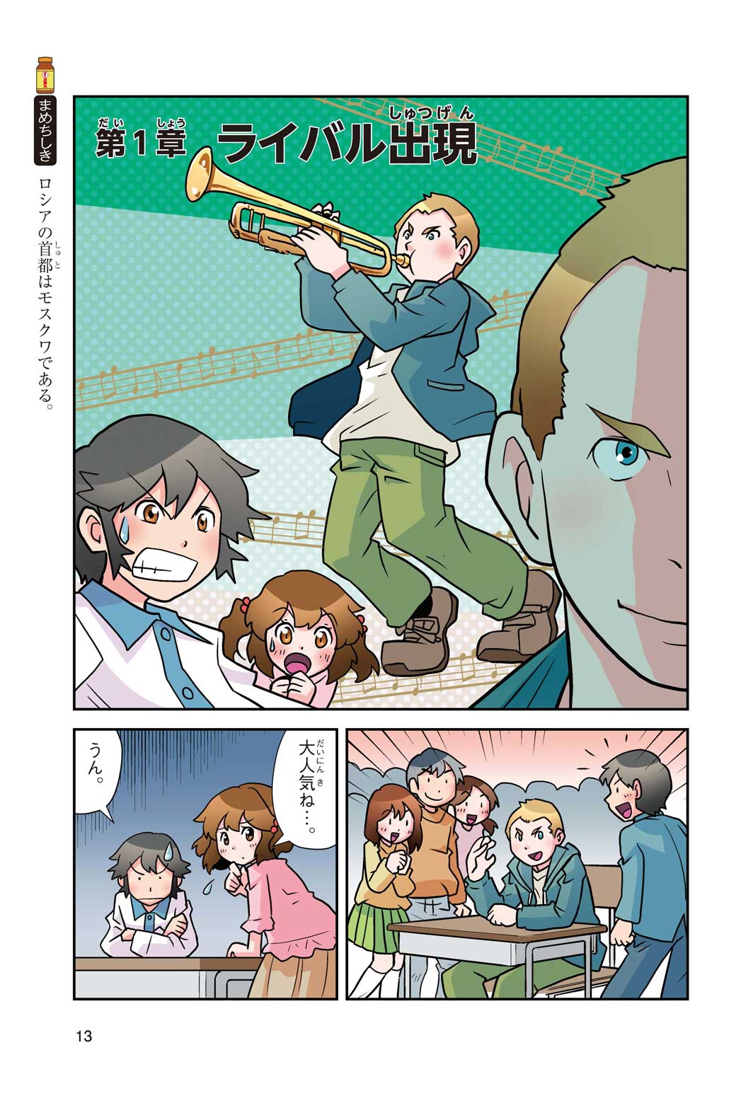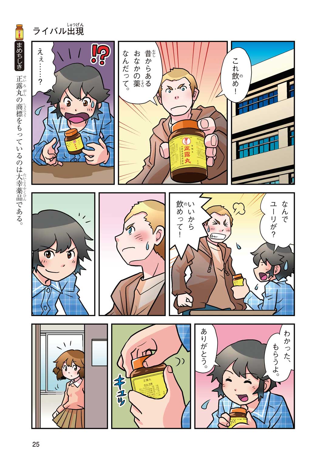 正はトランペットのソロ演奏者(えんそうしゃ)。きんちょうするとすぐおなかがいたくなっちゃって、本番では失敗ばかり。そんな時、トランペットの得意なユーリが転校してきて、さあ大変! 正はユーリと正々堂々戦うために、おなかの薬「正露丸(せいろがん)」を飲んだけれど…。正露丸って、どんな薬? いつから使われ始めたんだろう? 正はトランペットの精(せい)、セイろんといっしょに、時空をこえた旅に出る!
