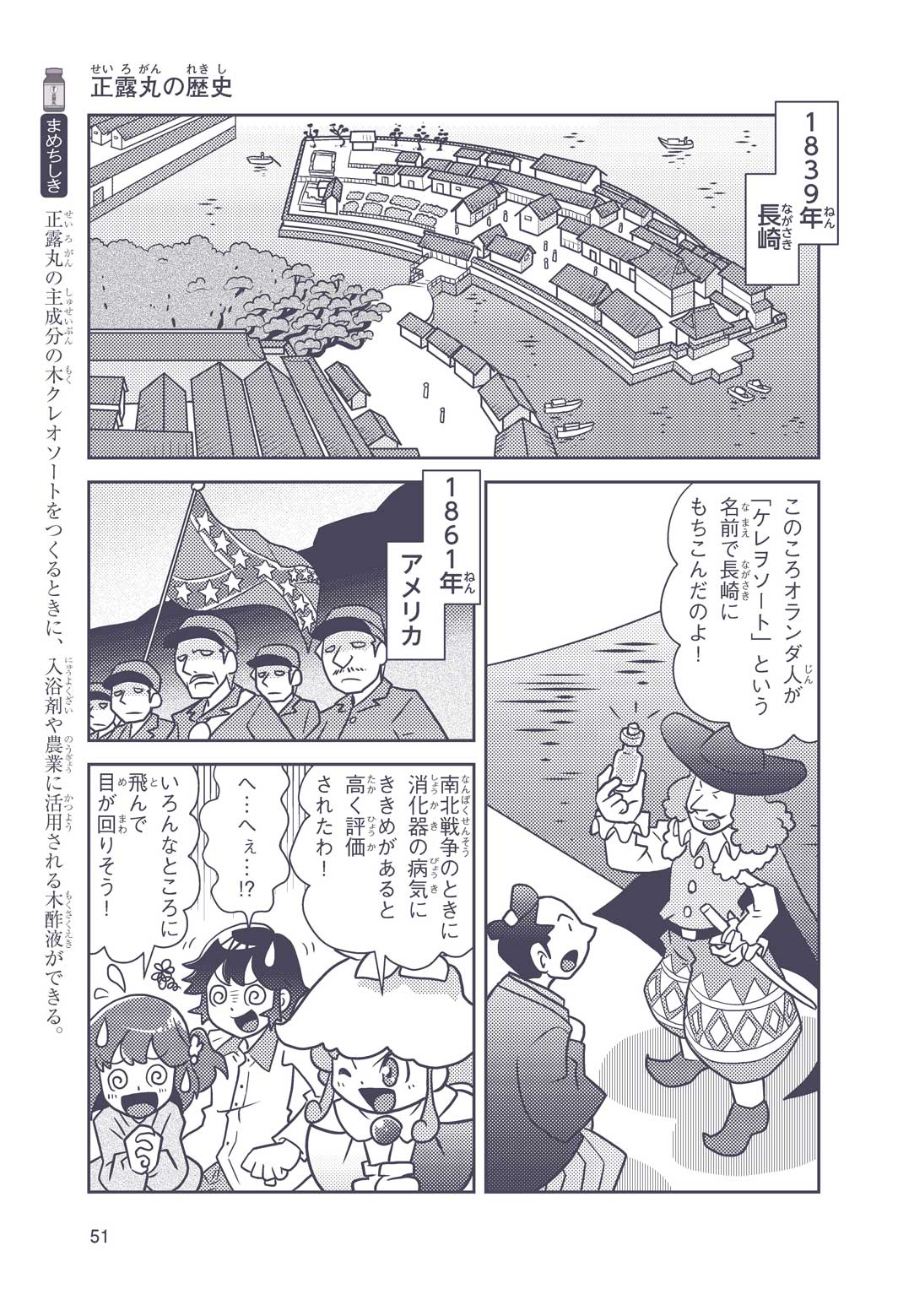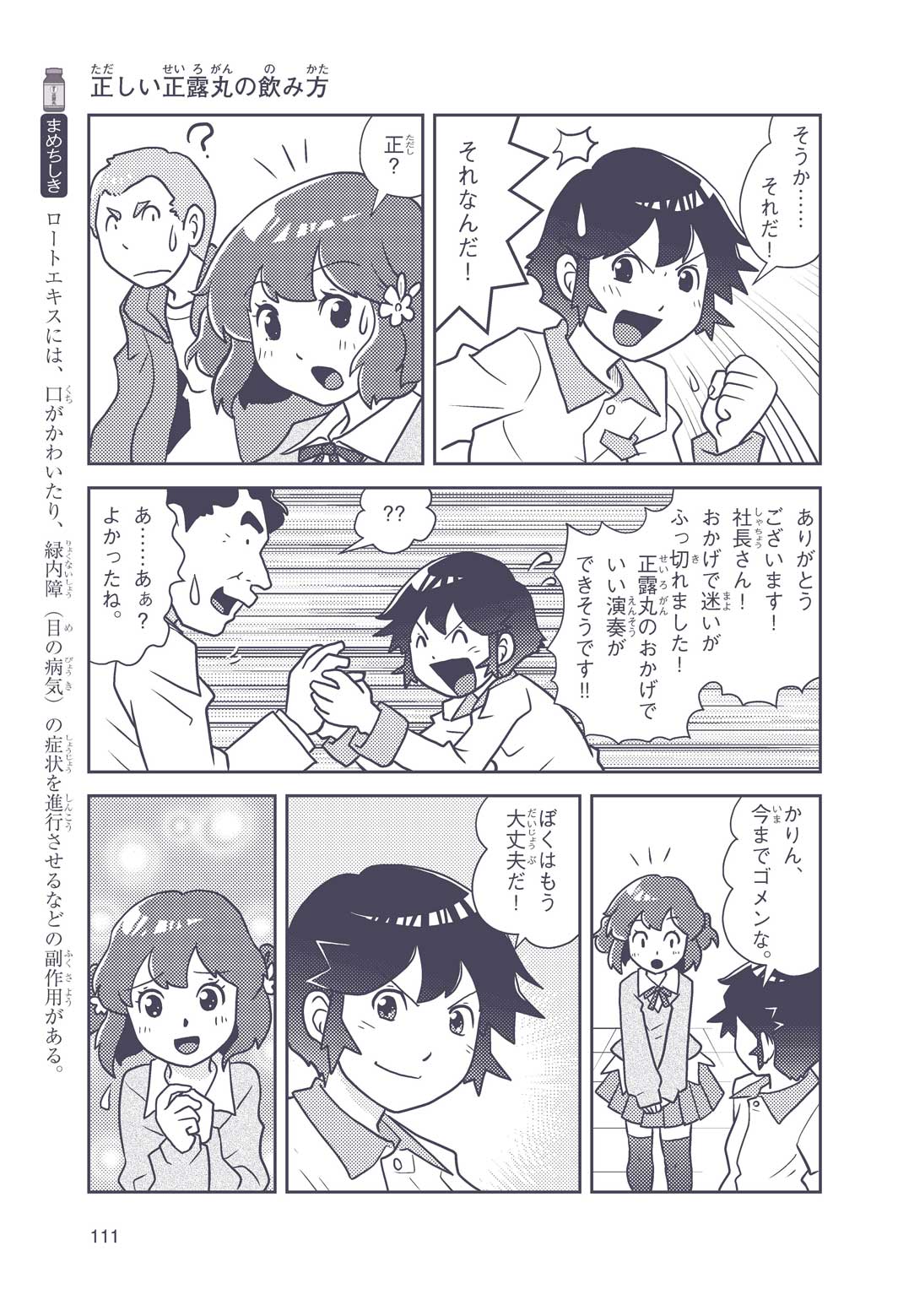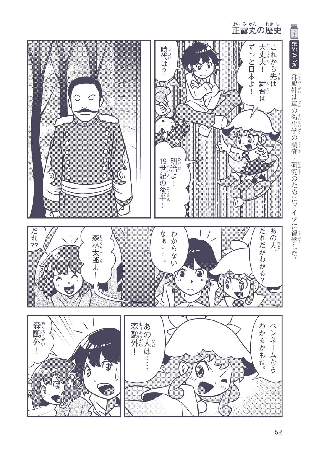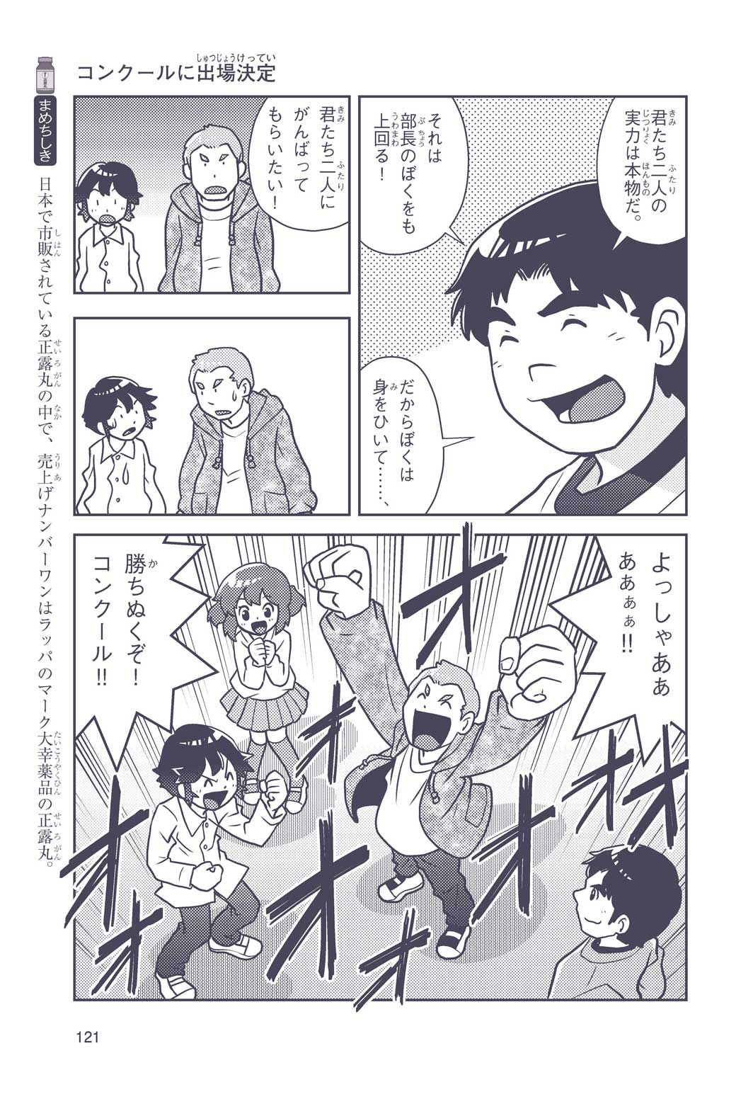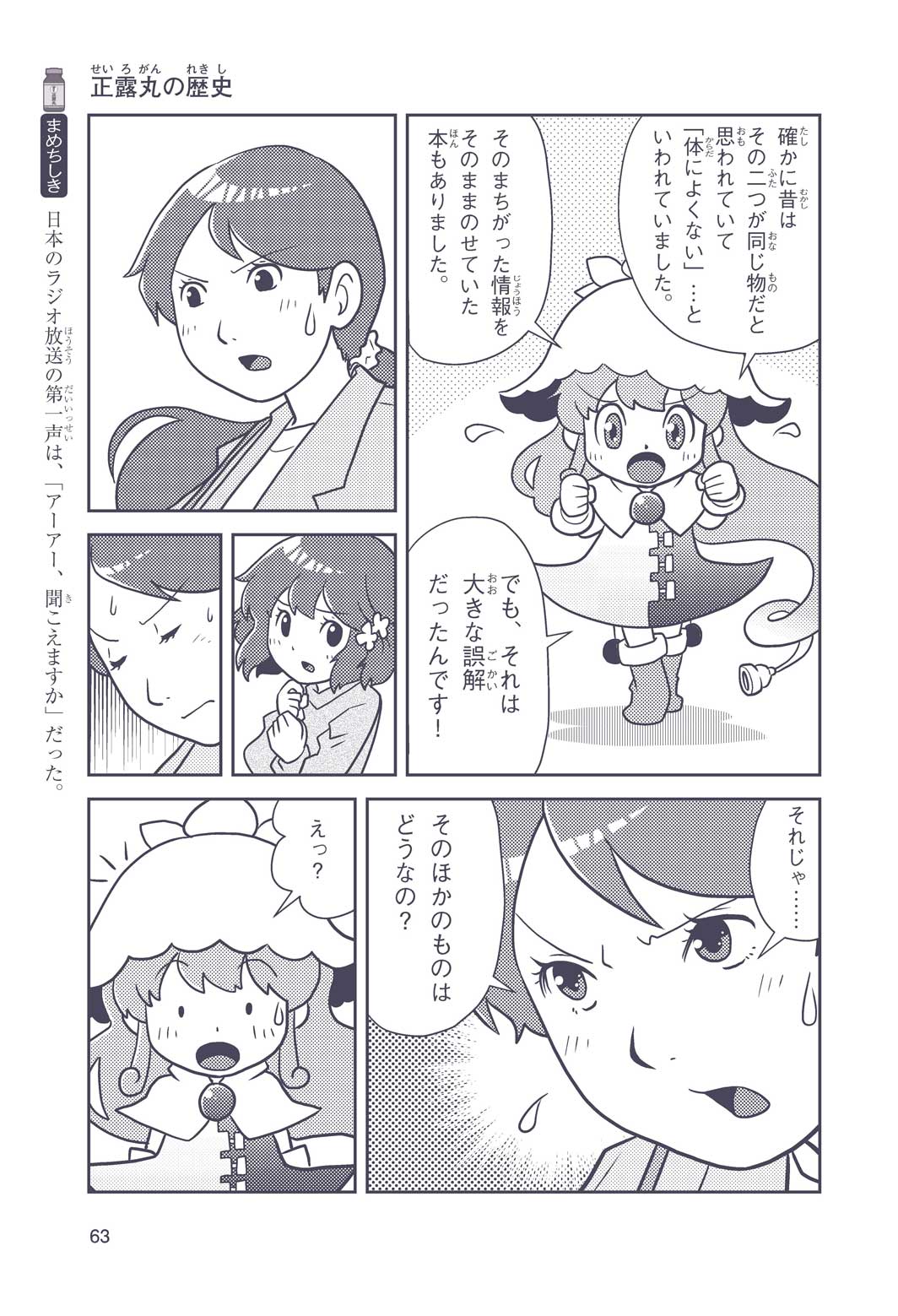 正はトランペットのソロ演奏者(えんそうしゃ)。きんちょうするとすぐおなかがいたくなっちゃって、本番では失敗ばかり。そんな時、トランペットの得意なユーリが転校してきて、さあ大変! 正はユーリと正々堂々戦うために、おなかの薬「正露丸(せいろがん)」を飲んだけれど…。正露丸って、どんな薬? いつから使われ始めたんだろう? 正はトランペットの精(せい)、セイろんといっしょに、時空をこえた旅に出る!