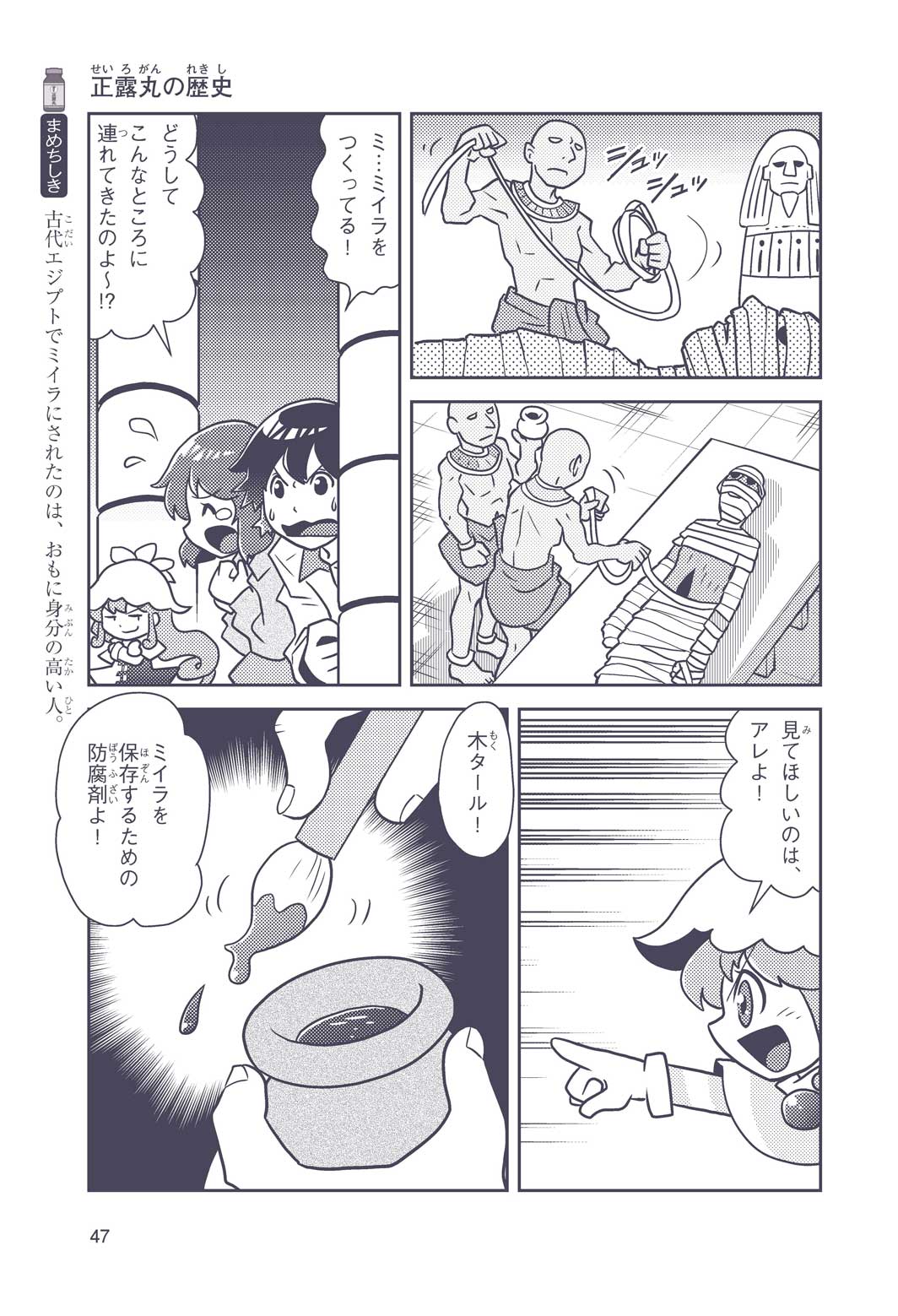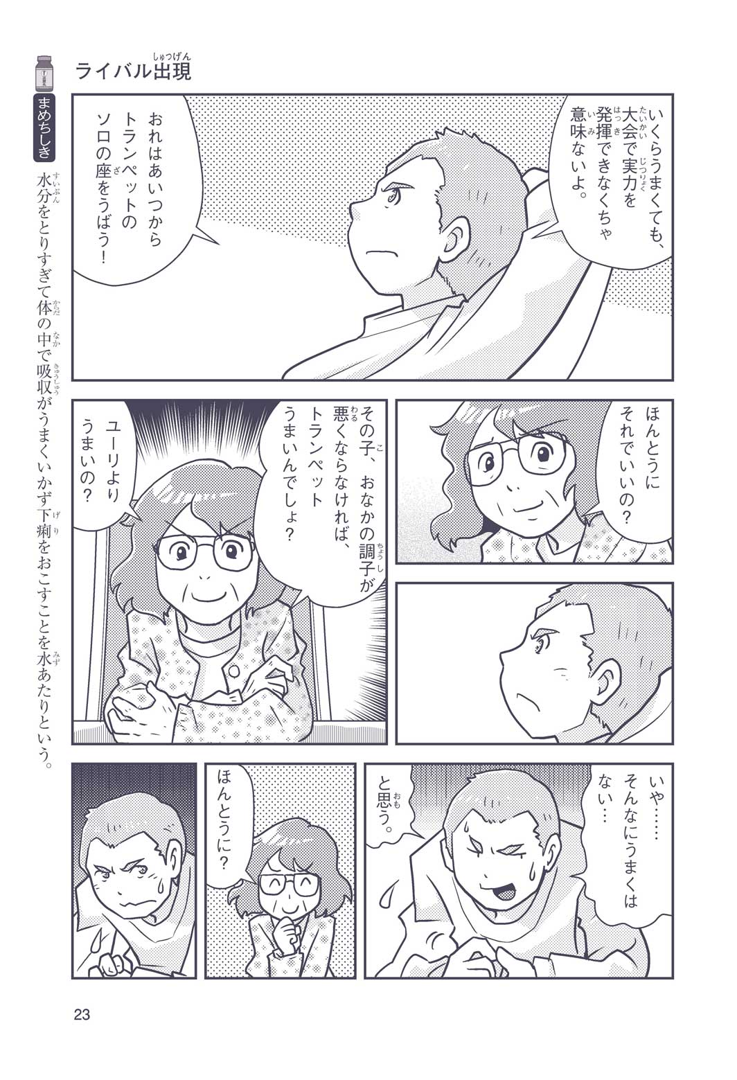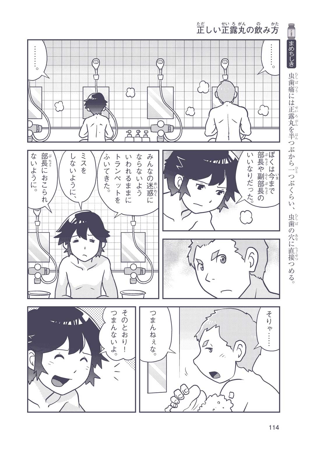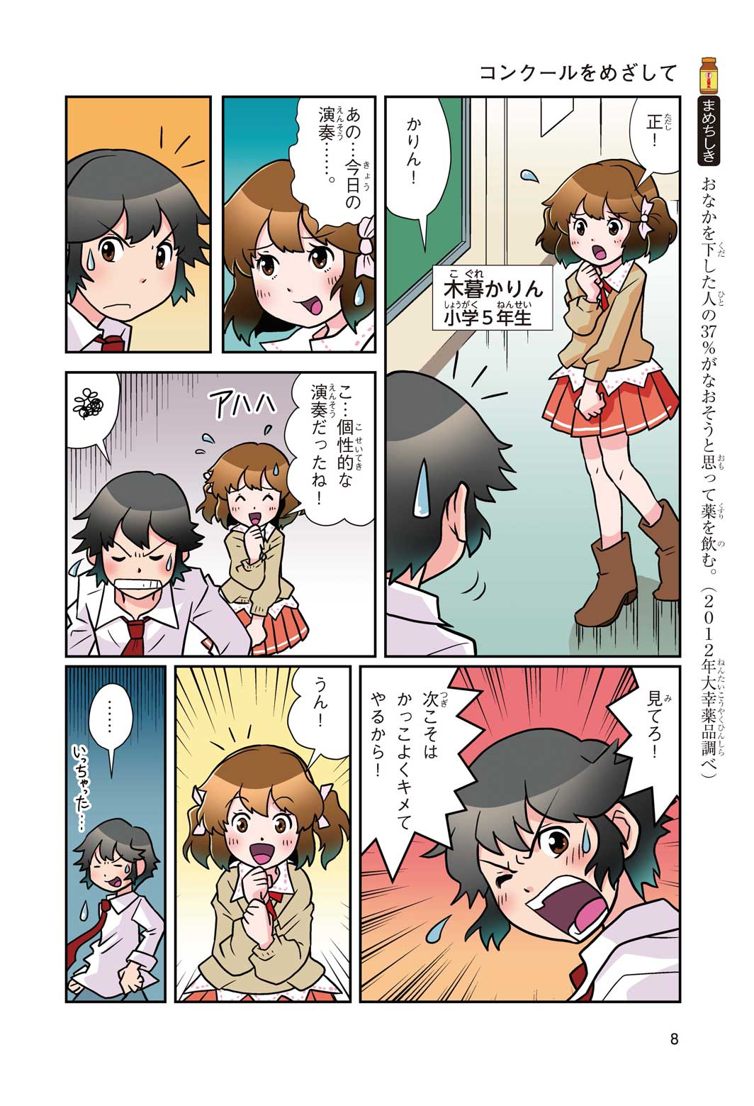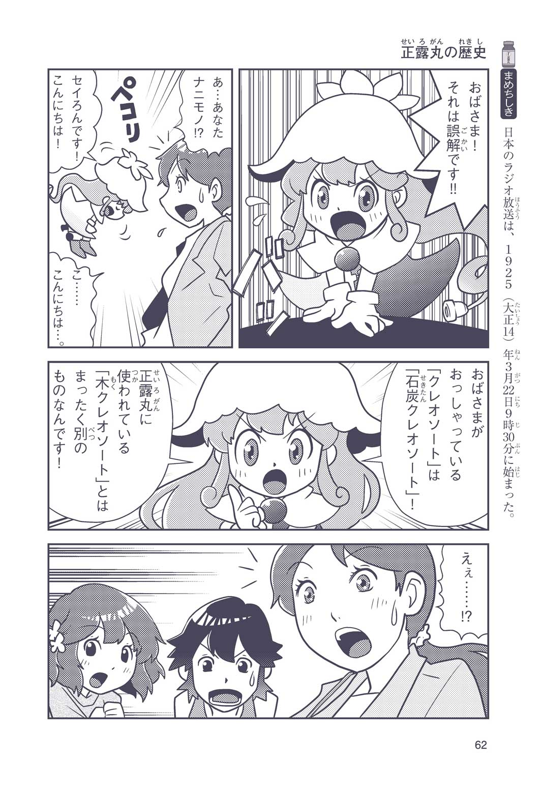 正はトランペットのソロ演奏者(えんそうしゃ)。きんちょうするとすぐおなかがいたくなっちゃって、本番では失敗ばかり。そんな時、トランペットの得意なユーリが転校してきて、さあ大変! 正はユーリと正々堂々戦うために、おなかの薬「正露丸(せいろがん)」を飲んだけれど…。正露丸って、どんな薬? いつから使われ始めたんだろう? 正はトランペットの精(せい)、セイろんといっしょに、時空をこえた旅に出る!