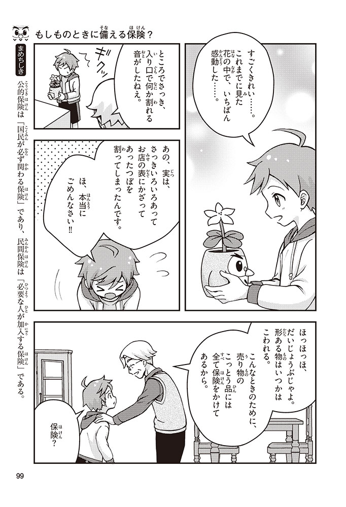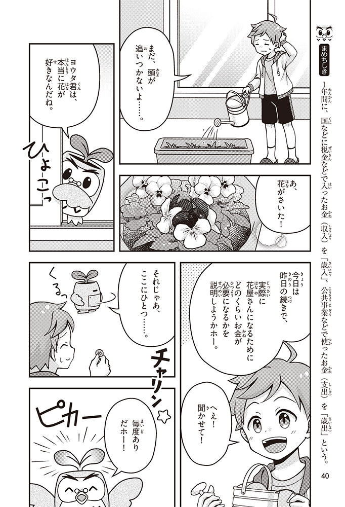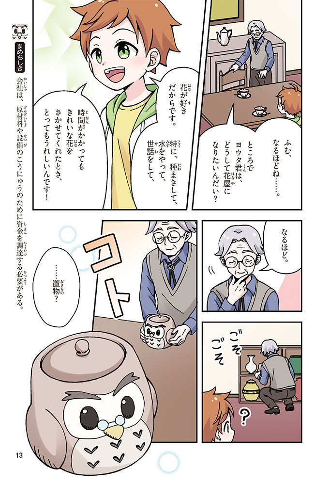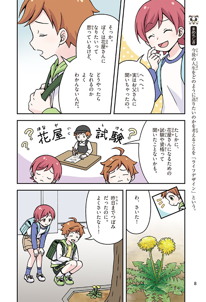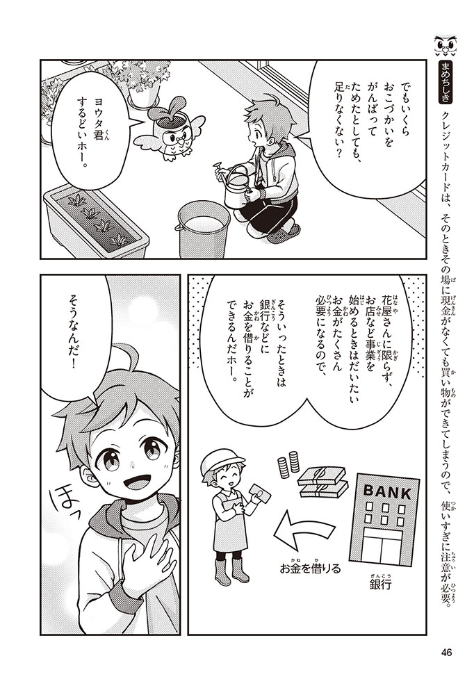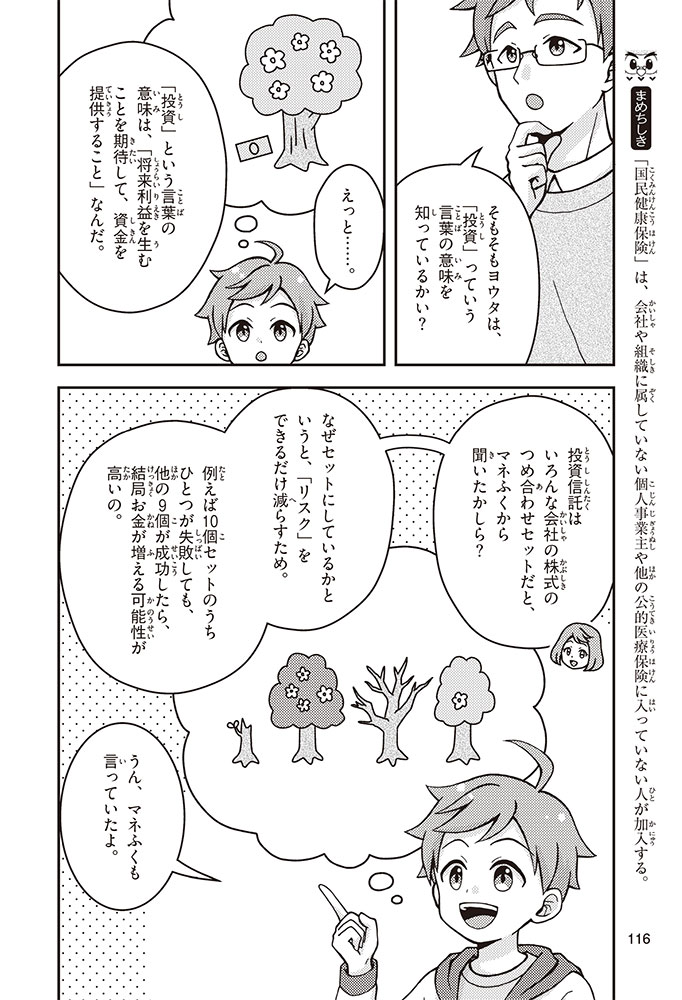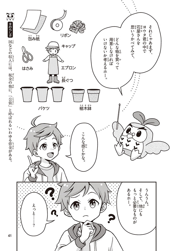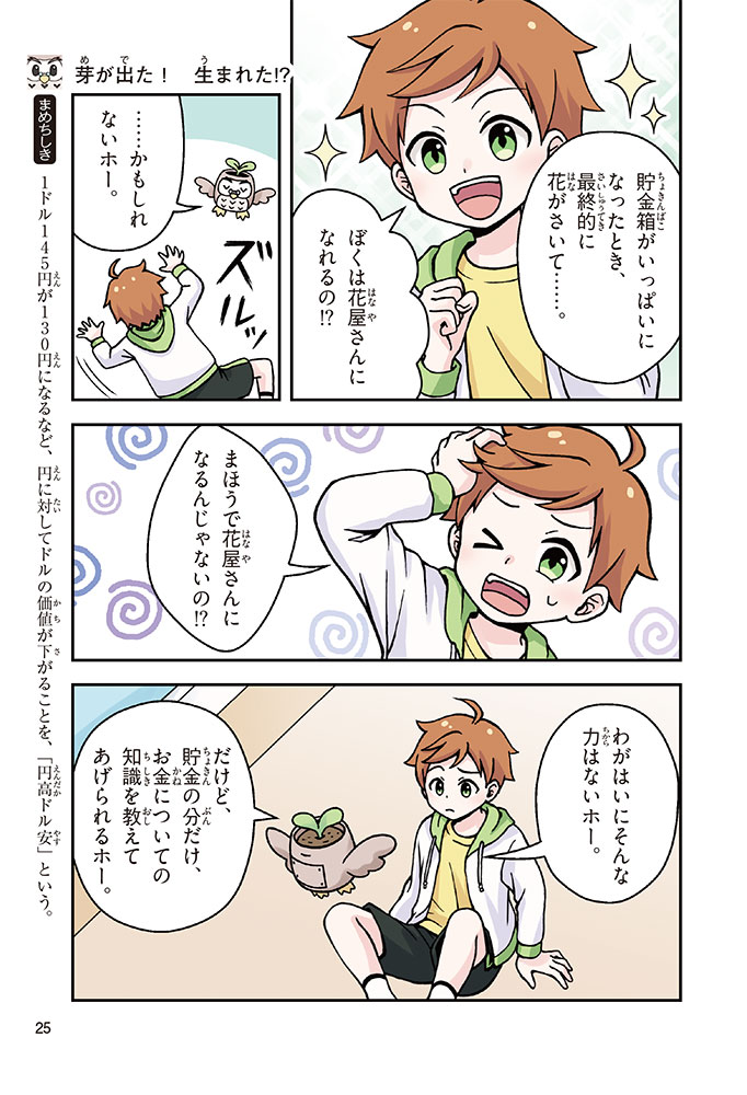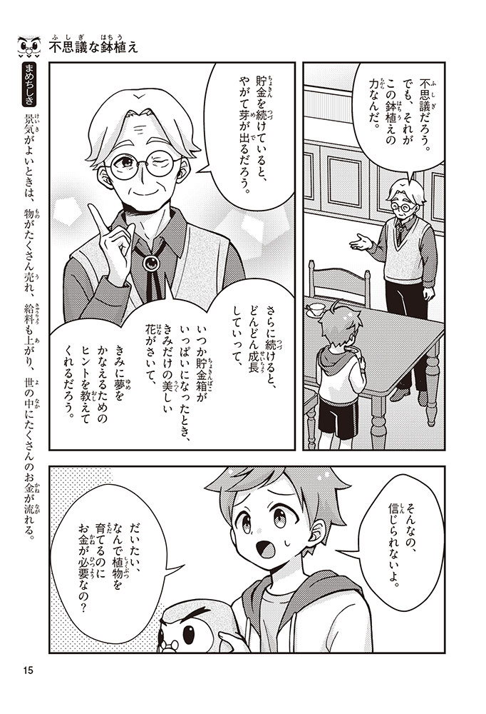 きみの将来の夢は何かな? なりたいもの、やりたいことがありすぎてまよっちゃう? 夢はあるけれど、かなえるために何をすればいいのかわからなくて不安に思っているかもしれないね。この本では「花屋になりたい」という夢をもつヨウタが、お金にくわしい貯金箱の「マネふく」とであって「お金との付き合い方」を楽しく学んでいくよ。お金のことを知ることは、夢に近づく第一歩。さあ、「未来をつくるひみつ」をいっしょに見つけよう!