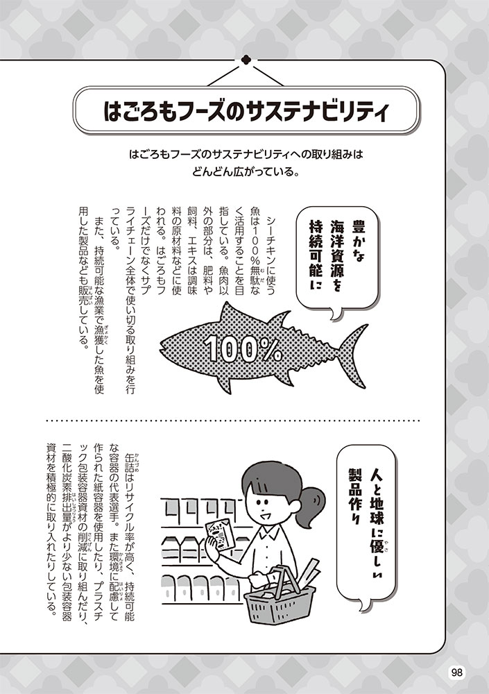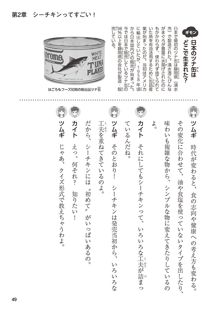 普段の食生活のなかで活用されている缶詰。なかでもはごろもフーズという会社のシーチキンはおにぎりやサンドイッチでもよく使われていて大好きな人も多いはず。この本でははごろもフーズの缶詰づくりの歴史、開発者のお話、おいしい食べ方を紹介しています。ぜひ読んでみてね。