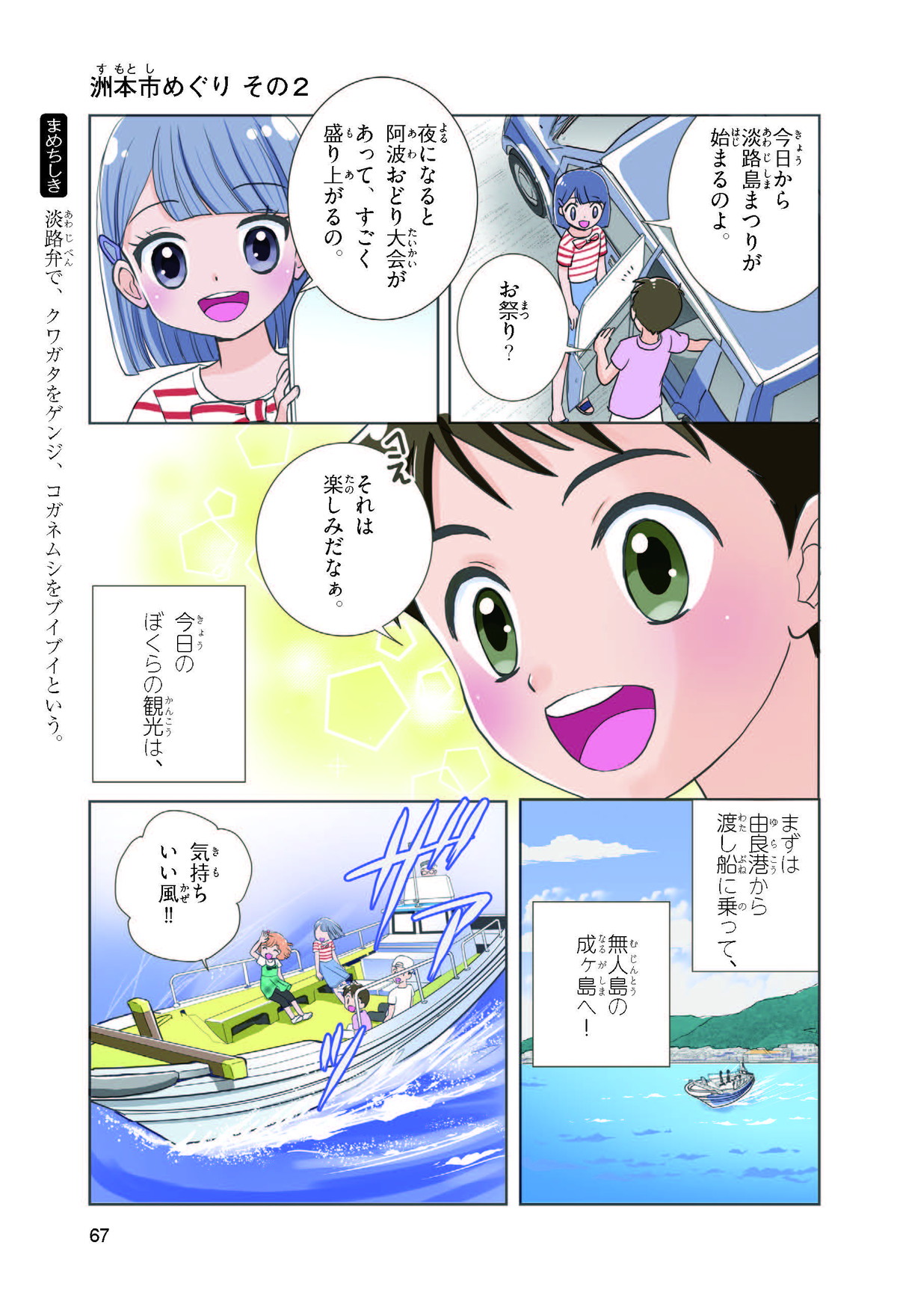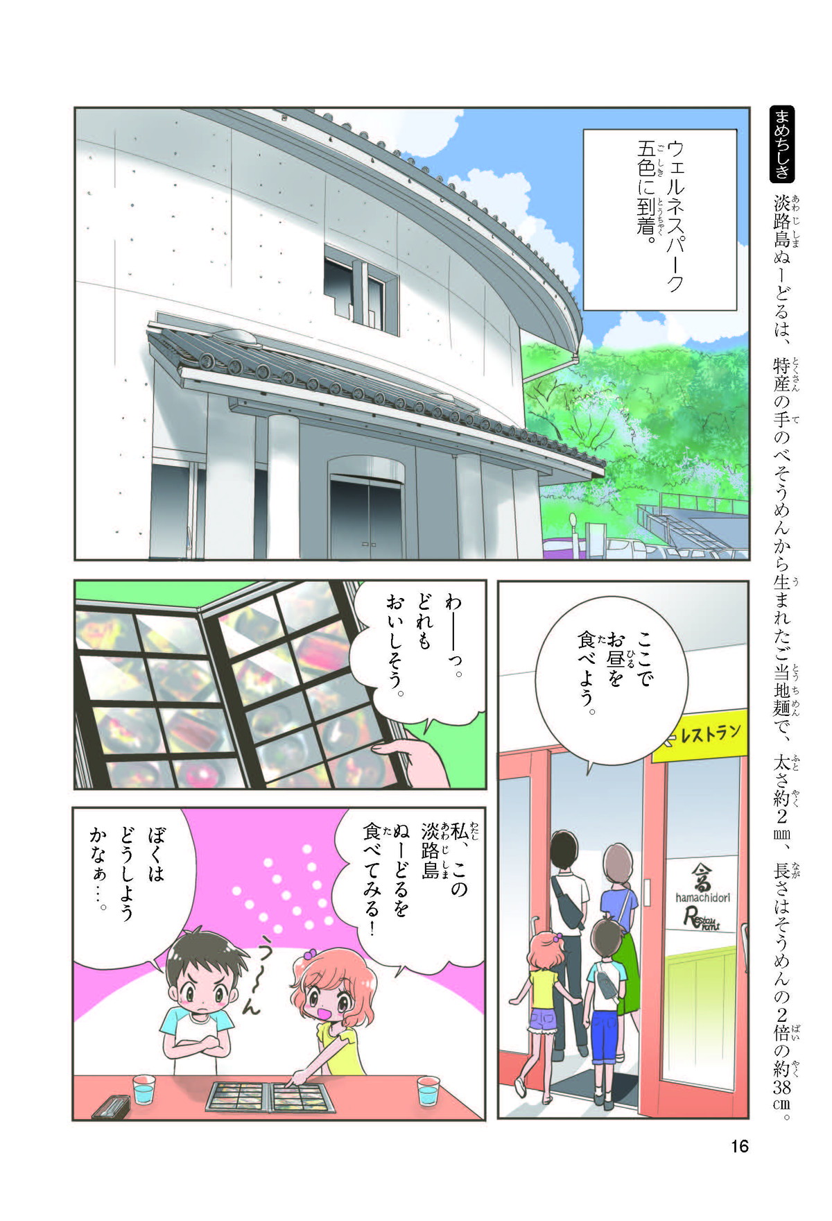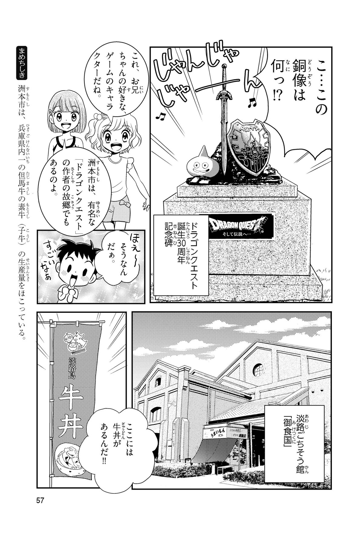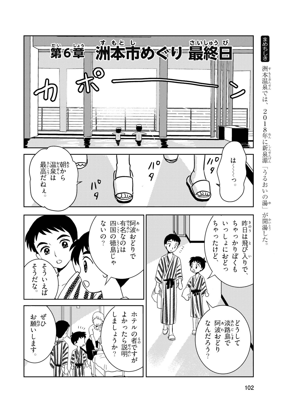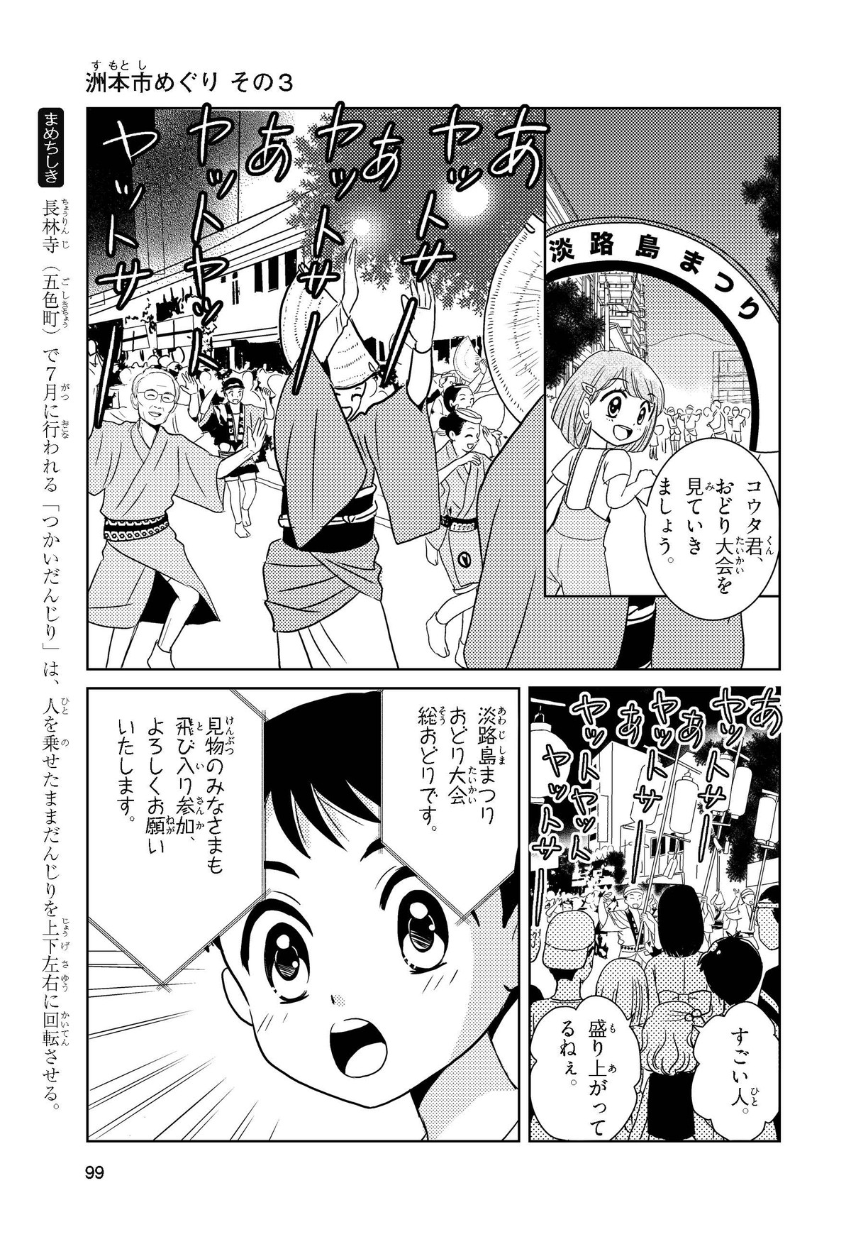 小学5年生のコウタのおうちは洋食屋さん。引っ越しの下見のため、淡路島(あわじしま)・洲本市(すもとし)へ旅行に行くことに。淡路島は、日本の神話でイザナギ、イザナミという神様が最初に生んだ島といわれているよ。温泉や海水浴などが楽しめる場所や、おまつりなどのイベントもあって、たまねぎや淡路牛、春夏秋冬の海の幸と、おいしい食べ物もいっぱい! そんな洲本市のひみつを探っていこう!