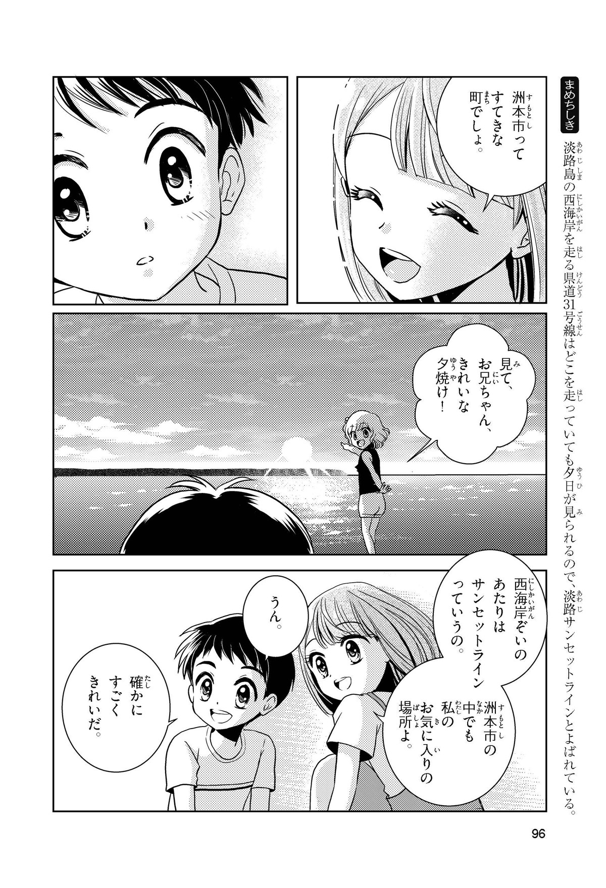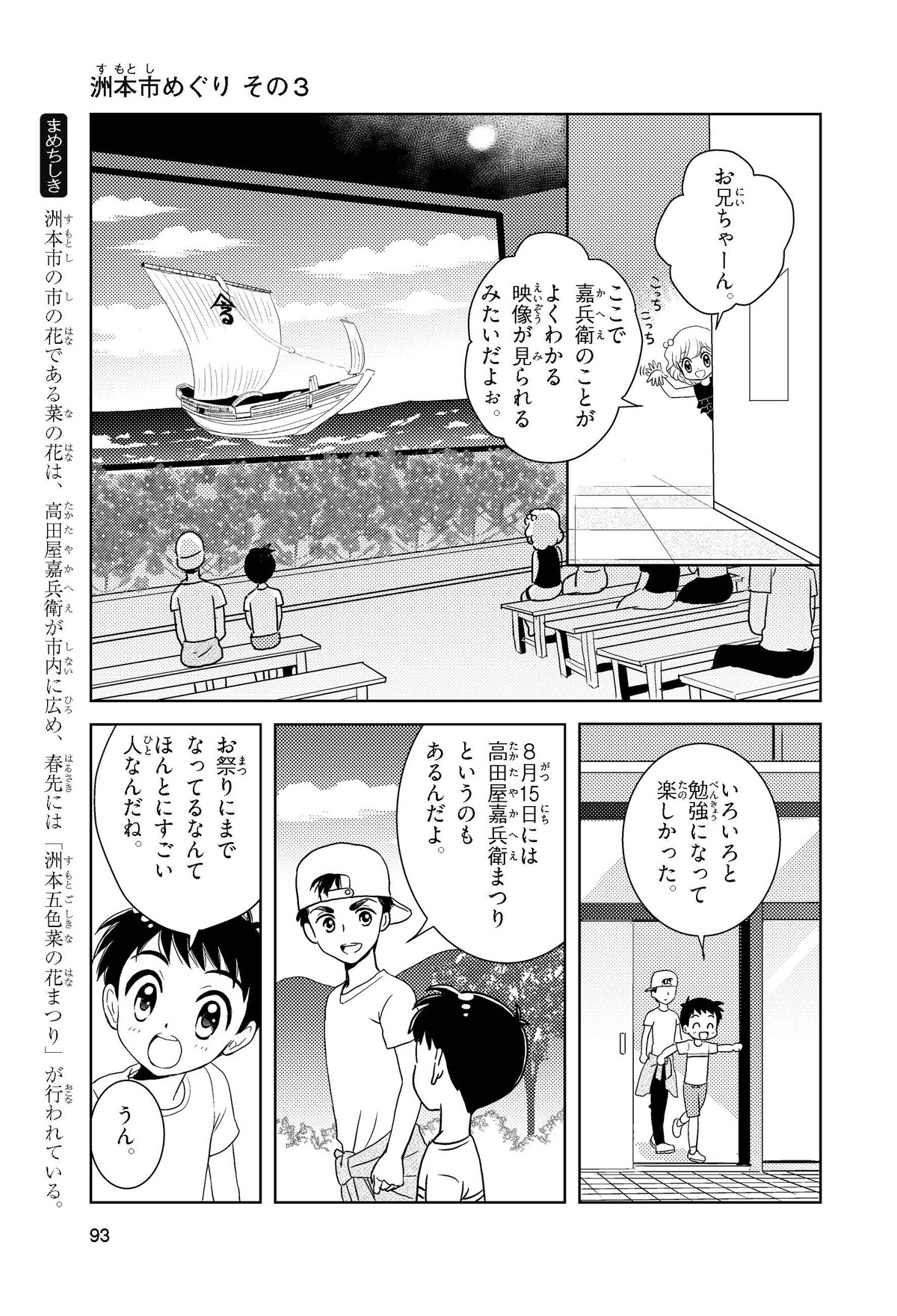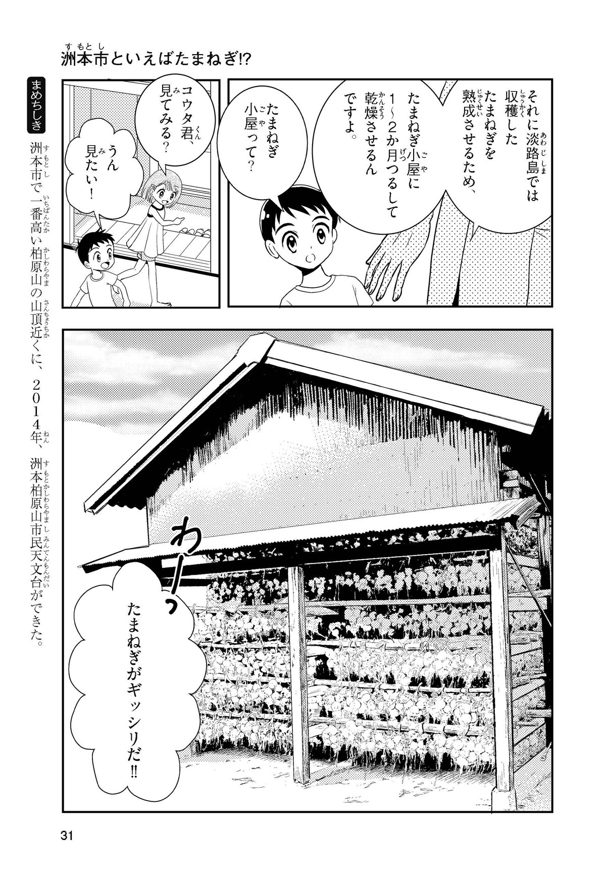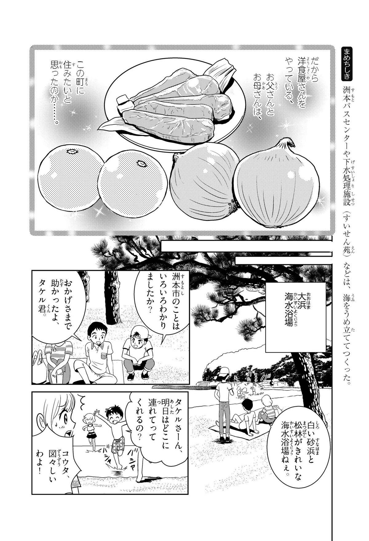 小学5年生のコウタのおうちは洋食屋さん。引っ越しの下見のため、淡路島(あわじしま)・洲本市(すもとし)へ旅行に行くことに。淡路島は、日本の神話でイザナギ、イザナミという神様が最初に生んだ島といわれているよ。温泉や海水浴などが楽しめる場所や、おまつりなどのイベントもあって、たまねぎや淡路牛、春夏秋冬の海の幸と、おいしい食べ物もいっぱい! そんな洲本市のひみつを探っていこう!