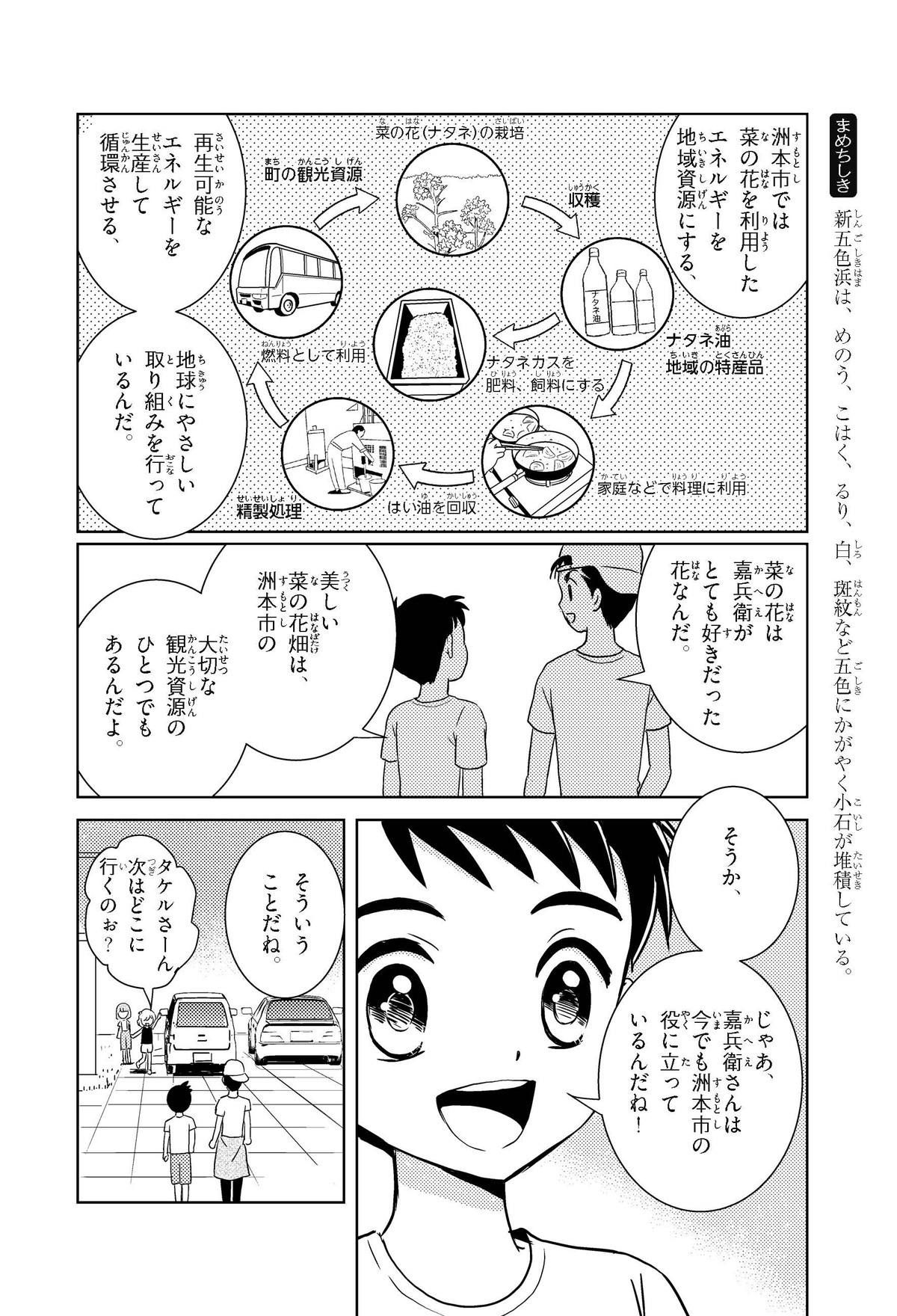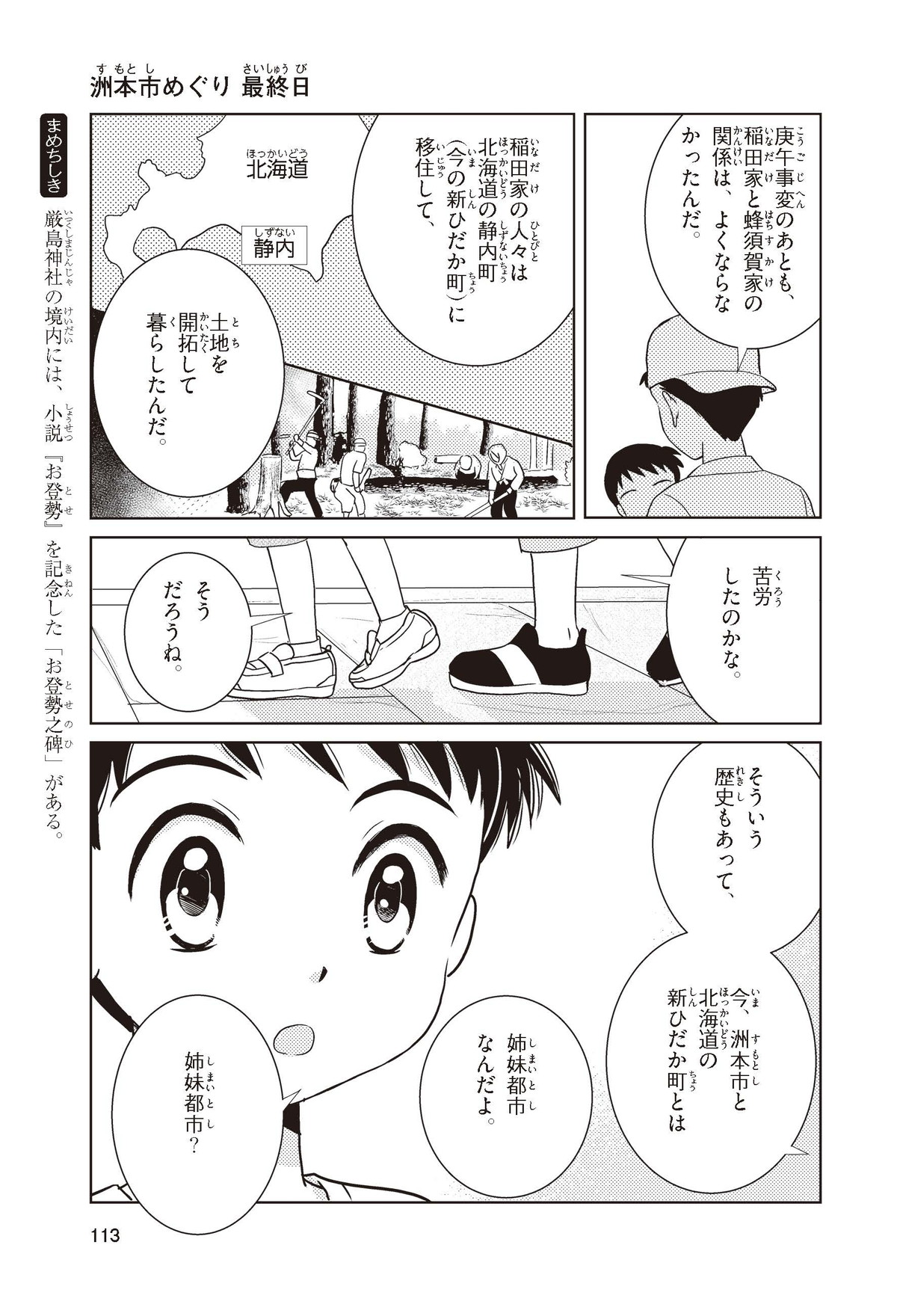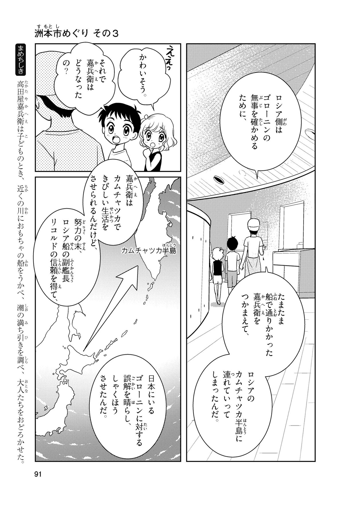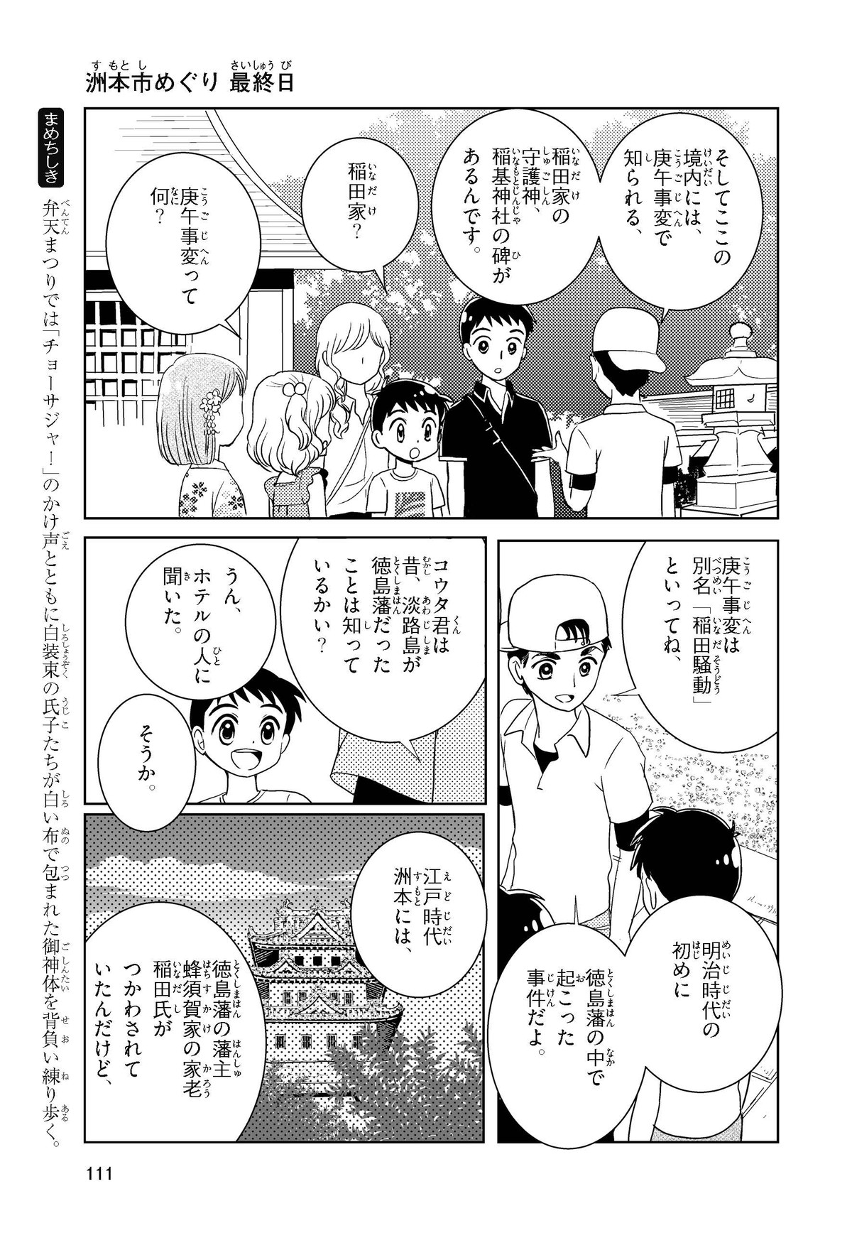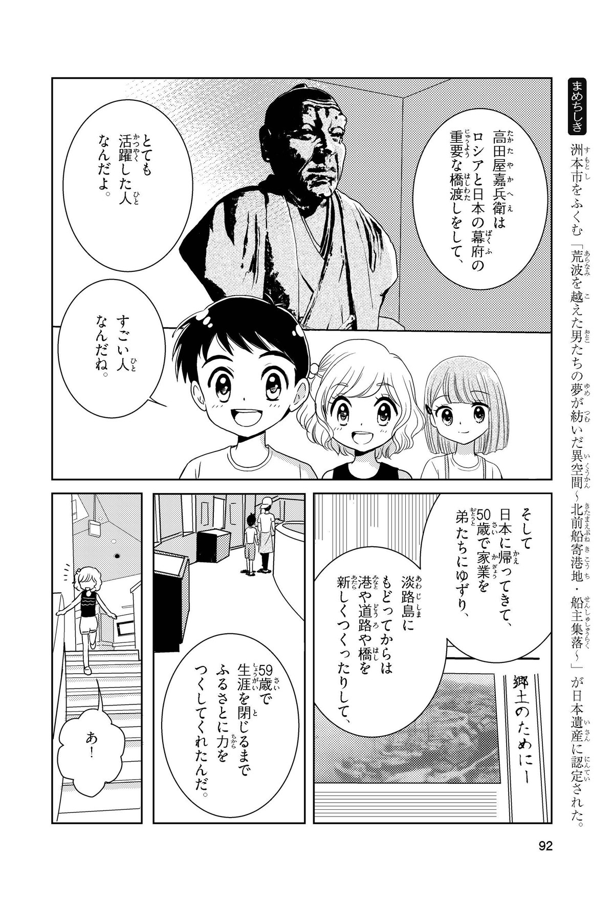 小学5年生のコウタのおうちは洋食屋さん。引っ越しの下見のため、淡路島(あわじしま)・洲本市(すもとし)へ旅行に行くことに。淡路島は、日本の神話でイザナギ、イザナミという神様が最初に生んだ島といわれているよ。温泉や海水浴などが楽しめる場所や、おまつりなどのイベントもあって、たまねぎや淡路牛、春夏秋冬の海の幸と、おいしい食べ物もいっぱい! そんな洲本市のひみつを探っていこう!