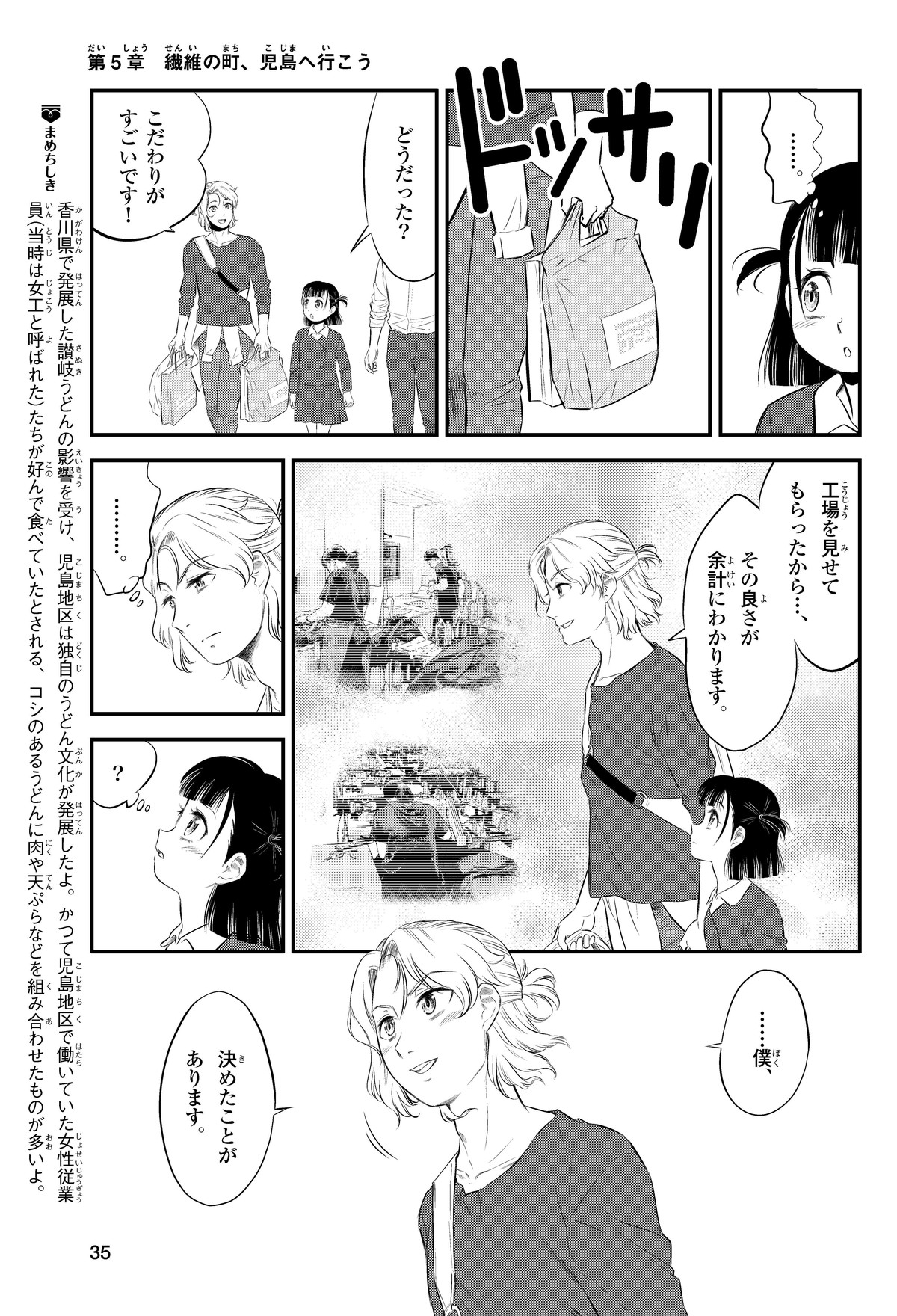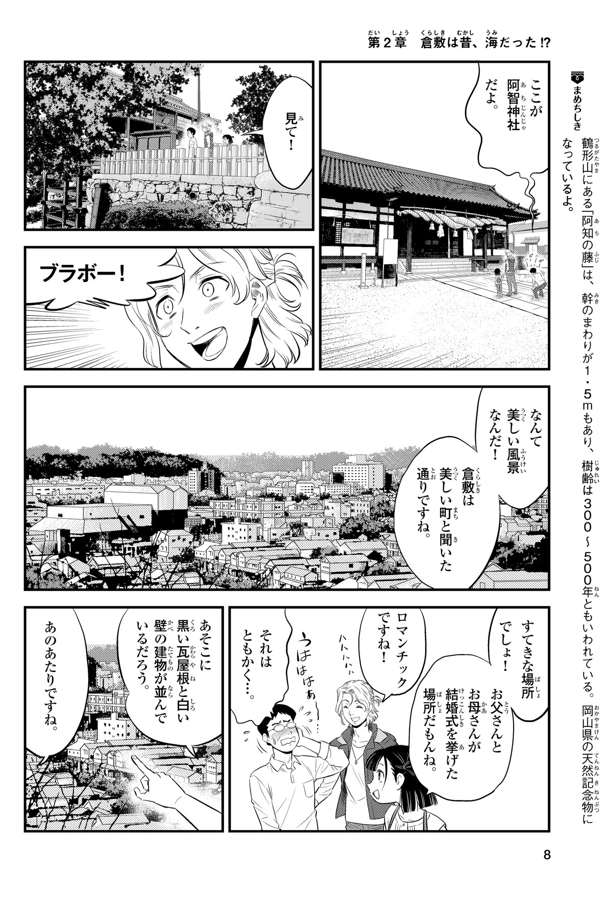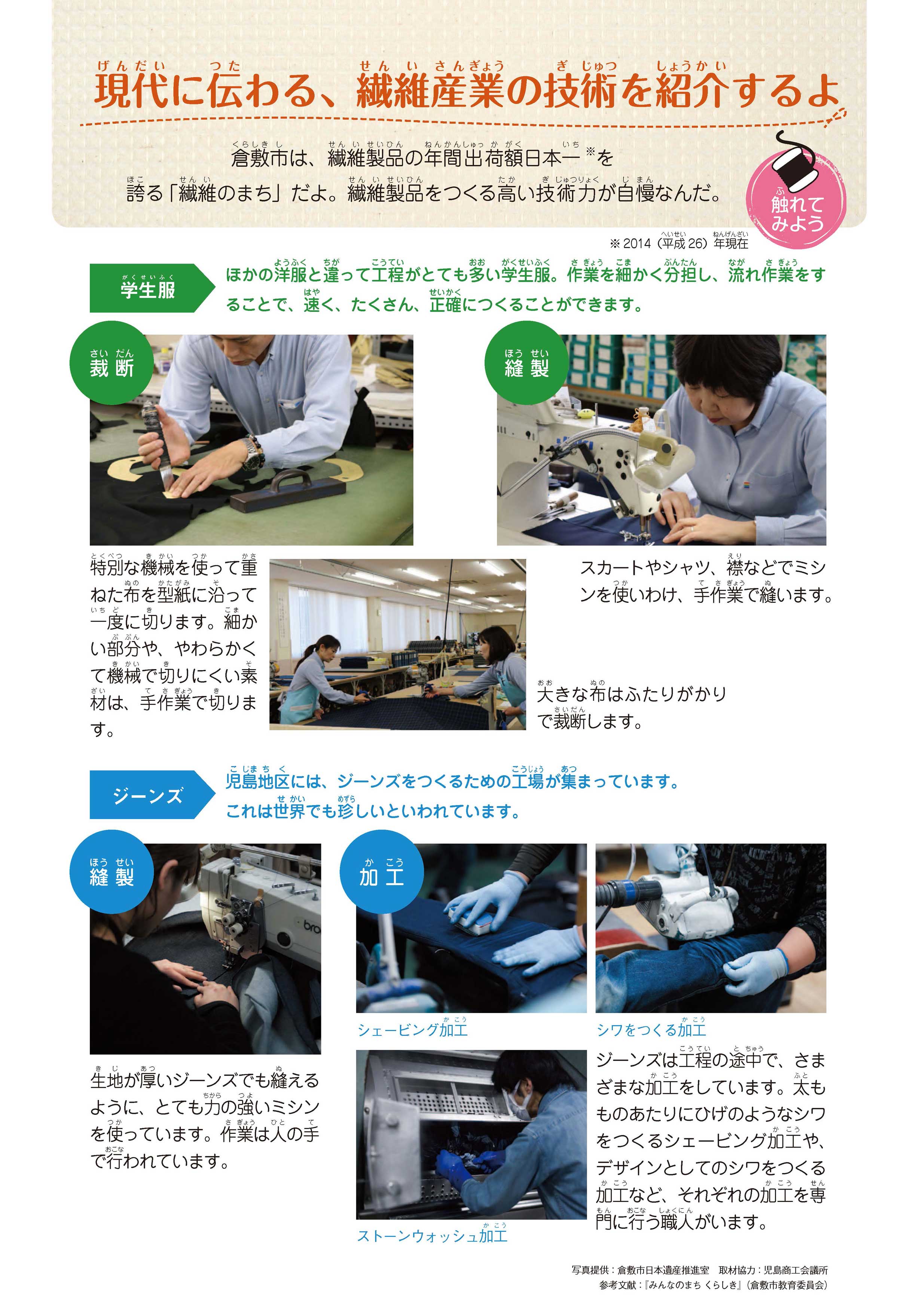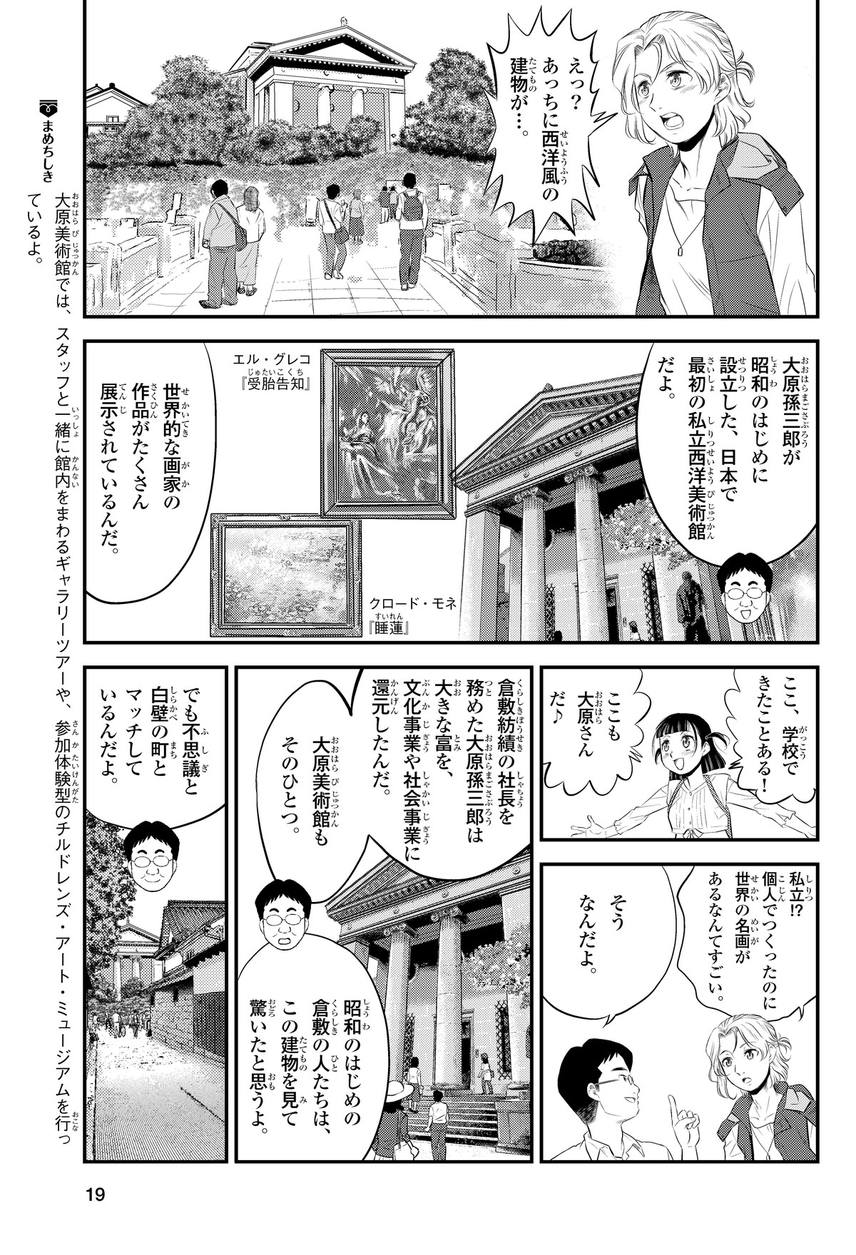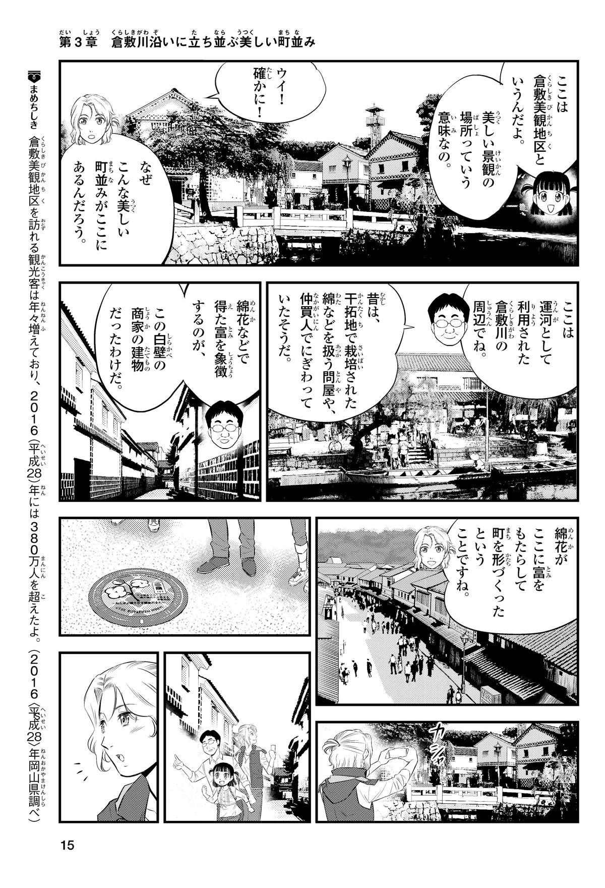 小学生のハナは、倉敷市に住む女の子。倉敷市は「繊維(せんい)のまち」として有名で、ハナのお父さんもジーンズメーカーで働いているよ。その高い技術(ぎじゅつ)で作られた倉敷市のジーンズに惹かれて日本に来た、フランス人のジュリアン。ハナとジュリアンは、倉敷市がもともと海だったこと、干拓した土地に綿花を植えたことなど、倉敷市の歴史を学んでいくよ。そして、ジュリアンはあることを決意して……!?