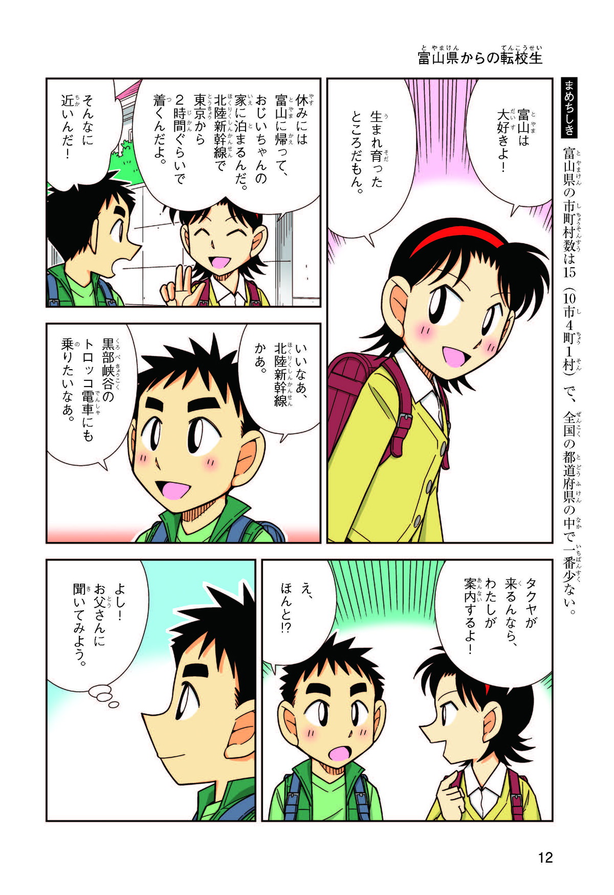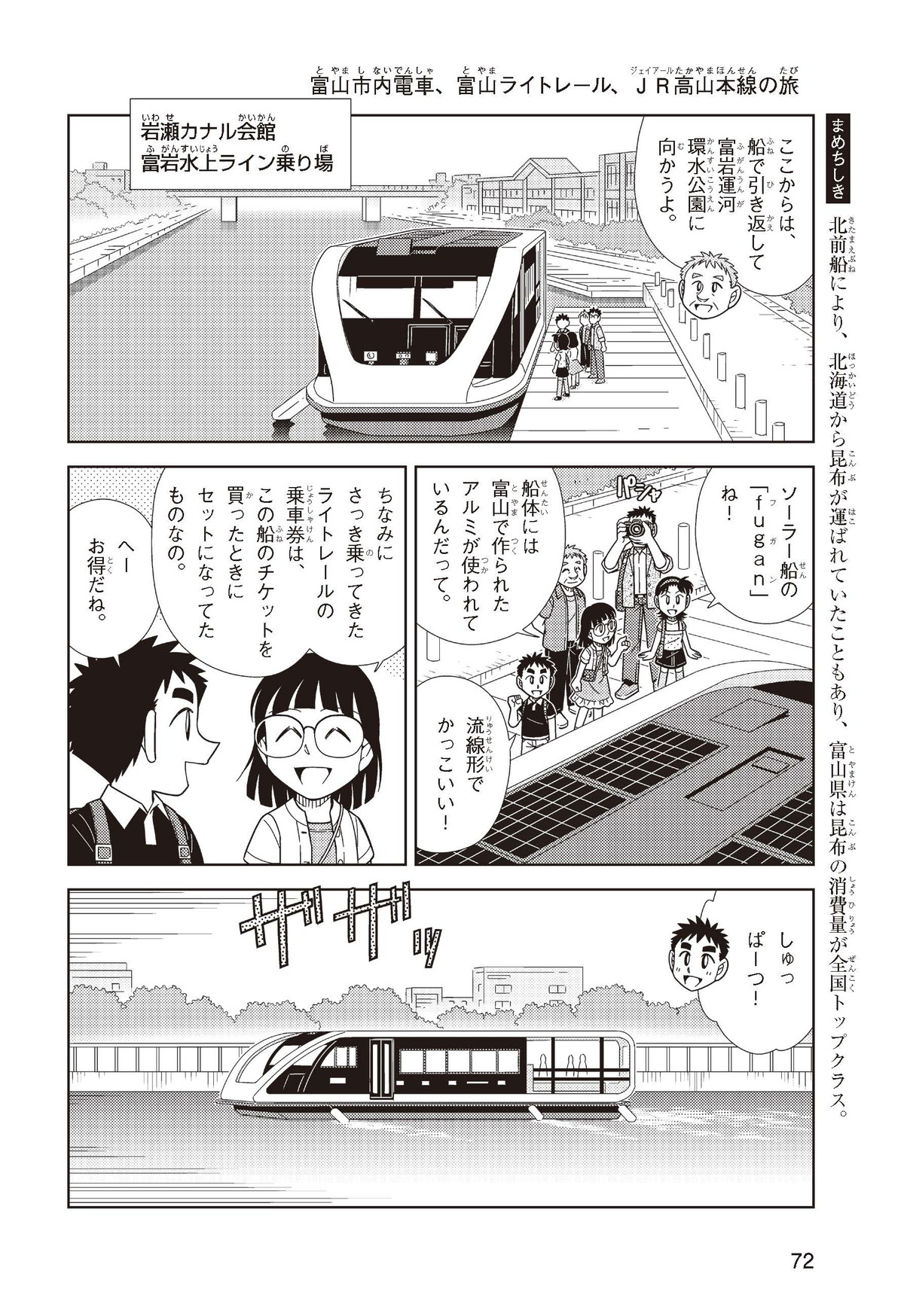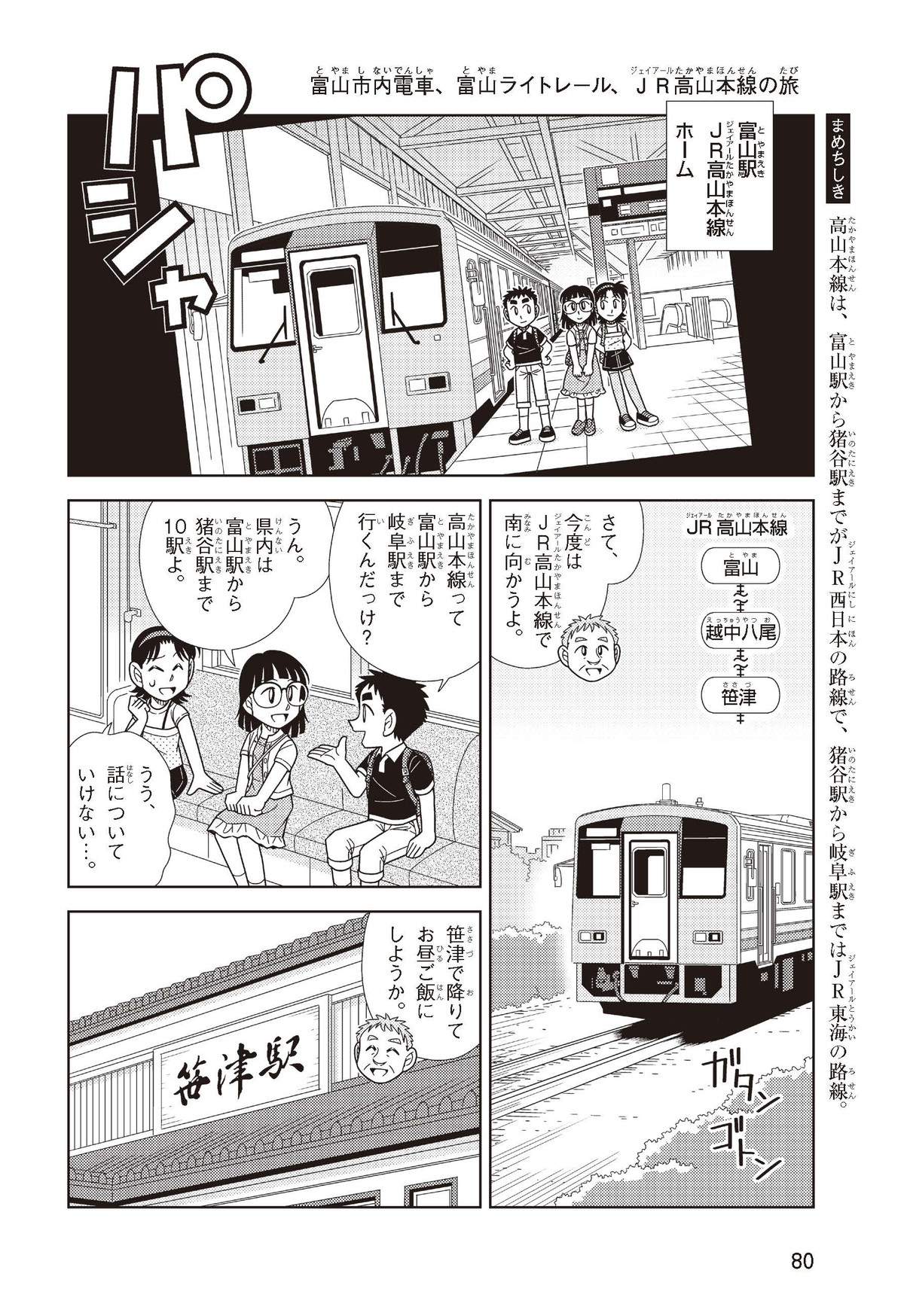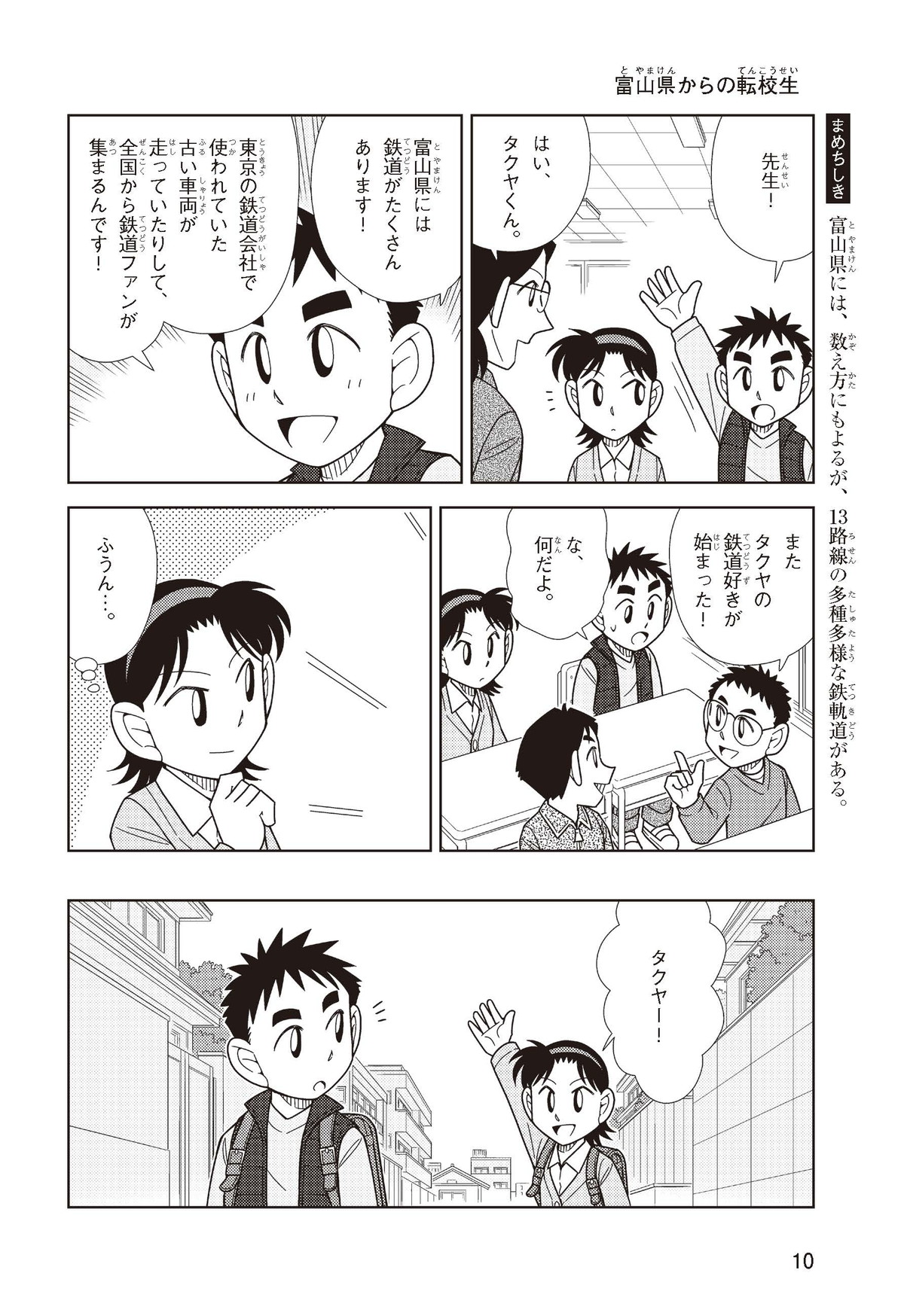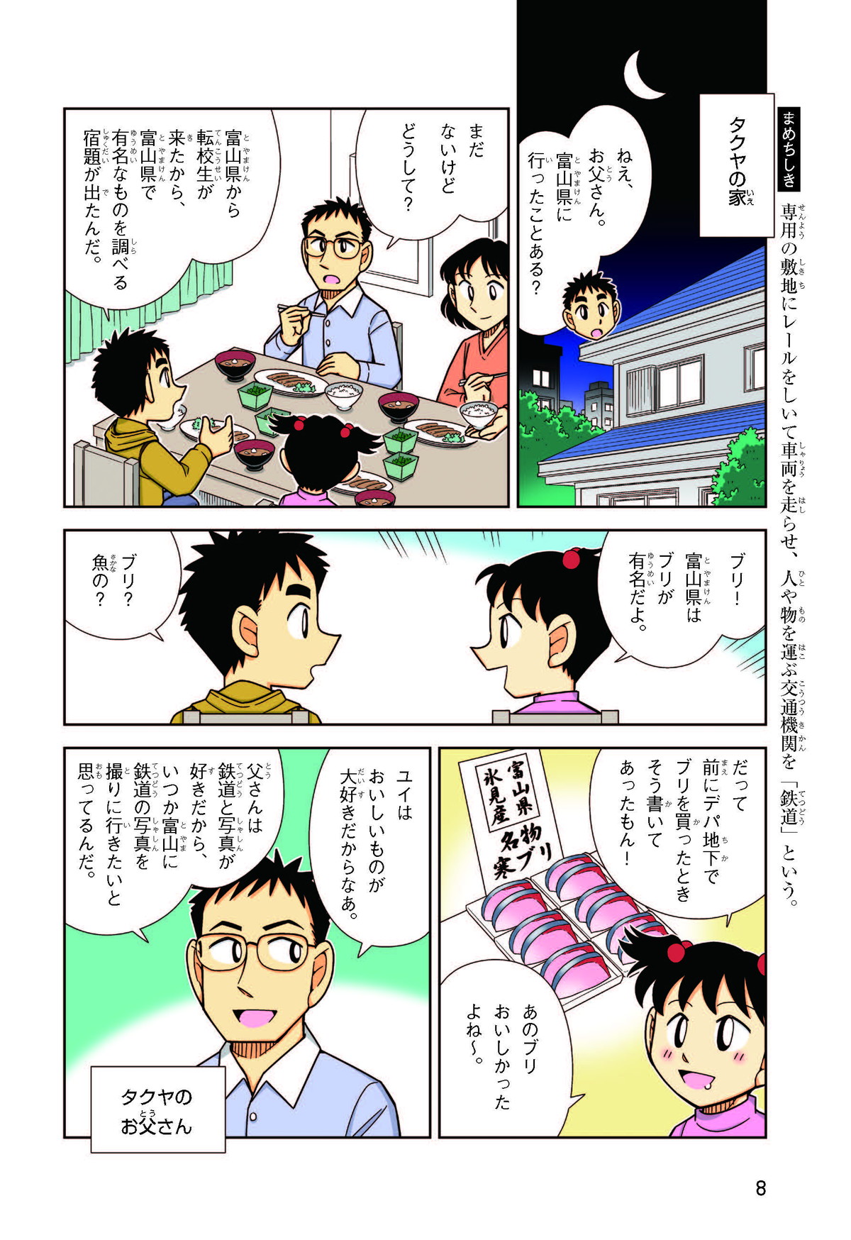 東京の小学校に通うタクヤは大の鉄道ファン。転校生アイリの出身地・富山県が“鉄軌道王国(てつきどうおうこく)”であると知って、「富山県鉄道乗りつくしの旅」に出ることに。タクヤとパパ、アイリとアイリのおじいちゃん、幼なじみのナナちゃんの5人は、豊かな自然を体験したり、富山湾の海の幸を食べたり、富山県の魅力(みりょく)を発見していくよ!