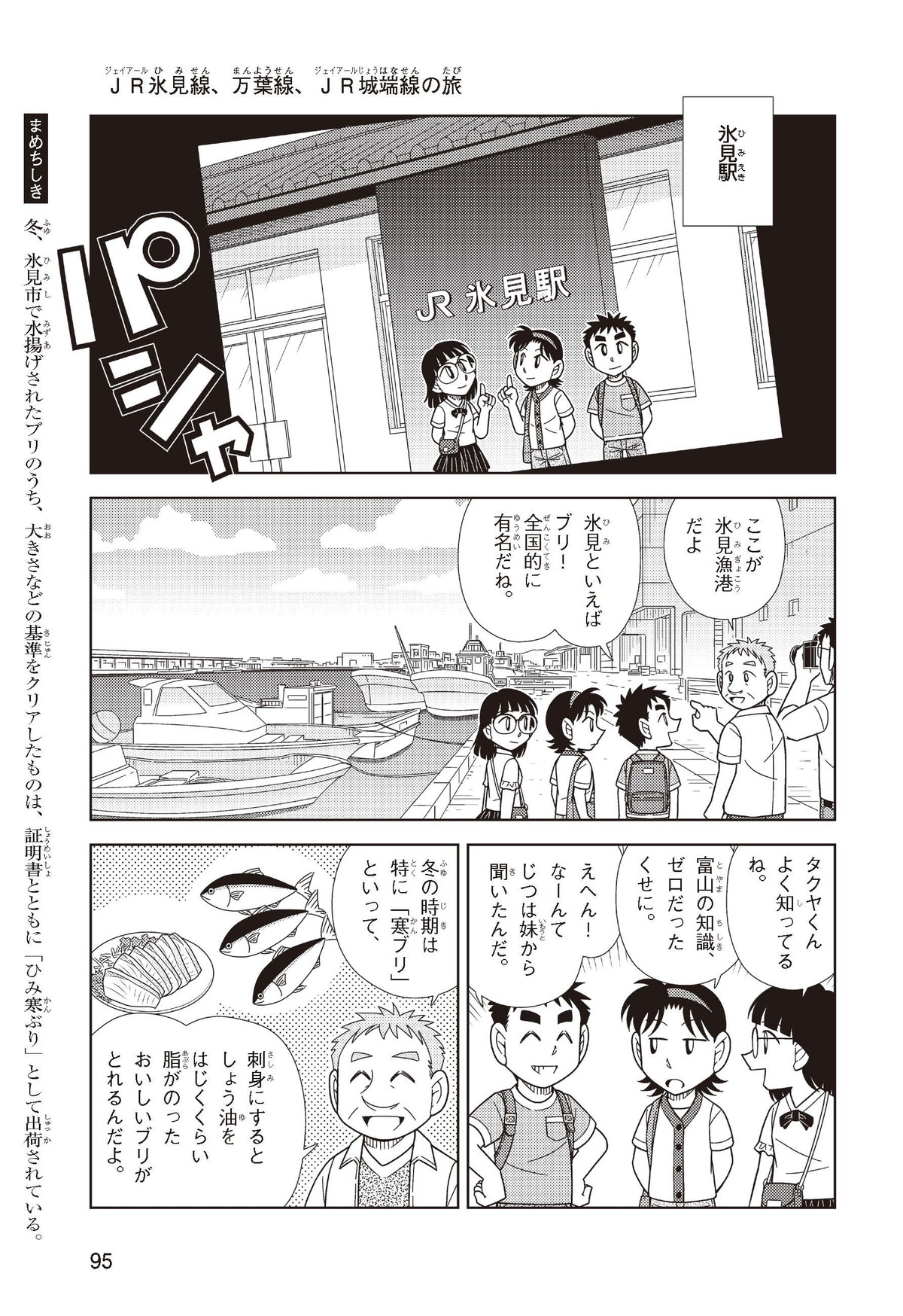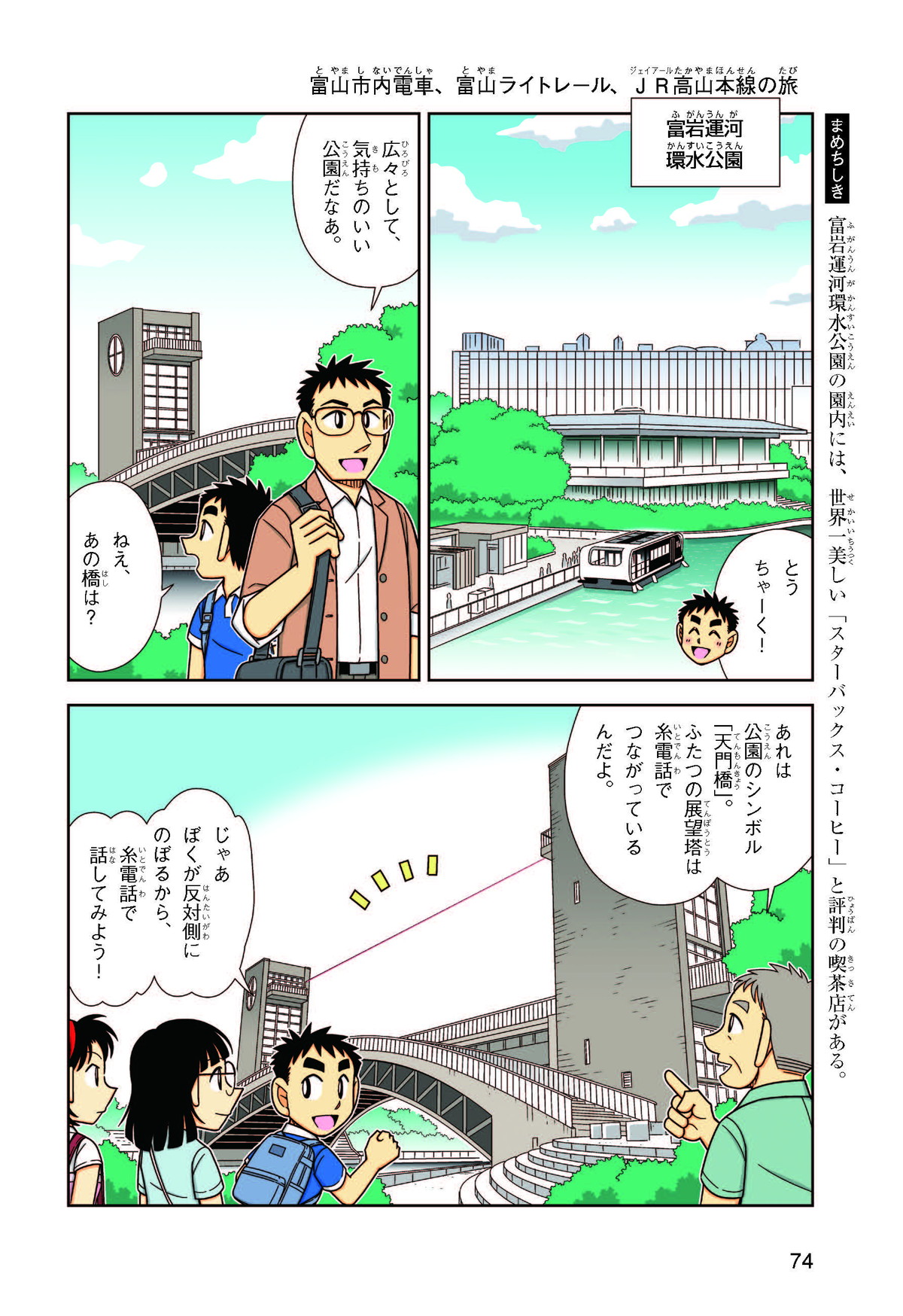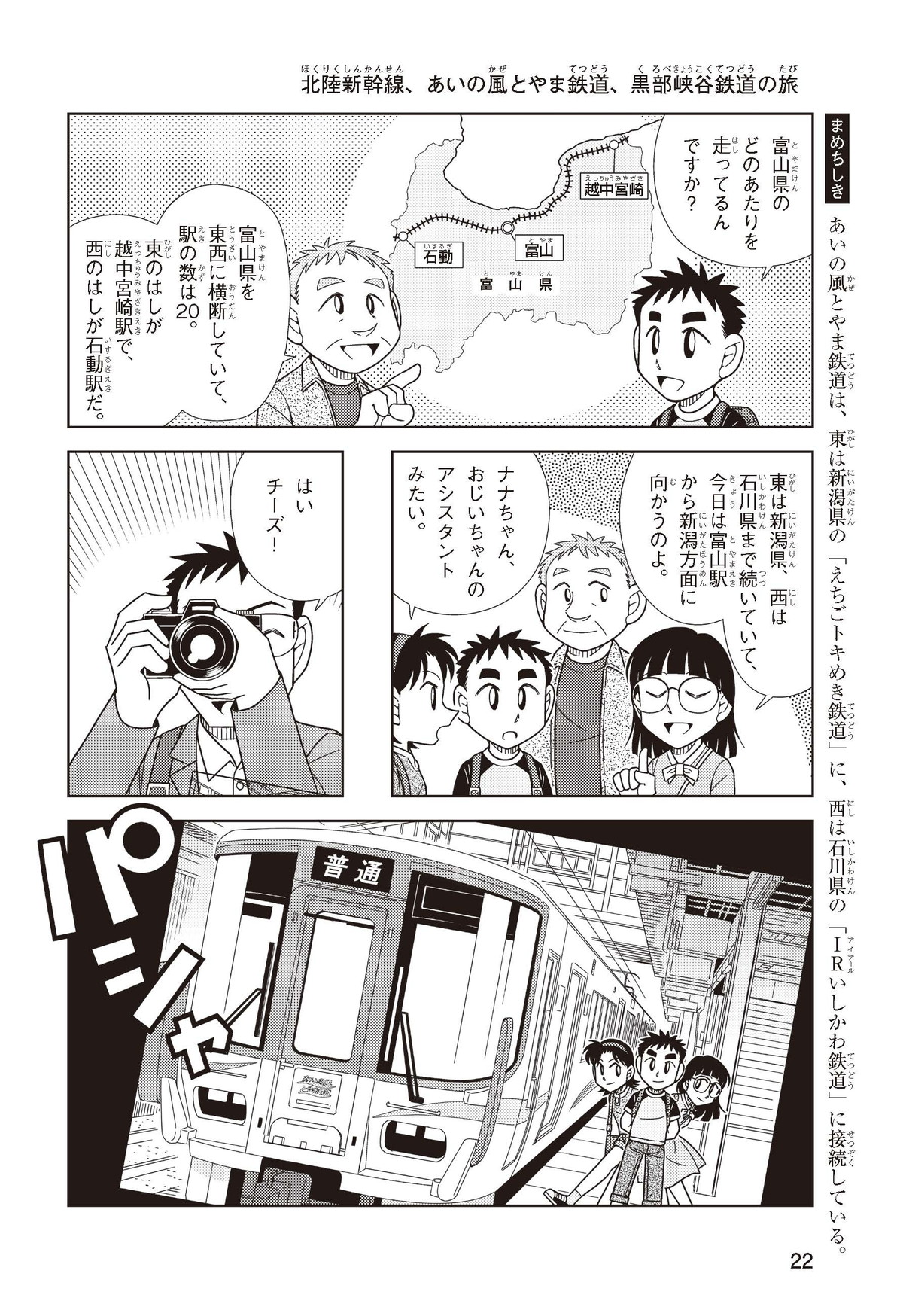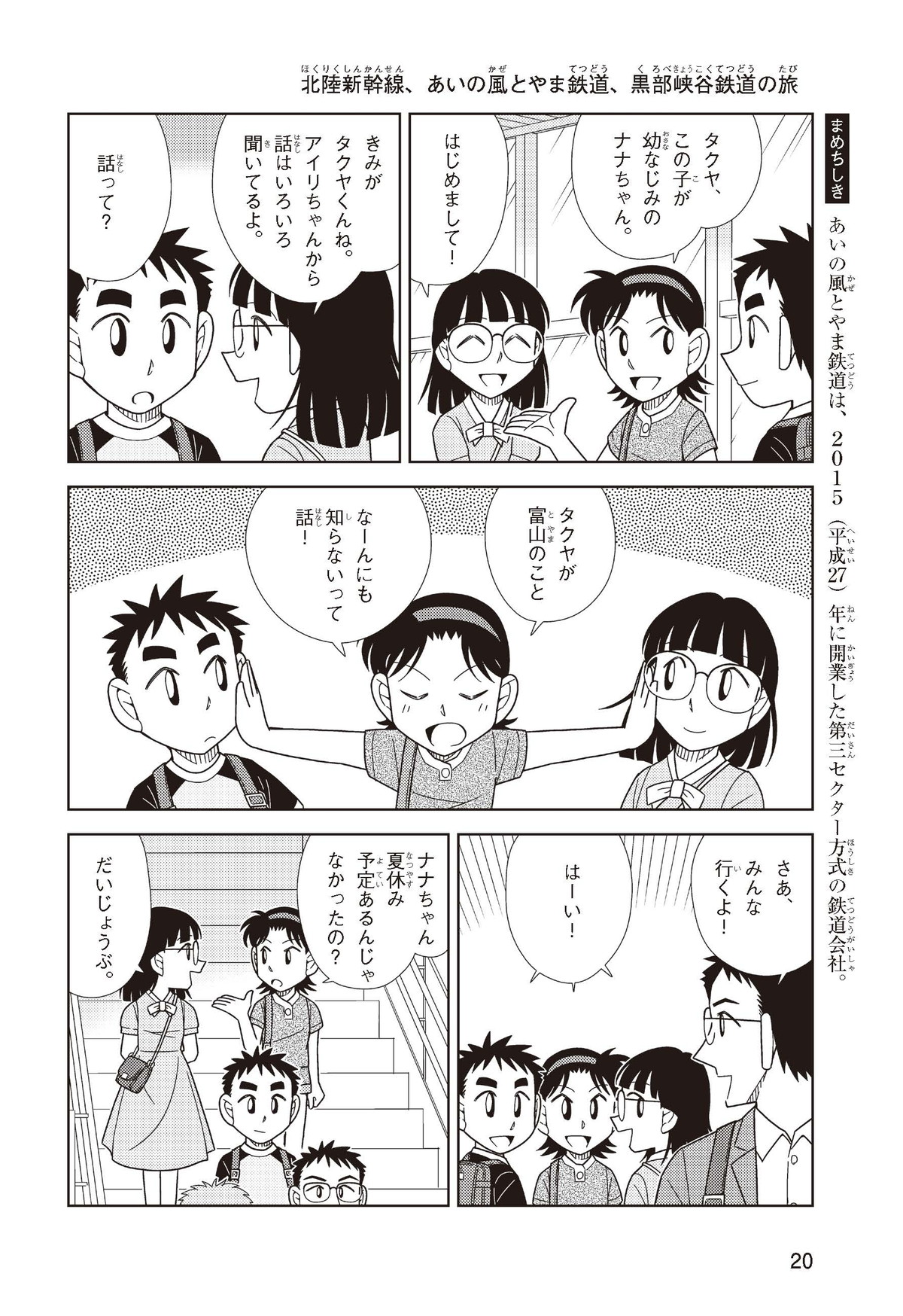 東京の小学校に通うタクヤは大の鉄道ファン。転校生アイリの出身地・富山県が“鉄軌道王国(てつきどうおうこく)”であると知って、「富山県鉄道乗りつくしの旅」に出ることに。タクヤとパパ、アイリとアイリのおじいちゃん、幼なじみのナナちゃんの5人は、豊かな自然を体験したり、富山湾の海の幸を食べたり、富山県の魅力(みりょく)を発見していくよ!
