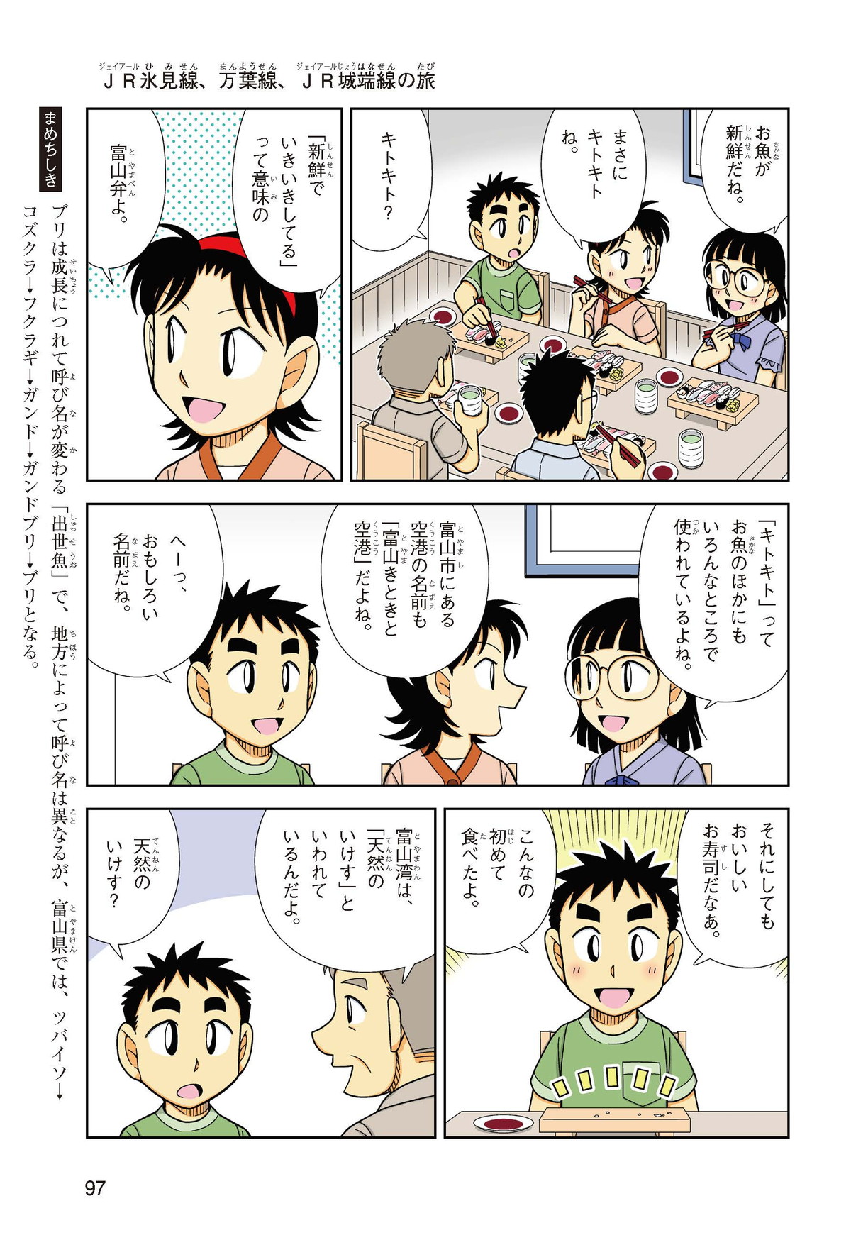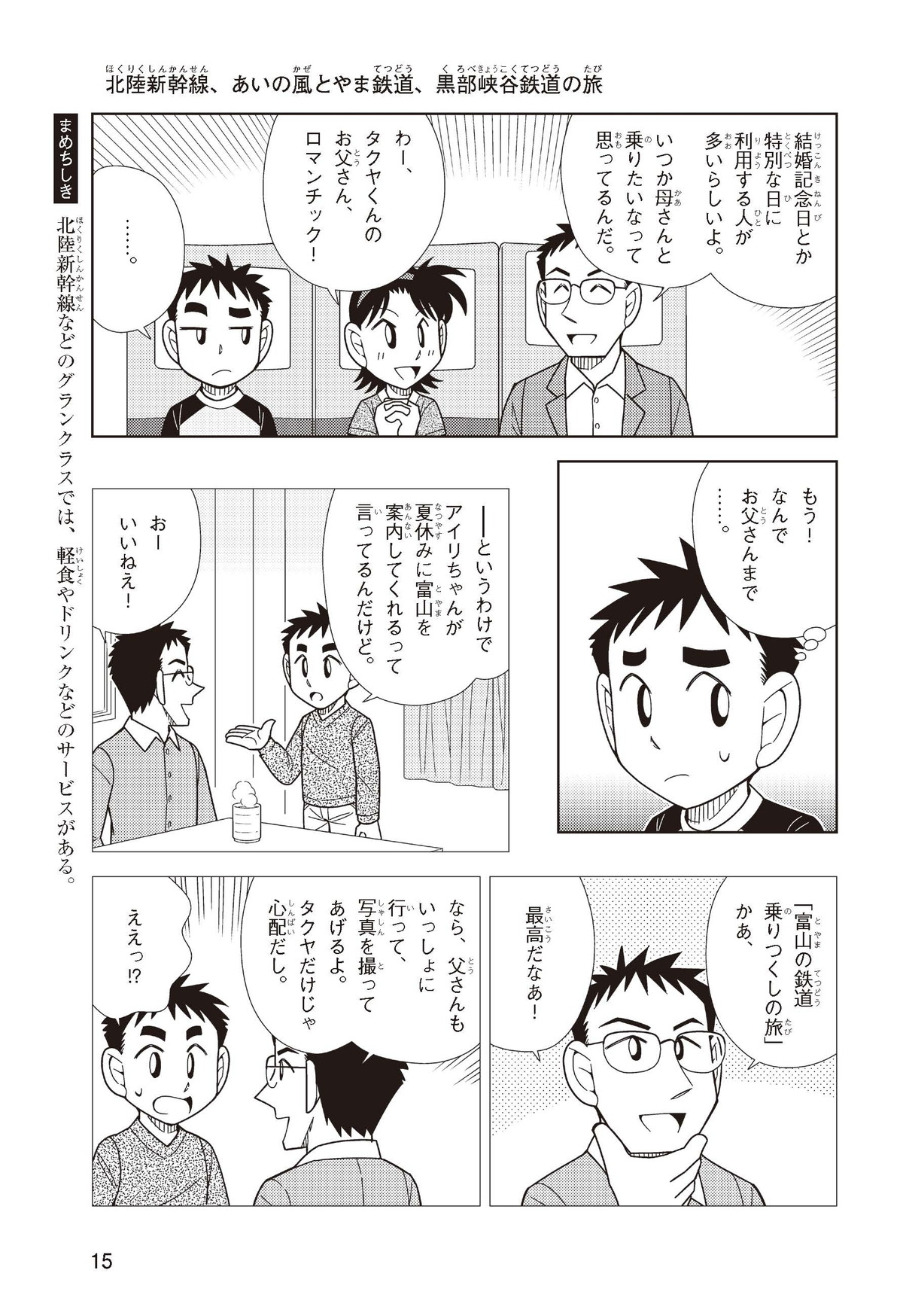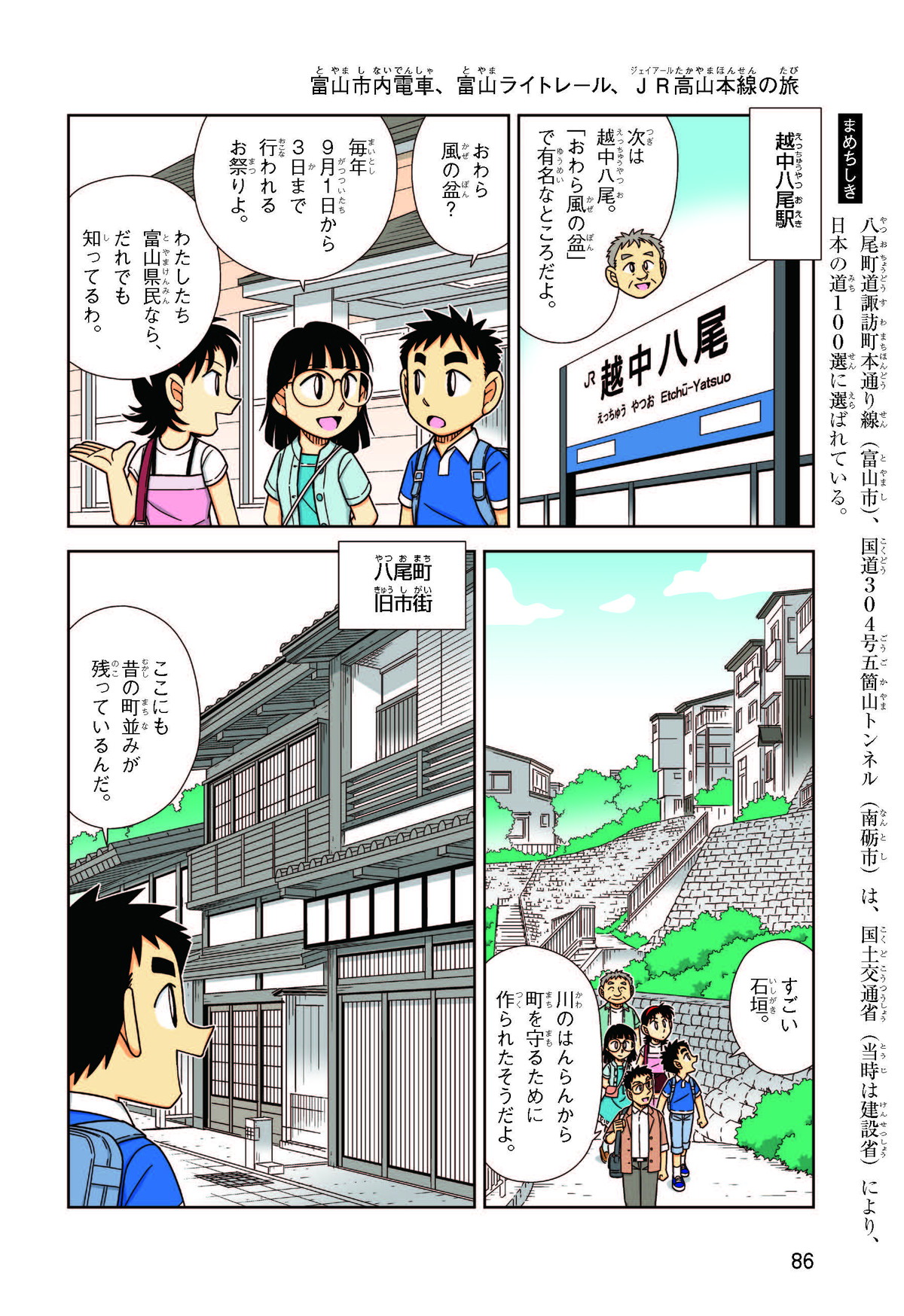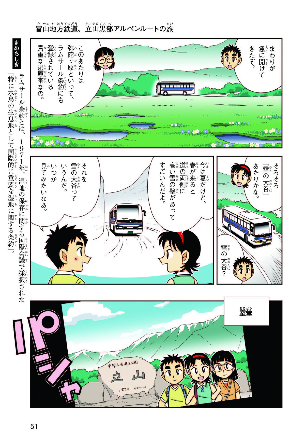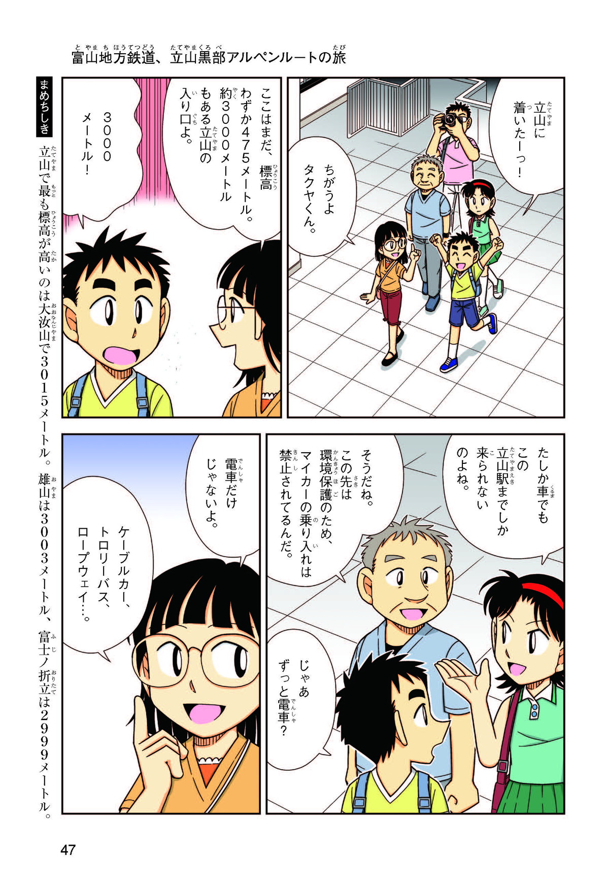 東京の小学校に通うタクヤは大の鉄道ファン。転校生アイリの出身地・富山県が“鉄軌道王国(てつきどうおうこく)”であると知って、「富山県鉄道乗りつくしの旅」に出ることに。タクヤとパパ、アイリとアイリのおじいちゃん、幼なじみのナナちゃんの5人は、豊かな自然を体験したり、富山湾の海の幸を食べたり、富山県の魅力(みりょく)を発見していくよ!