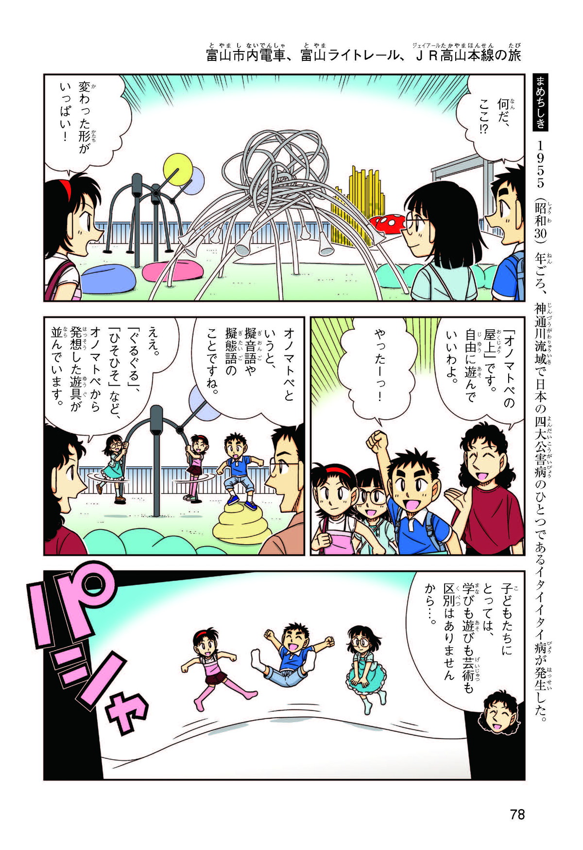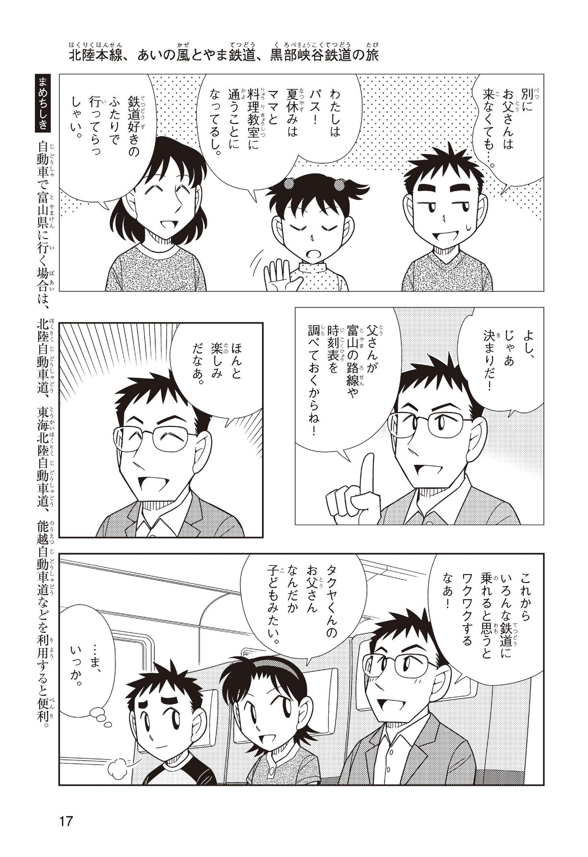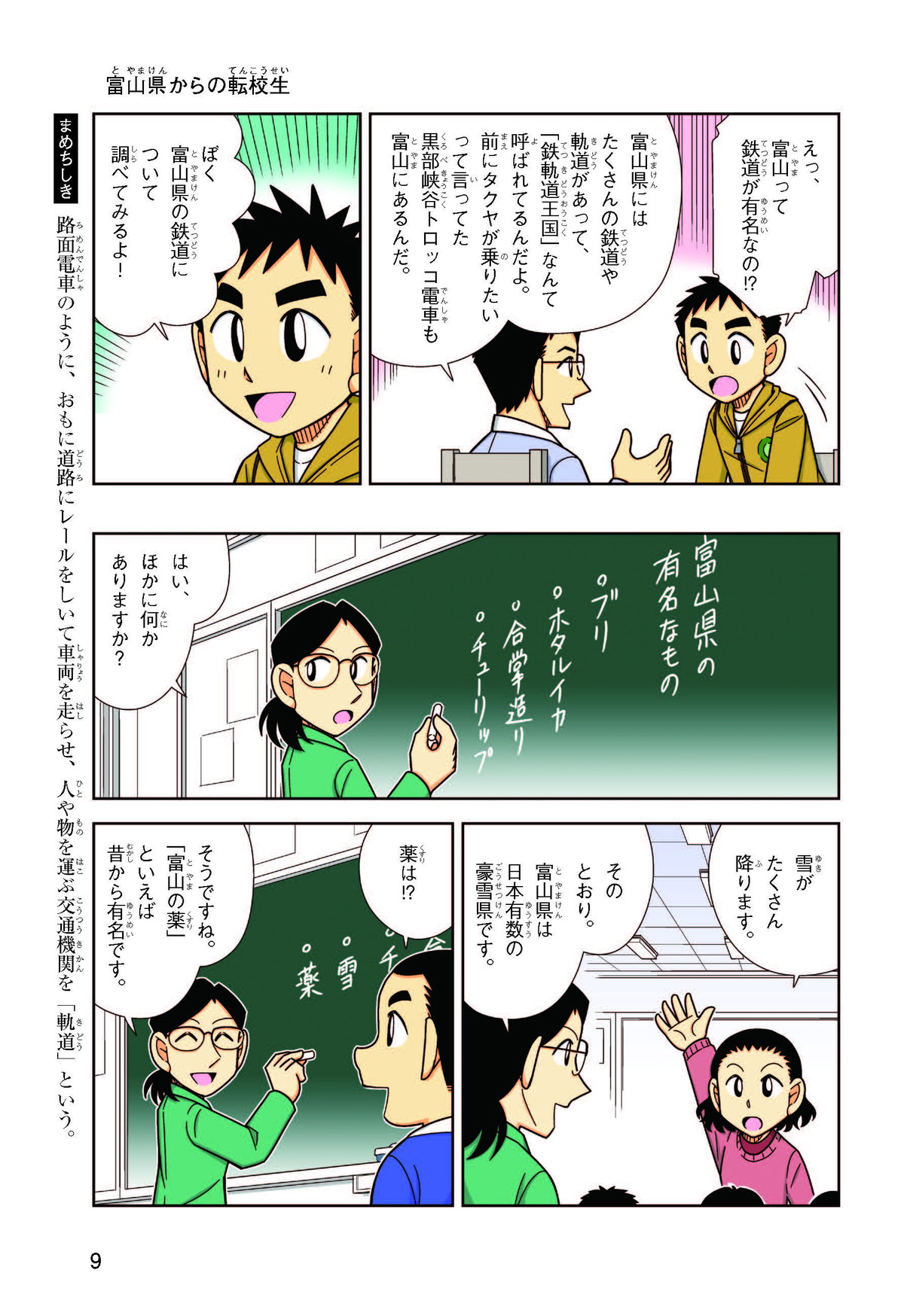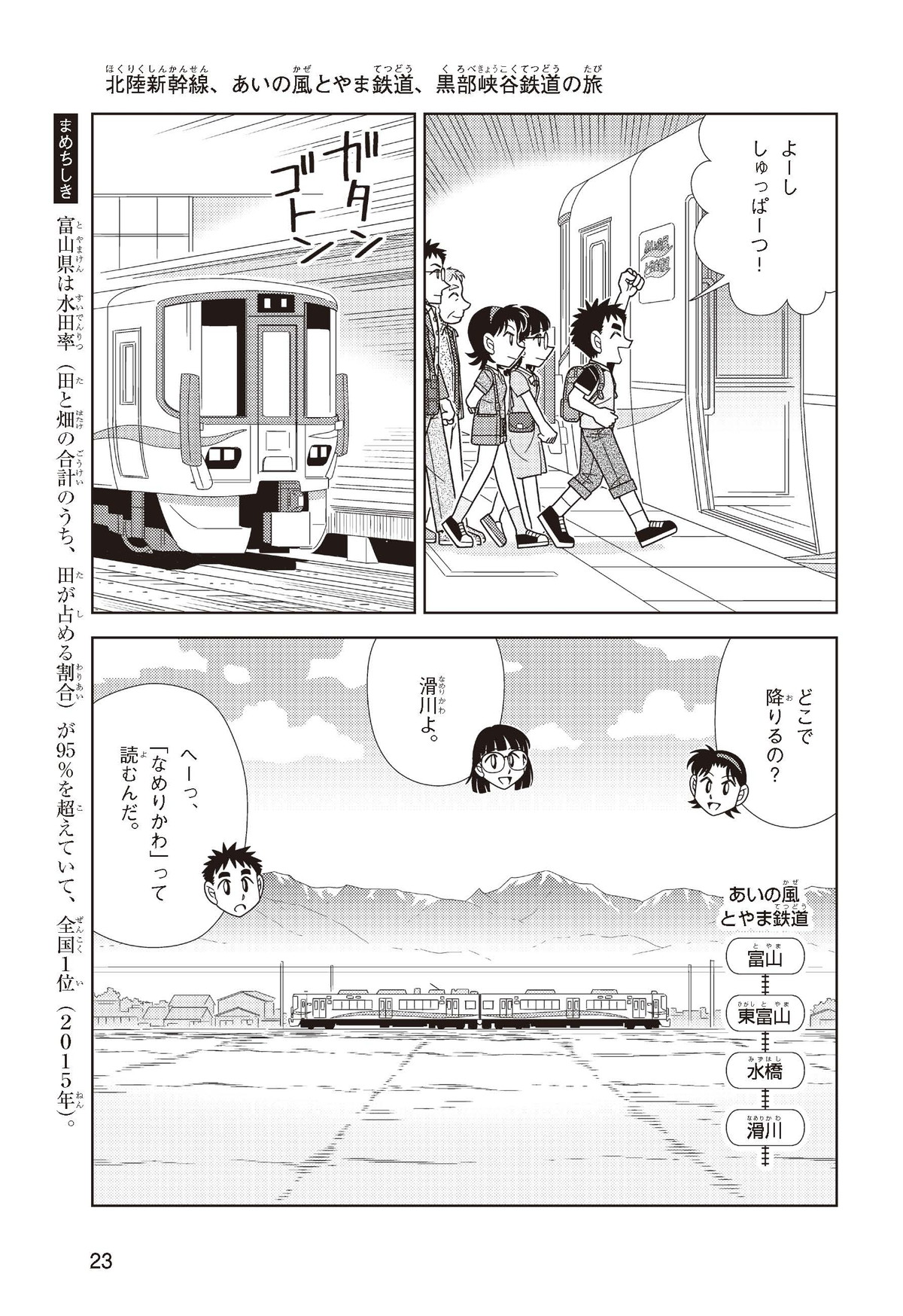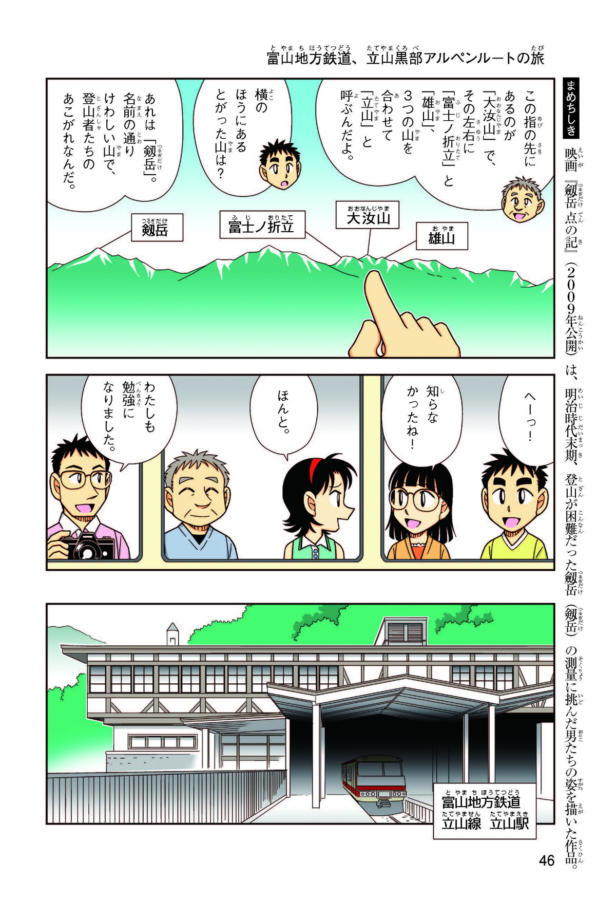 東京の小学校に通うタクヤは大の鉄道ファン。転校生アイリの出身地・富山県が“鉄軌道王国(てつきどうおうこく)”であると知って、「富山県鉄道乗りつくしの旅」に出ることに。タクヤとパパ、アイリとアイリのおじいちゃん、幼なじみのナナちゃんの5人は、豊かな自然を体験したり、富山湾の海の幸を食べたり、富山県の魅力(みりょく)を発見していくよ!