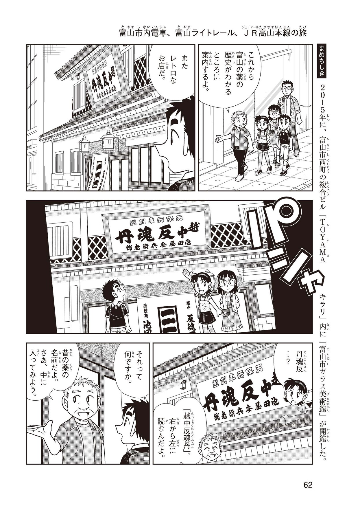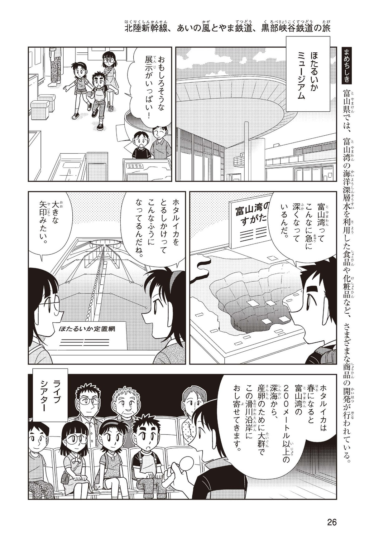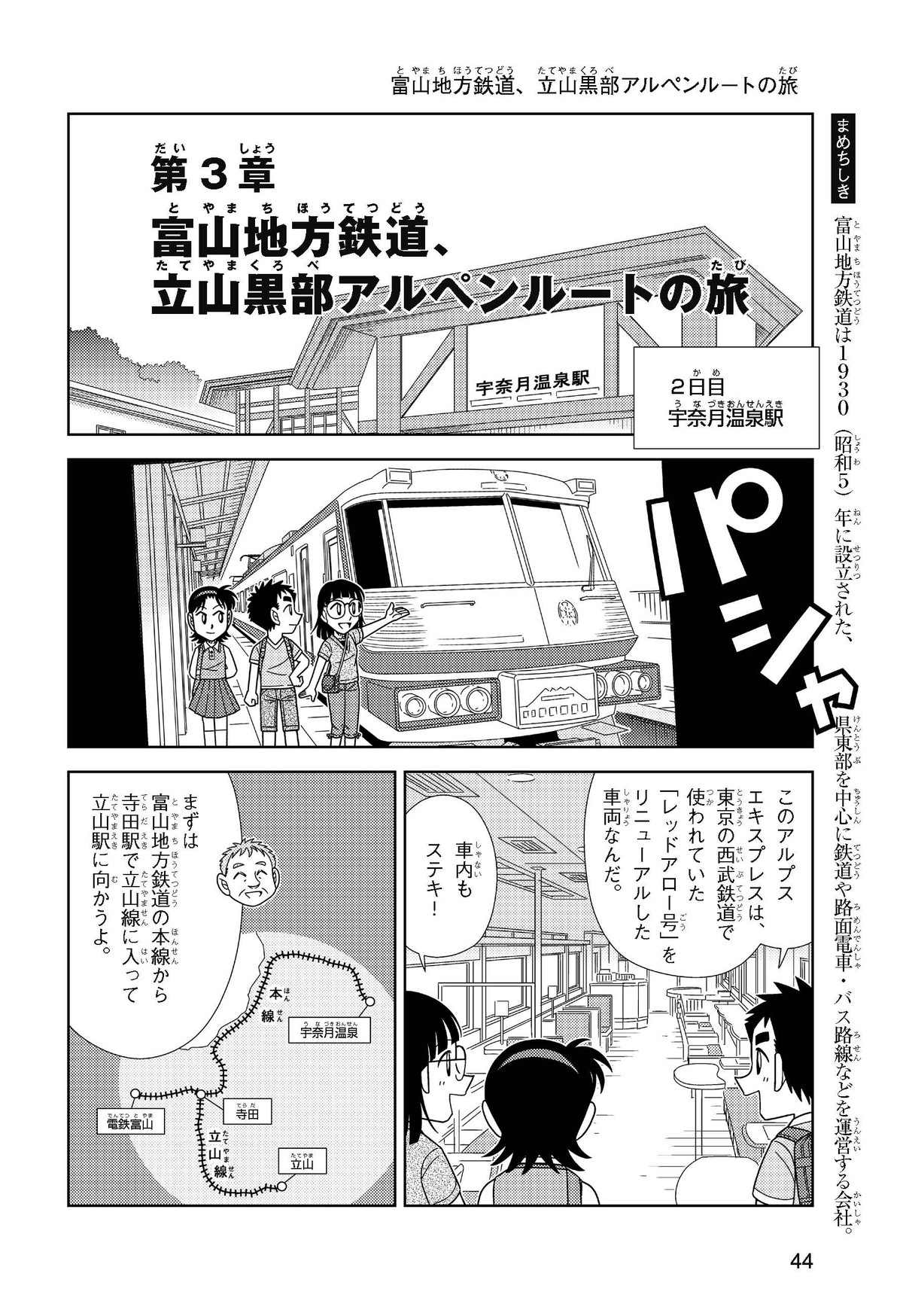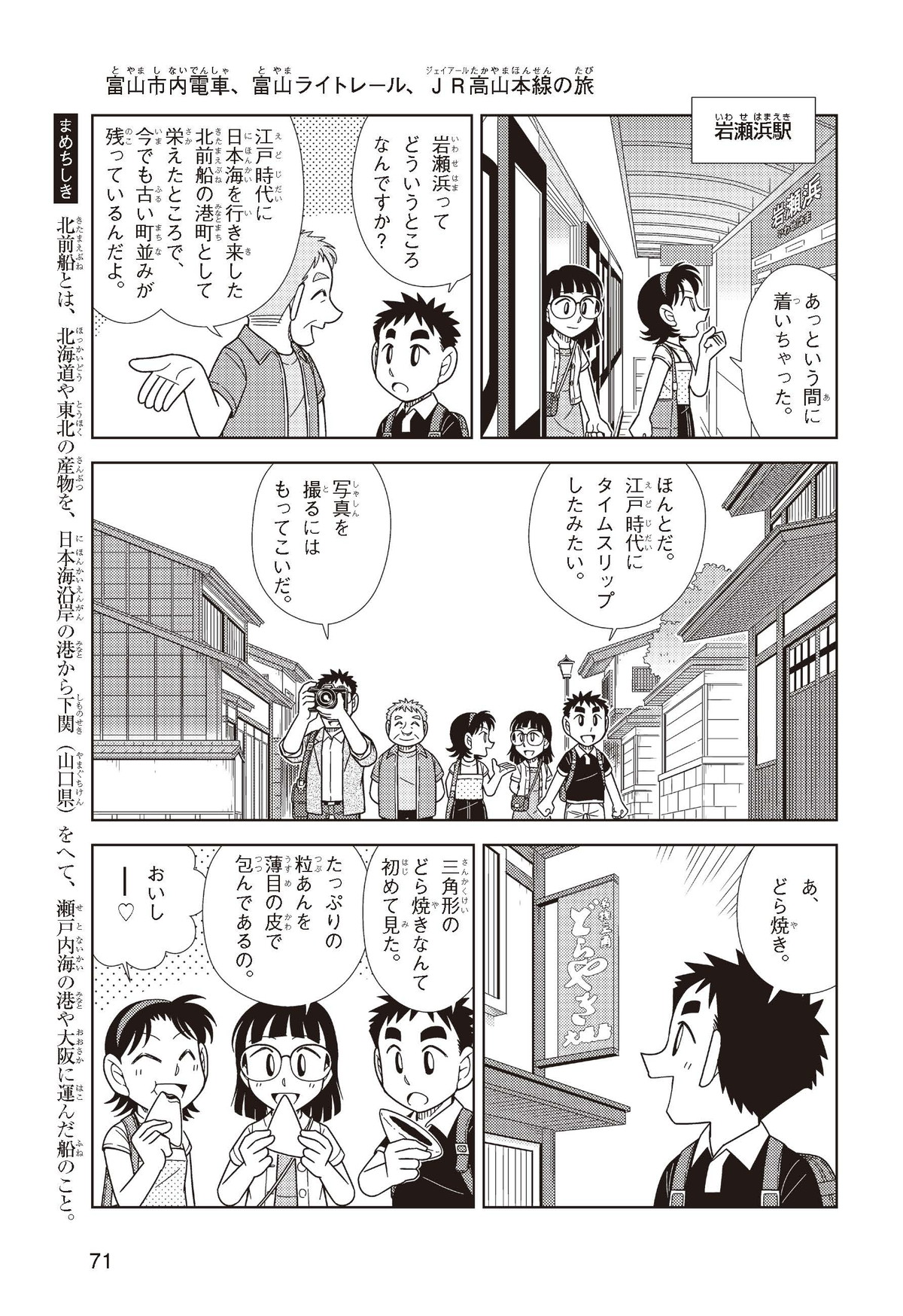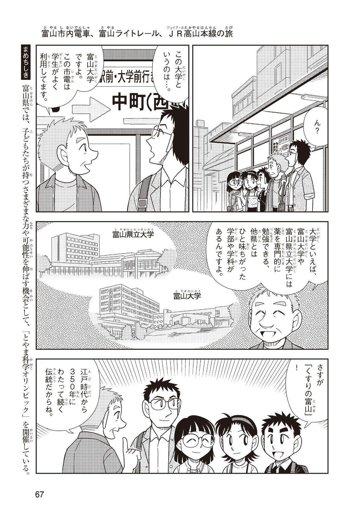 東京の小学校に通うタクヤは大の鉄道ファン。転校生アイリの出身地・富山県が“鉄軌道王国(てつきどうおうこく)”であると知って、「富山県鉄道乗りつくしの旅」に出ることに。タクヤとパパ、アイリとアイリのおじいちゃん、幼なじみのナナちゃんの5人は、豊かな自然を体験したり、富山湾の海の幸を食べたり、富山県の魅力(みりょく)を発見していくよ!