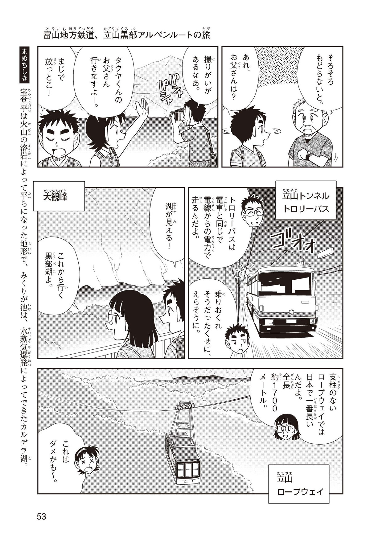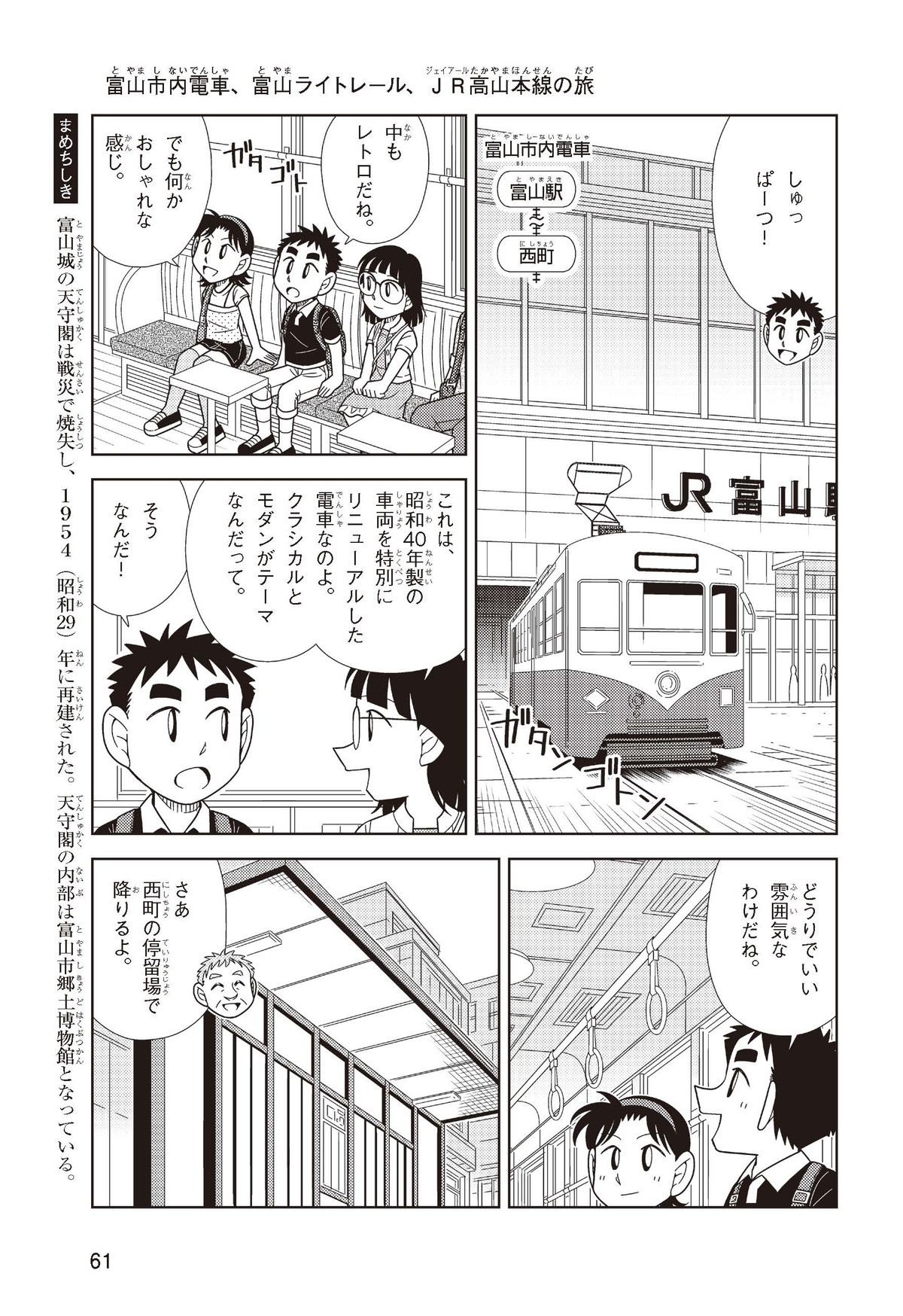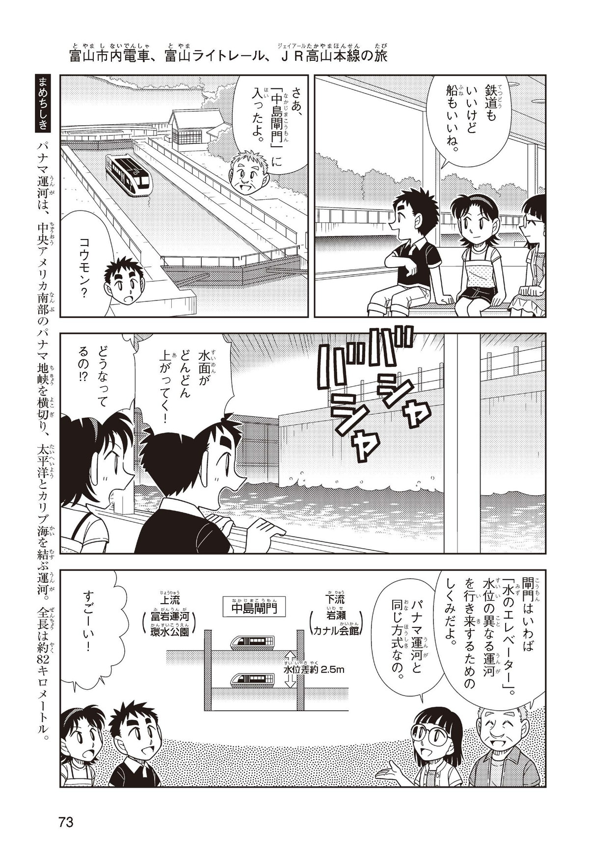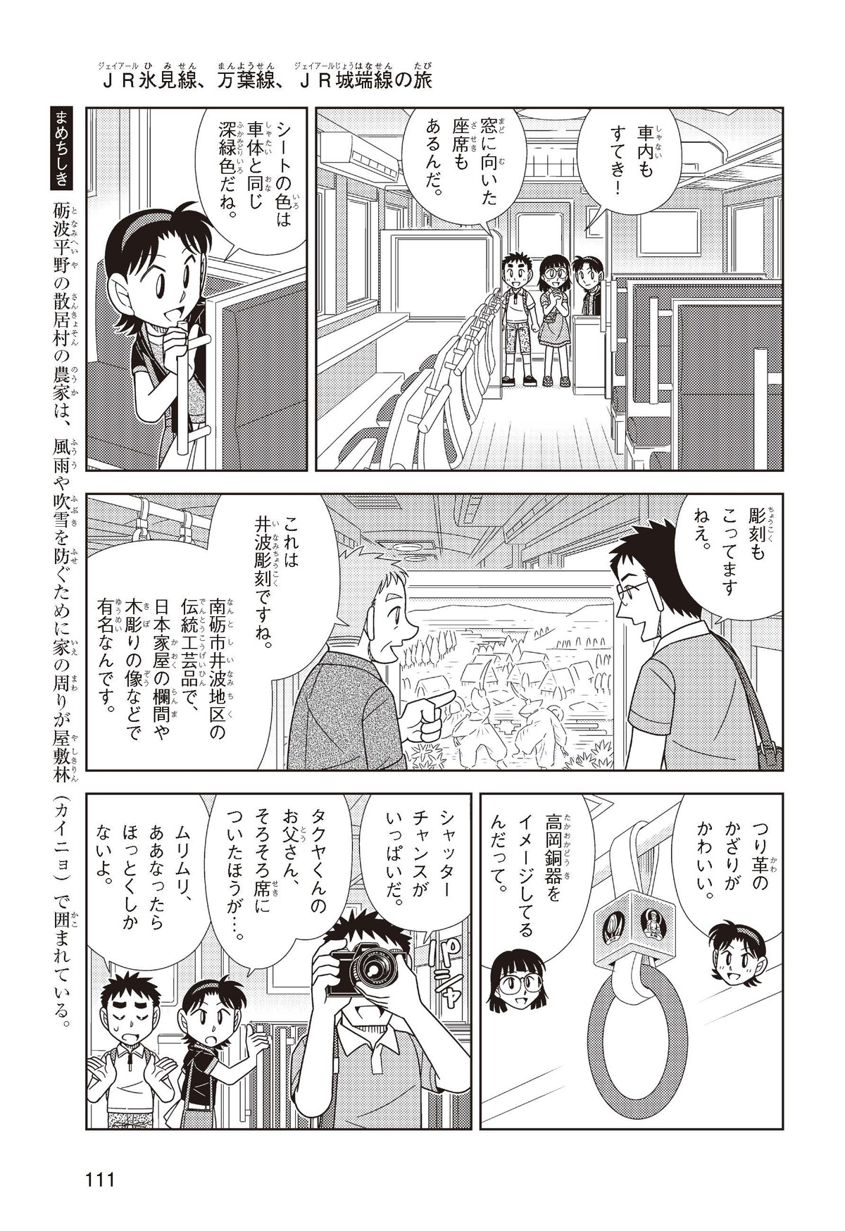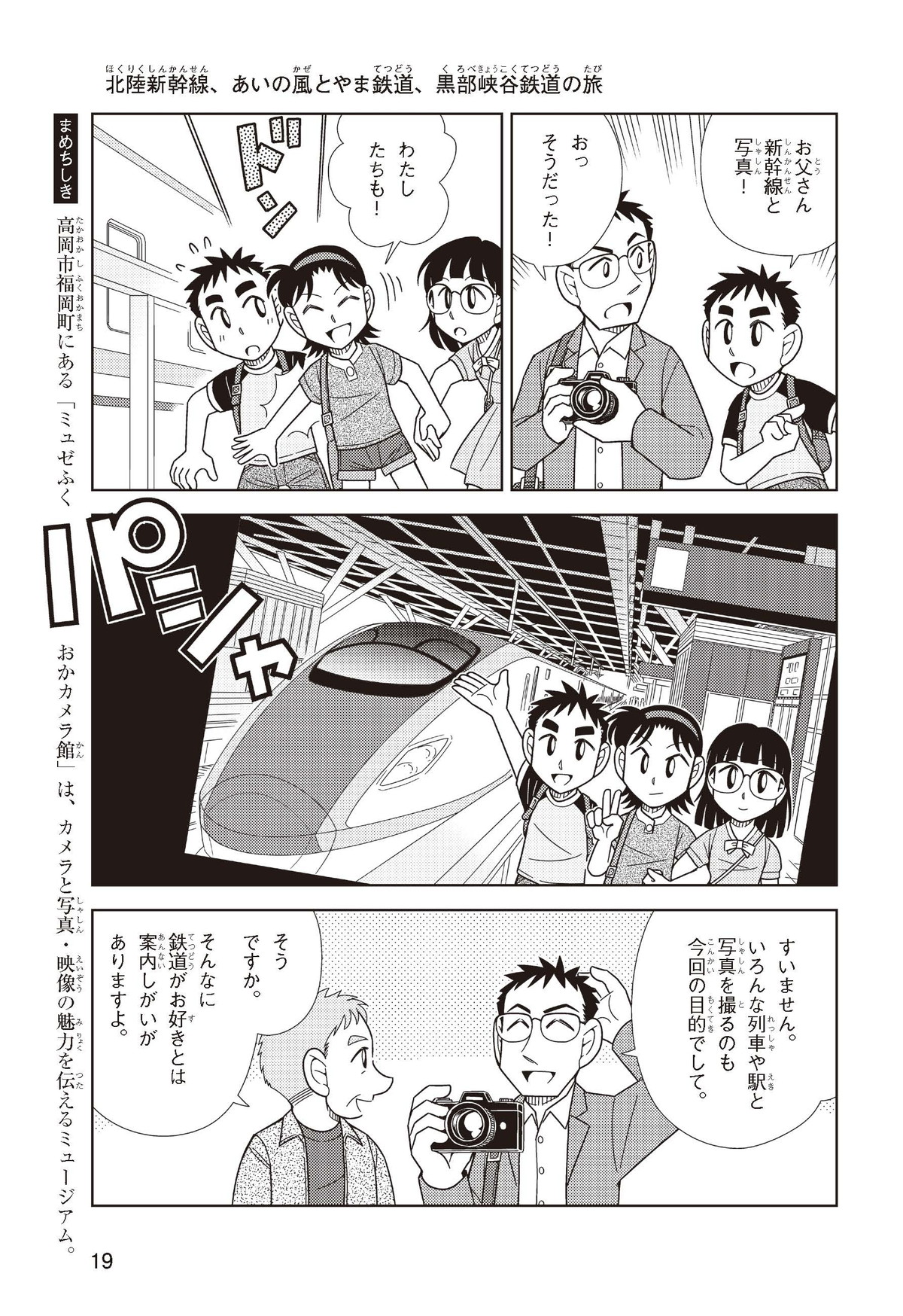 東京の小学校に通うタクヤは大の鉄道ファン。転校生アイリの出身地・富山県が“鉄軌道王国(てつきどうおうこく)”であると知って、「富山県鉄道乗りつくしの旅」に出ることに。タクヤとパパ、アイリとアイリのおじいちゃん、幼なじみのナナちゃんの5人は、豊かな自然を体験したり、富山湾の海の幸を食べたり、富山県の魅力(みりょく)を発見していくよ!