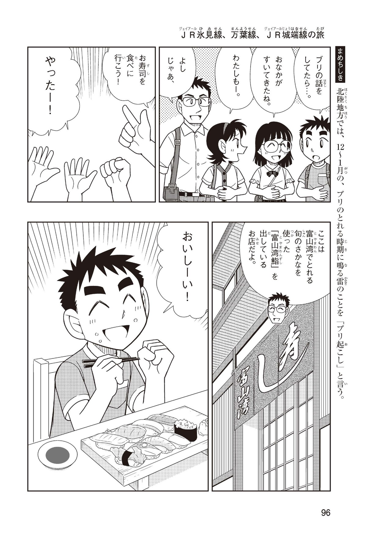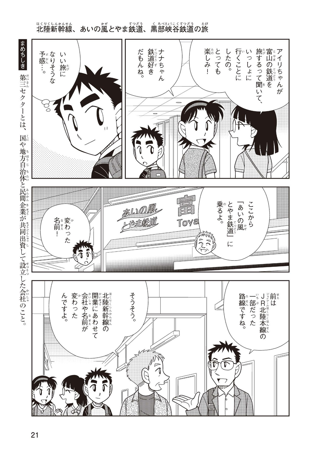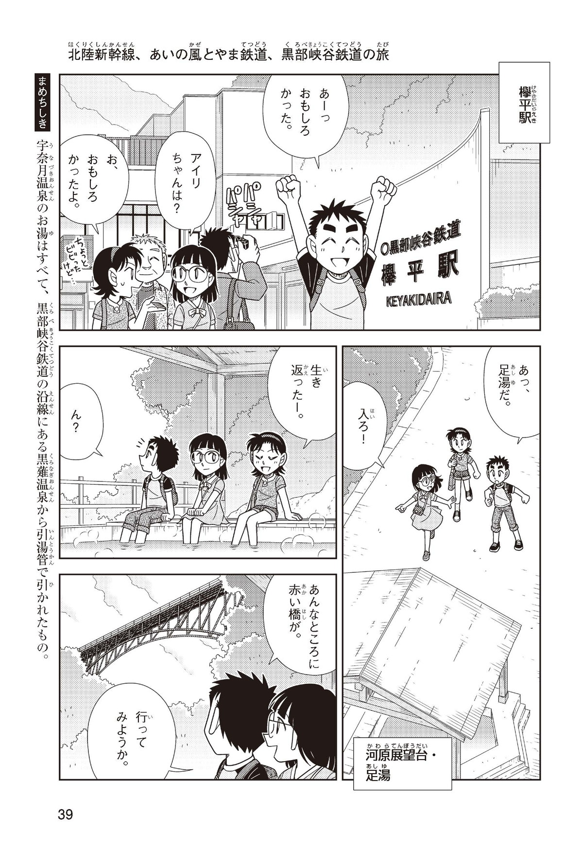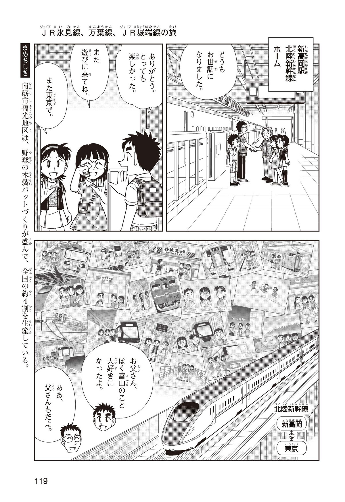 東京の小学校に通うタクヤは大の鉄道ファン。転校生アイリの出身地・富山県が“鉄軌道王国(てつきどうおうこく)”であると知って、「富山県鉄道乗りつくしの旅」に出ることに。タクヤとパパ、アイリとアイリのおじいちゃん、幼なじみのナナちゃんの5人は、豊かな自然を体験したり、富山湾の海の幸を食べたり、富山県の魅力(みりょく)を発見していくよ!