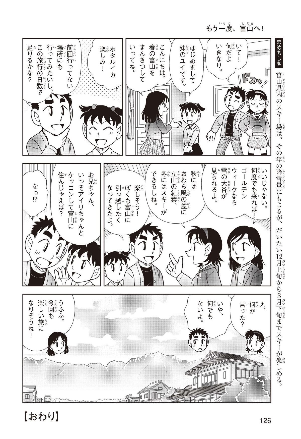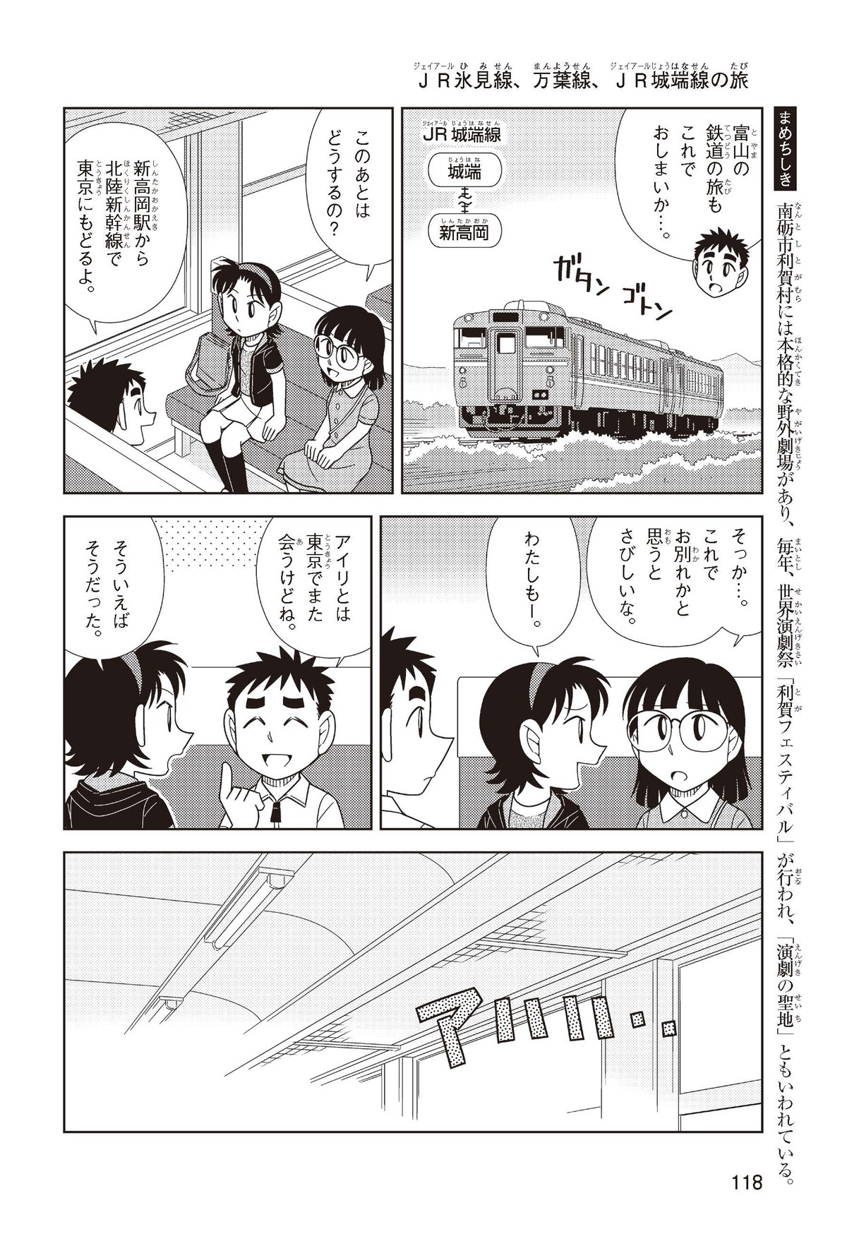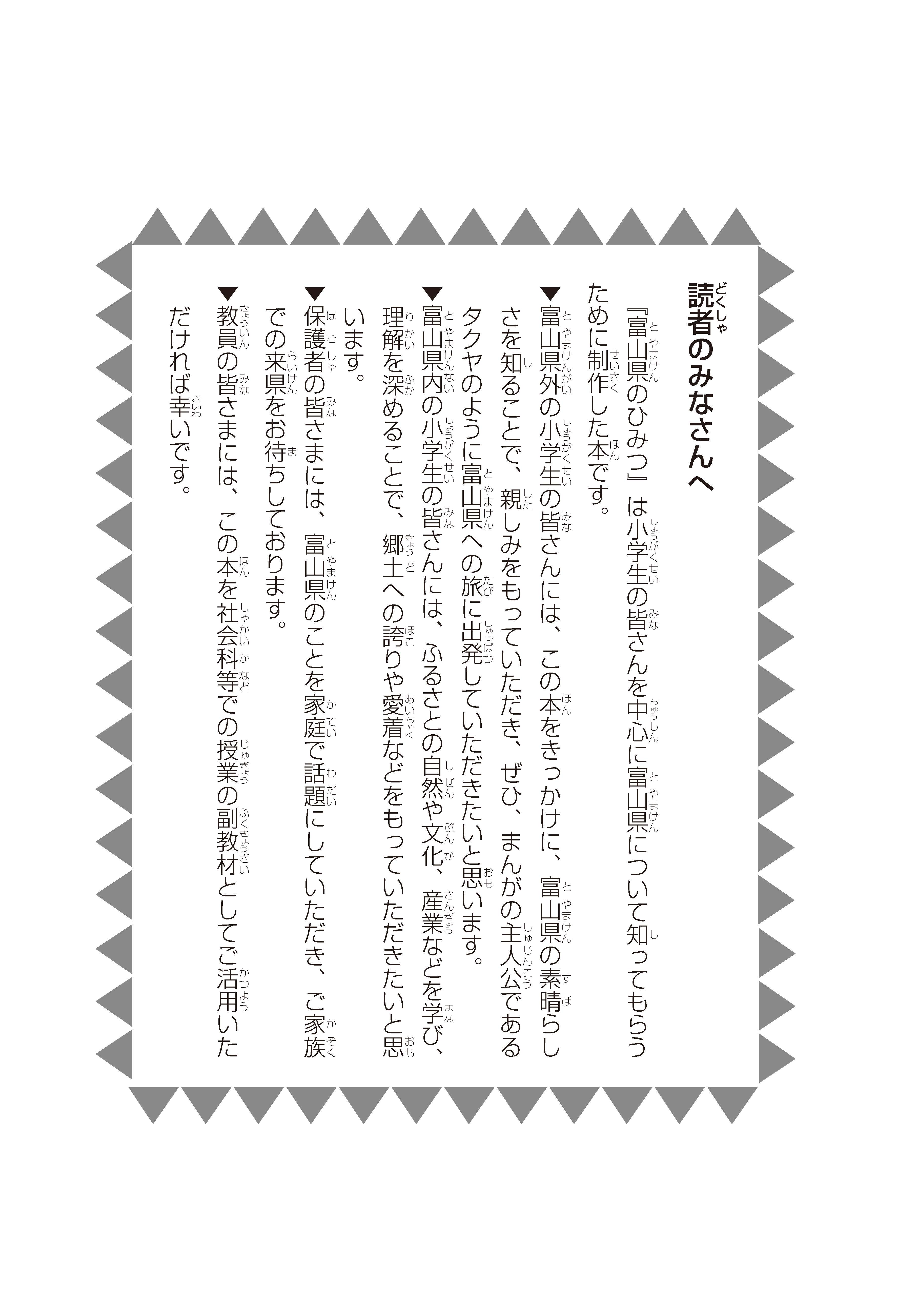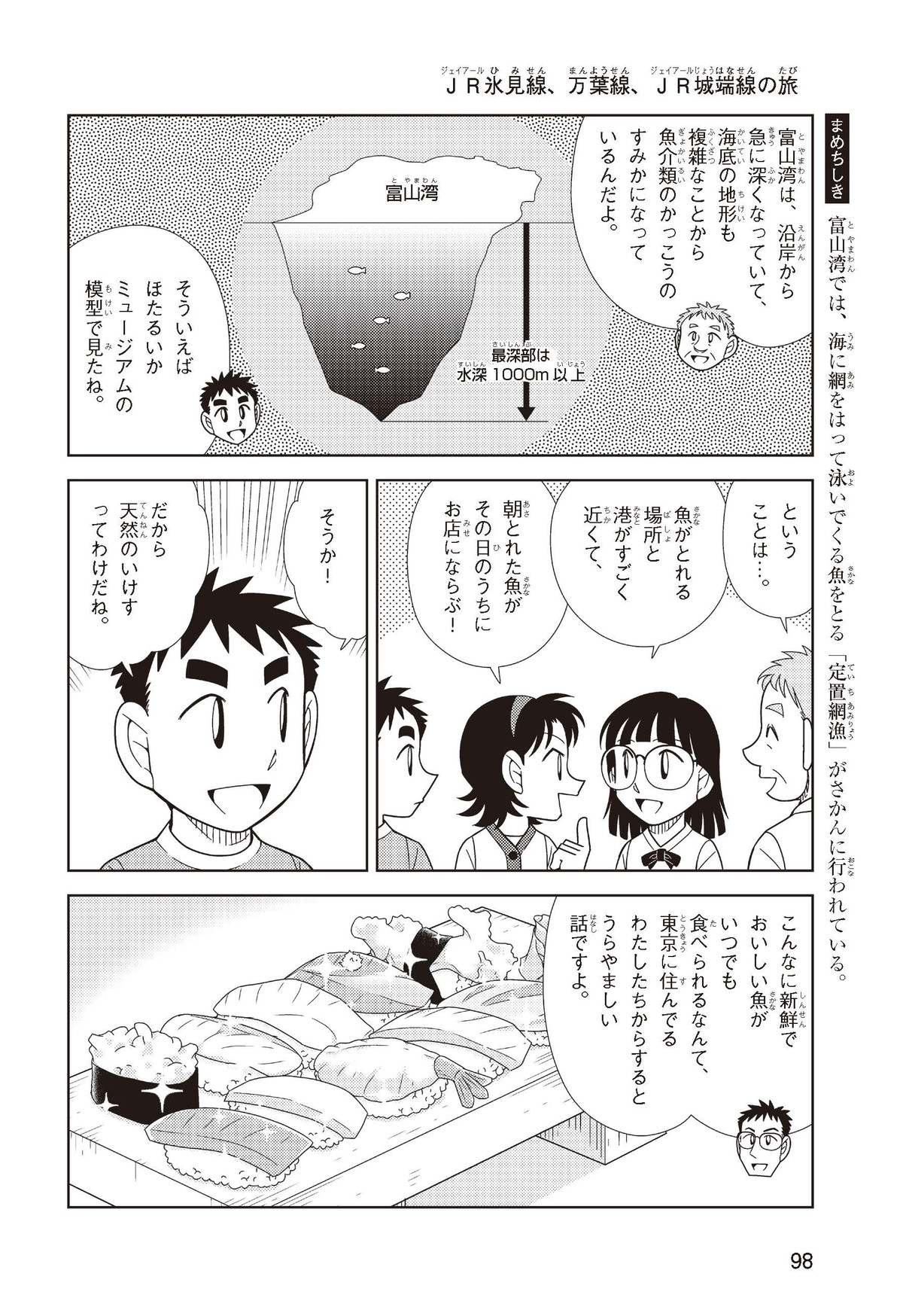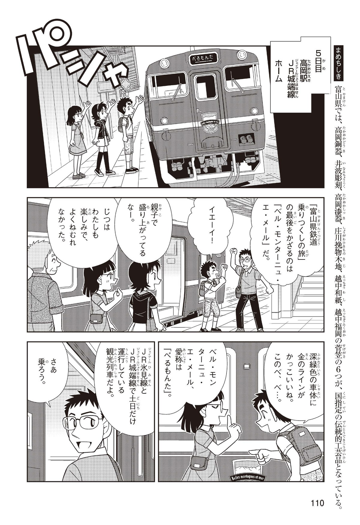 東京の小学校に通うタクヤは大の鉄道ファン。転校生アイリの出身地・富山県が“鉄軌道王国(てつきどうおうこく)”であると知って、「富山県鉄道乗りつくしの旅」に出ることに。タクヤとパパ、アイリとアイリのおじいちゃん、幼なじみのナナちゃんの5人は、豊かな自然を体験したり、富山湾の海の幸を食べたり、富山県の魅力(みりょく)を発見していくよ!