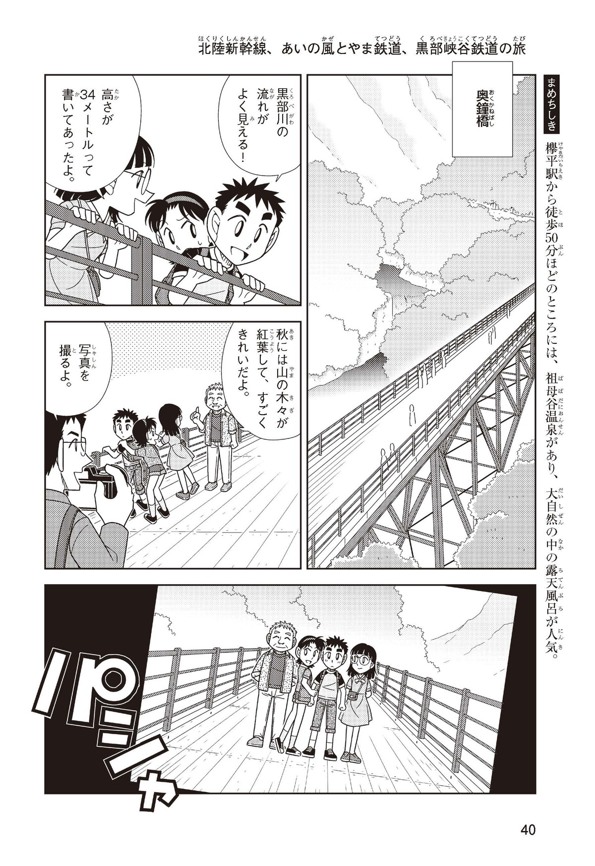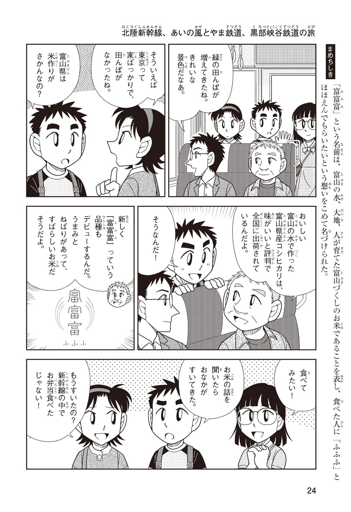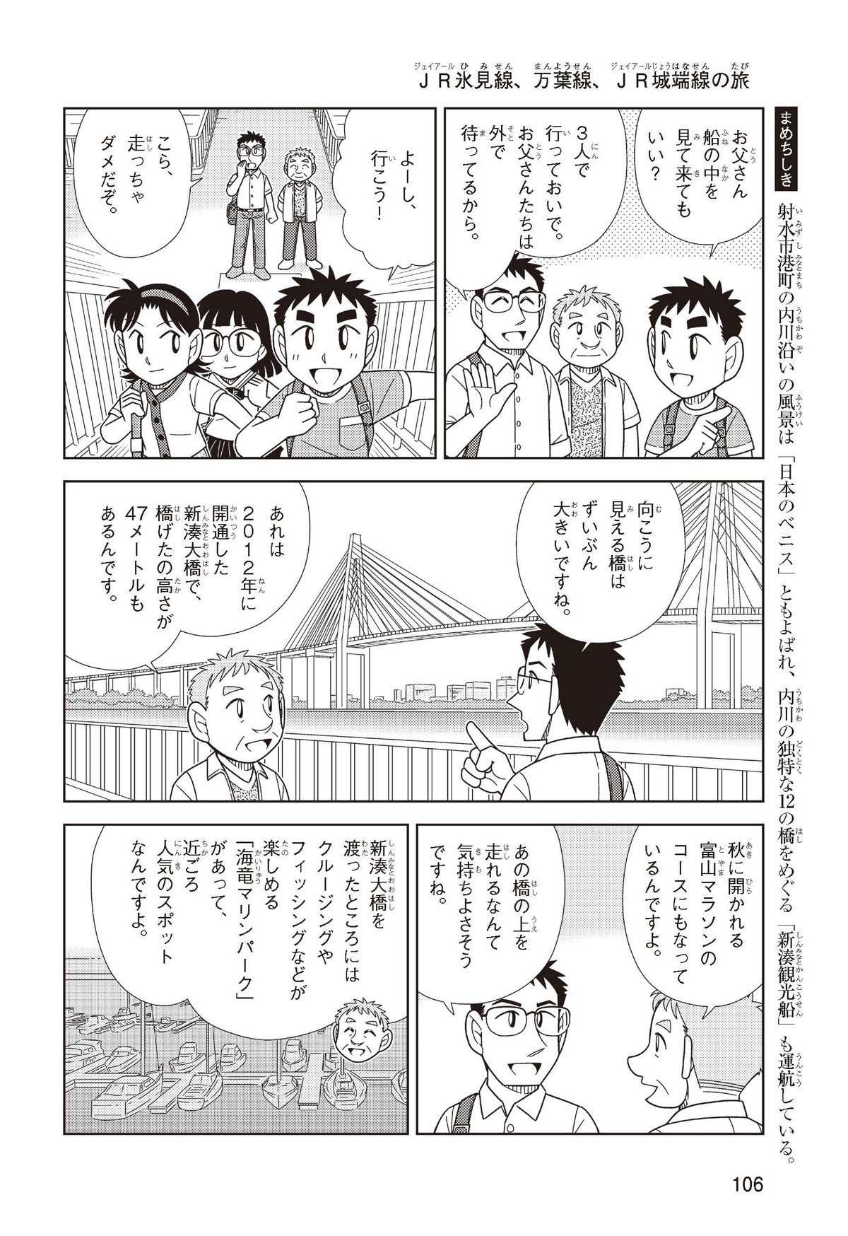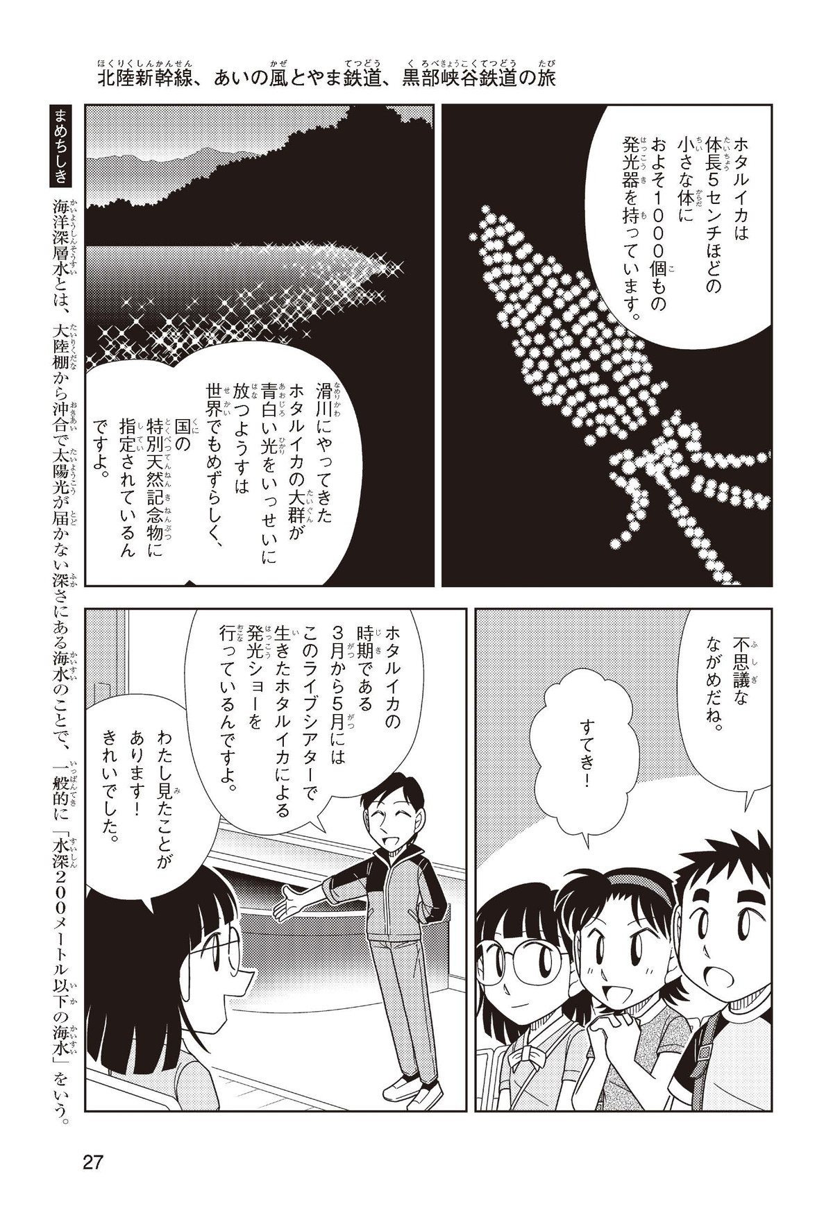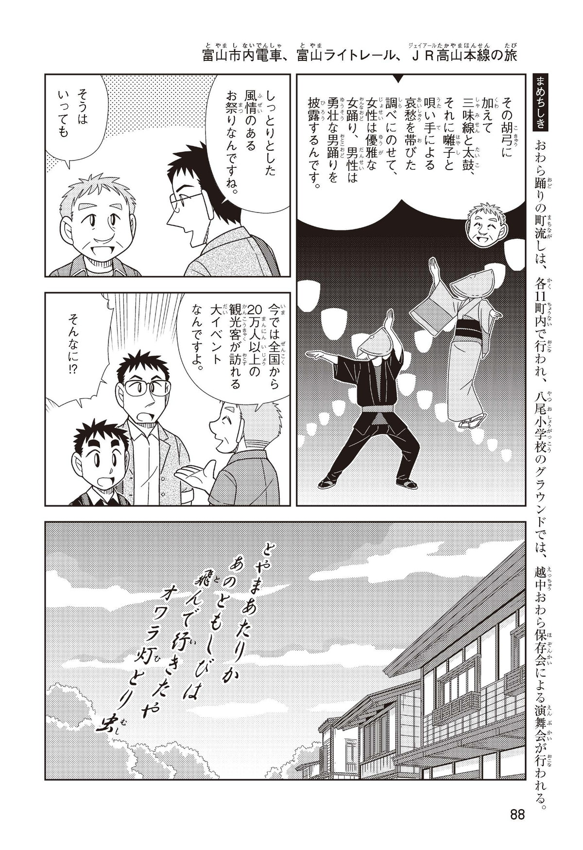 東京の小学校に通うタクヤは大の鉄道ファン。転校生アイリの出身地・富山県が“鉄軌道王国(てつきどうおうこく)”であると知って、「富山県鉄道乗りつくしの旅」に出ることに。タクヤとパパ、アイリとアイリのおじいちゃん、幼なじみのナナちゃんの5人は、豊かな自然を体験したり、富山湾の海の幸を食べたり、富山県の魅力(みりょく)を発見していくよ!