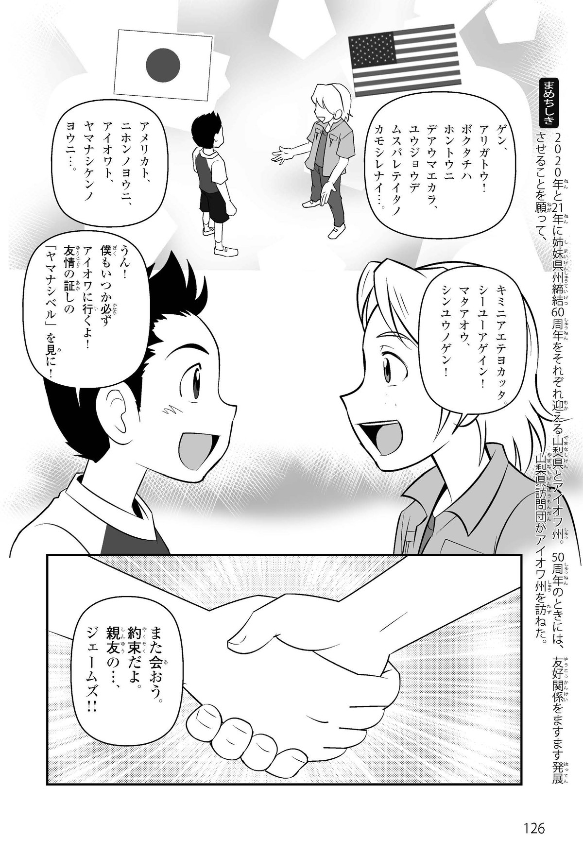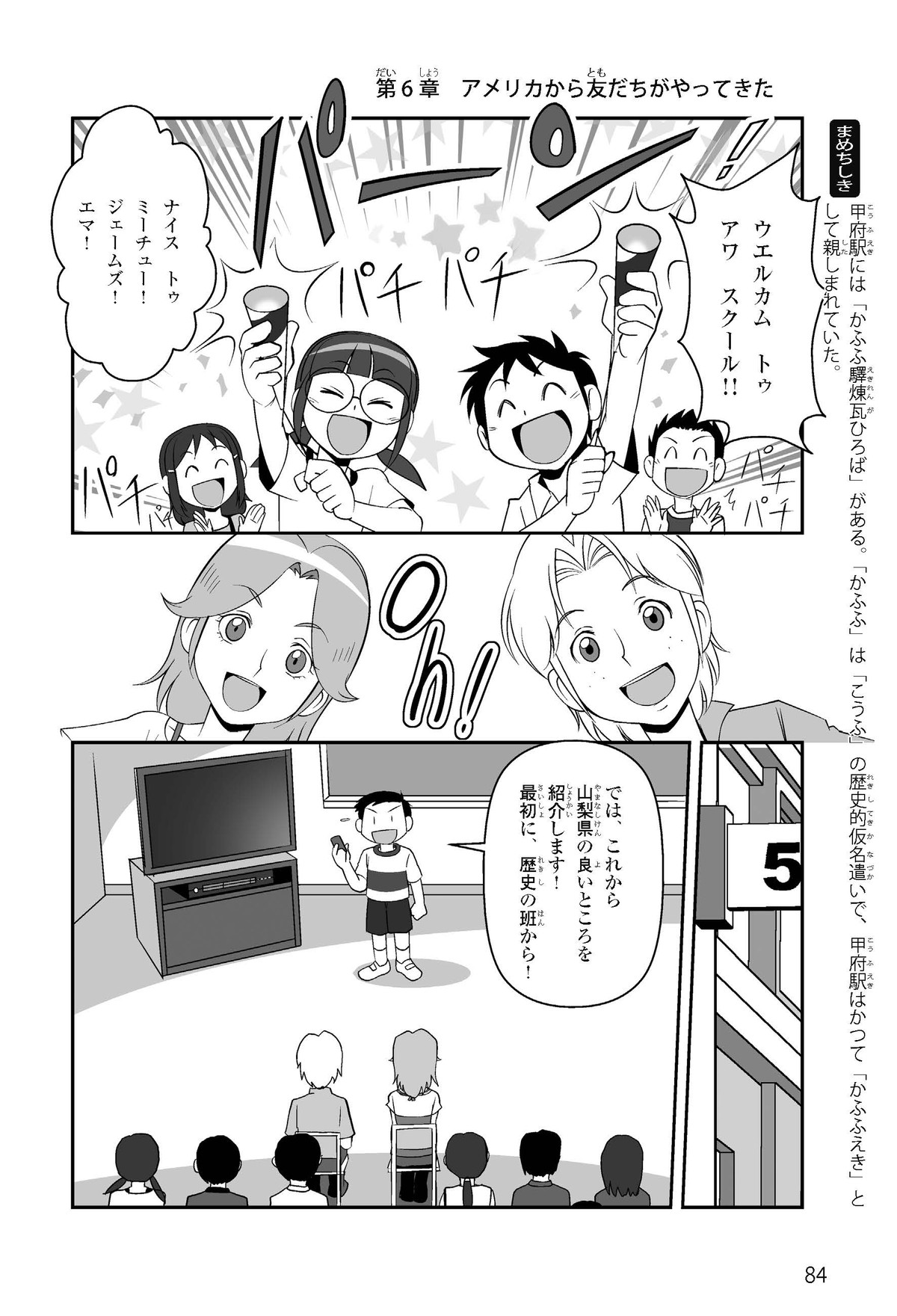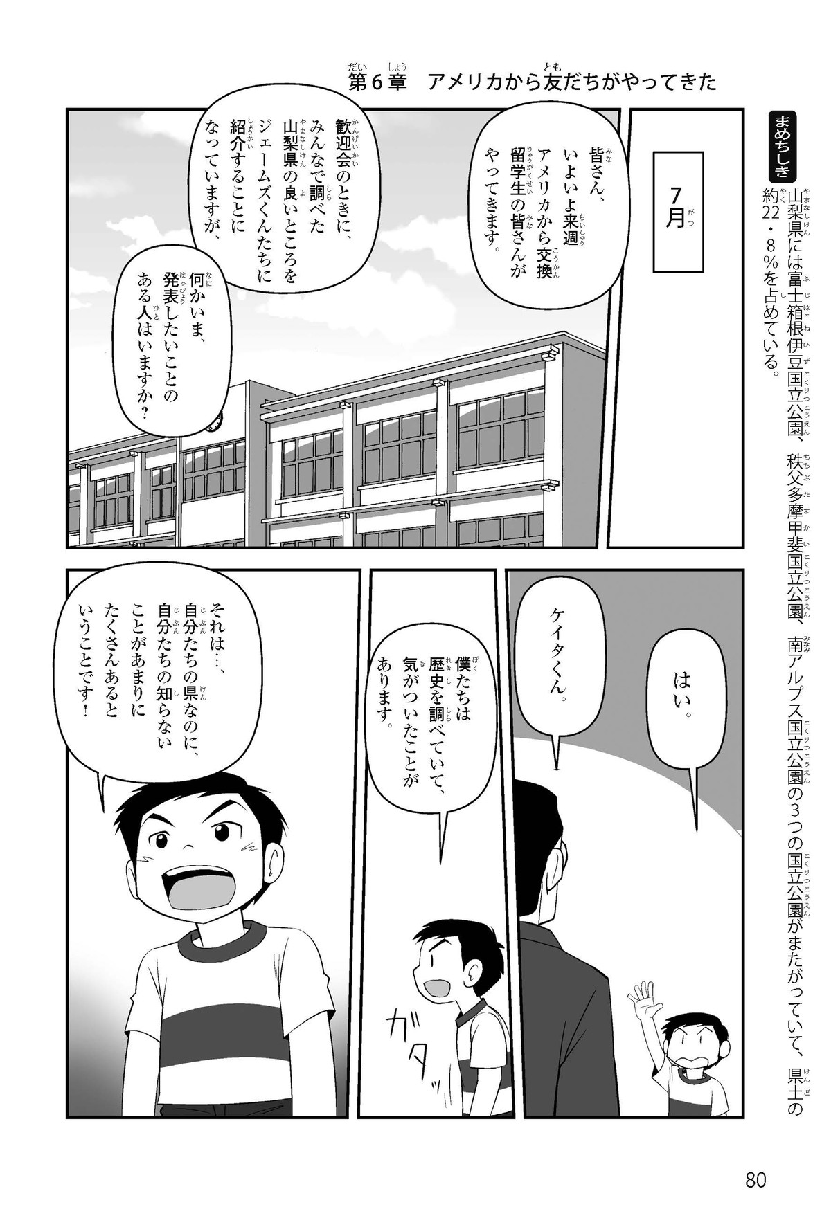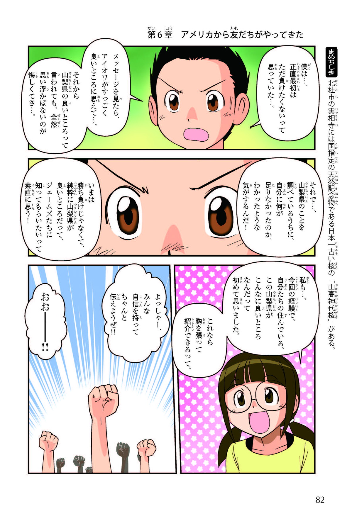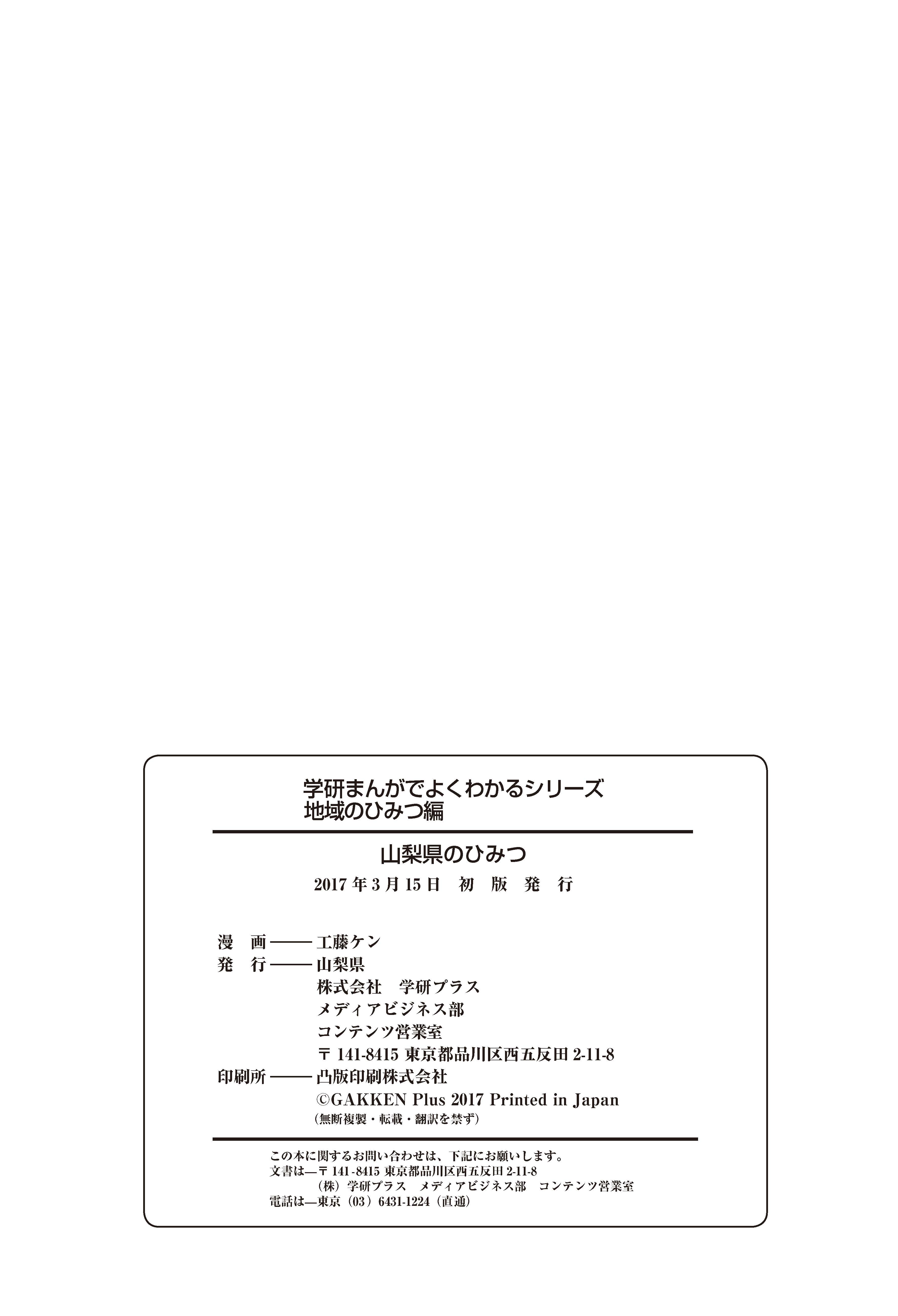 ゲンとリコは、山梨県の小学校に通う5年生。ある日、ふたりのクラスに、アメリカにある山梨県の姉妹都市・アイオワ州からの交換留学生がやってくることに。さっそくゲンとリコのクラスでは、交換留学生のジェームズとエマに、自分たちの住む山梨県の魅力を紹介するために、山梨県の良いところ探しを始めるよ。世界文化遺産の富士山に、ぶどうやももをはじめとする農産物、武田信玄公など多くの偉人を生んだ歴史、伝統工芸からリニアモーターカーの開発までとっても幅広い産業……。ほかにもたくさんの山梨県の魅力を発見していくよ!