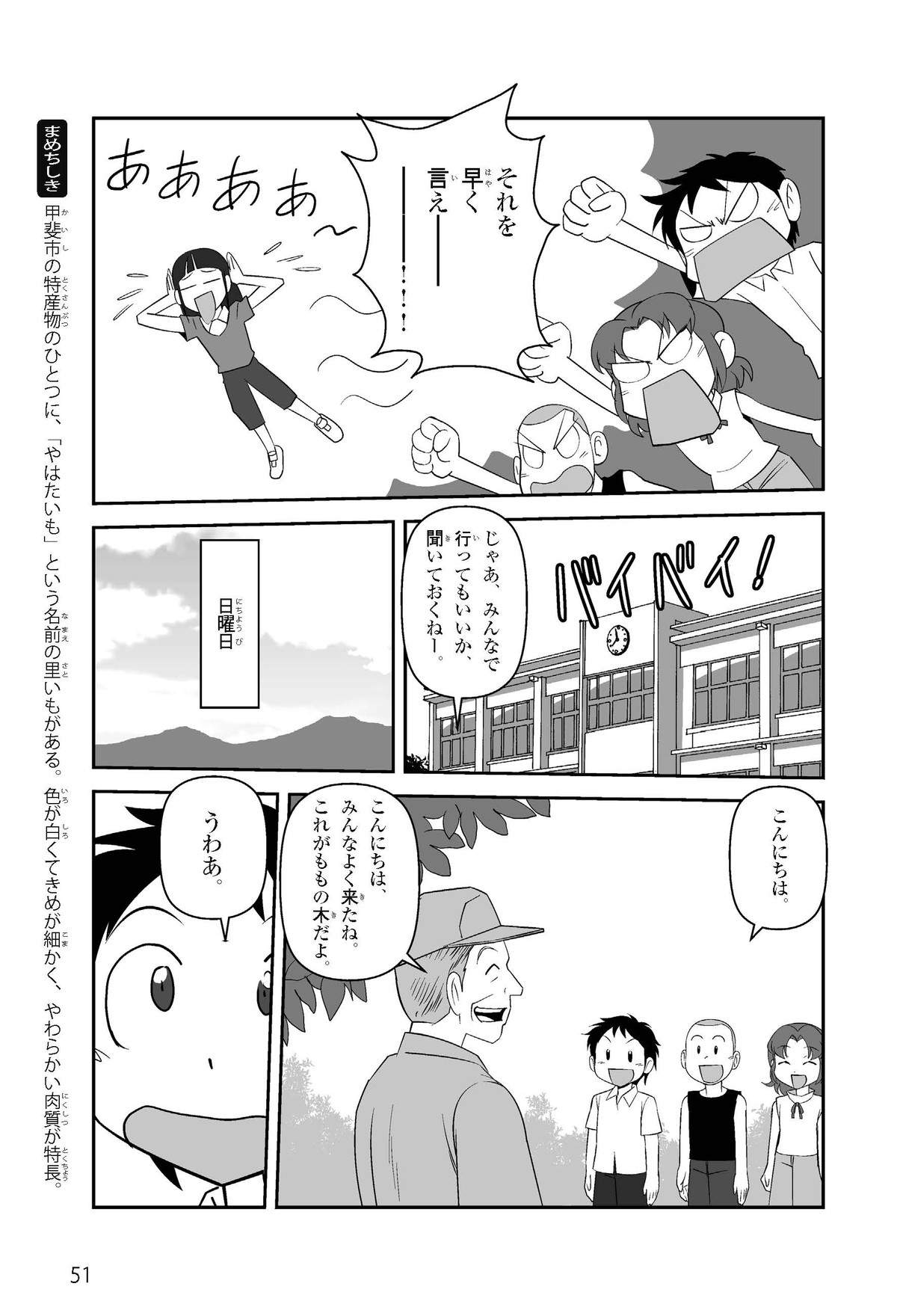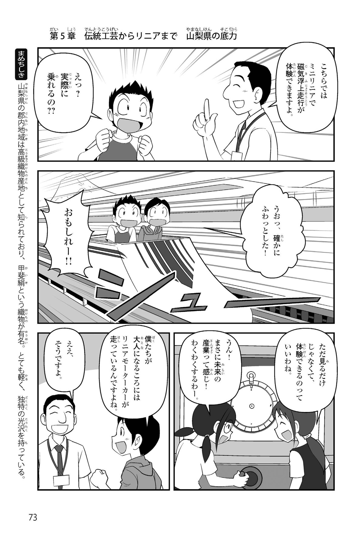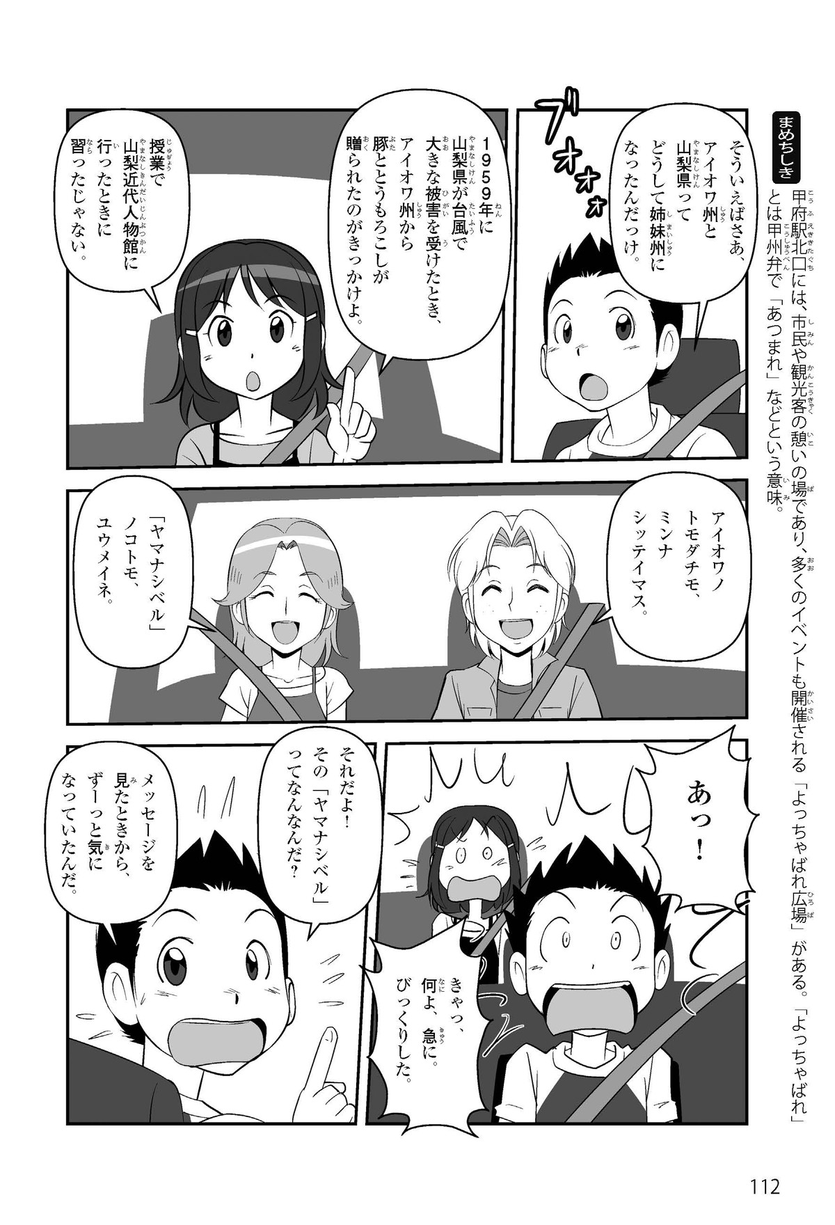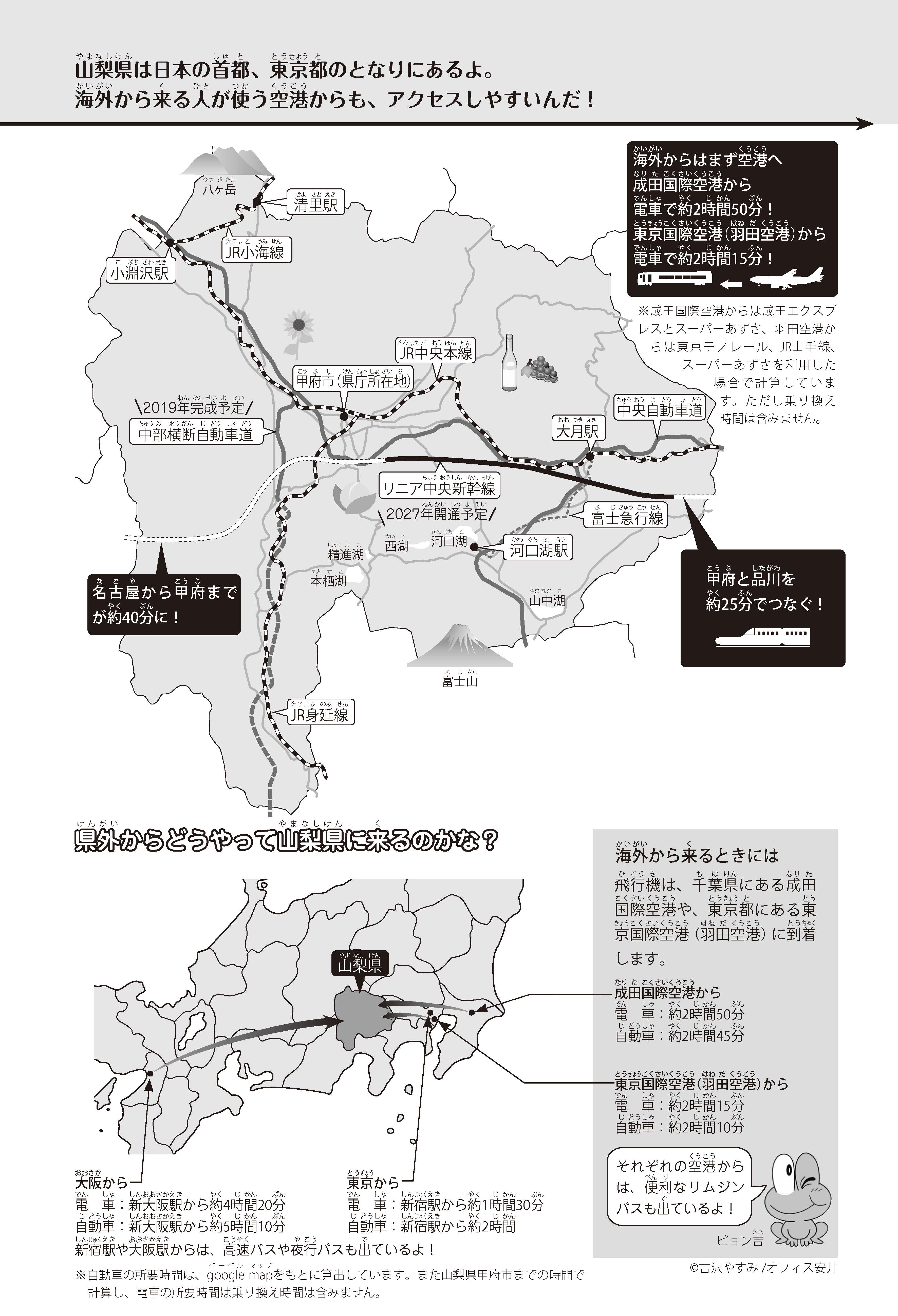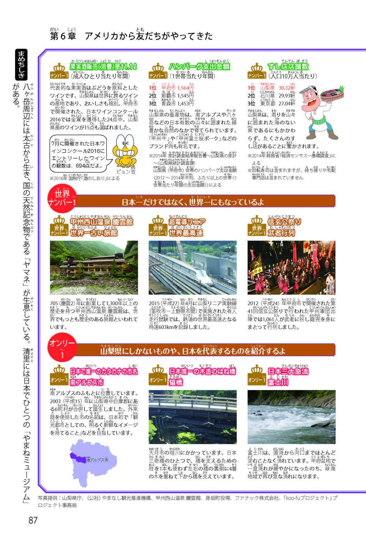 ゲンとリコは、山梨県の小学校に通う5年生。ある日、ふたりのクラスに、アメリカにある山梨県の姉妹都市・アイオワ州からの交換留学生がやってくることに。さっそくゲンとリコのクラスでは、交換留学生のジェームズとエマに、自分たちの住む山梨県の魅力を紹介するために、山梨県の良いところ探しを始めるよ。世界文化遺産の富士山に、ぶどうやももをはじめとする農産物、武田信玄公など多くの偉人を生んだ歴史、伝統工芸からリニアモーターカーの開発までとっても幅広い産業……。ほかにもたくさんの山梨県の魅力を発見していくよ!