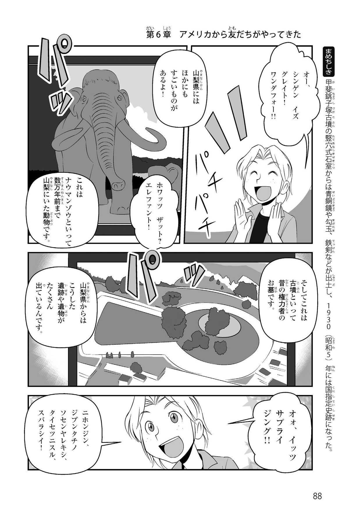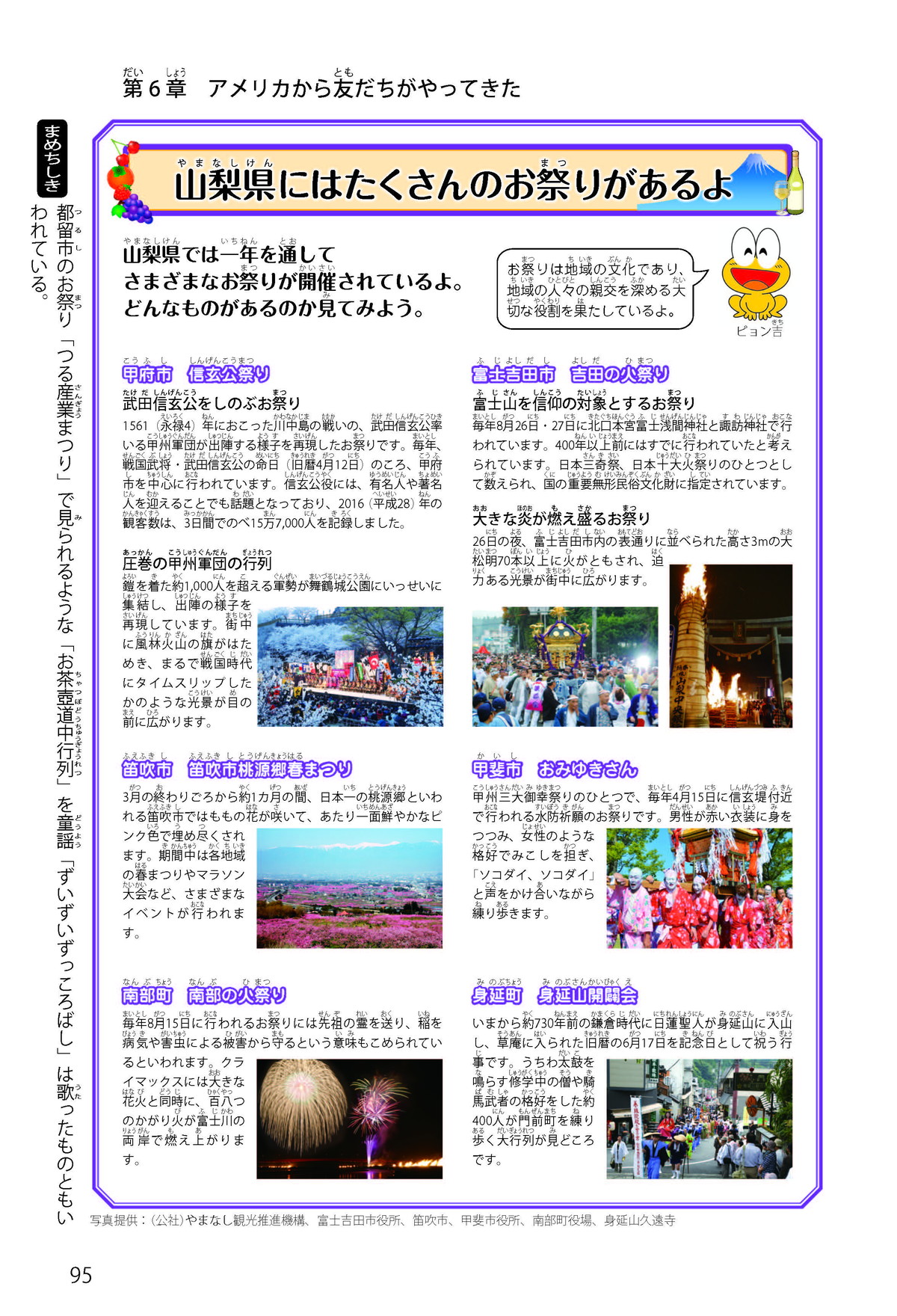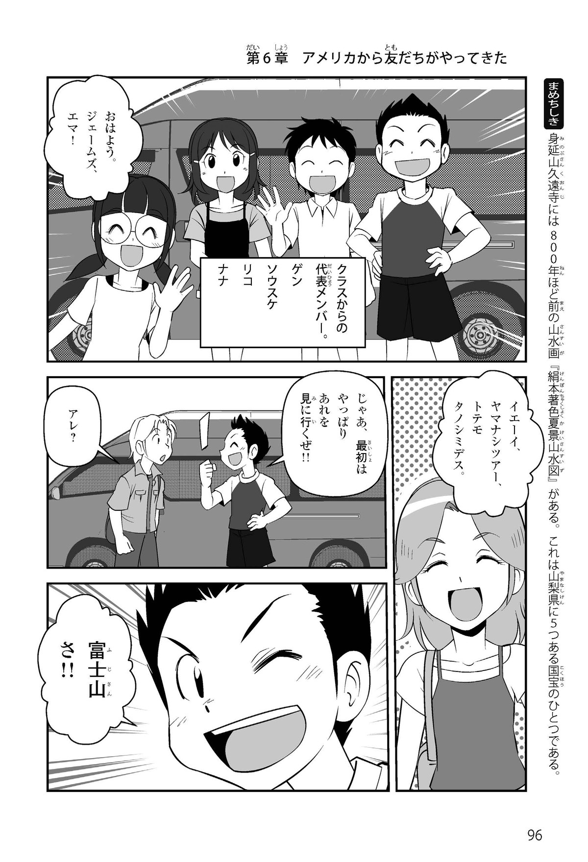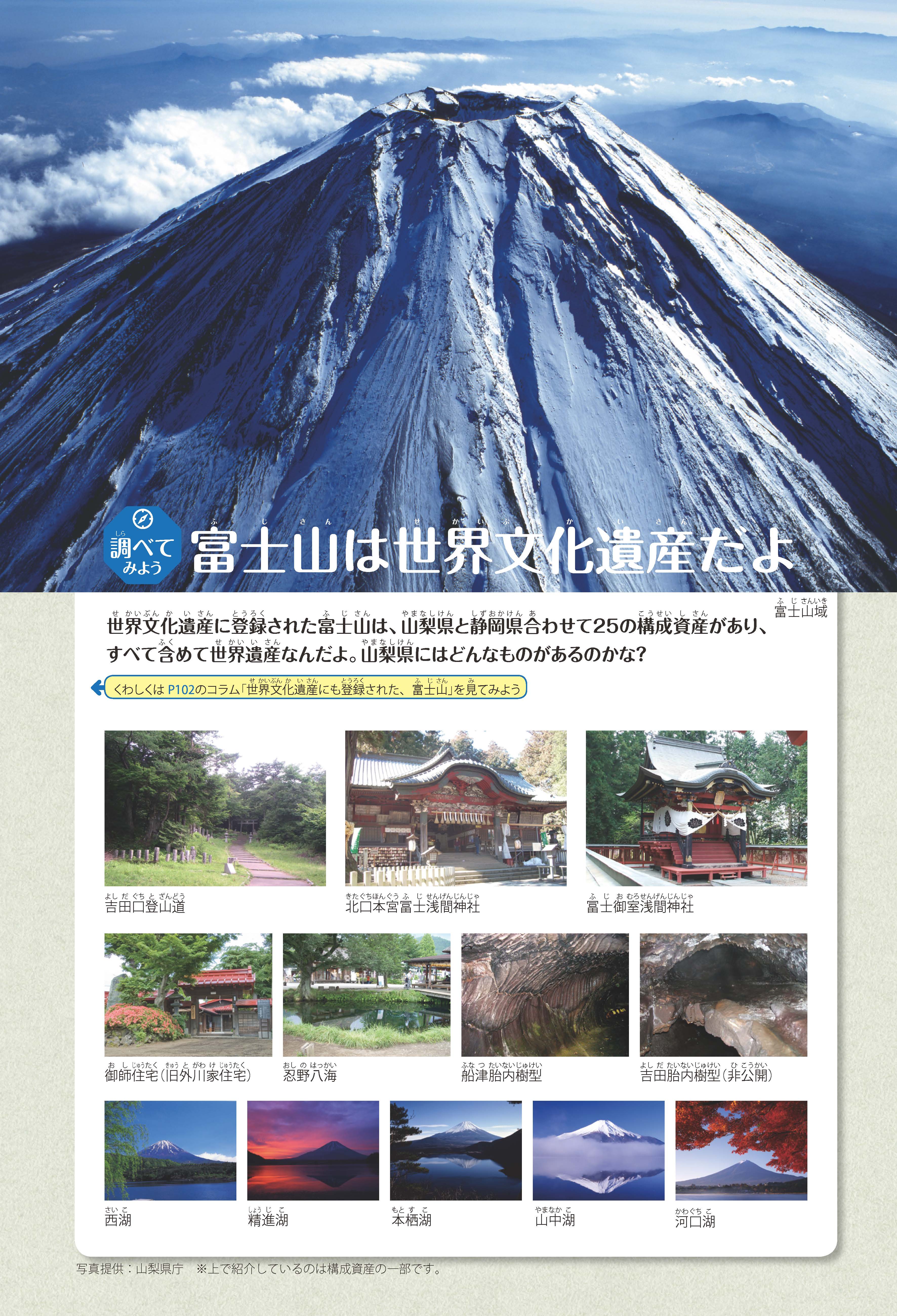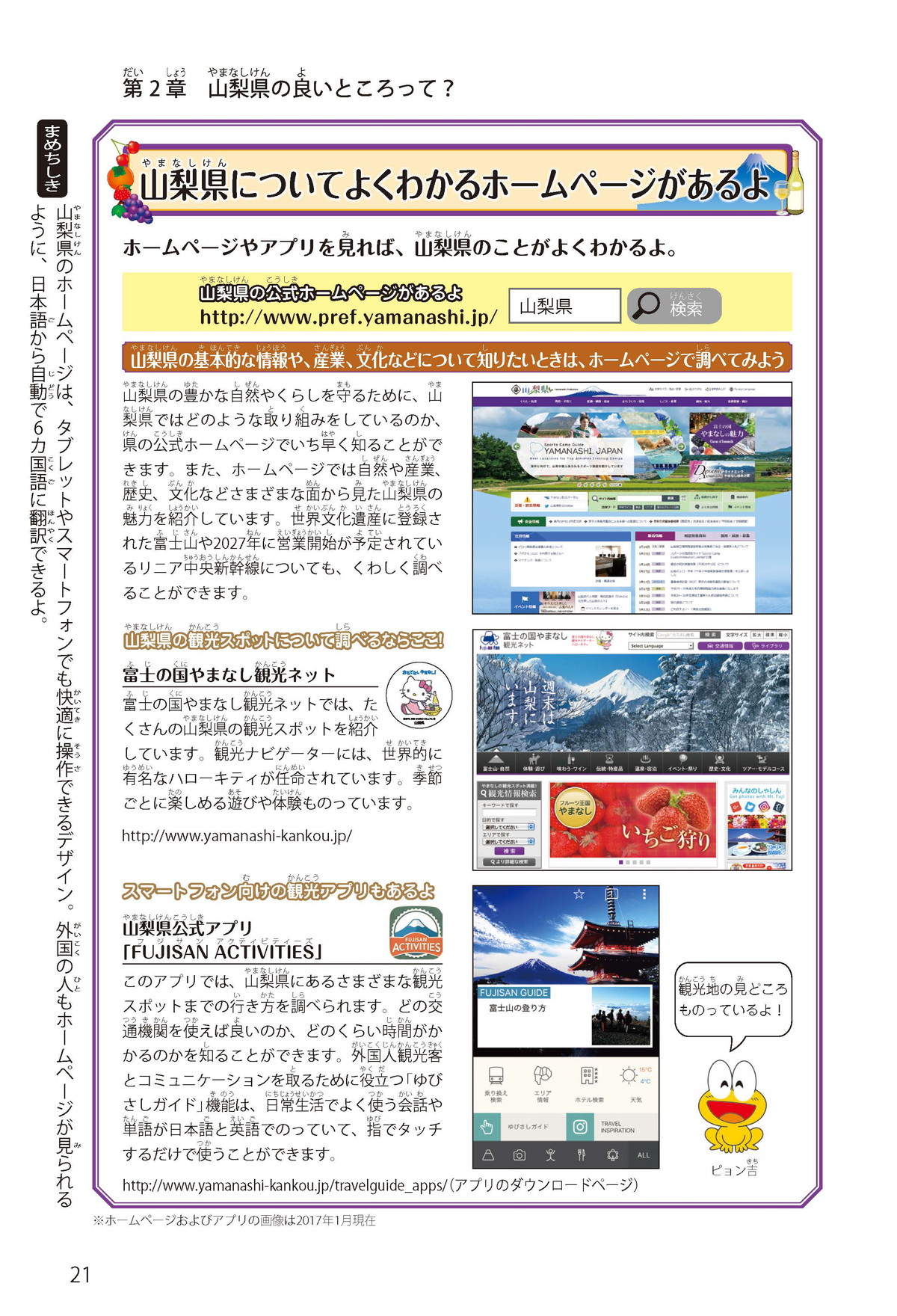 ゲンとリコは、山梨県の小学校に通う5年生。ある日、ふたりのクラスに、アメリカにある山梨県の姉妹都市・アイオワ州からの交換留学生がやってくることに。さっそくゲンとリコのクラスでは、交換留学生のジェームズとエマに、自分たちの住む山梨県の魅力を紹介するために、山梨県の良いところ探しを始めるよ。世界文化遺産の富士山に、ぶどうやももをはじめとする農産物、武田信玄公など多くの偉人を生んだ歴史、伝統工芸からリニアモーターカーの開発までとっても幅広い産業……。ほかにもたくさんの山梨県の魅力を発見していくよ!