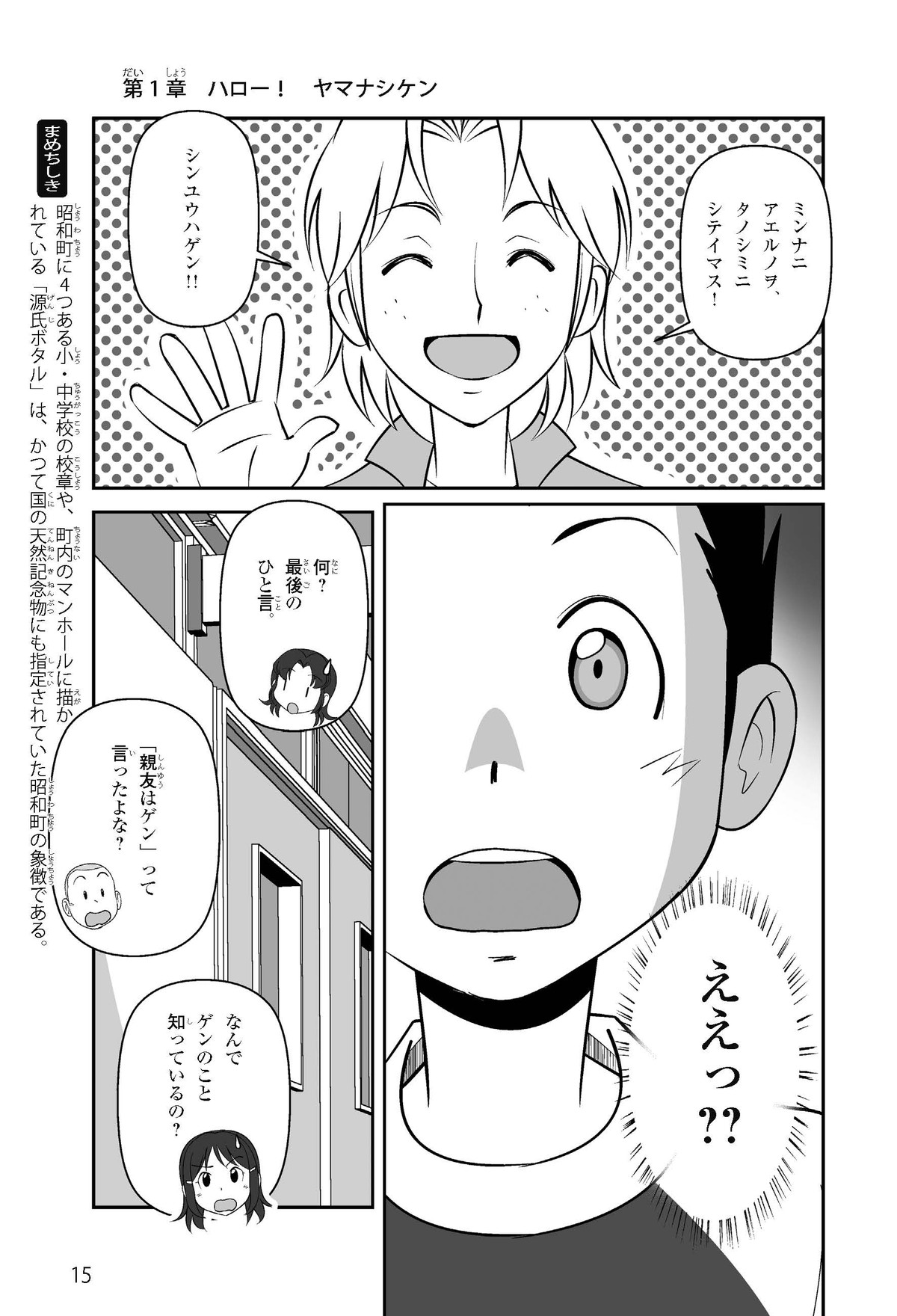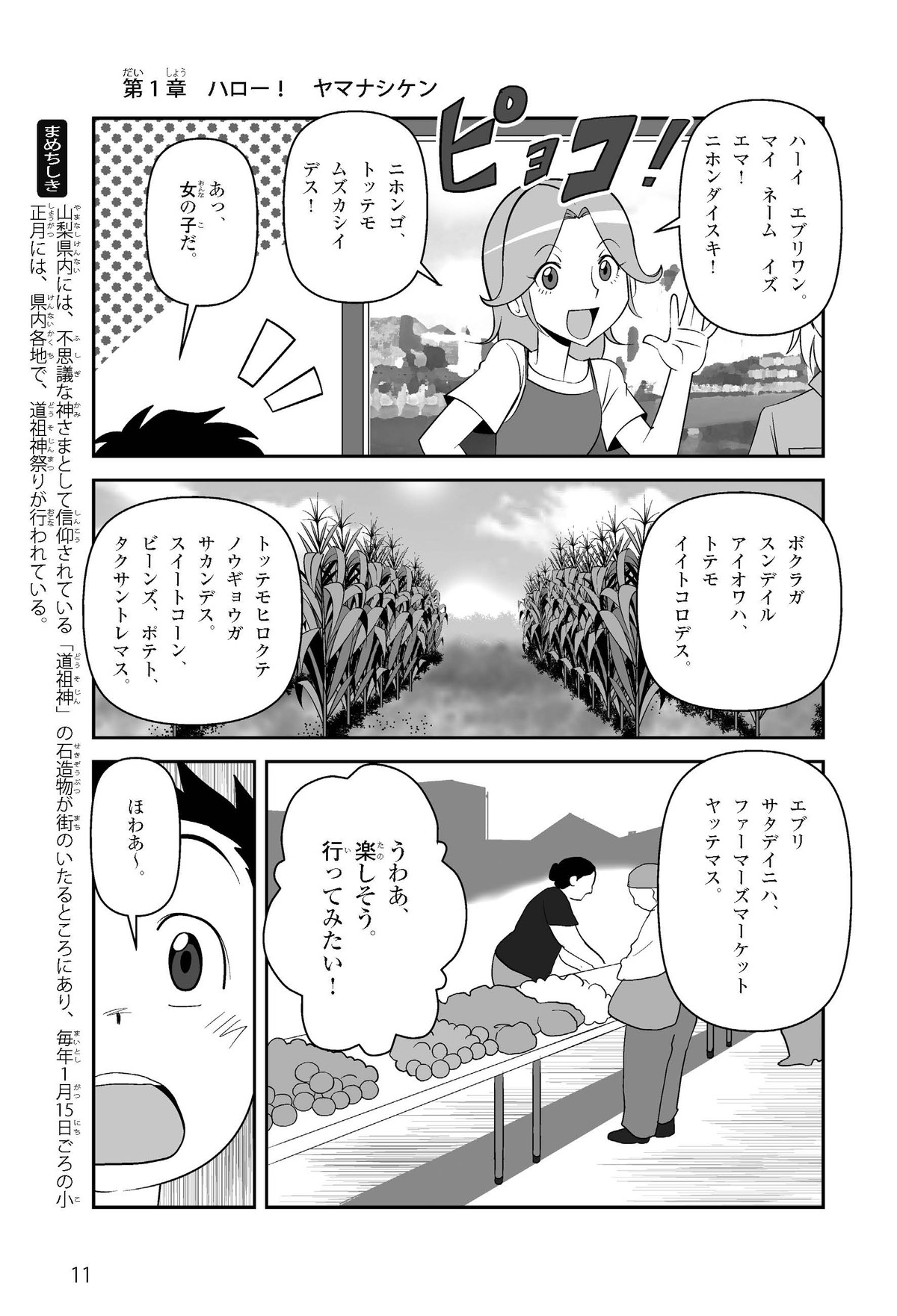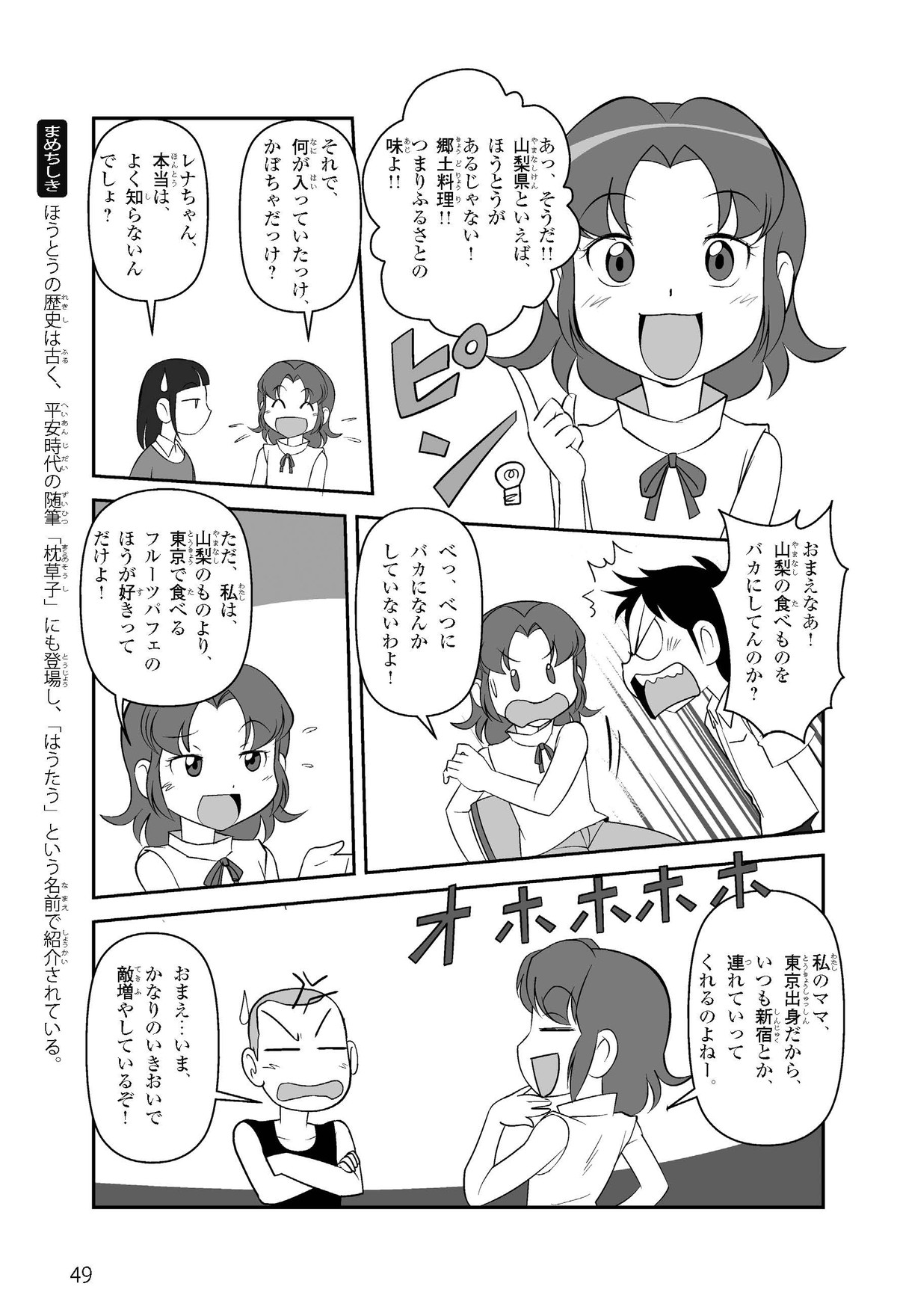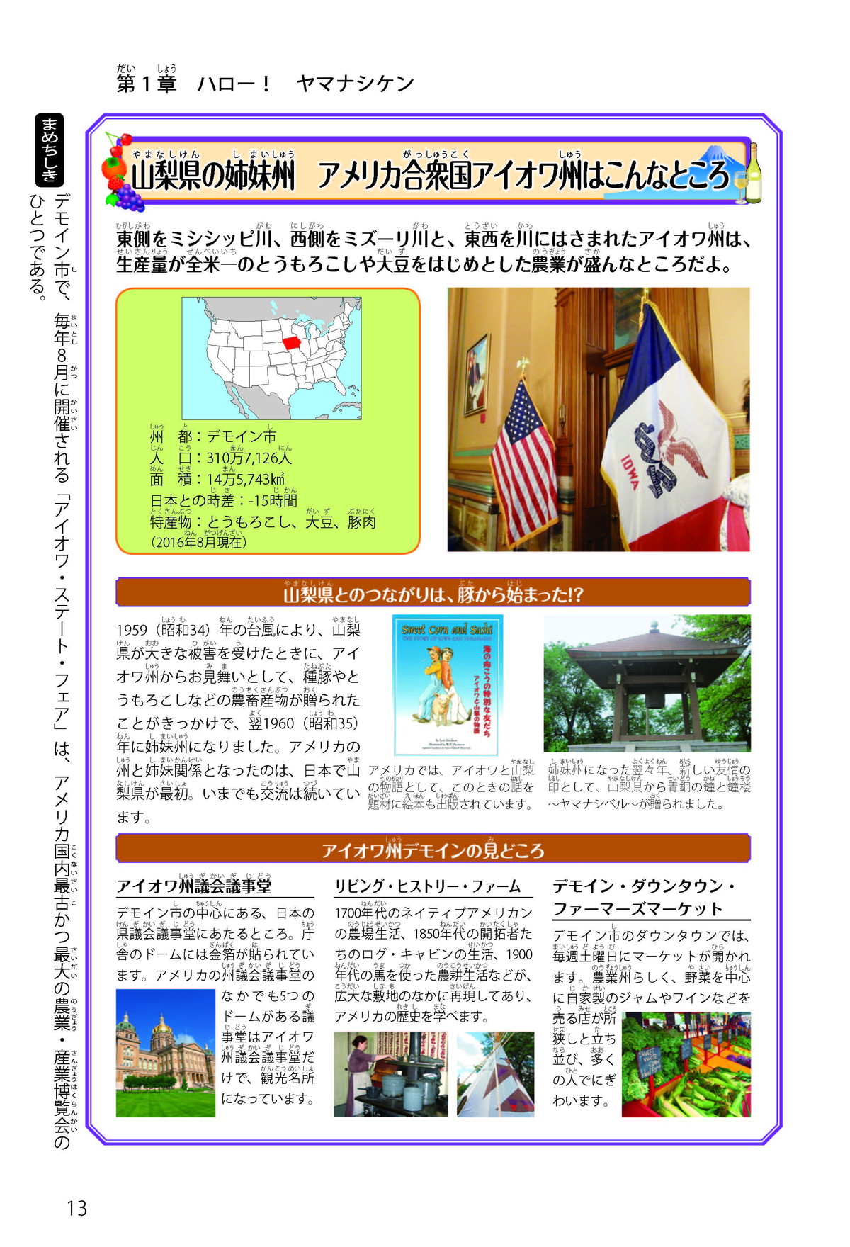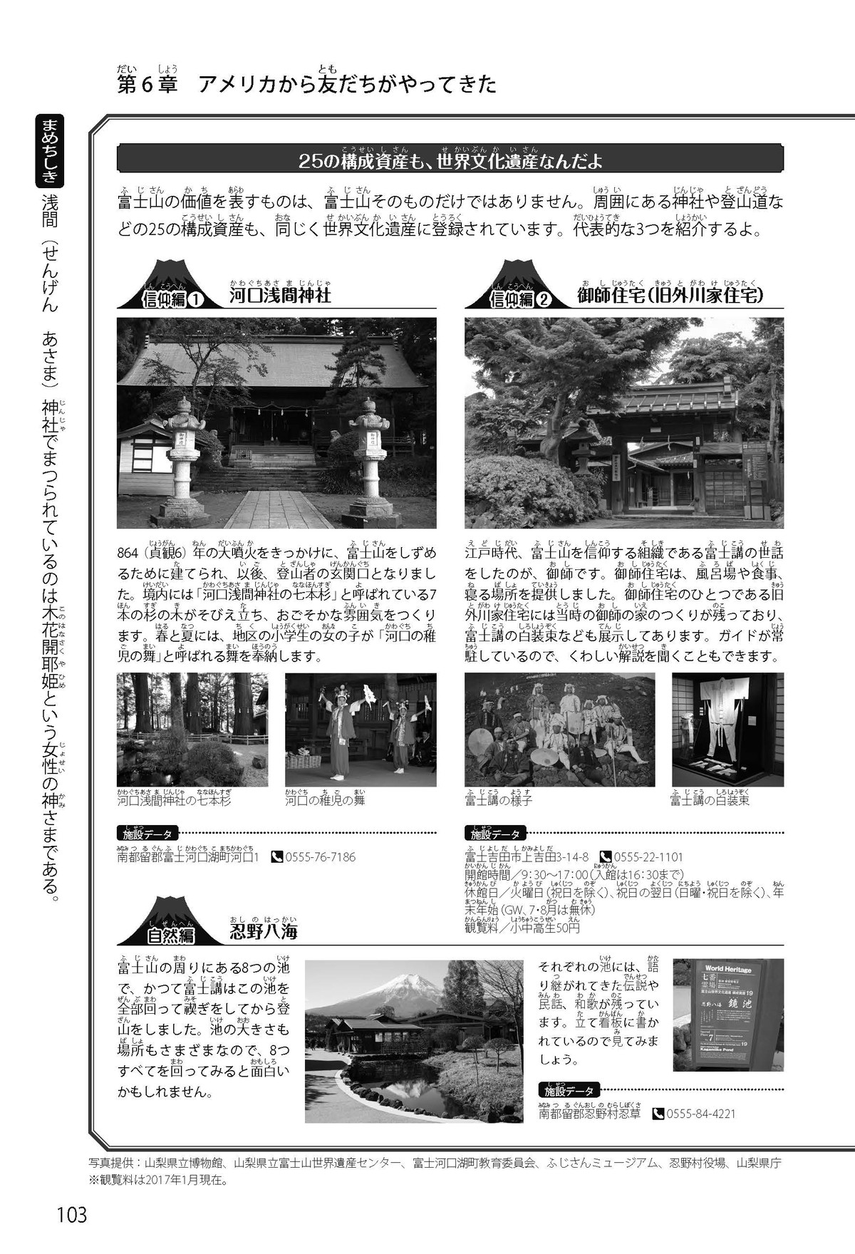 ゲンとリコは、山梨県の小学校に通う5年生。ある日、ふたりのクラスに、アメリカにある山梨県の姉妹都市・アイオワ州からの交換留学生がやってくることに。さっそくゲンとリコのクラスでは、交換留学生のジェームズとエマに、自分たちの住む山梨県の魅力を紹介するために、山梨県の良いところ探しを始めるよ。世界文化遺産の富士山に、ぶどうやももをはじめとする農産物、武田信玄公など多くの偉人を生んだ歴史、伝統工芸からリニアモーターカーの開発までとっても幅広い産業……。ほかにもたくさんの山梨県の魅力を発見していくよ!