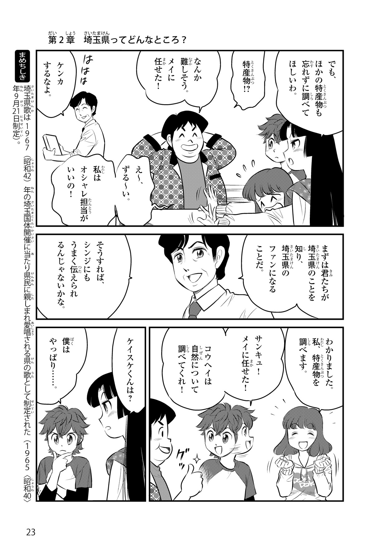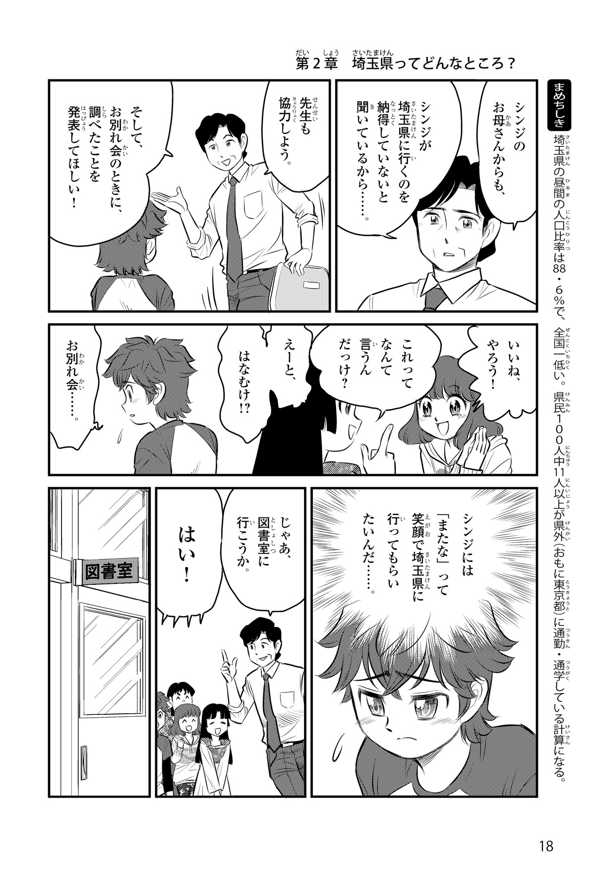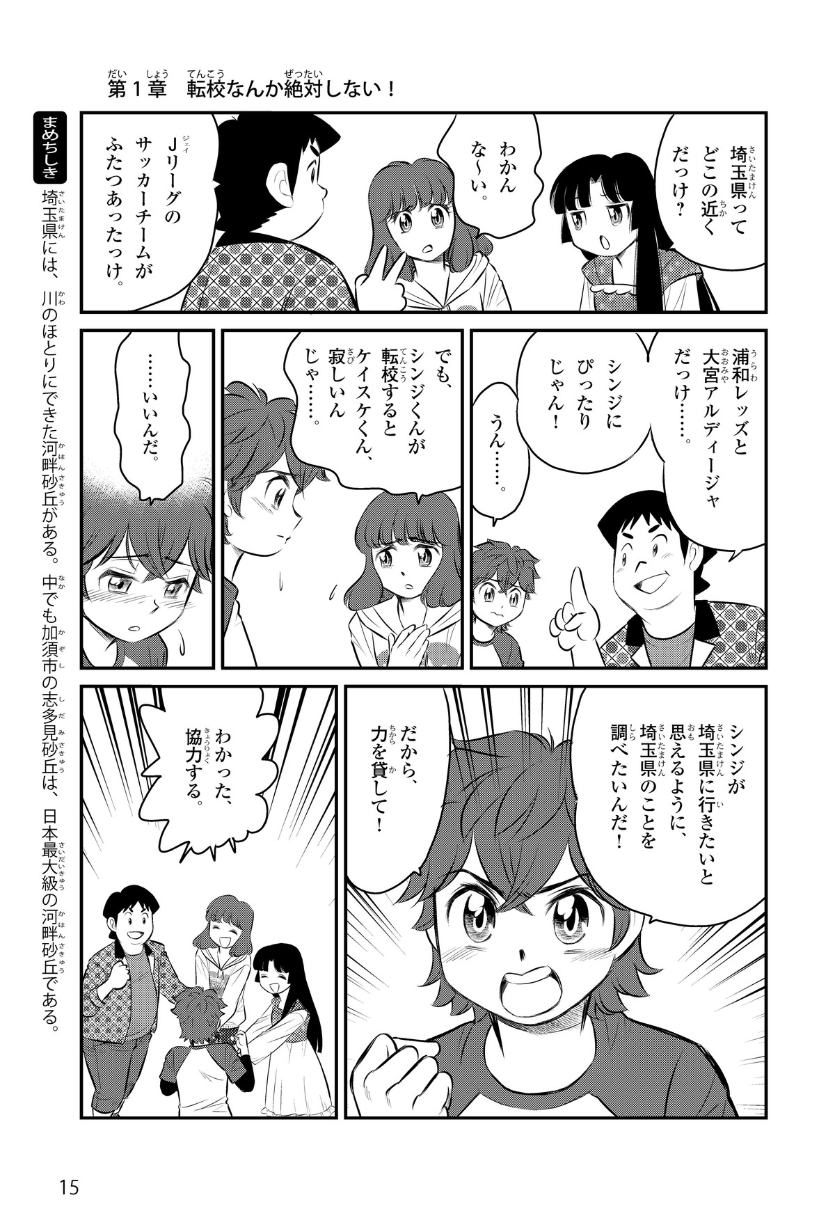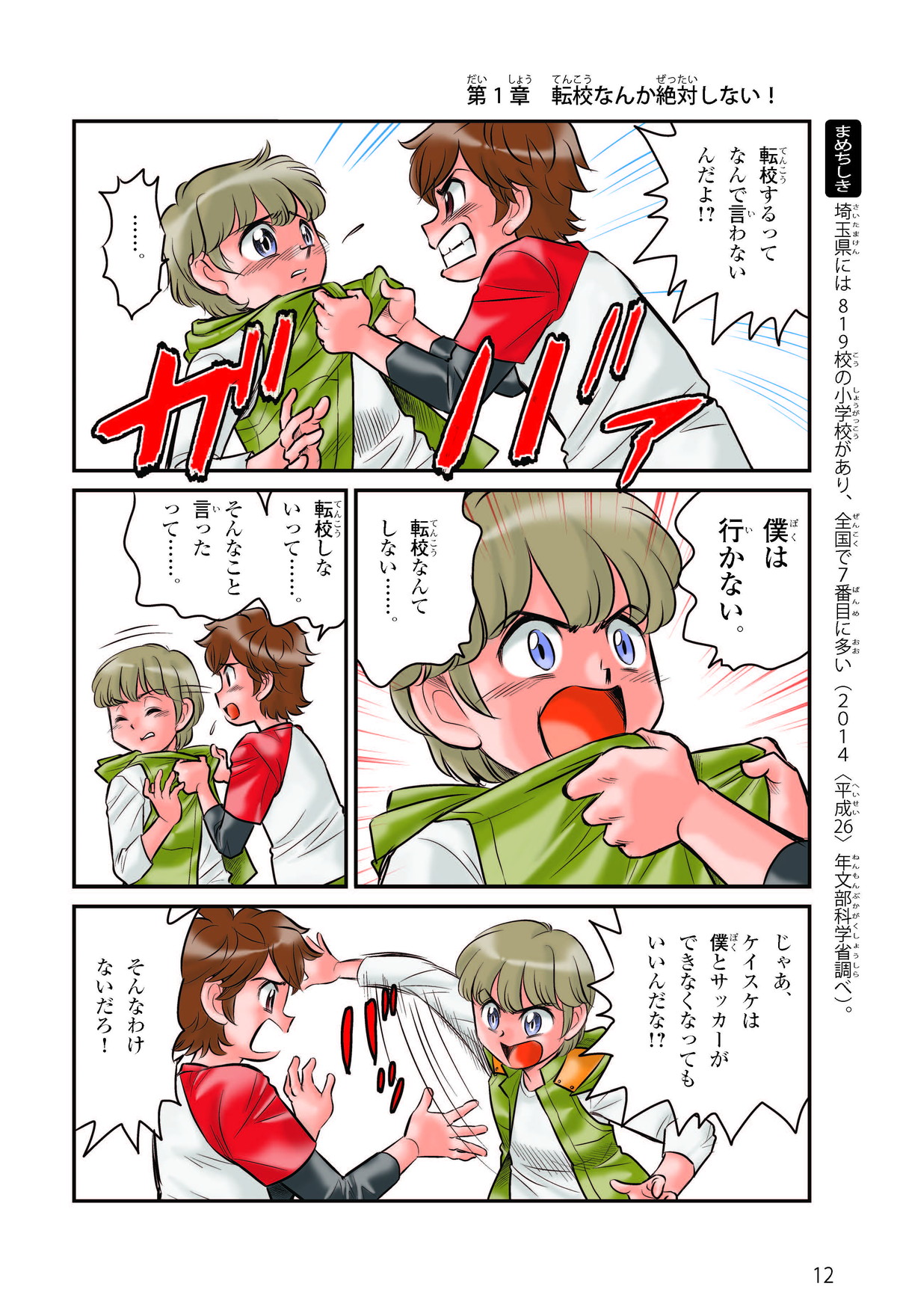 中学生になってもいっしょにサッカー続けようぜ! もちろん! シンジとケイスケはサッカーが大好きでとても仲良し。ある日、シンジの家族が急に埼玉県(さいたまけん)にひっこすことになった! ケイスケとわかれて埼玉県になんか行きたくない! 悲しむシンジを元気づけるために、ケイスケとクラスのみんなは、埼玉県がどんなところか調べてみることにした。
