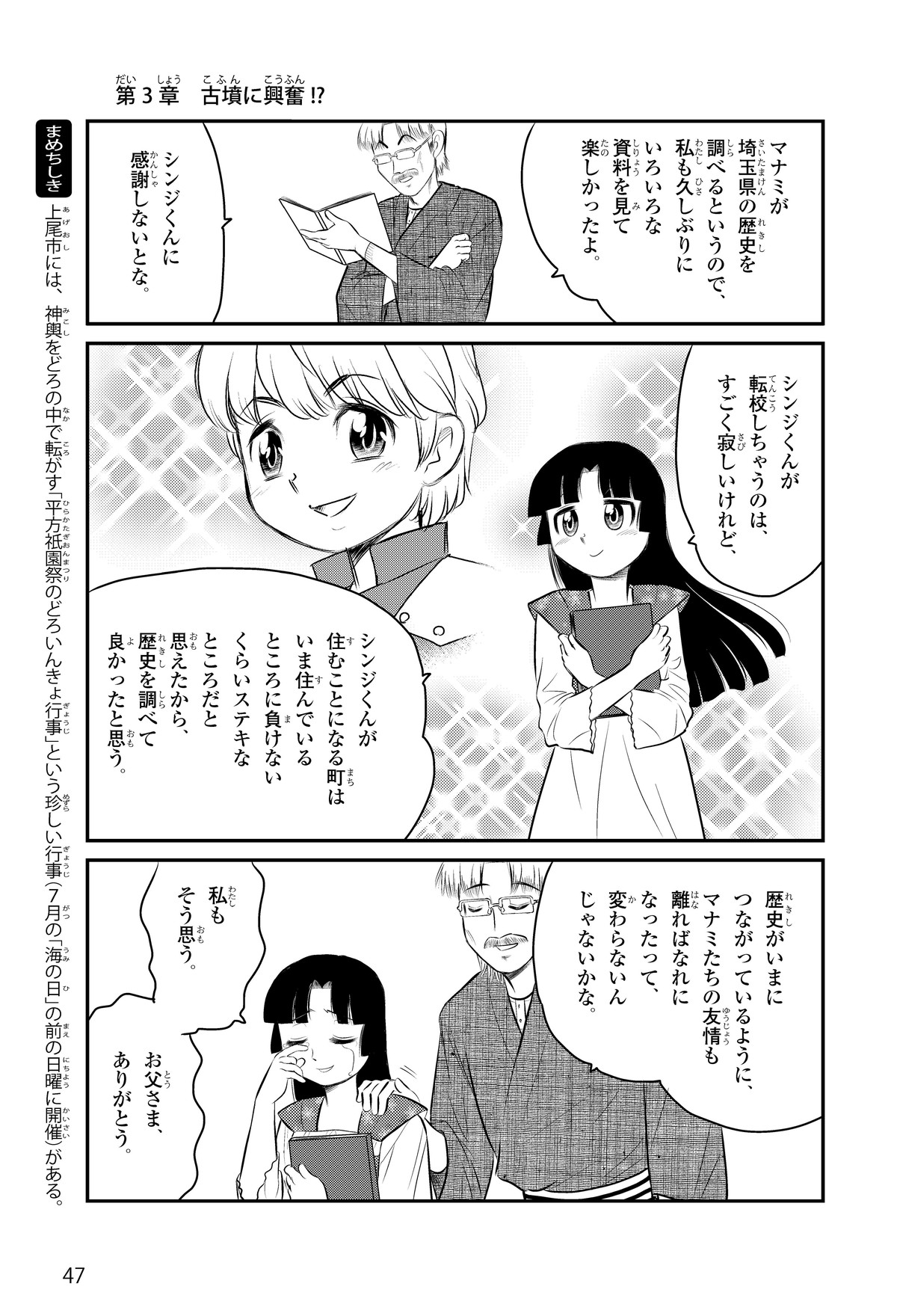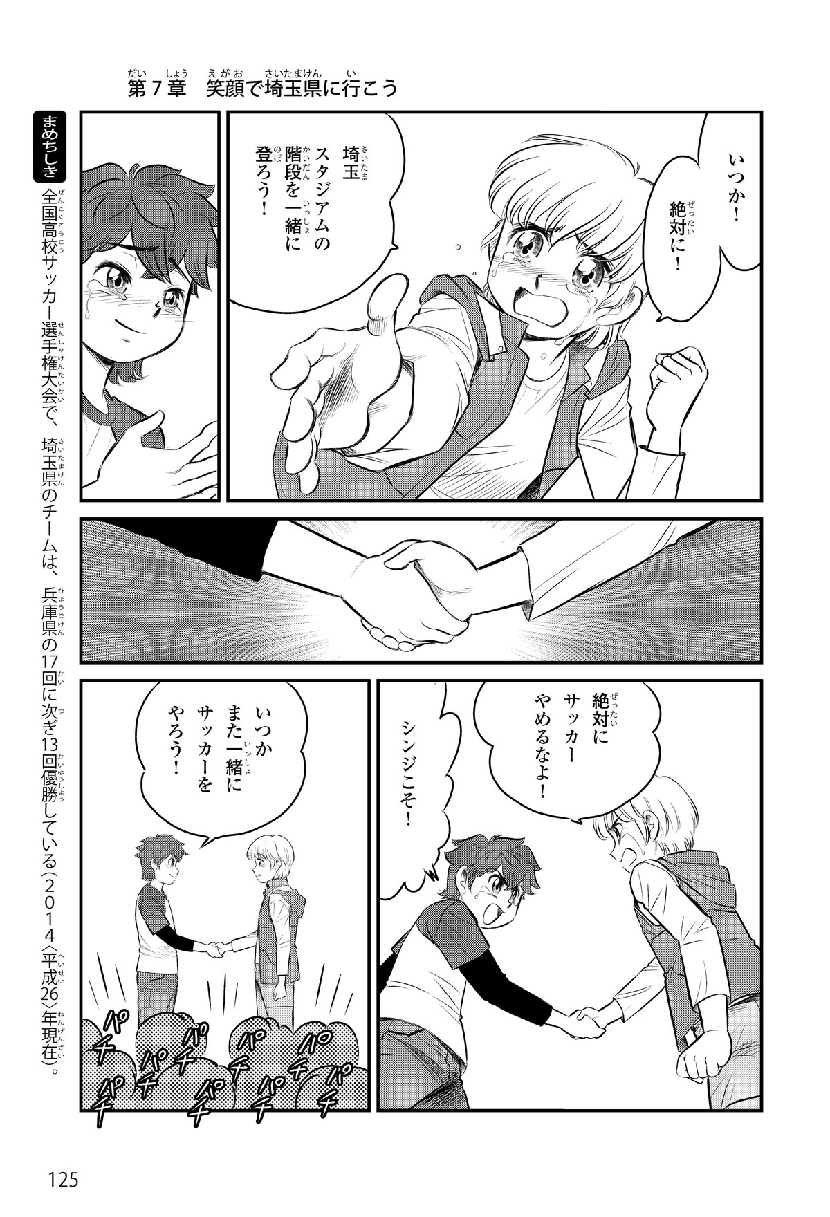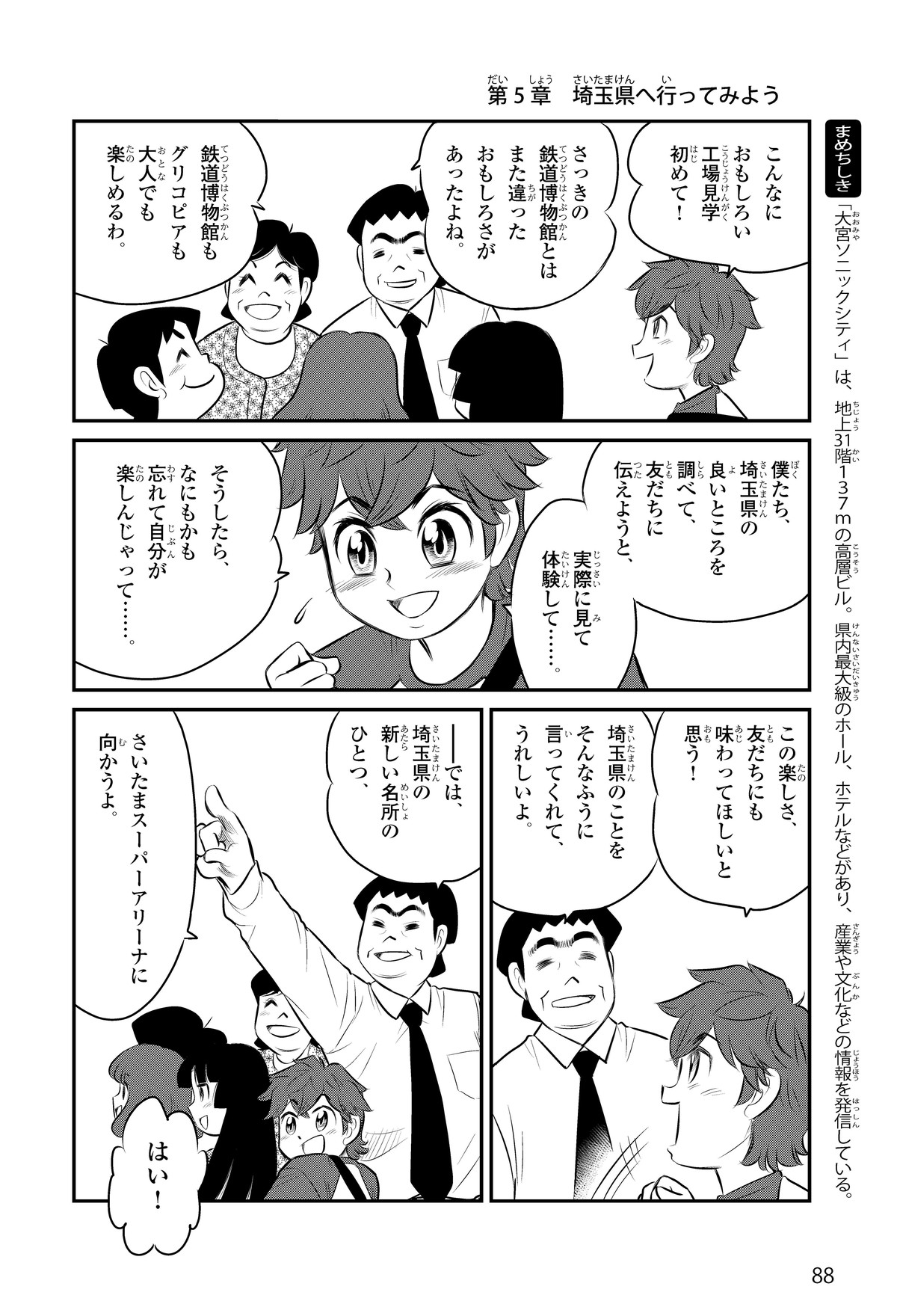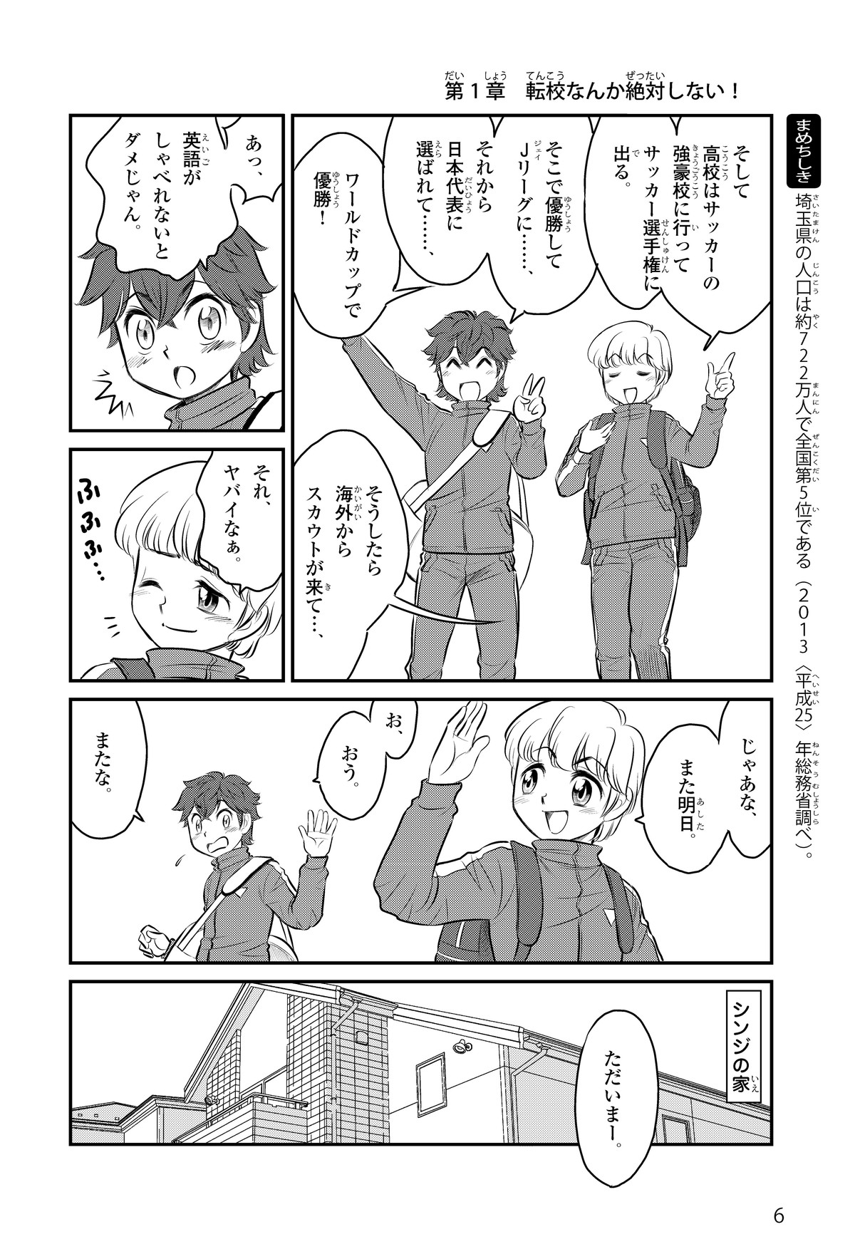 中学生になってもいっしょにサッカー続けようぜ! もちろん! シンジとケイスケはサッカーが大好きでとても仲良し。ある日、シンジの家族が急に埼玉県(さいたまけん)にひっこすことになった! ケイスケとわかれて埼玉県になんか行きたくない! 悲しむシンジを元気づけるために、ケイスケとクラスのみんなは、埼玉県がどんなところか調べてみることにした。
