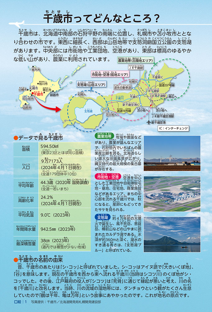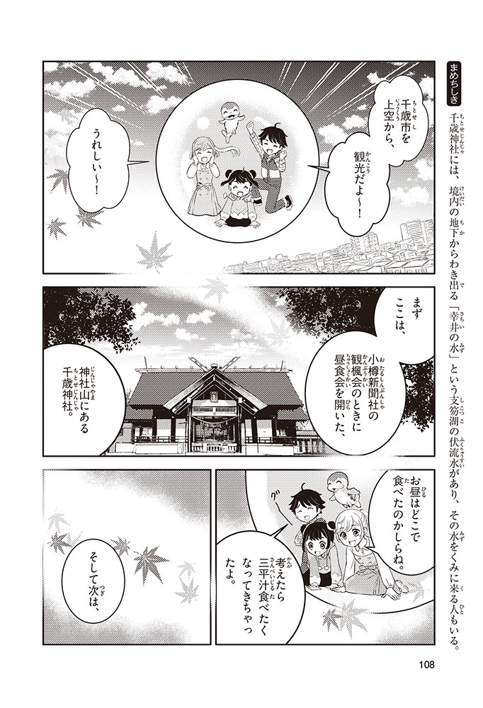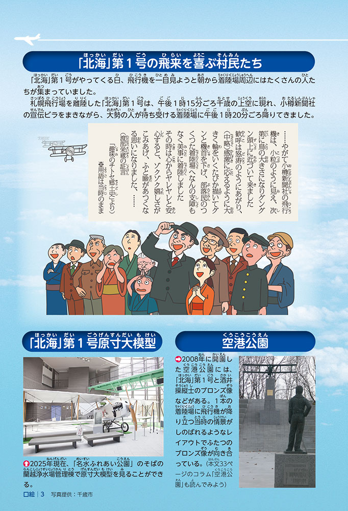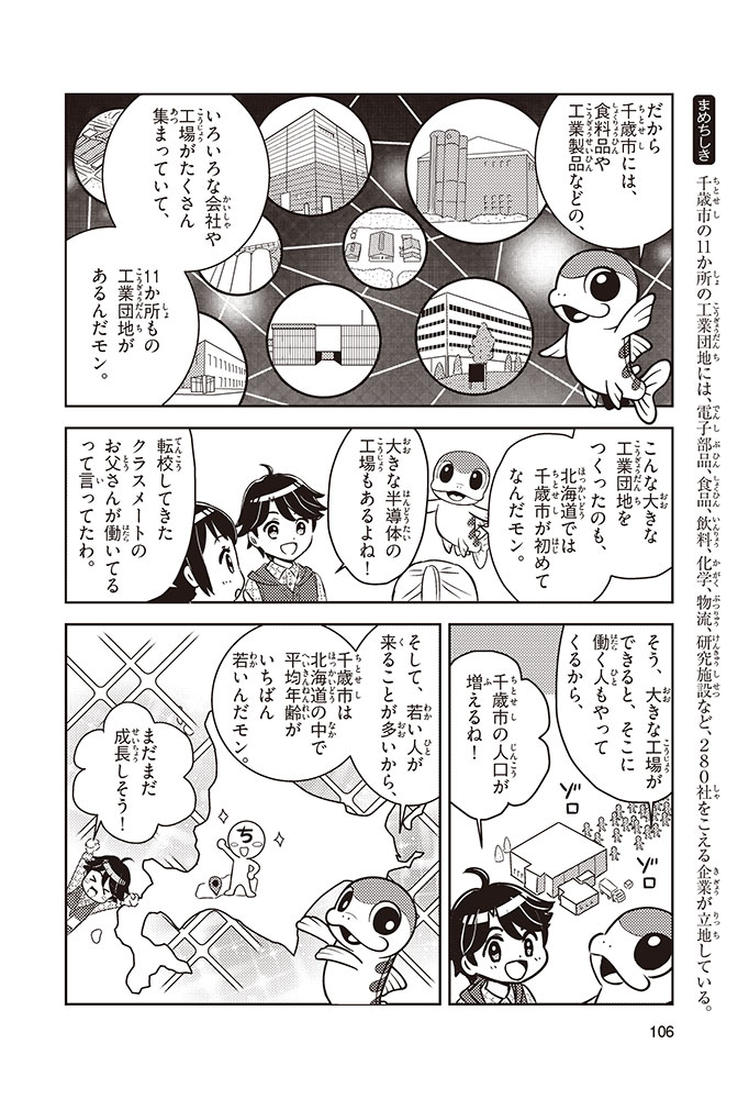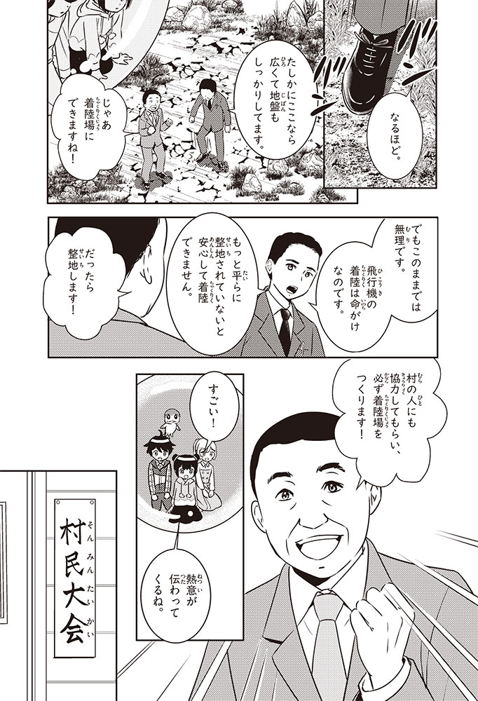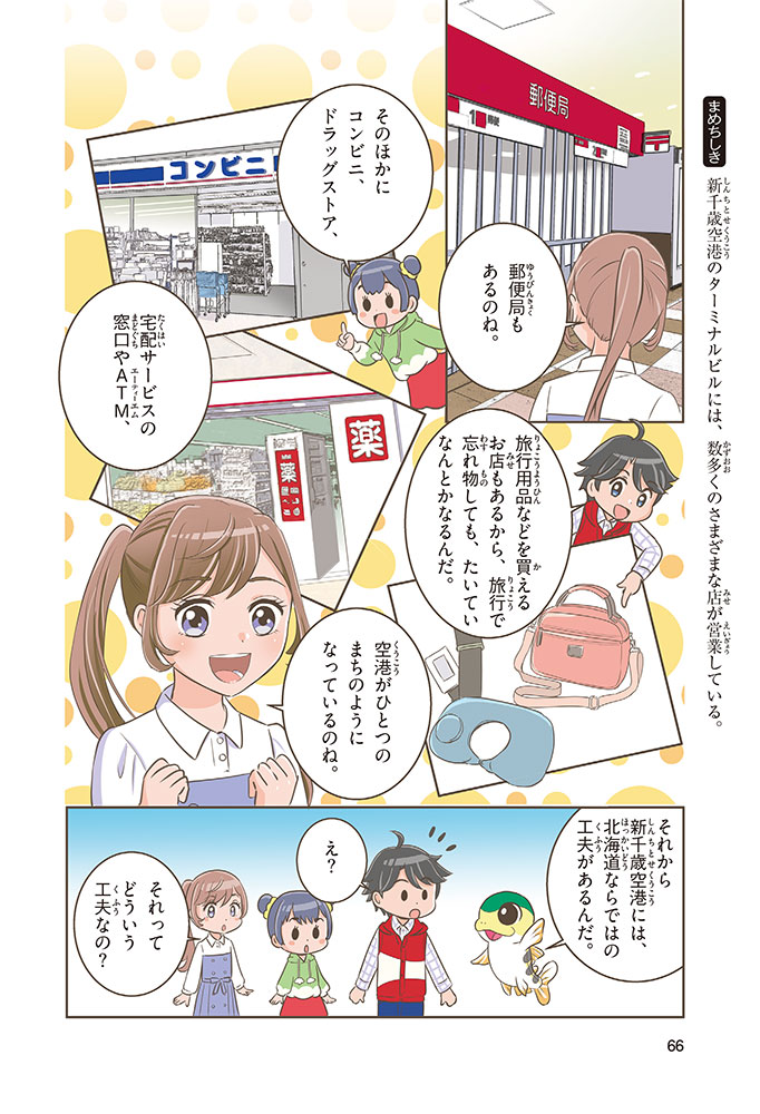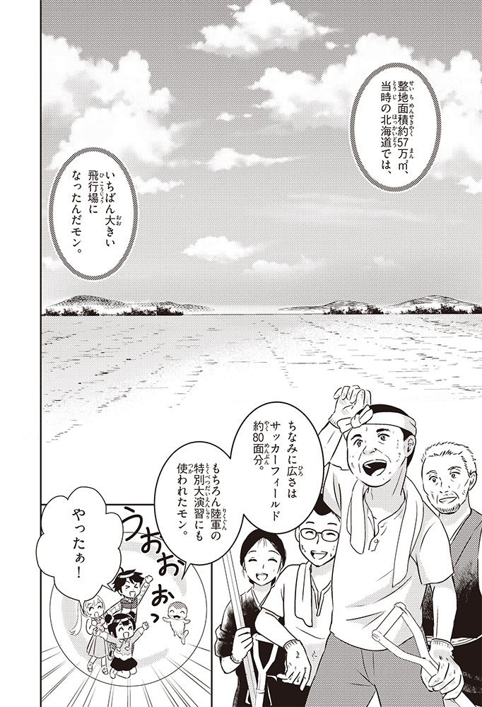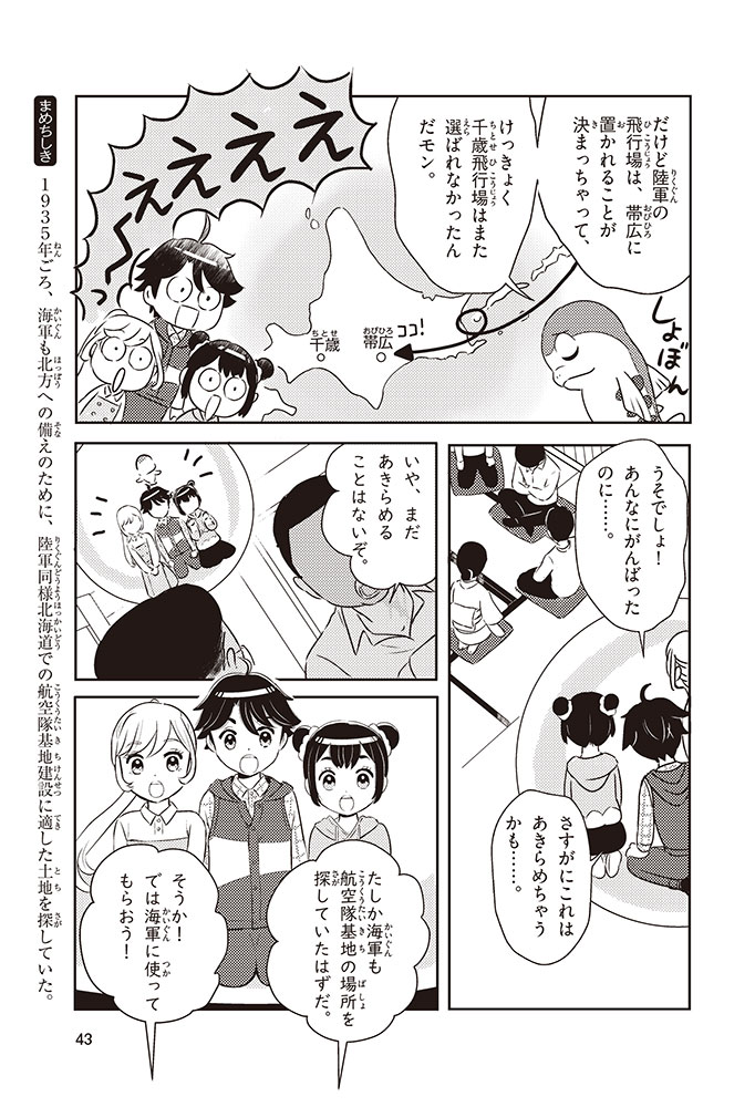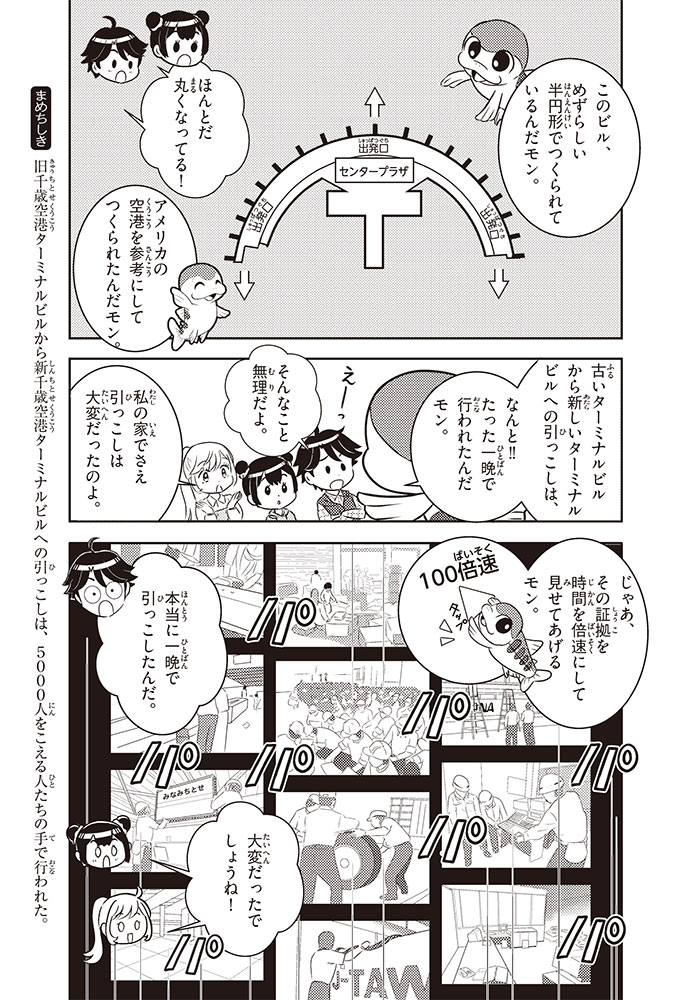 北海道の空の玄関口として、道内や日本中の空港だけでなく、世界のいろいろな国や地域と北海道をつないでいる、新千歳空港。その新千歳空港があるのが、北海道千歳市なんだ。千歳の空港には、地域の人びとの「飛行機が見たい!」という熱い思いから生まれた、100年の歴史があるって……。本書は、小学生のコウキ、ユキ、モモが、千歳っ子みんなの友だち・サケの妖精のサモンくんの案内で、千歳の空港の100年の歴史や現在の新千歳空港のこと、また支笏湖やキウス周堤墓群などの千歳市の魅力をたくさん知ることになります。みんなもこの本を読めば、千歳市の歴史とひみつがよくわかるよ!