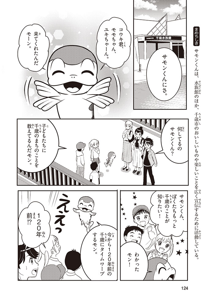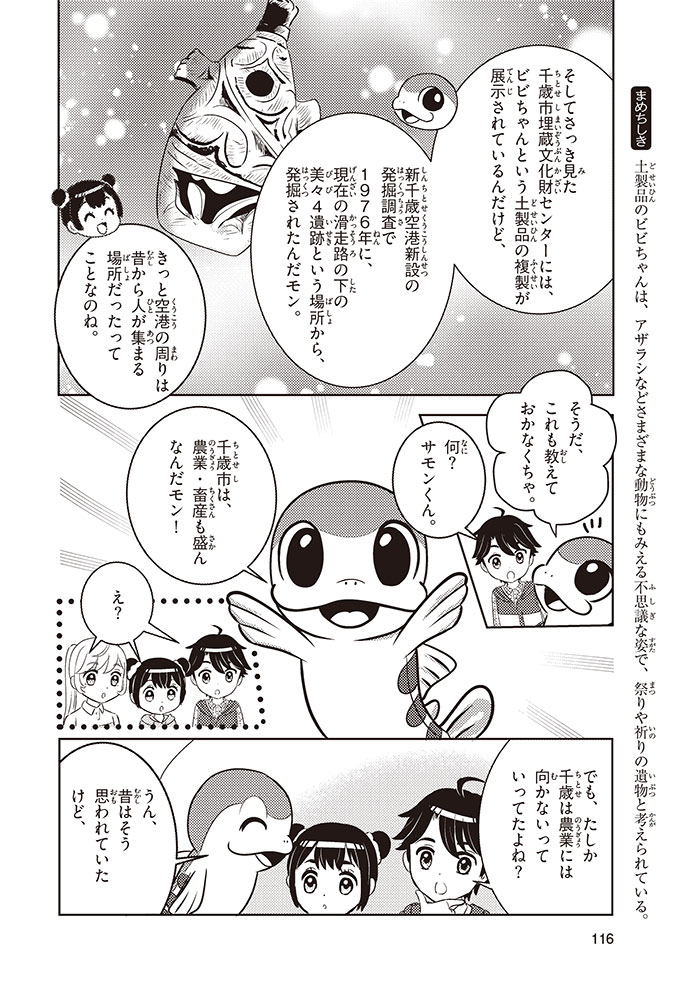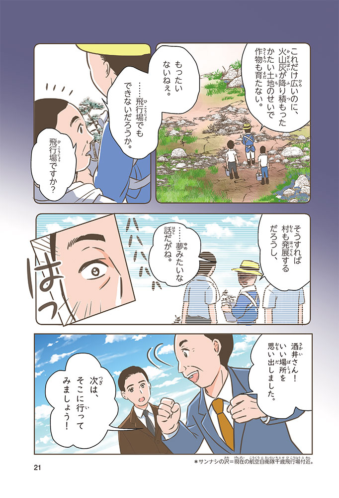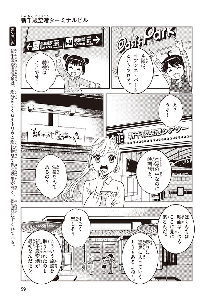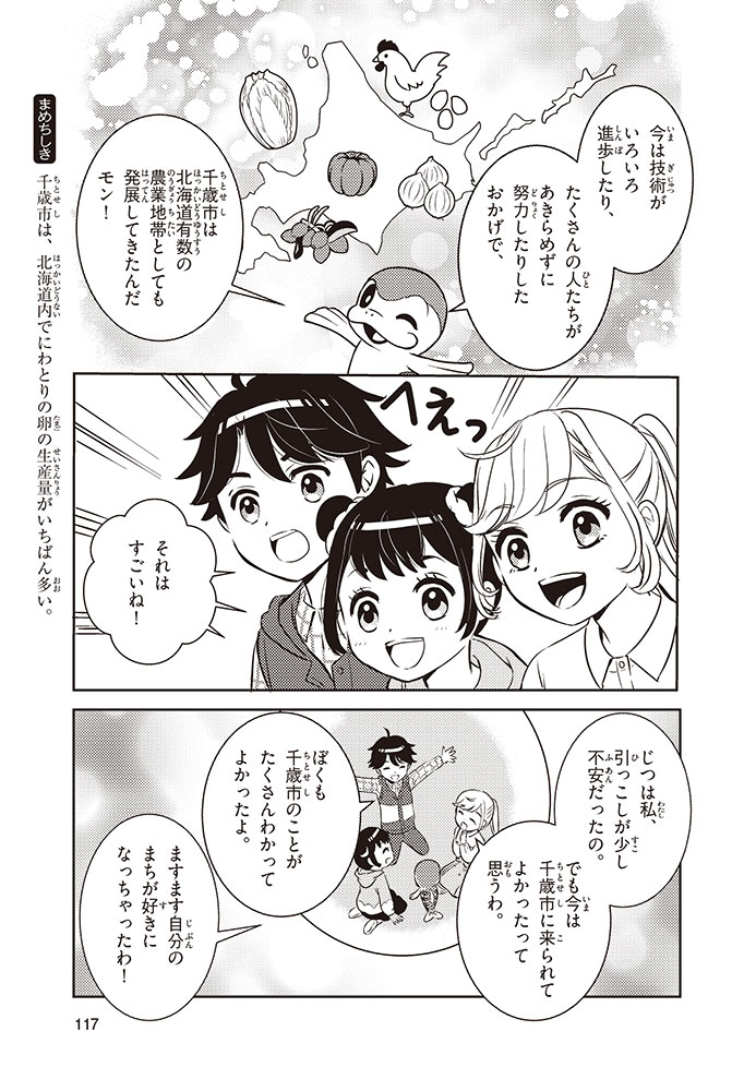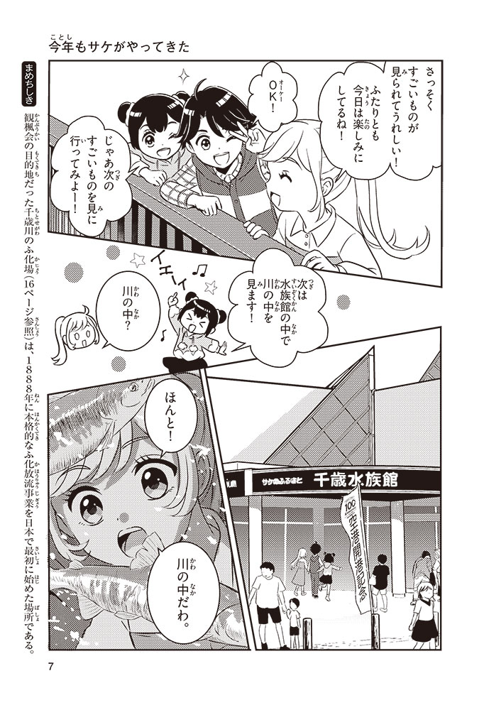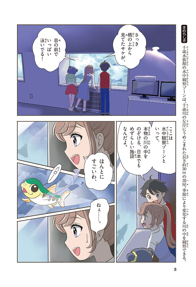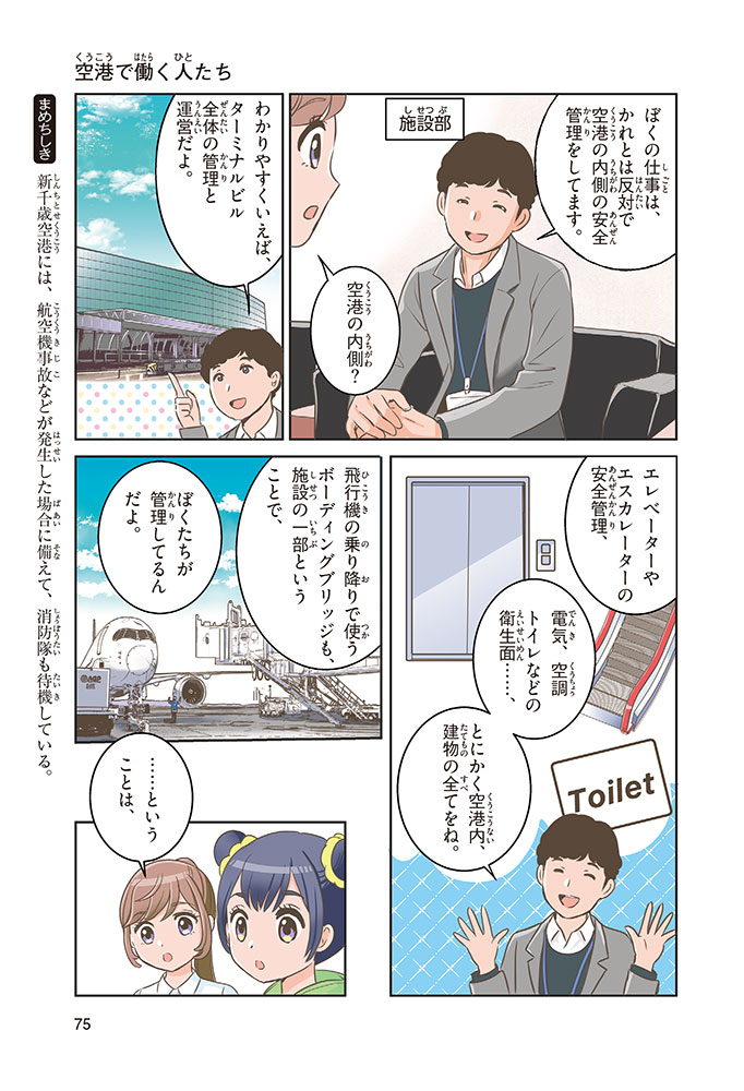 北海道の空の玄関口として、道内や日本中の空港だけでなく、世界のいろいろな国や地域と北海道をつないでいる、新千歳空港。その新千歳空港があるのが、北海道千歳市なんだ。千歳の空港には、地域の人びとの「飛行機が見たい!」という熱い思いから生まれた、100年の歴史があるって……。本書は、小学生のコウキ、ユキ、モモが、千歳っ子みんなの友だち・サケの妖精のサモンくんの案内で、千歳の空港の100年の歴史や現在の新千歳空港のこと、また支笏湖やキウス周堤墓群などの千歳市の魅力をたくさん知ることになります。みんなもこの本を読めば、千歳市の歴史とひみつがよくわかるよ!