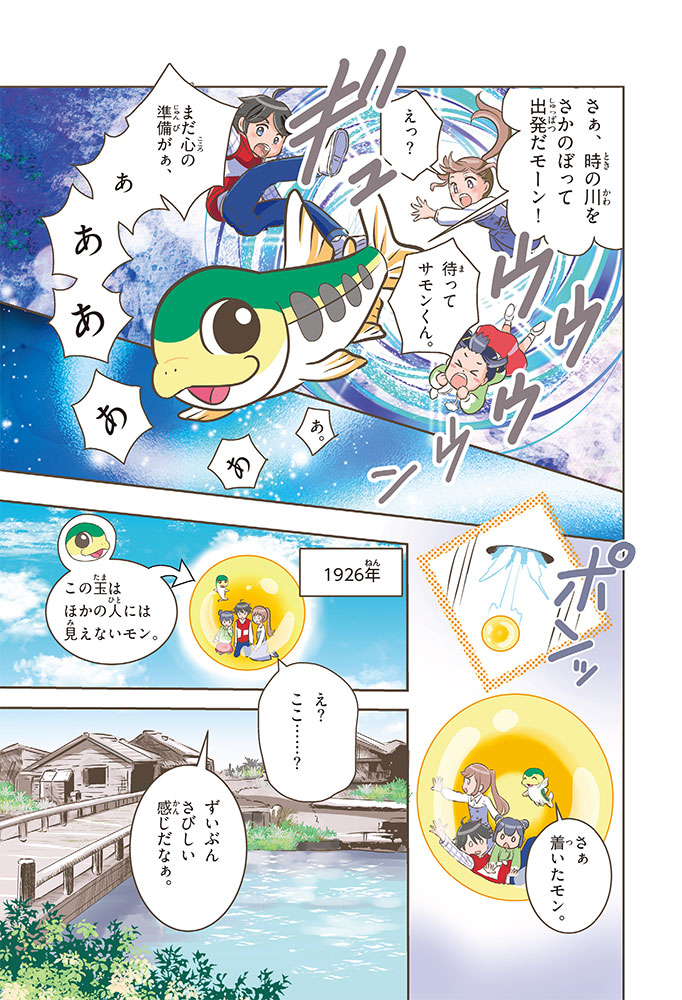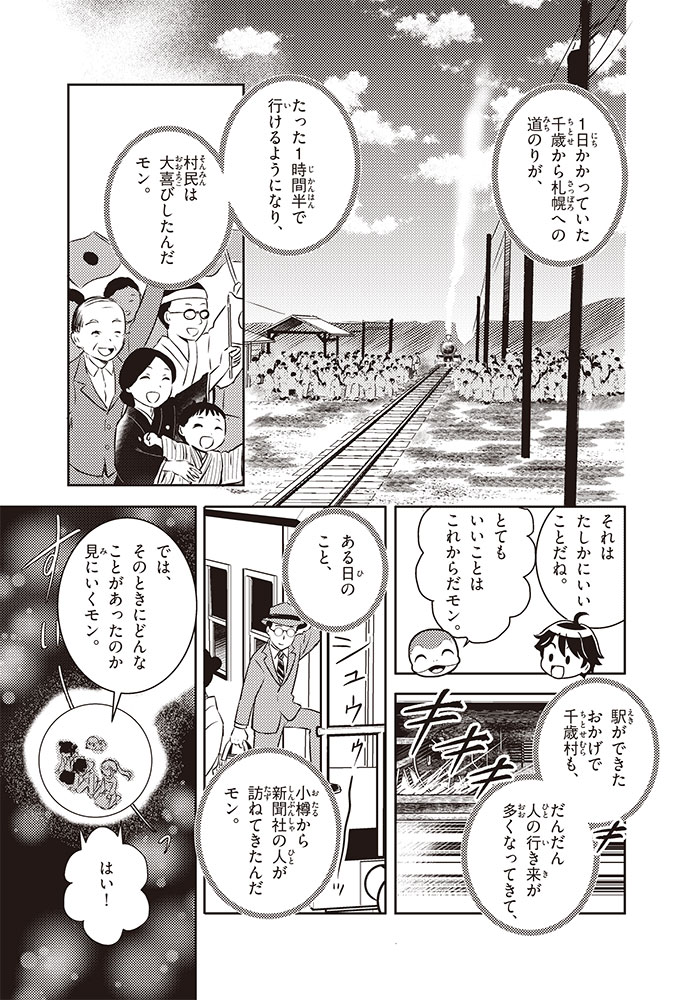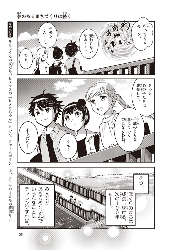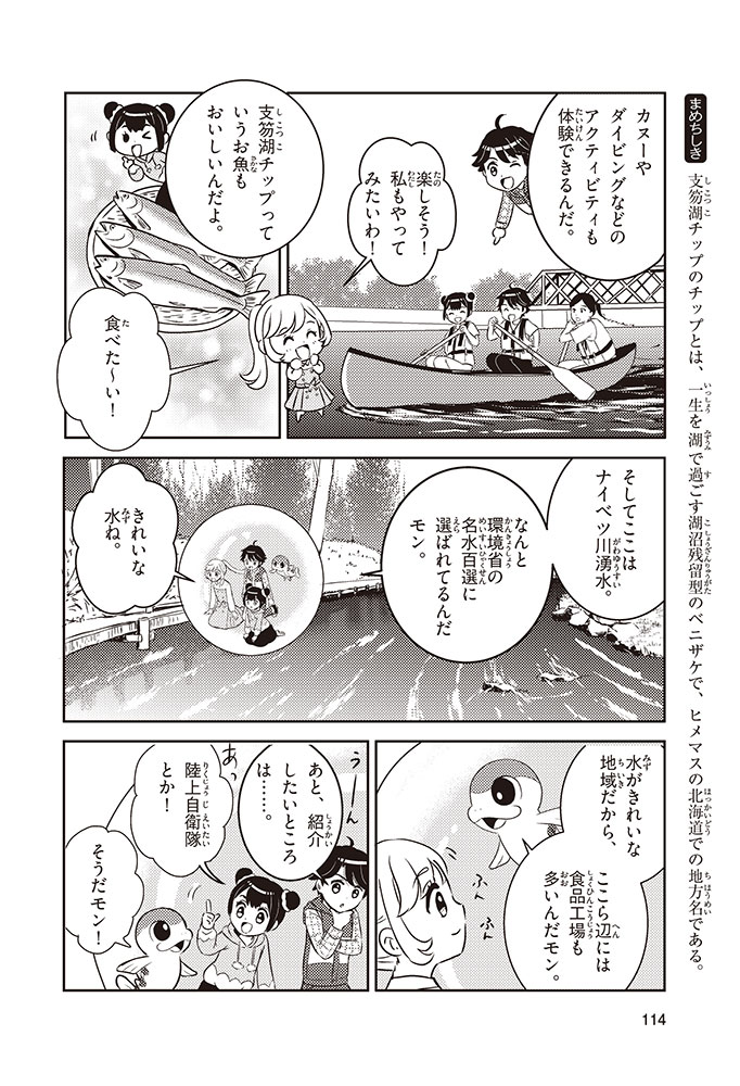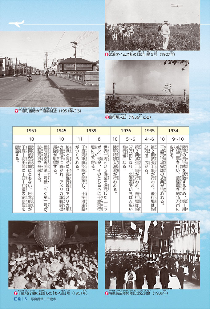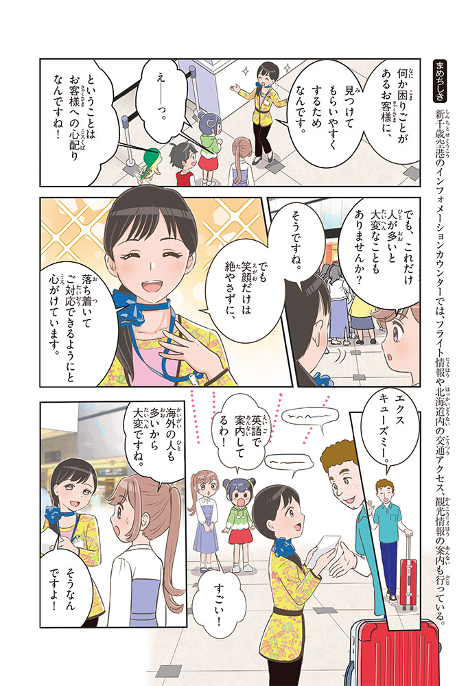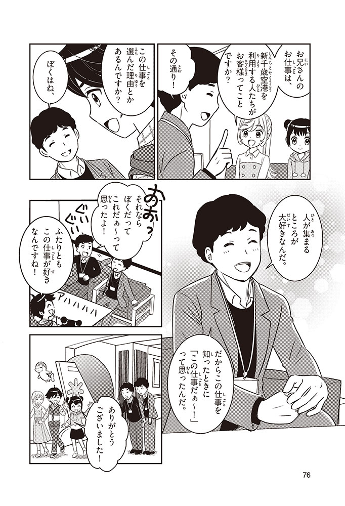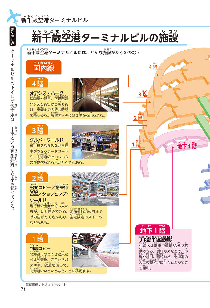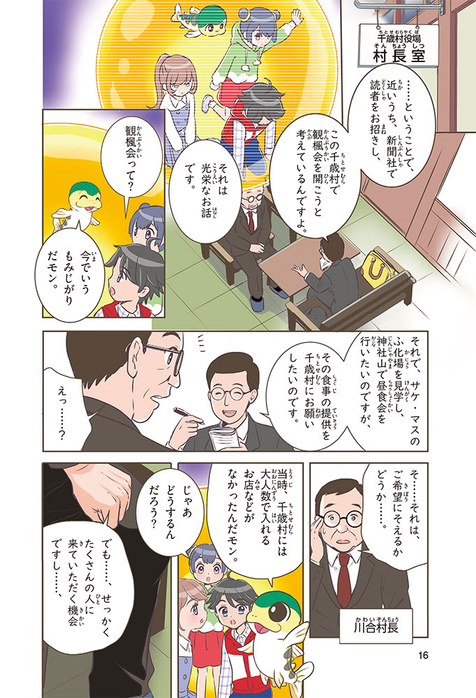北海道の空の玄関口として、道内や日本中の空港だけでなく、世界のいろいろな国や地域と北海道をつないでいる、新千歳空港。その新千歳空港があるのが、北海道千歳市なんだ。千歳の空港には、地域の人びとの「飛行機が見たい!」という熱い思いから生まれた、100年の歴史があるって……。本書は、小学生のコウキ、ユキ、モモが、千歳っ子みんなの友だち・サケの妖精のサモンくんの案内で、千歳の空港の100年の歴史や現在の新千歳空港のこと、また支笏湖やキウス周堤墓群などの千歳市の魅力をたくさん知ることになります。みんなもこの本を読めば、千歳市の歴史とひみつがよくわかるよ!