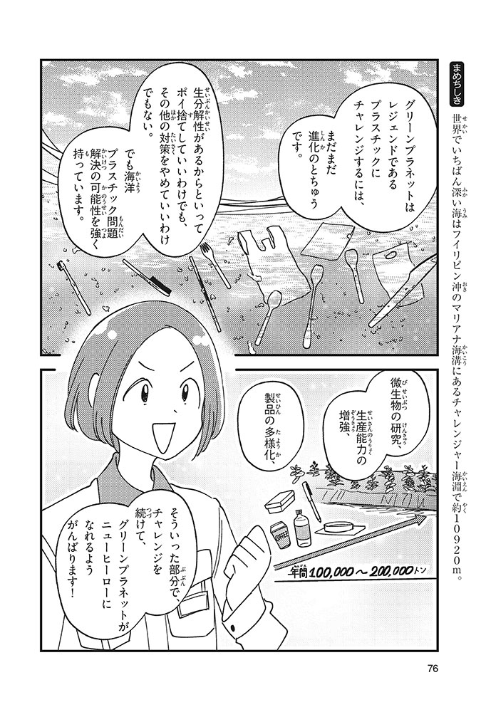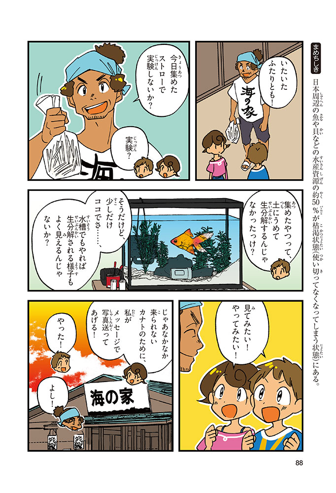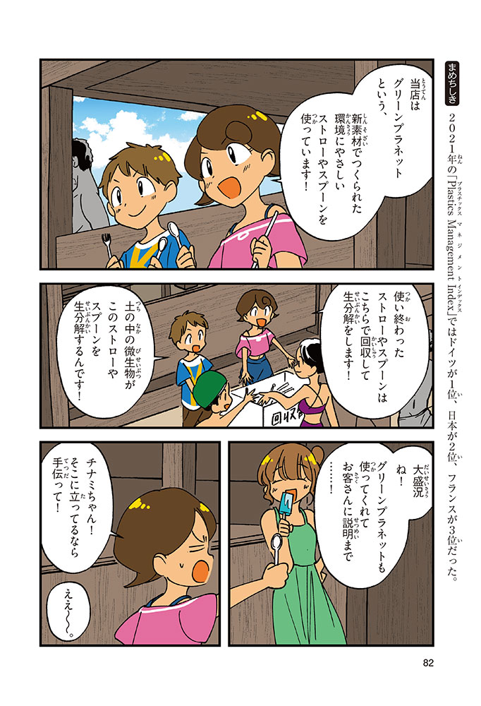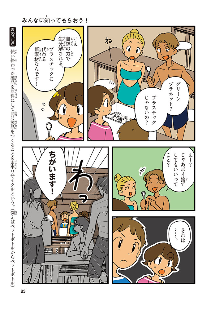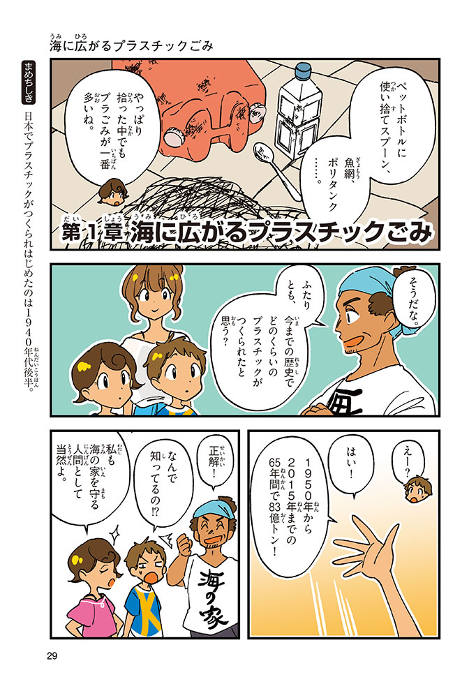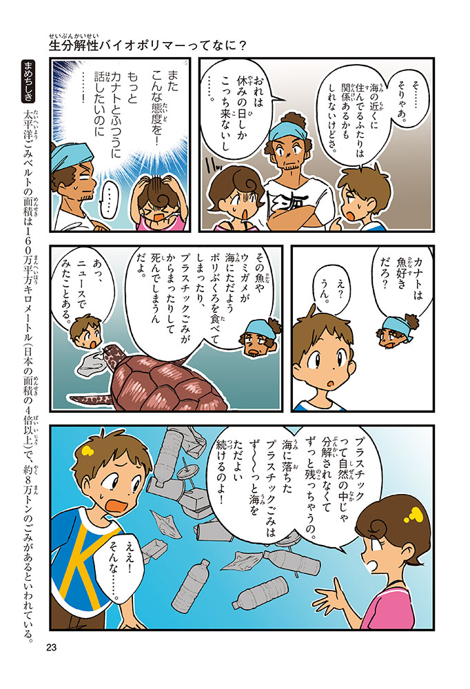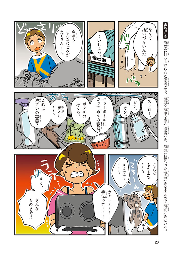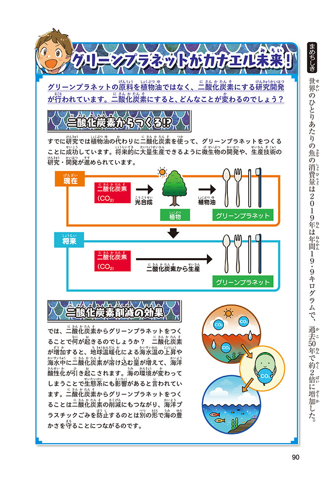 SDGsの目標14「海の豊かさを守ろう」は海の生き物の多様性を守るため、持続可能な漁業や海洋ごみの削減について呼びかけているよ。この本では、捨てられた漁の道具やペットボトルやそのキャップなど、海洋ごみで大きな割合を占める「プラスチック」をテーマに問題解決のためのヒントをたくさん紹介しているんだ。この本を読んで魚や貝、カメやイルカなど海の生き物の命を守るため、普段の生活の中でできることを考えてみよう!