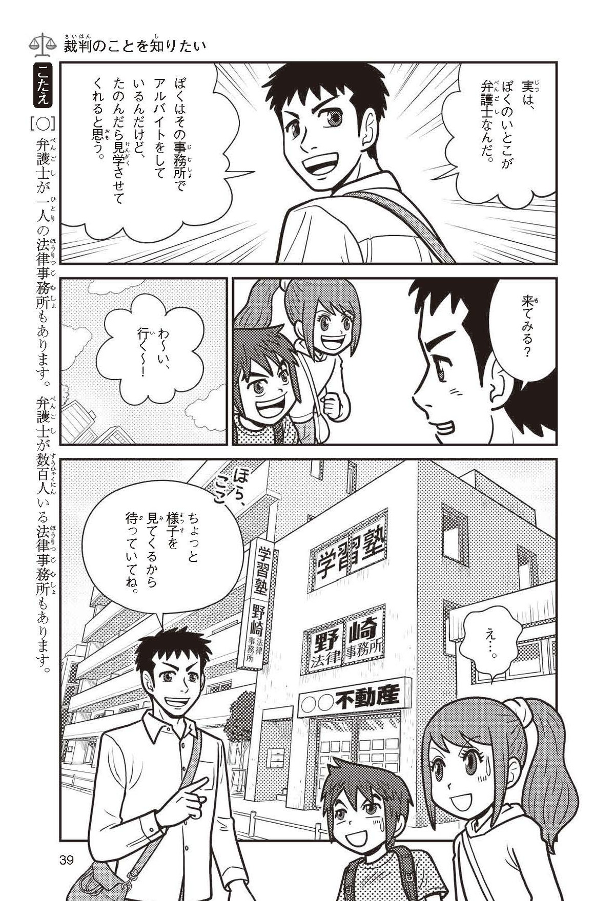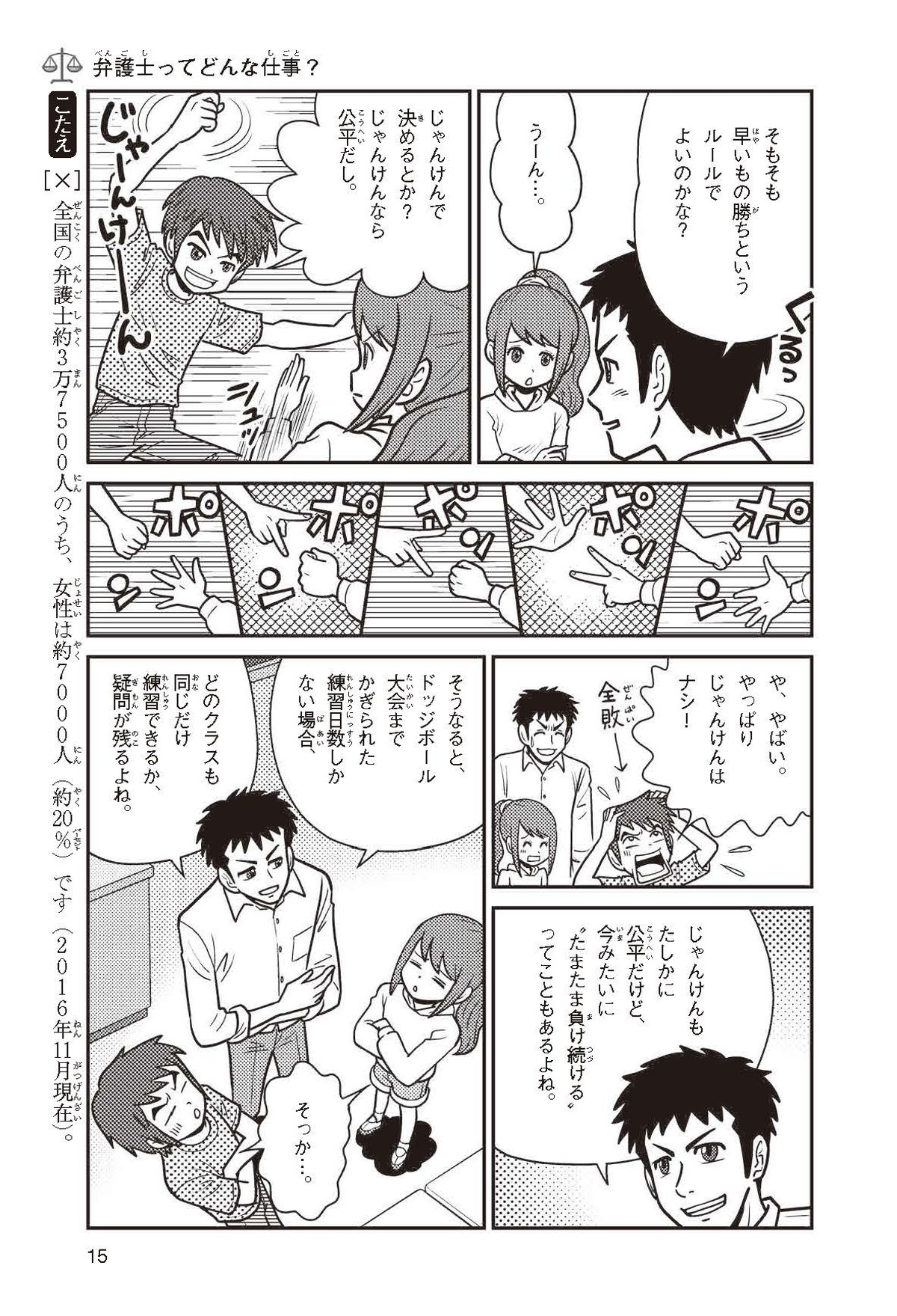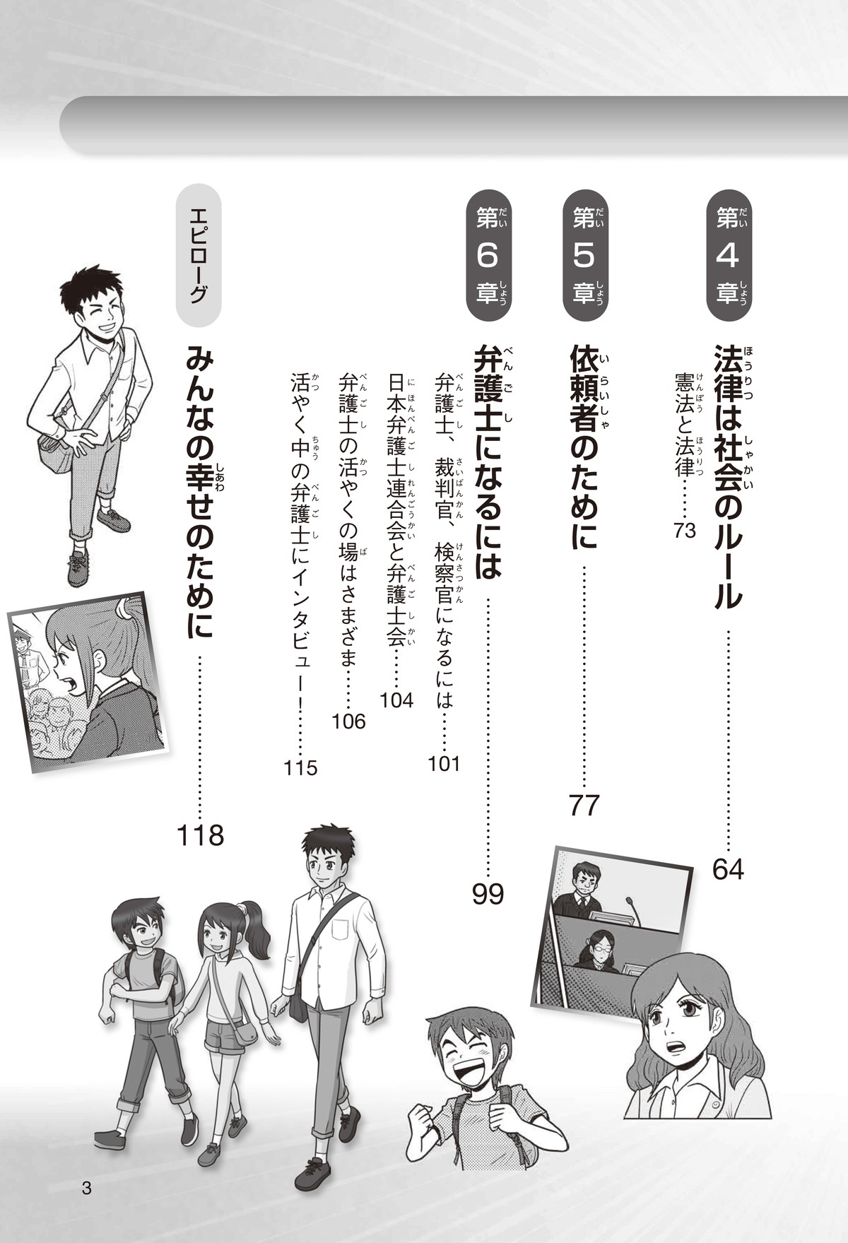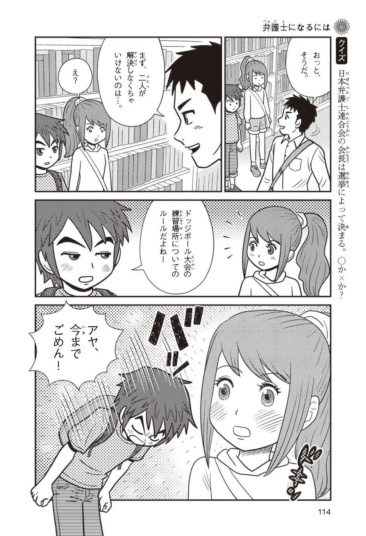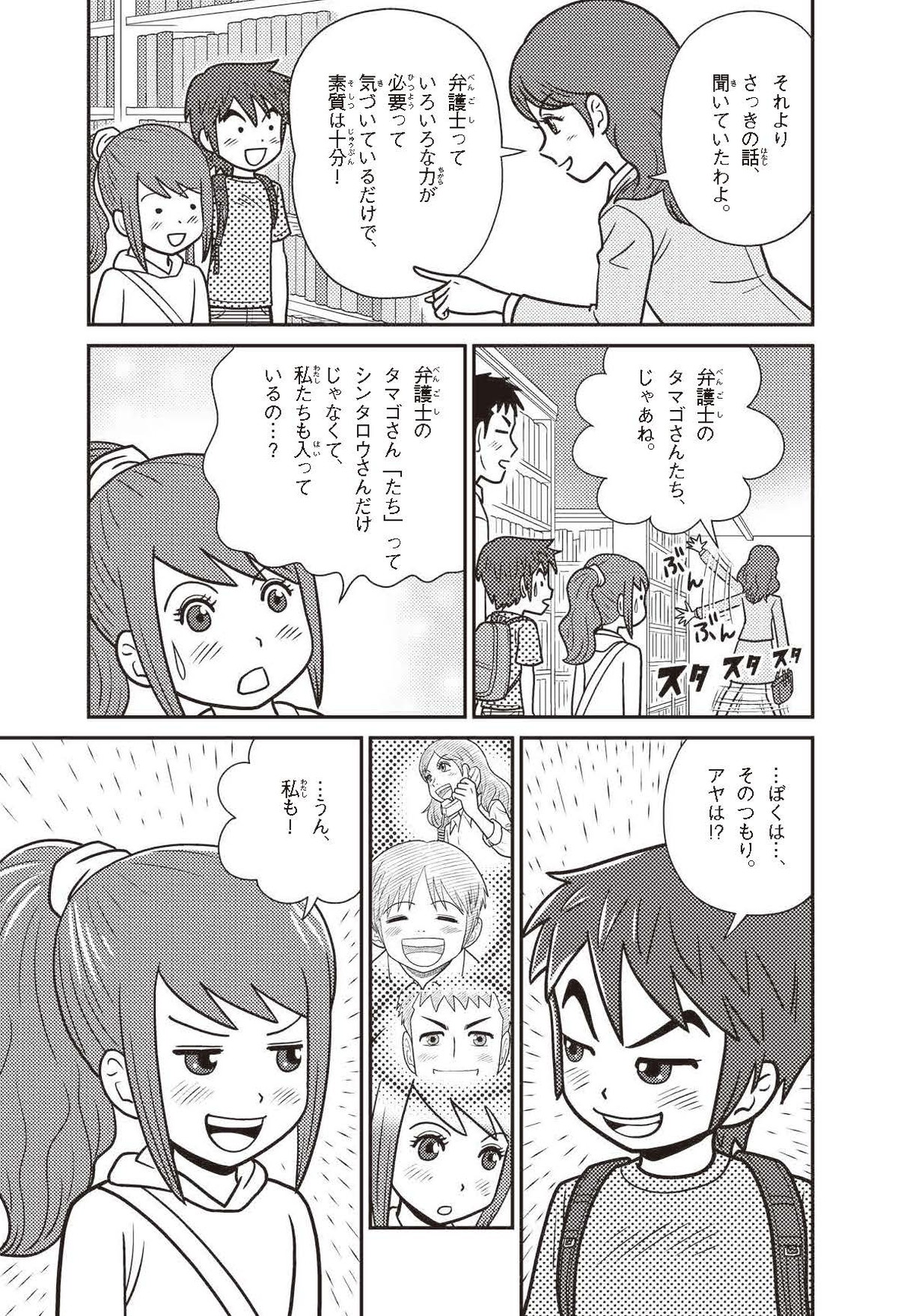 小学6年生のアヤとコウタは、同じ演劇(えんげき)クラブに所属(しょぞく)する仲間。だけど、ドッジボール大会の練習場所をめぐって言い争いになってしまうよ。演劇クラブのコーチで弁護士(べんごし)を目指す大学生、シンタロウが仲裁(ちゅうさい)してくれたのをきっかけに、弁護士の仕事に興味(きょうみ)を持ったアヤとコウタ。ふたりは、シンタロウといっしょに、裁判の現場(げんば)や法科大学院などに出かけ、弁護士の仕事のひみつをさぐっていくよ。