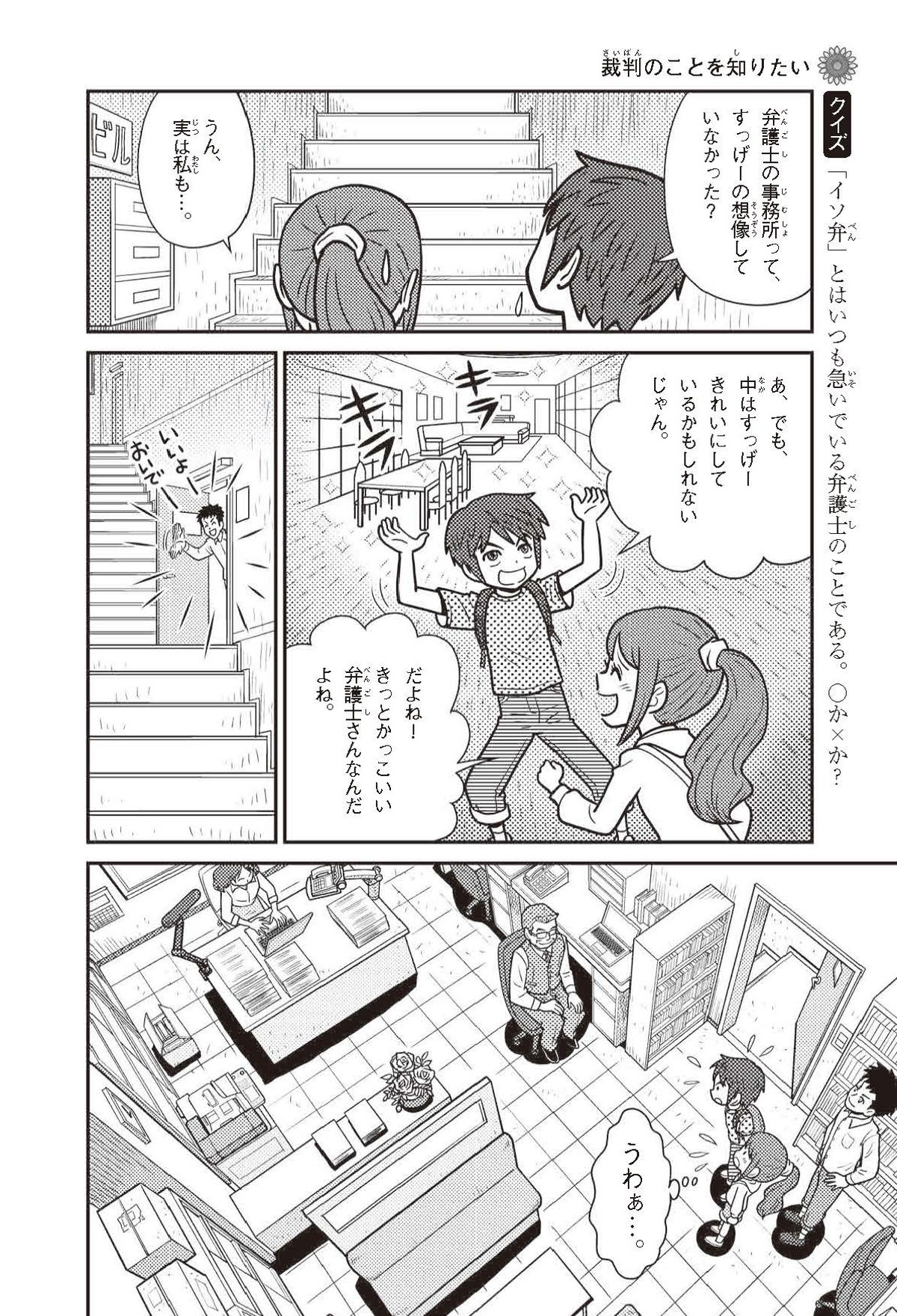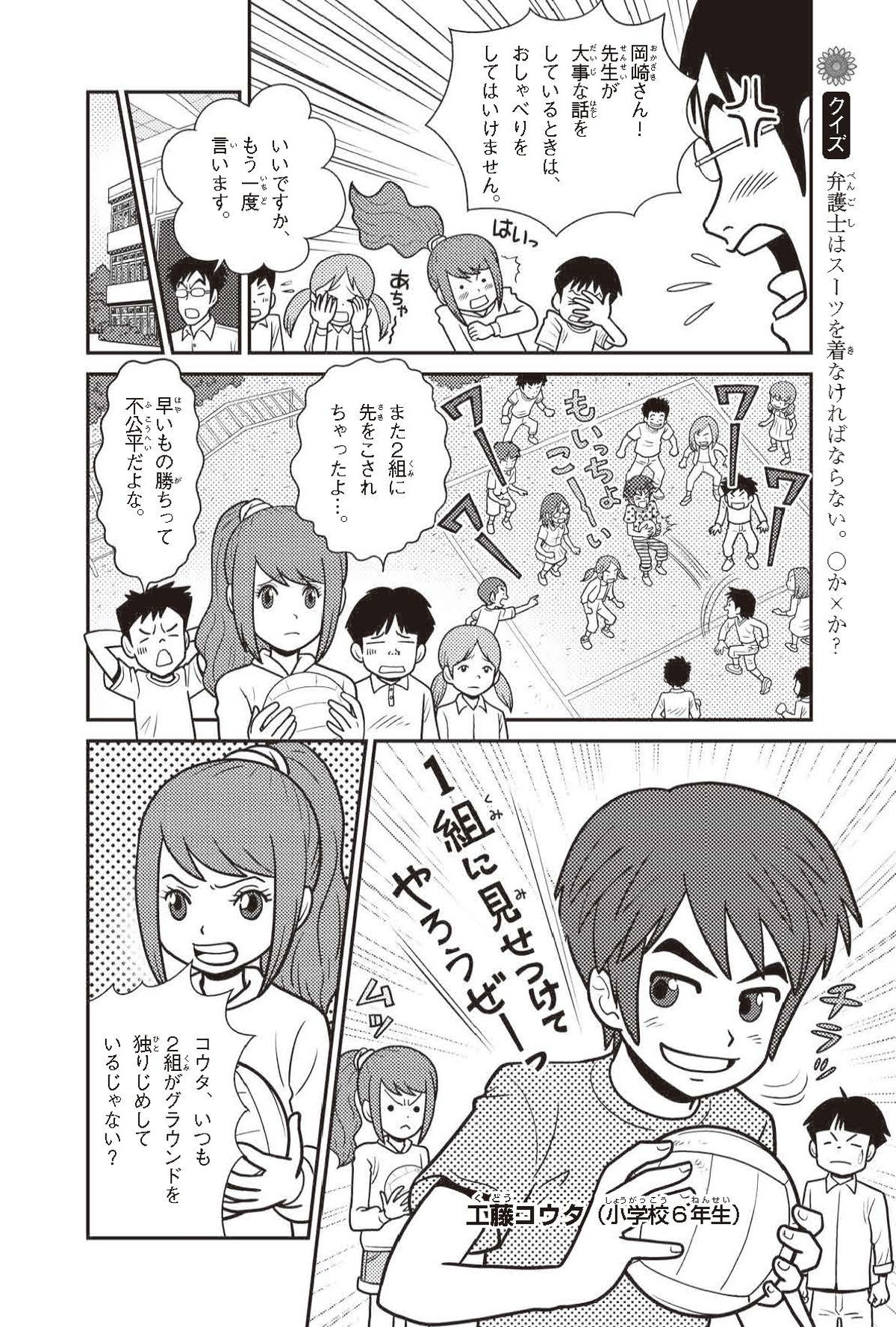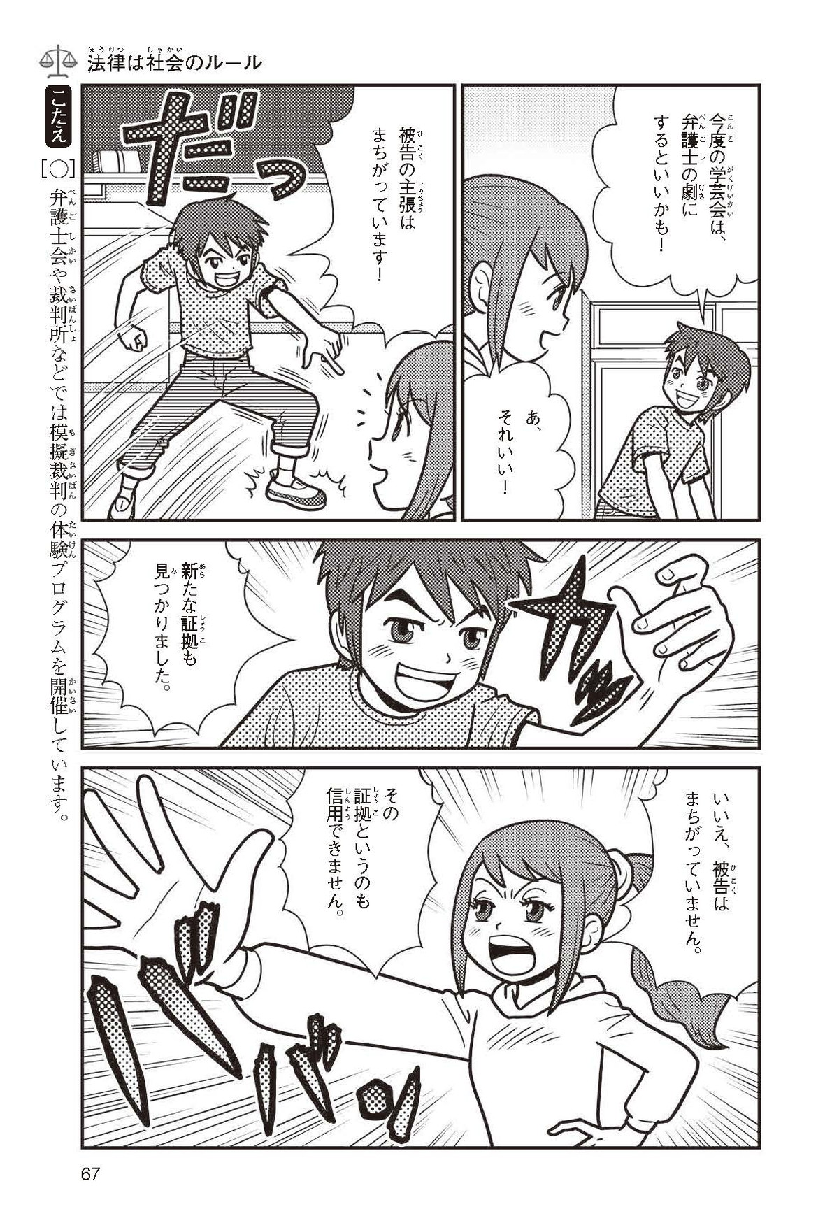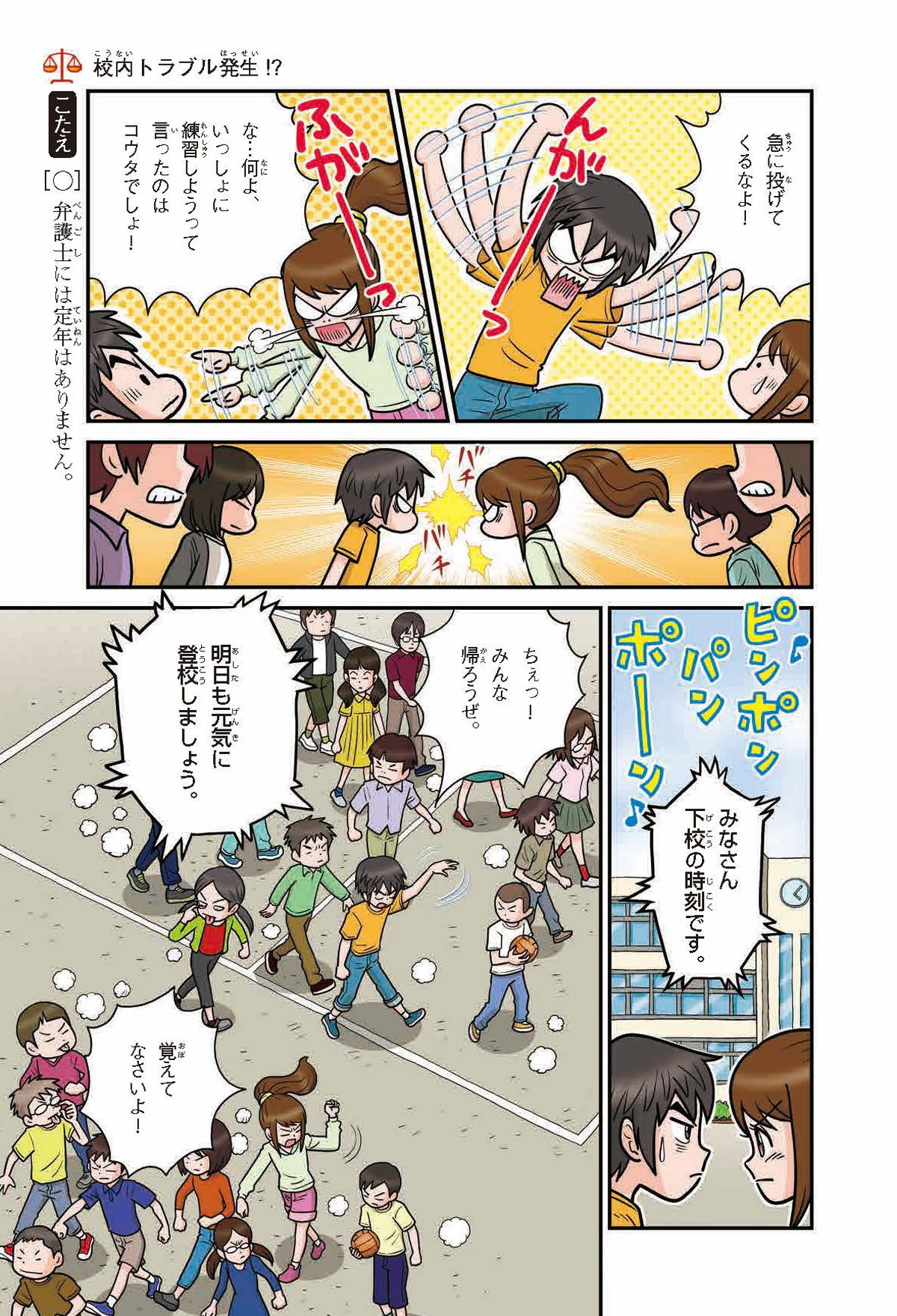 小学6年生のアヤとコウタは、同じ演劇(えんげき)クラブに所属(しょぞく)する仲間。だけど、ドッジボール大会の練習場所をめぐって言い争いになってしまうよ。演劇クラブのコーチで弁護士(べんごし)を目指す大学生、シンタロウが仲裁(ちゅうさい)してくれたのをきっかけに、弁護士の仕事に興味(きょうみ)を持ったアヤとコウタ。ふたりは、シンタロウといっしょに、裁判の現場(げんば)や法科大学院などに出かけ、弁護士の仕事のひみつをさぐっていくよ。
