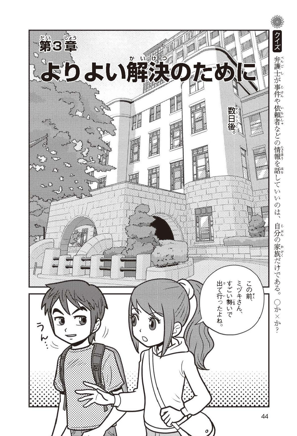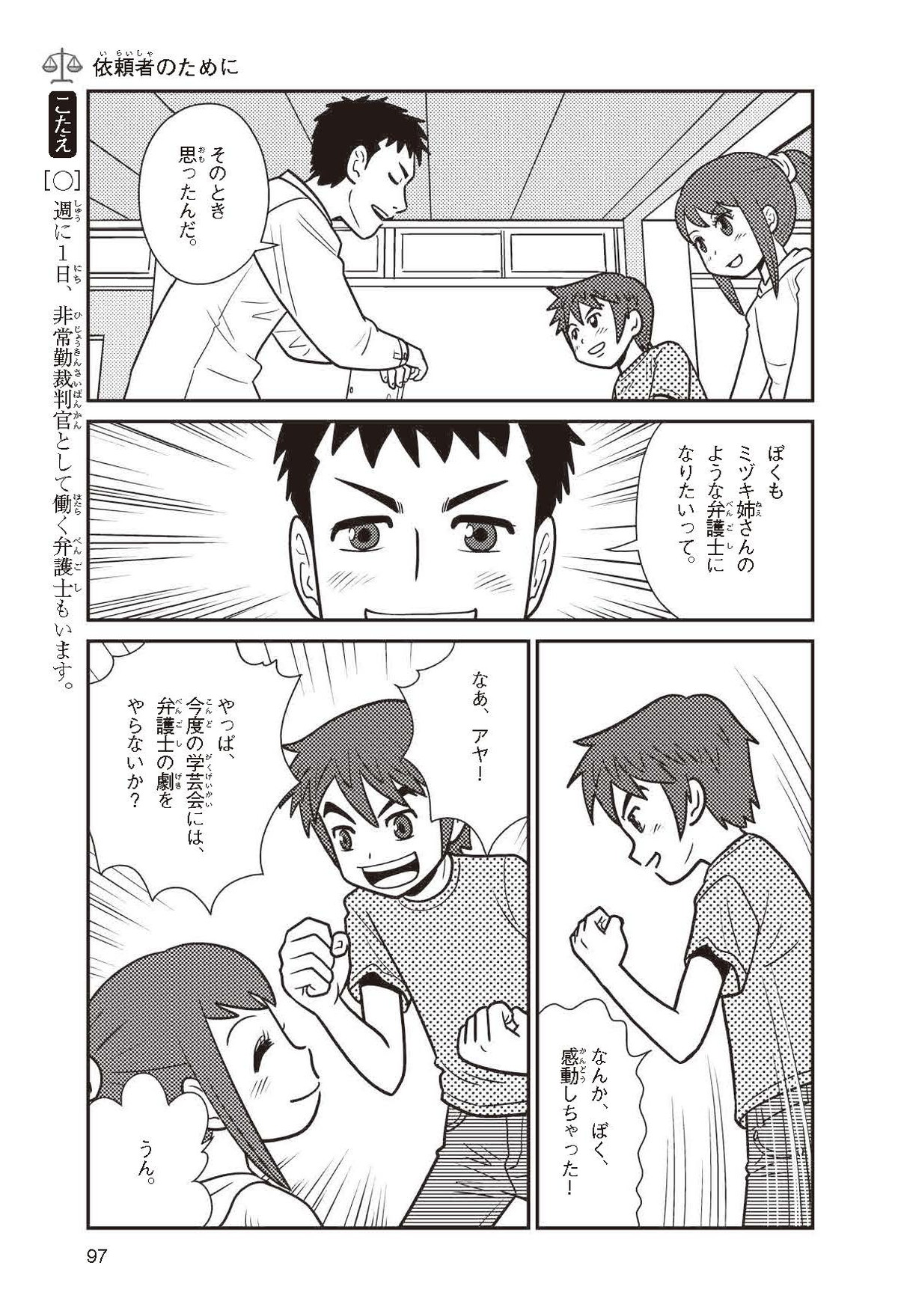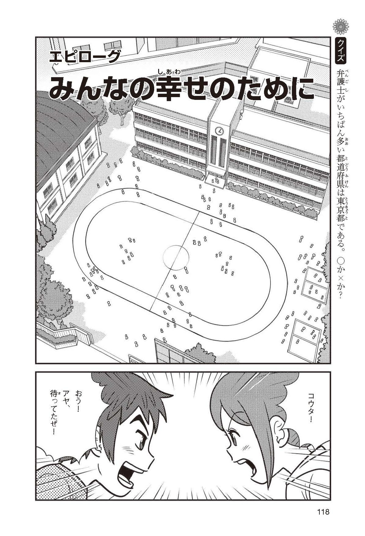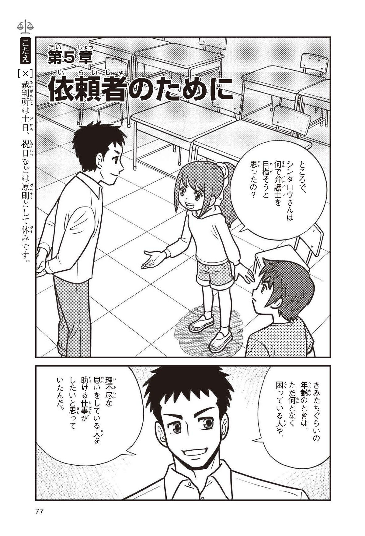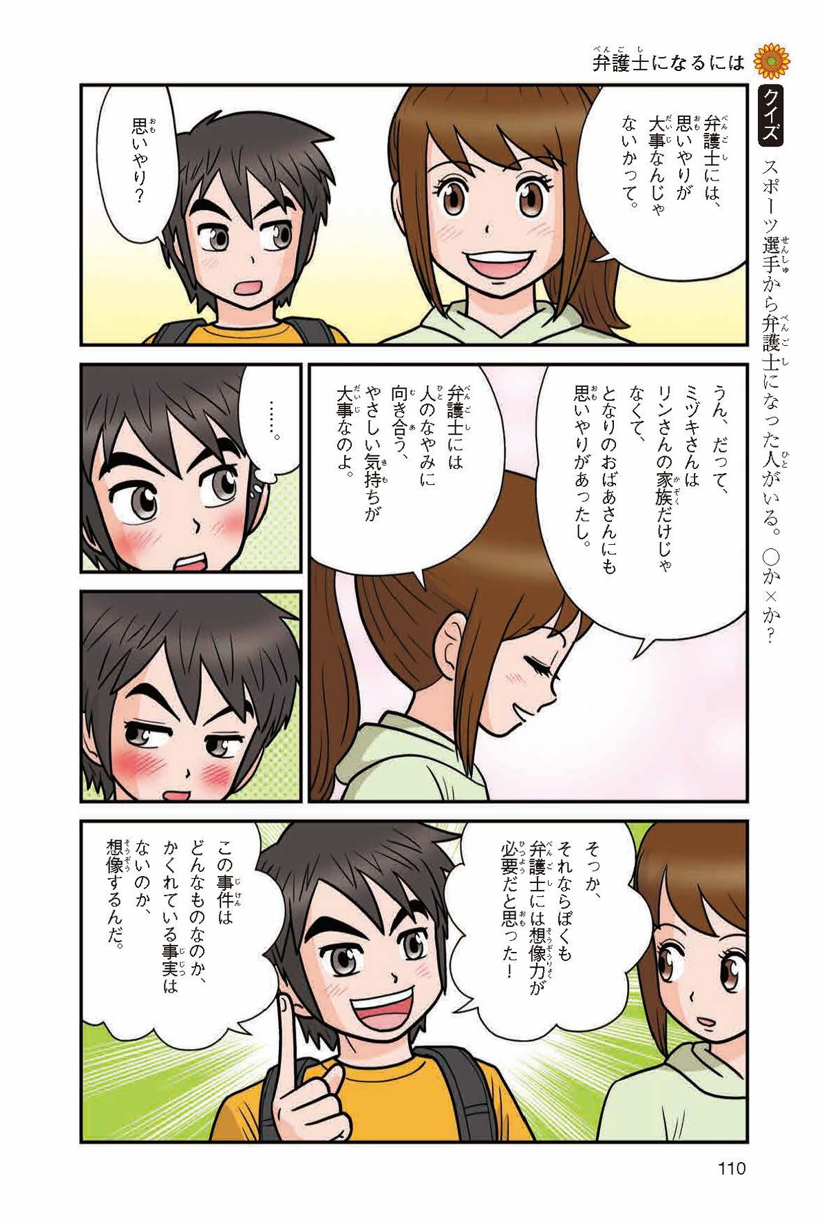 小学6年生のアヤとコウタは、同じ演劇(えんげき)クラブに所属(しょぞく)する仲間。だけど、ドッジボール大会の練習場所をめぐって言い争いになってしまうよ。演劇クラブのコーチで弁護士(べんごし)を目指す大学生、シンタロウが仲裁(ちゅうさい)してくれたのをきっかけに、弁護士の仕事に興味(きょうみ)を持ったアヤとコウタ。ふたりは、シンタロウといっしょに、裁判の現場(げんば)や法科大学院などに出かけ、弁護士の仕事のひみつをさぐっていくよ。