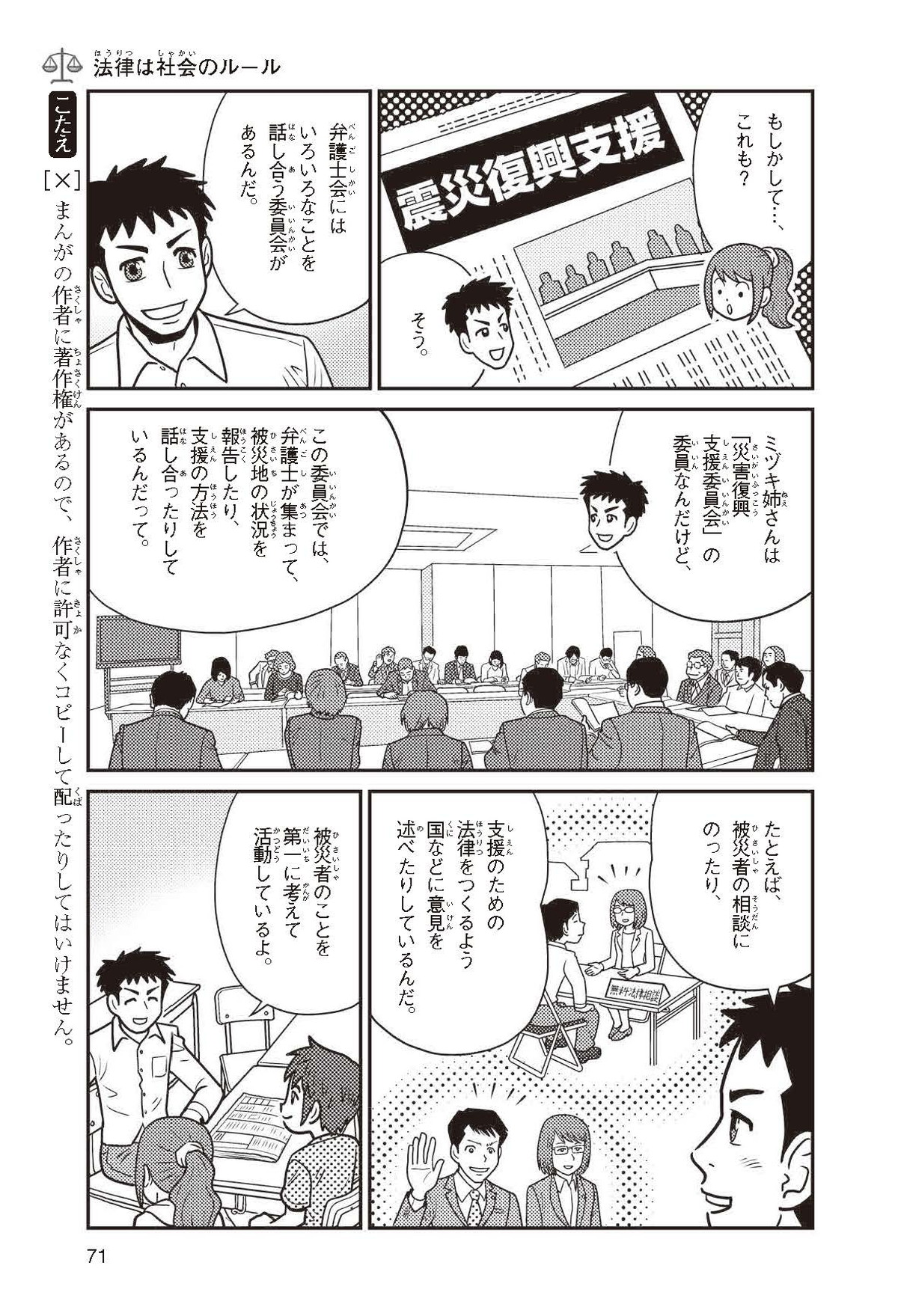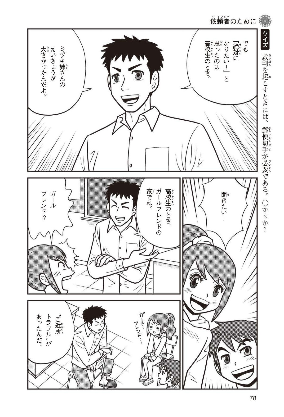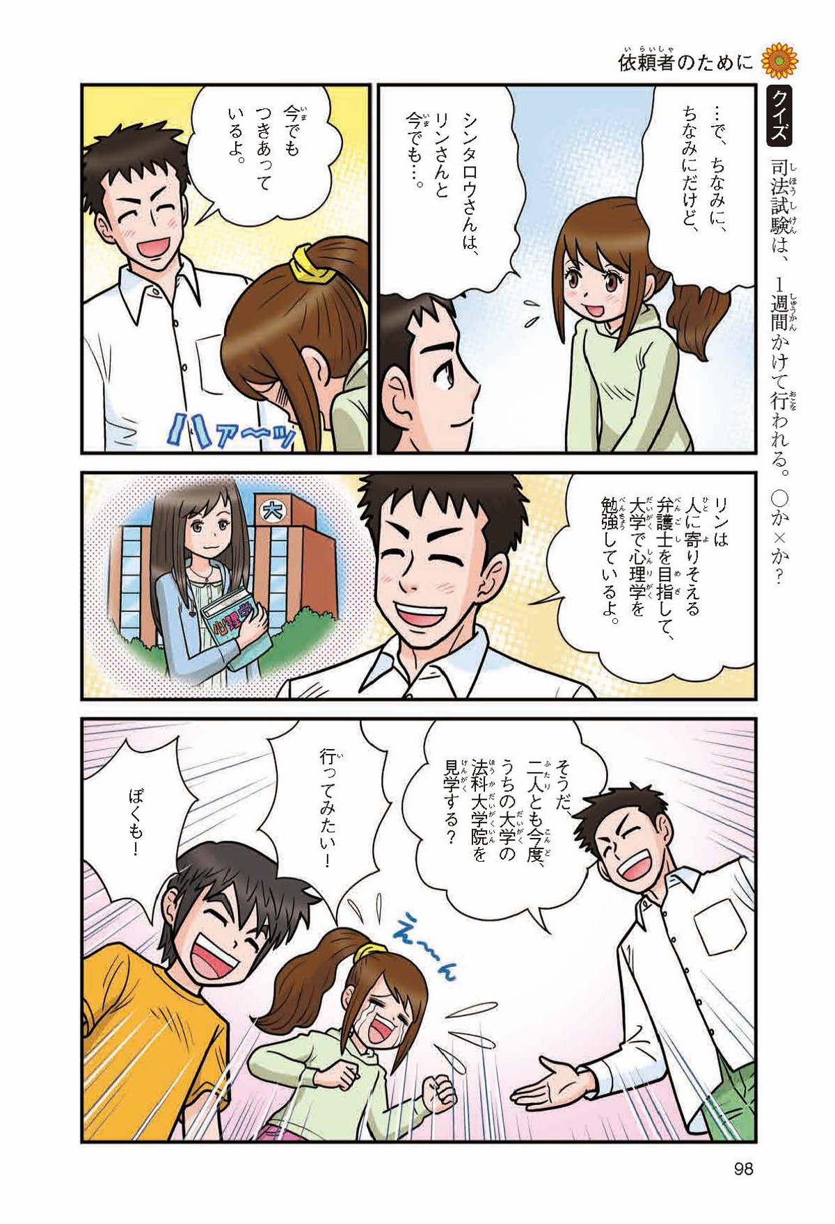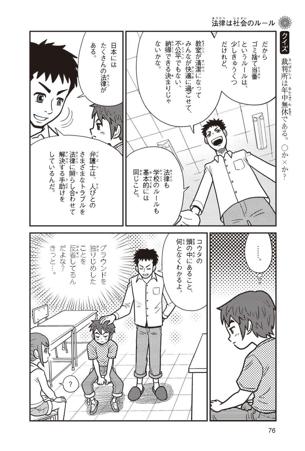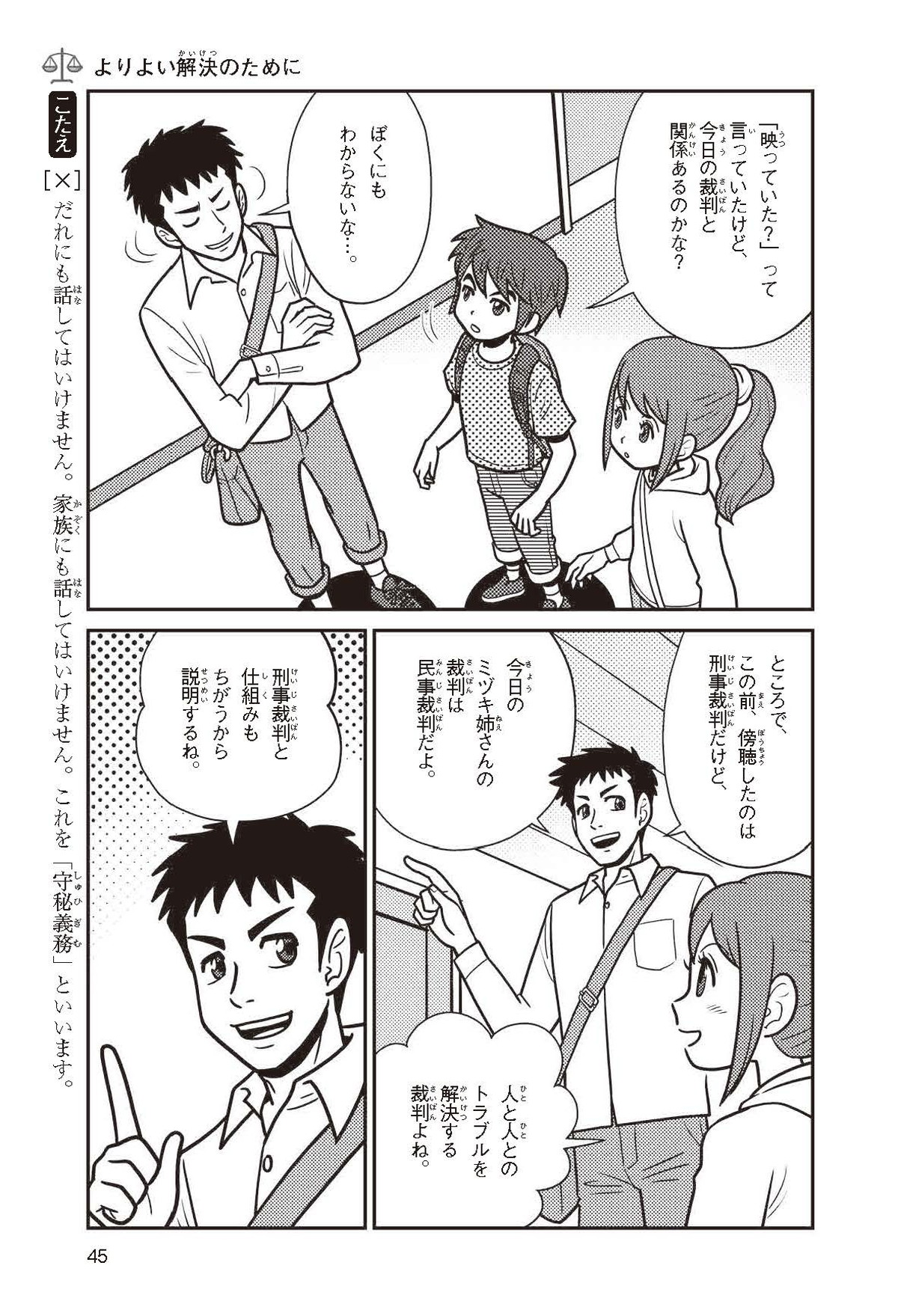小学6年生のアヤとコウタは、同じ演劇(えんげき)クラブに所属(しょぞく)する仲間。だけど、ドッジボール大会の練習場所をめぐって言い争いになってしまうよ。演劇クラブのコーチで弁護士(べんごし)を目指す大学生、シンタロウが仲裁(ちゅうさい)してくれたのをきっかけに、弁護士の仕事に興味(きょうみ)を持ったアヤとコウタ。ふたりは、シンタロウといっしょに、裁判の現場(げんば)や法科大学院などに出かけ、弁護士の仕事のひみつをさぐっていくよ。