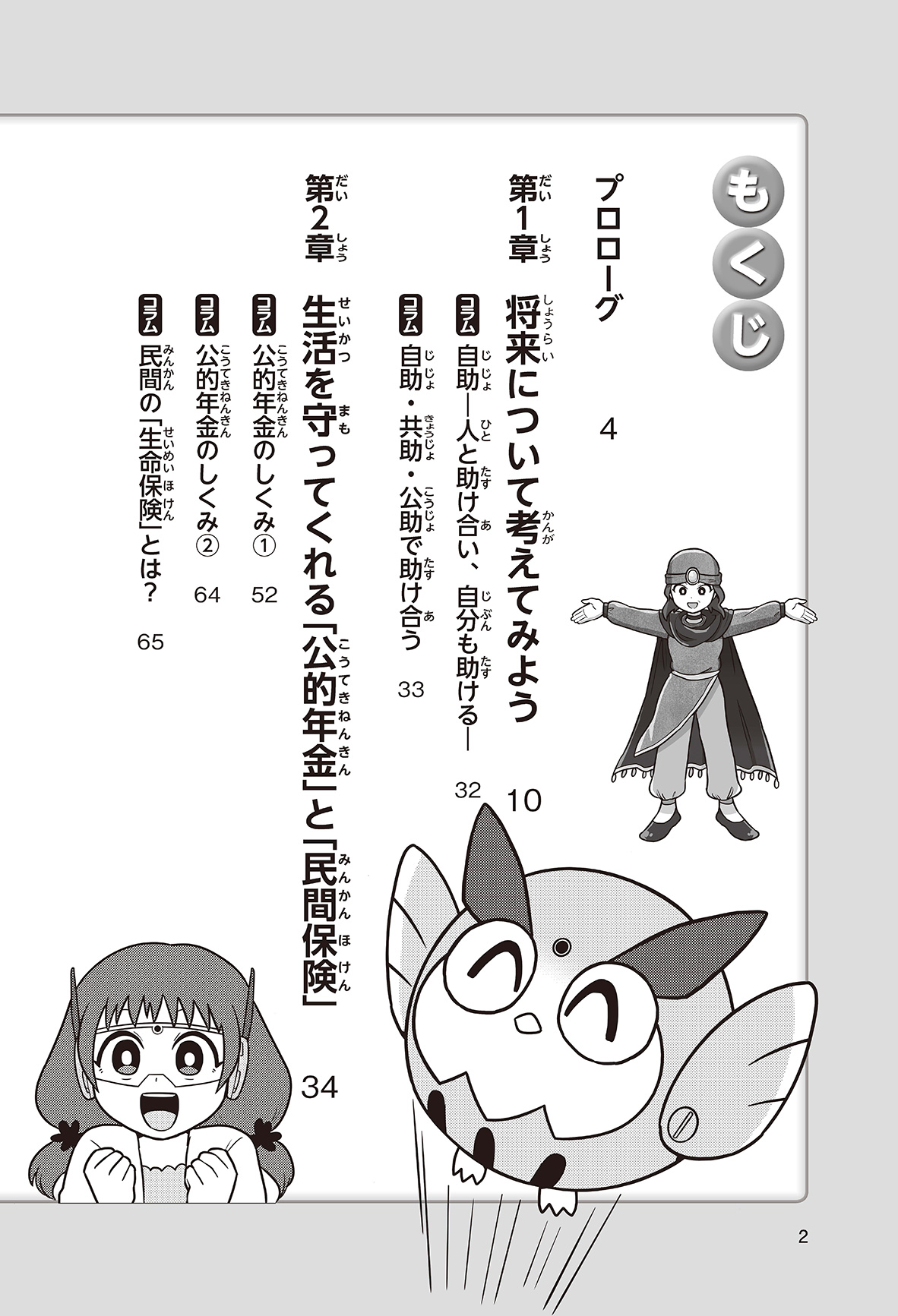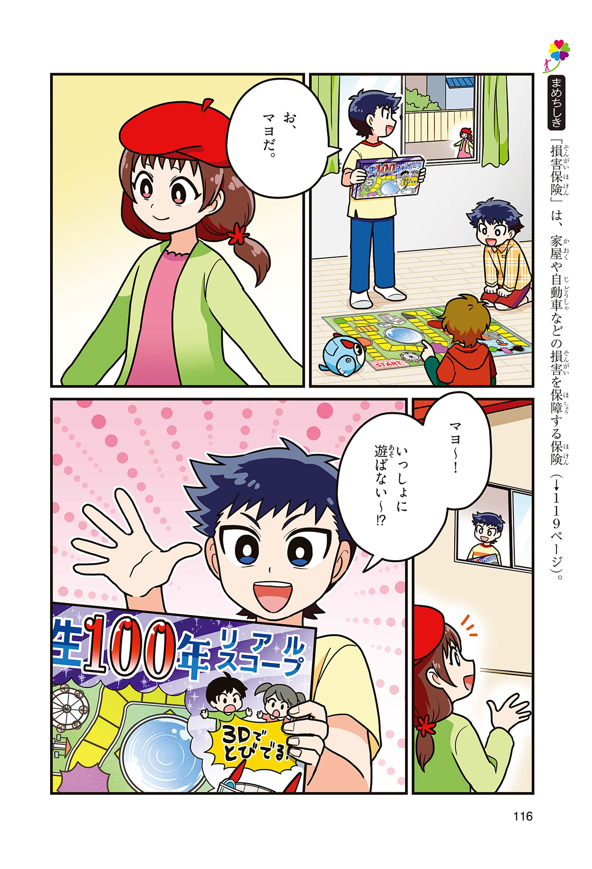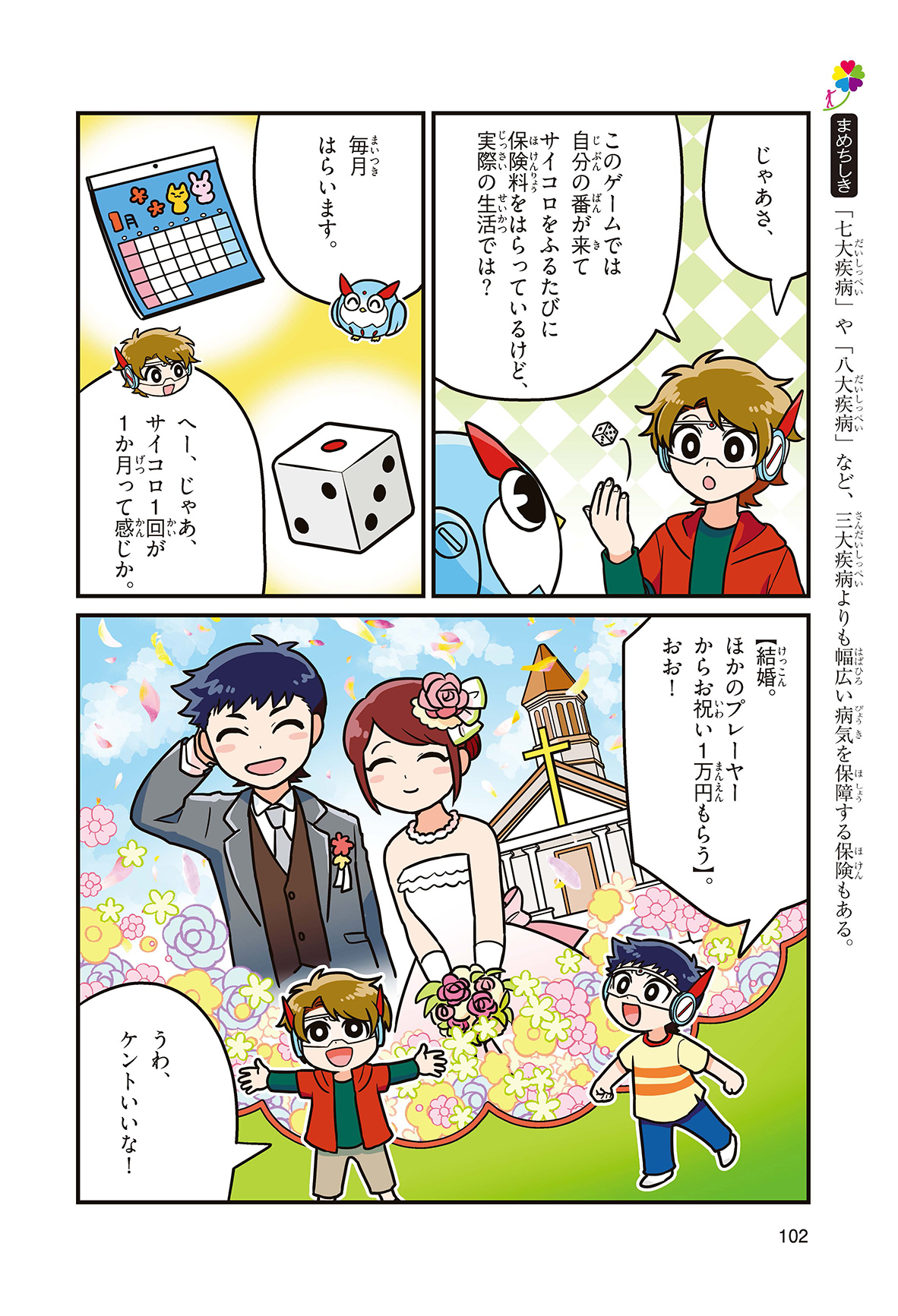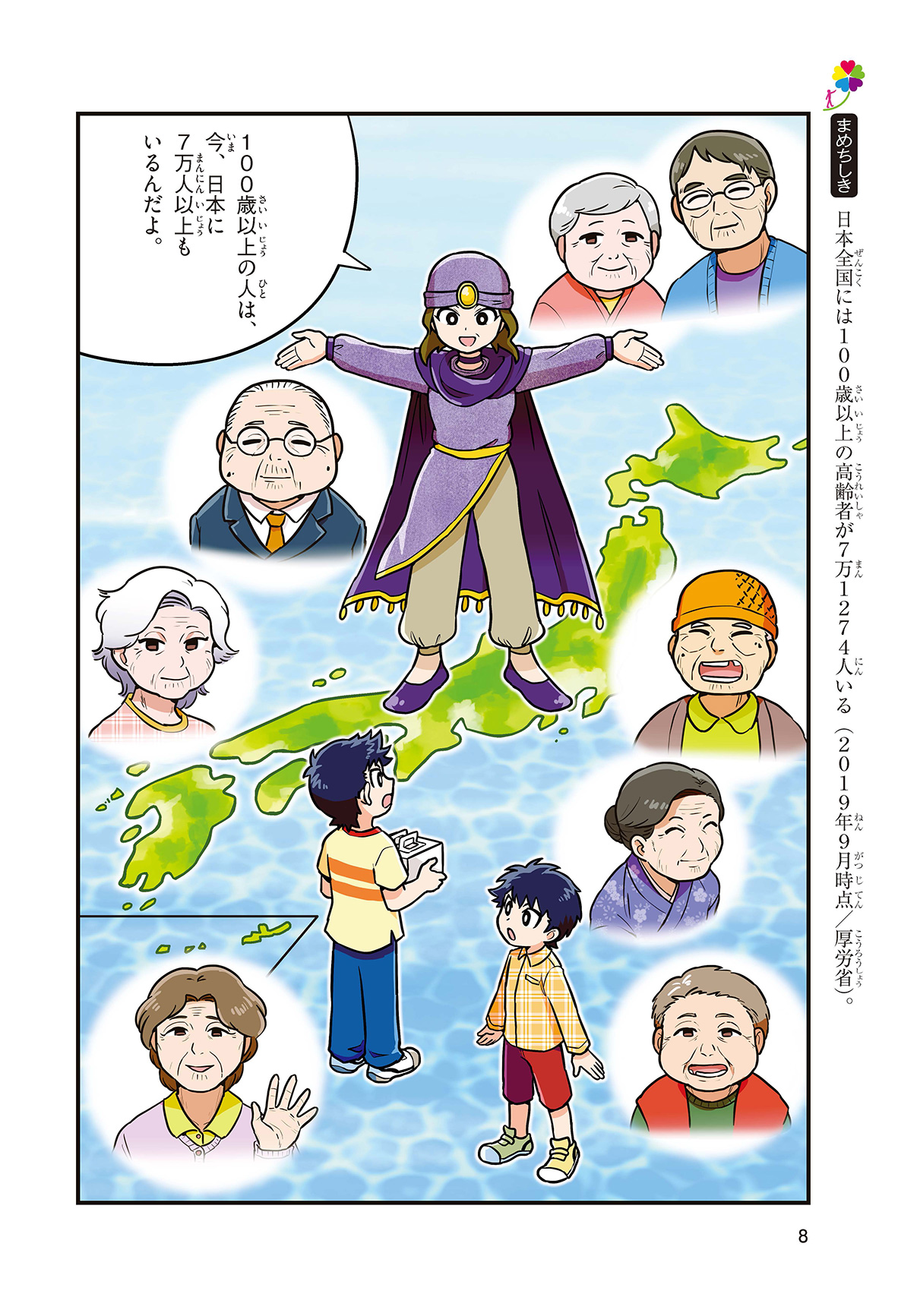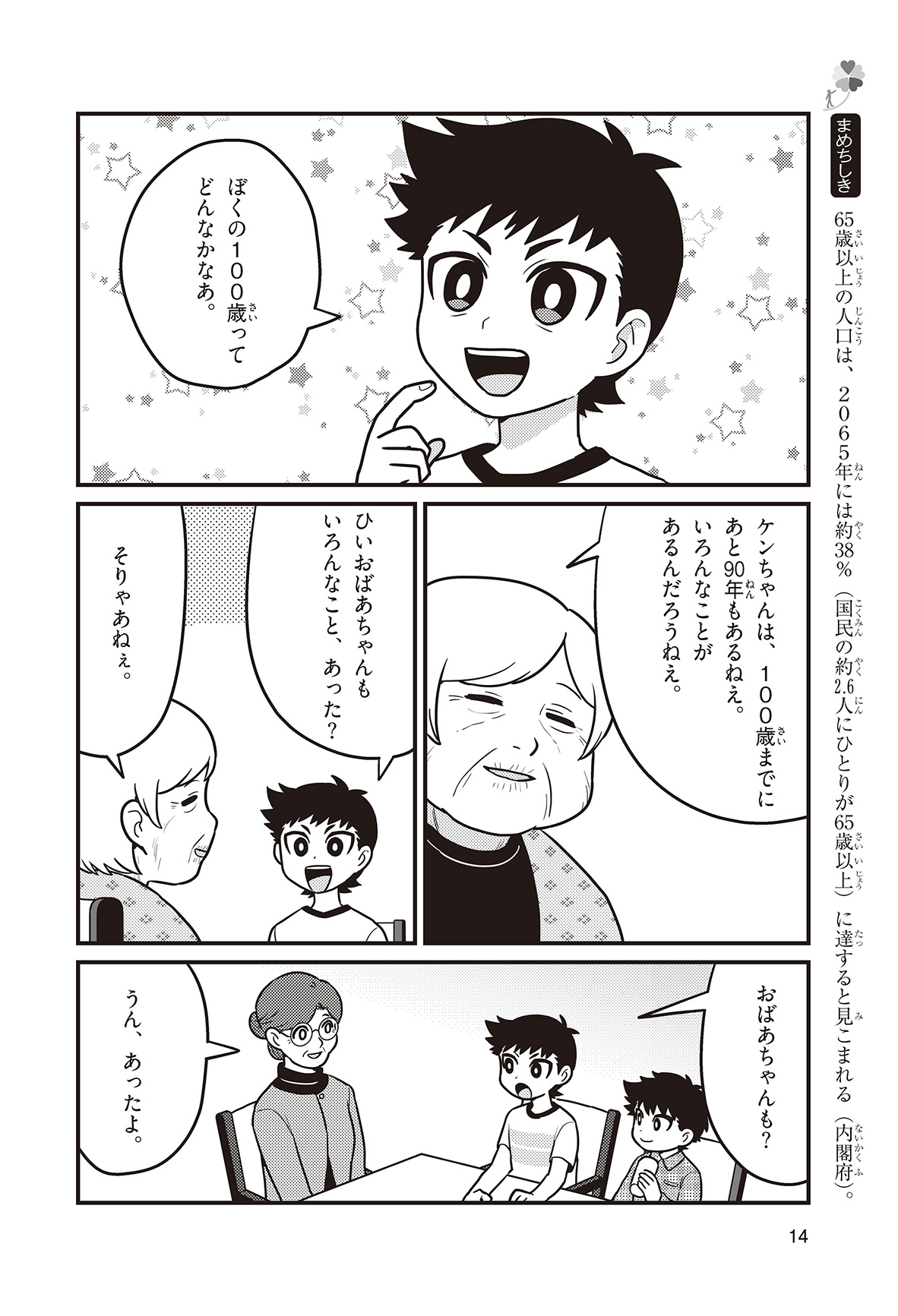 小学5年生のケントのひいおばあちゃんが100歳(さい)に! 100年の人生、色々なことがあったという話を聞くうちに、人生に起こるかもしれない危険(リスク)と、それに備える保険のしくみについて知りたくなるよ。ふしぎなゲーム『人生100年スコープ』を通じて、ケントたちと一緒に、自分らしい生き方や長い人生のために必要な準備、選択、そして自分で自分を助ける「自助」について、考えてみよう!