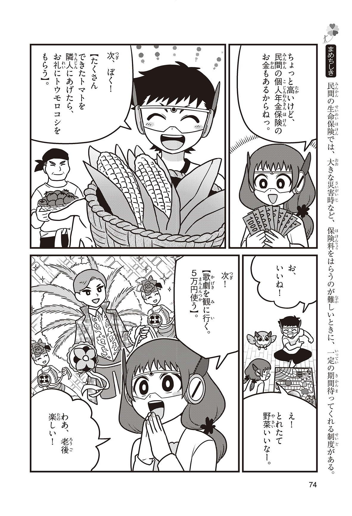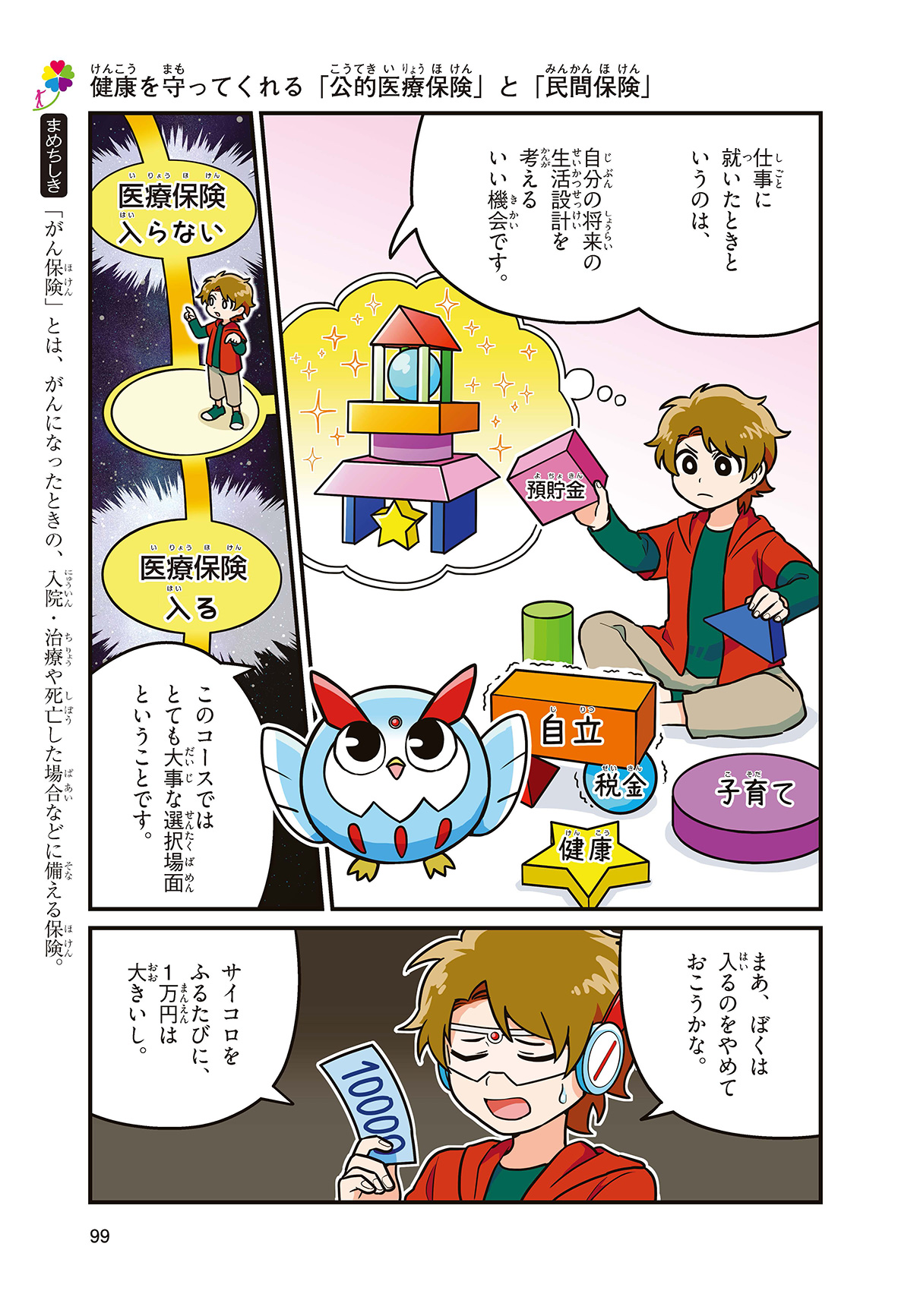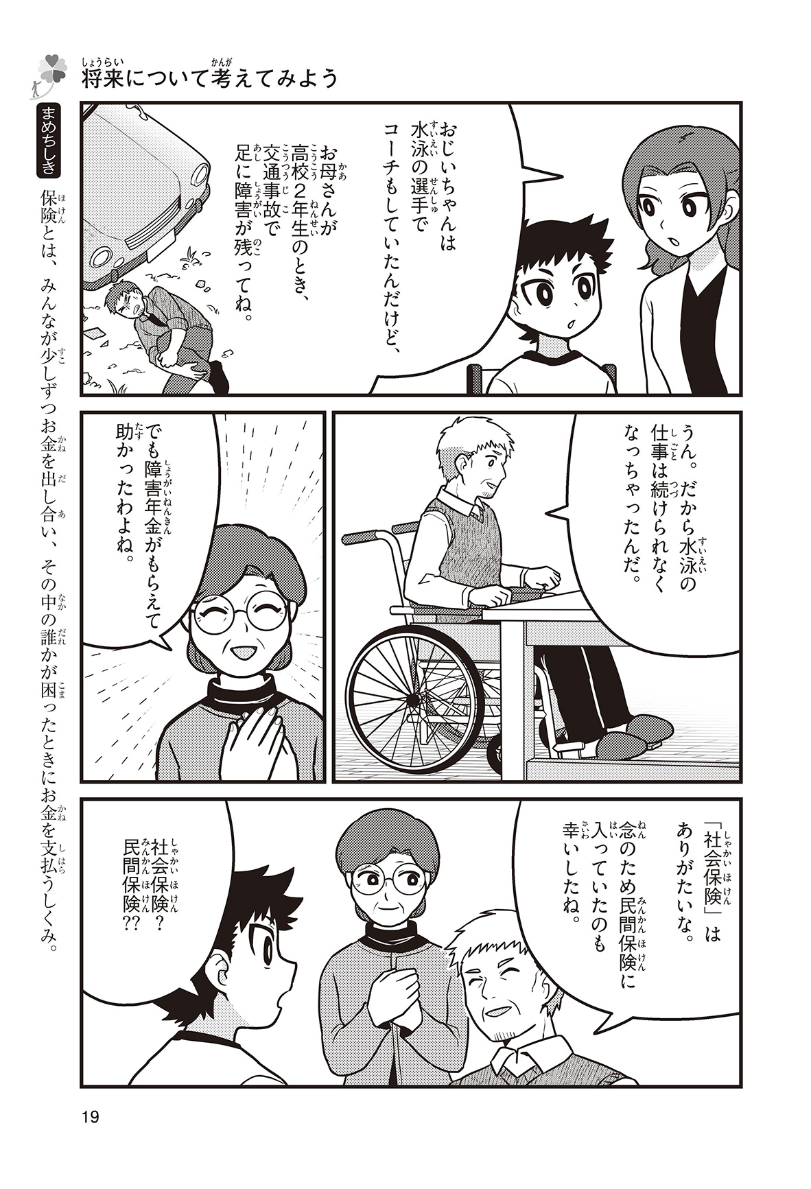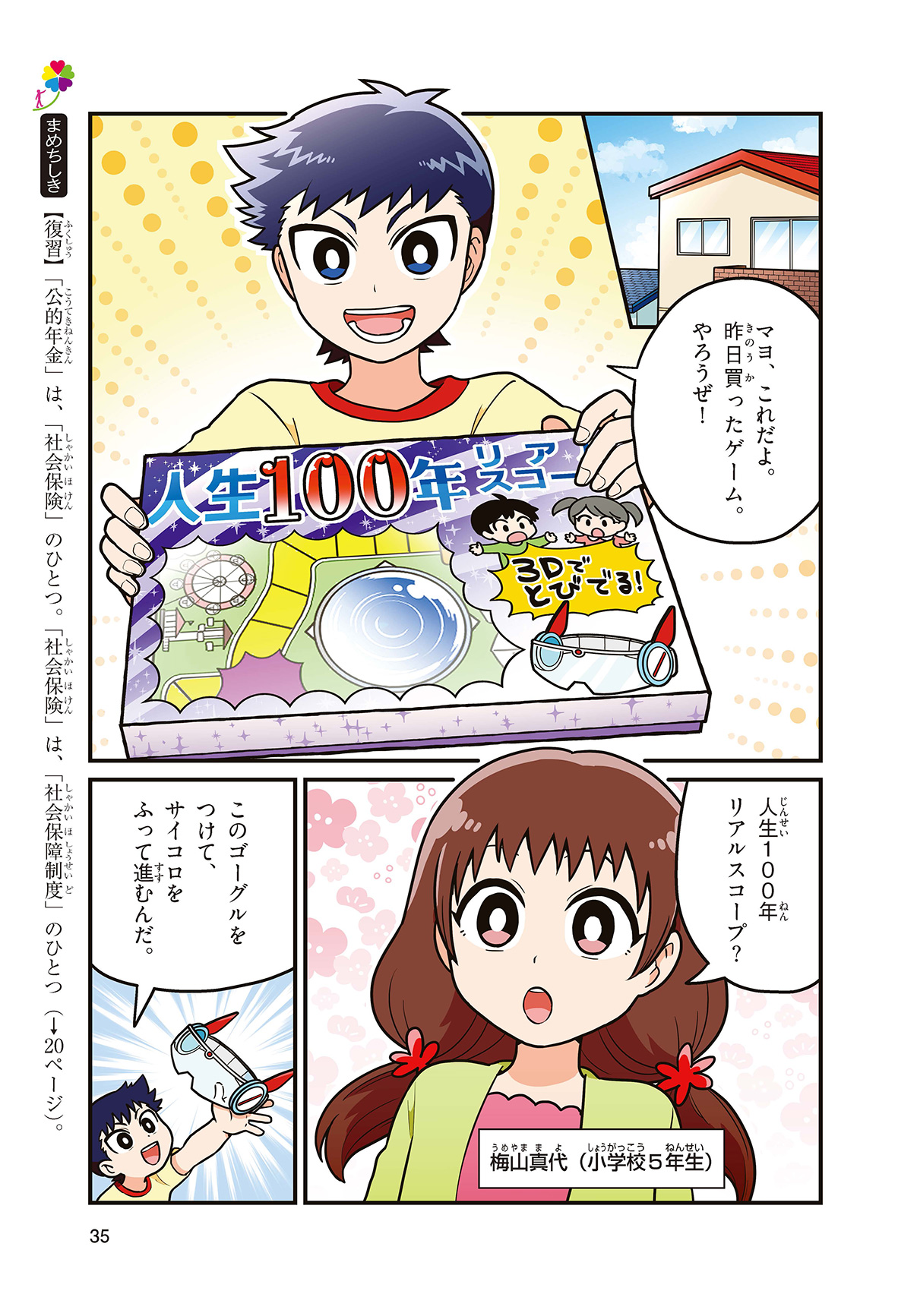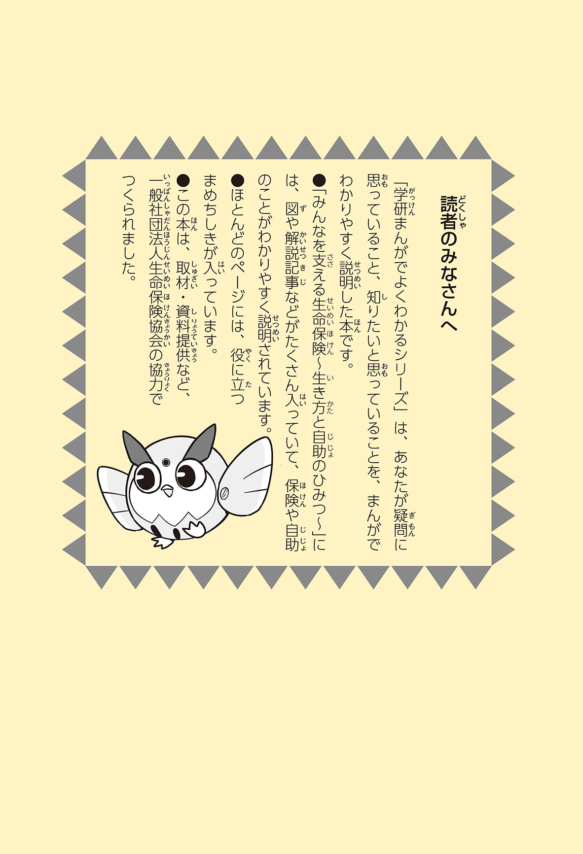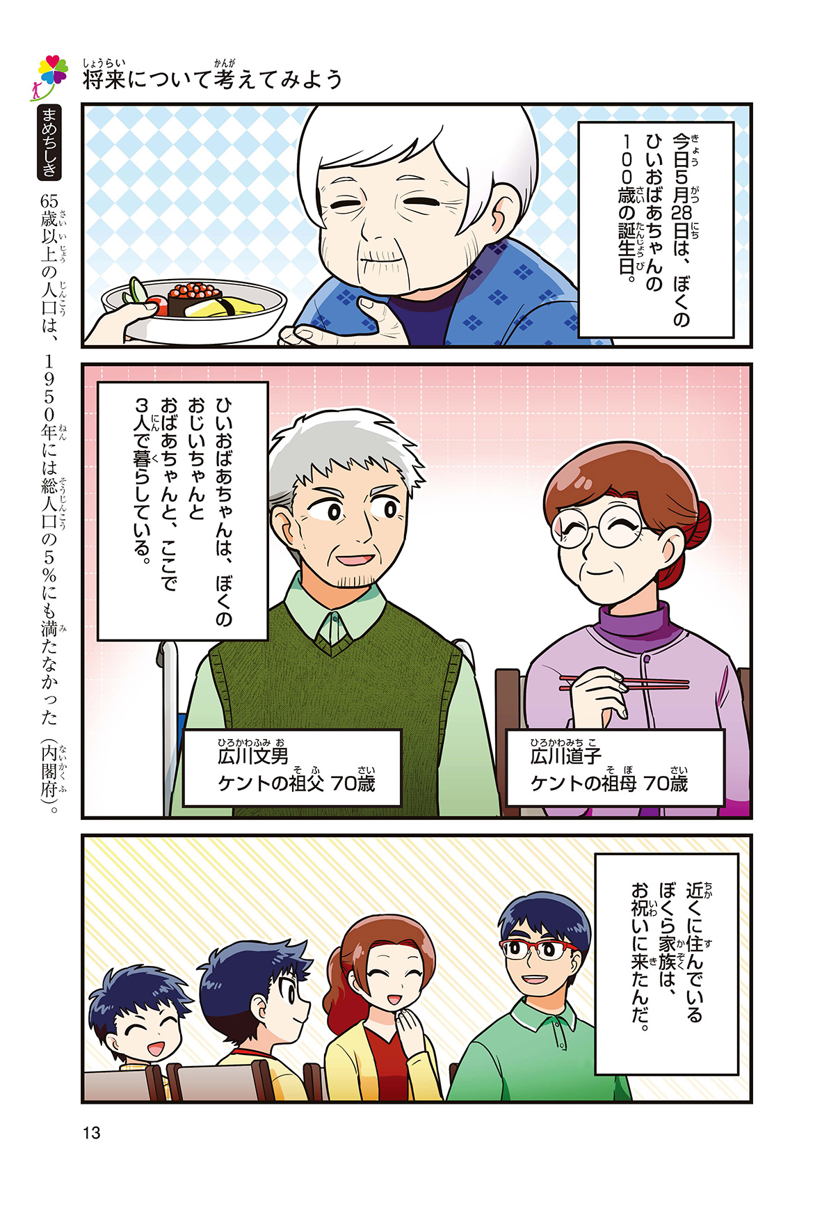 小学5年生のケントのひいおばあちゃんが100歳(さい)に! 100年の人生、色々なことがあったという話を聞くうちに、人生に起こるかもしれない危険(リスク)と、それに備える保険のしくみについて知りたくなるよ。ふしぎなゲーム『人生100年スコープ』を通じて、ケントたちと一緒に、自分らしい生き方や長い人生のために必要な準備、選択、そして自分で自分を助ける「自助」について、考えてみよう!