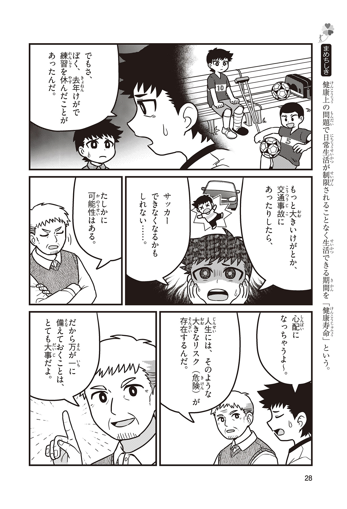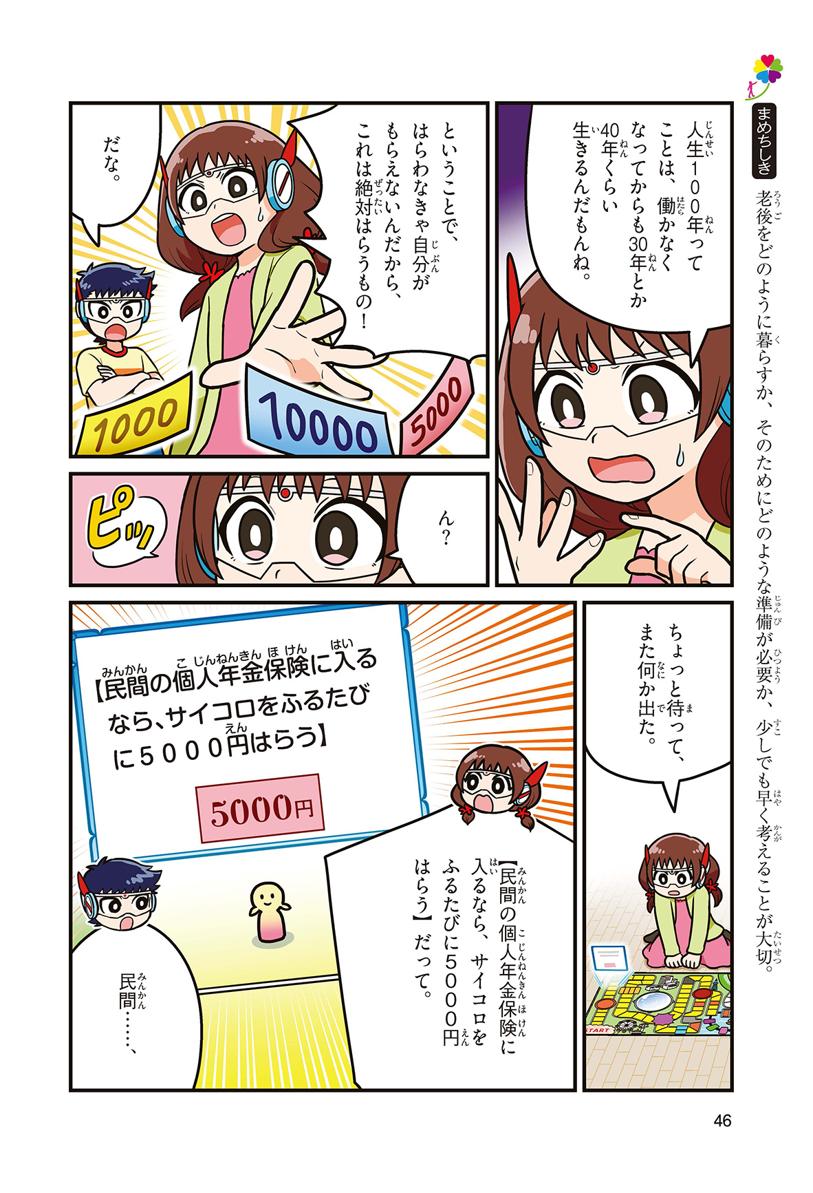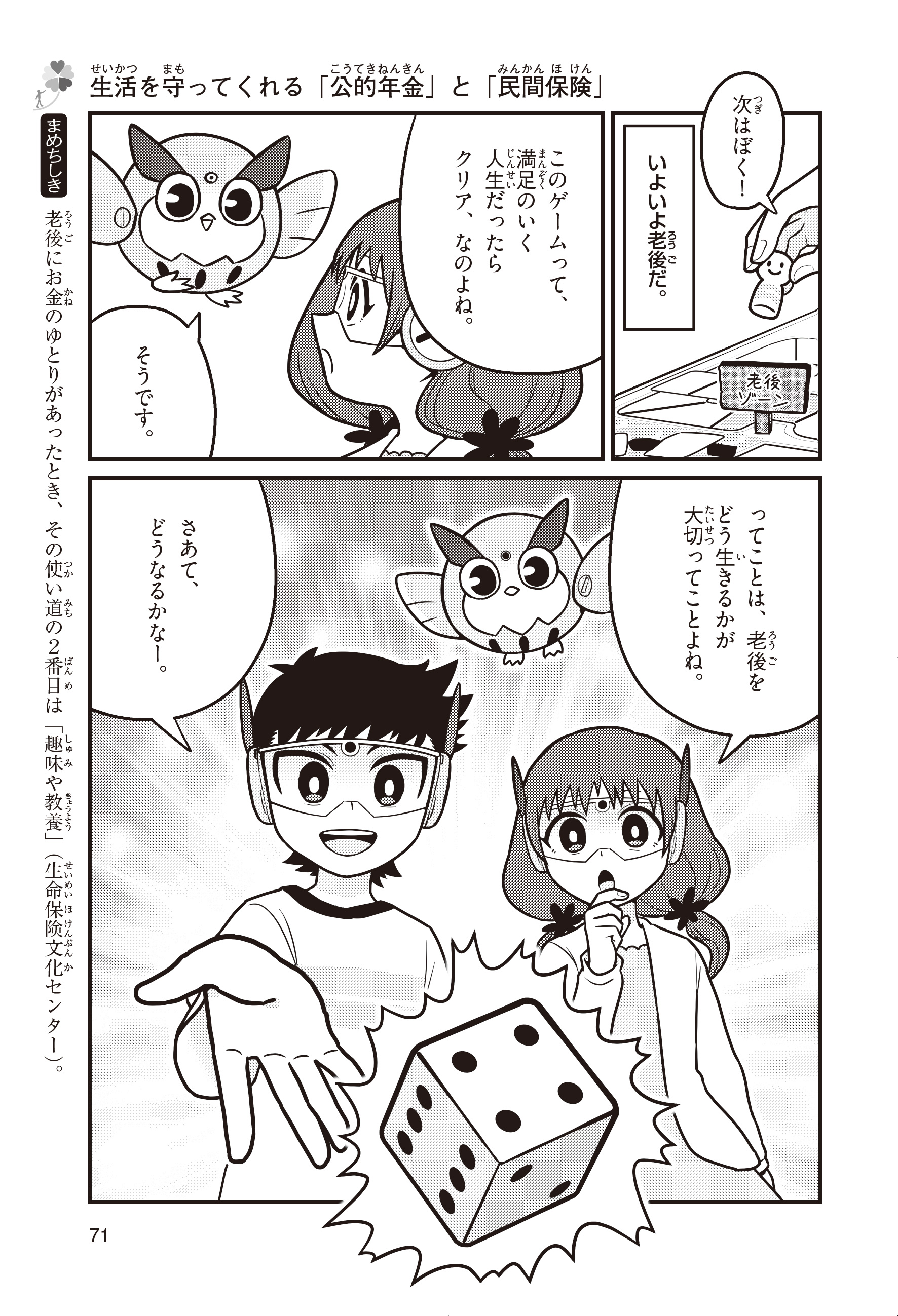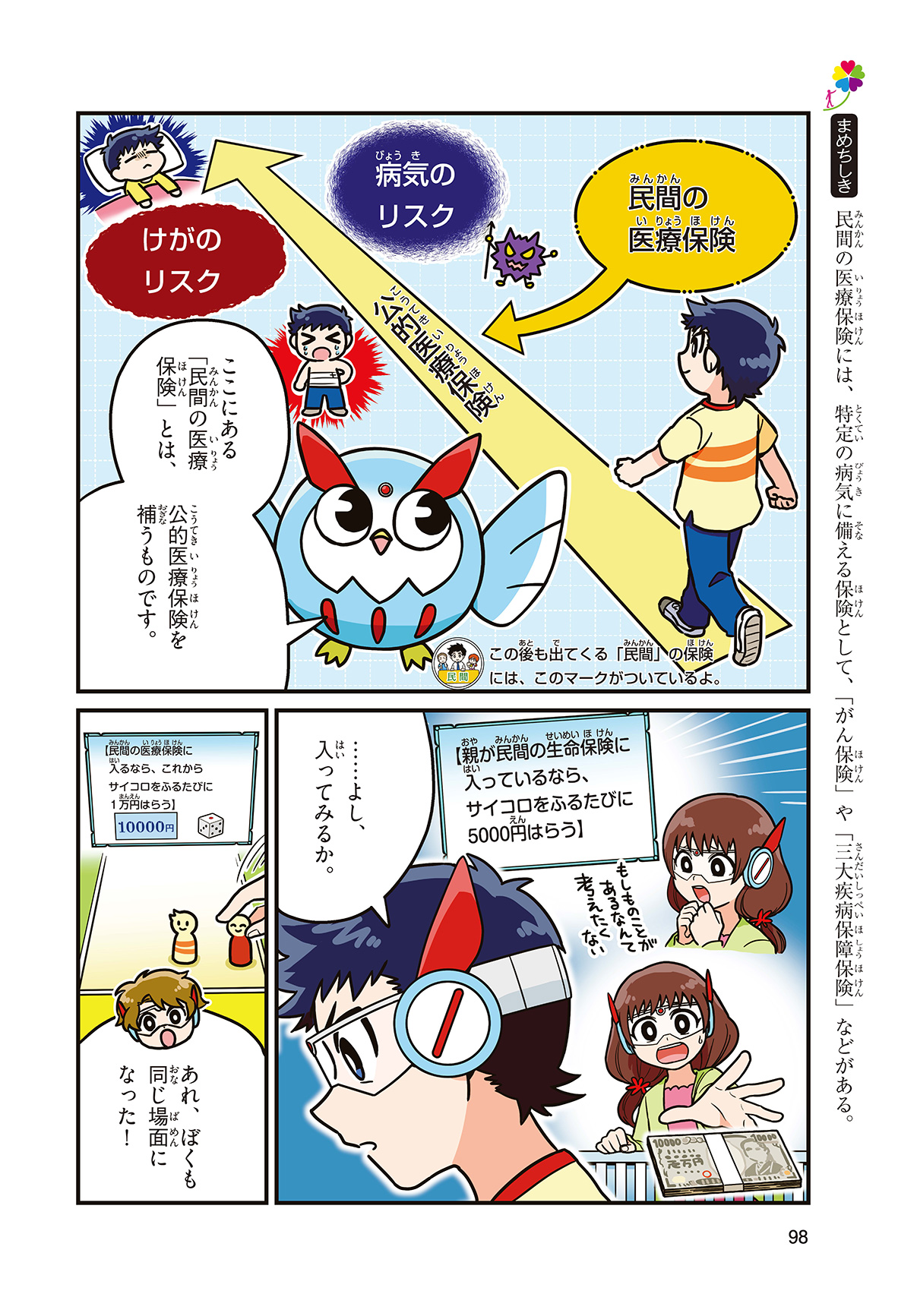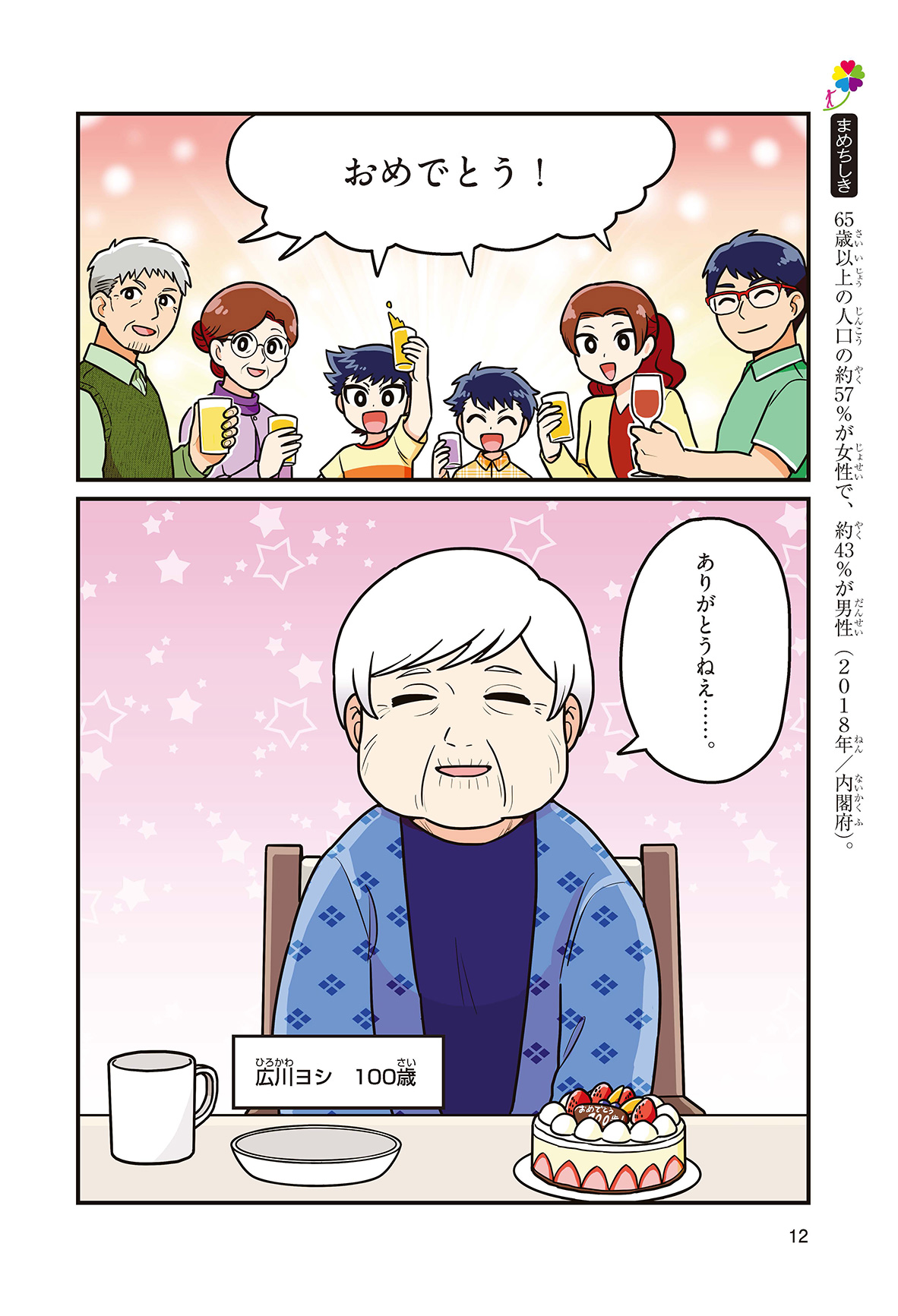 小学5年生のケントのひいおばあちゃんが100歳(さい)に! 100年の人生、色々なことがあったという話を聞くうちに、人生に起こるかもしれない危険(リスク)と、それに備える保険のしくみについて知りたくなるよ。ふしぎなゲーム『人生100年スコープ』を通じて、ケントたちと一緒に、自分らしい生き方や長い人生のために必要な準備、選択、そして自分で自分を助ける「自助」について、考えてみよう!