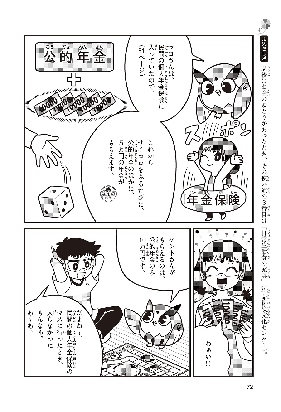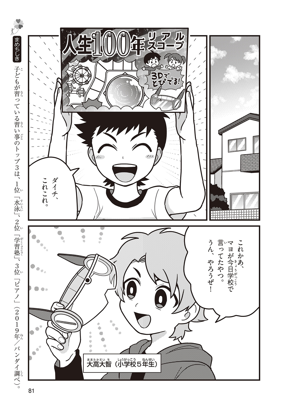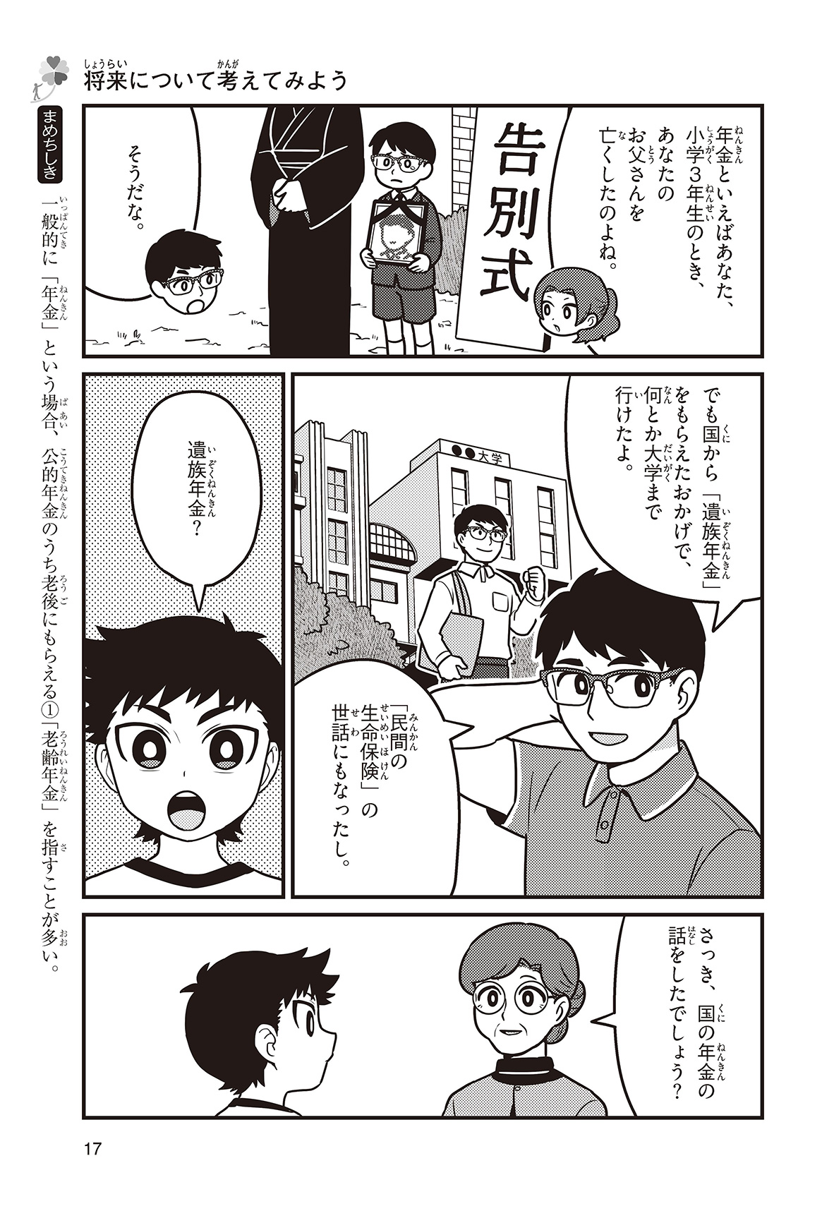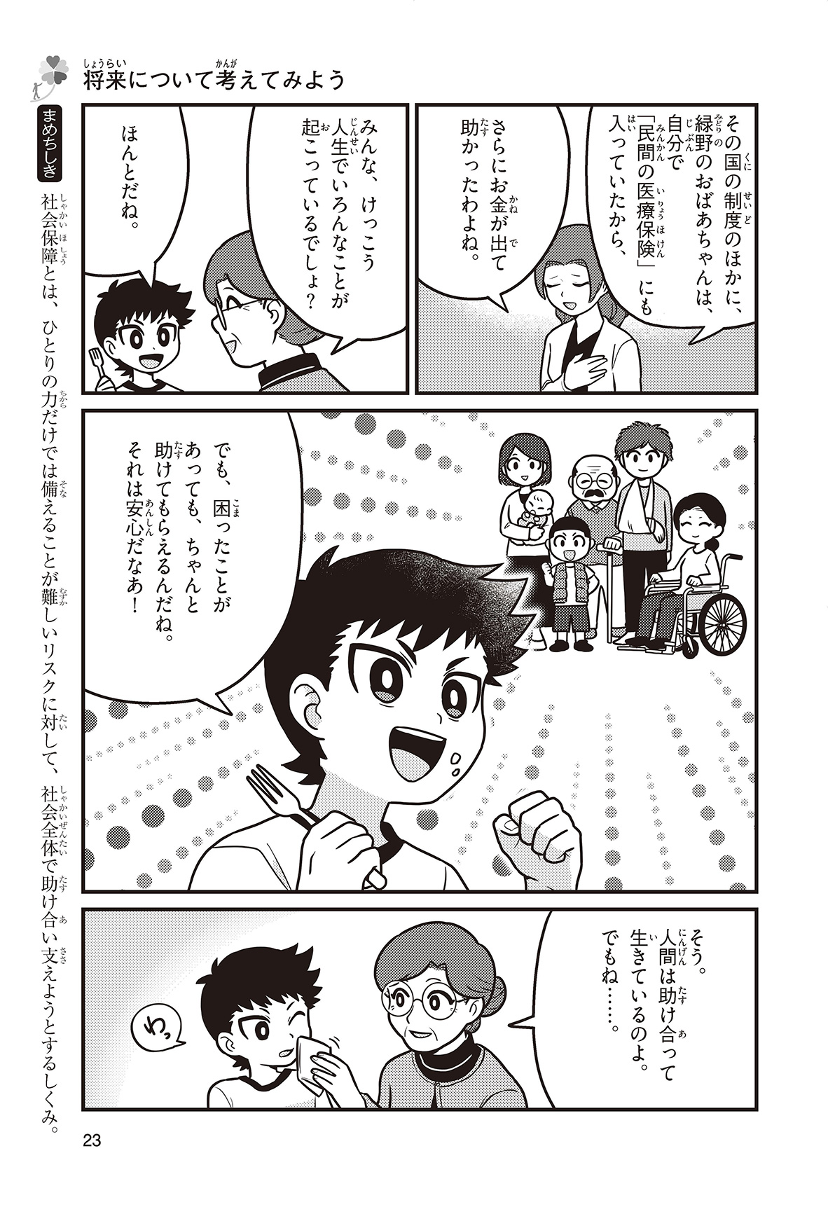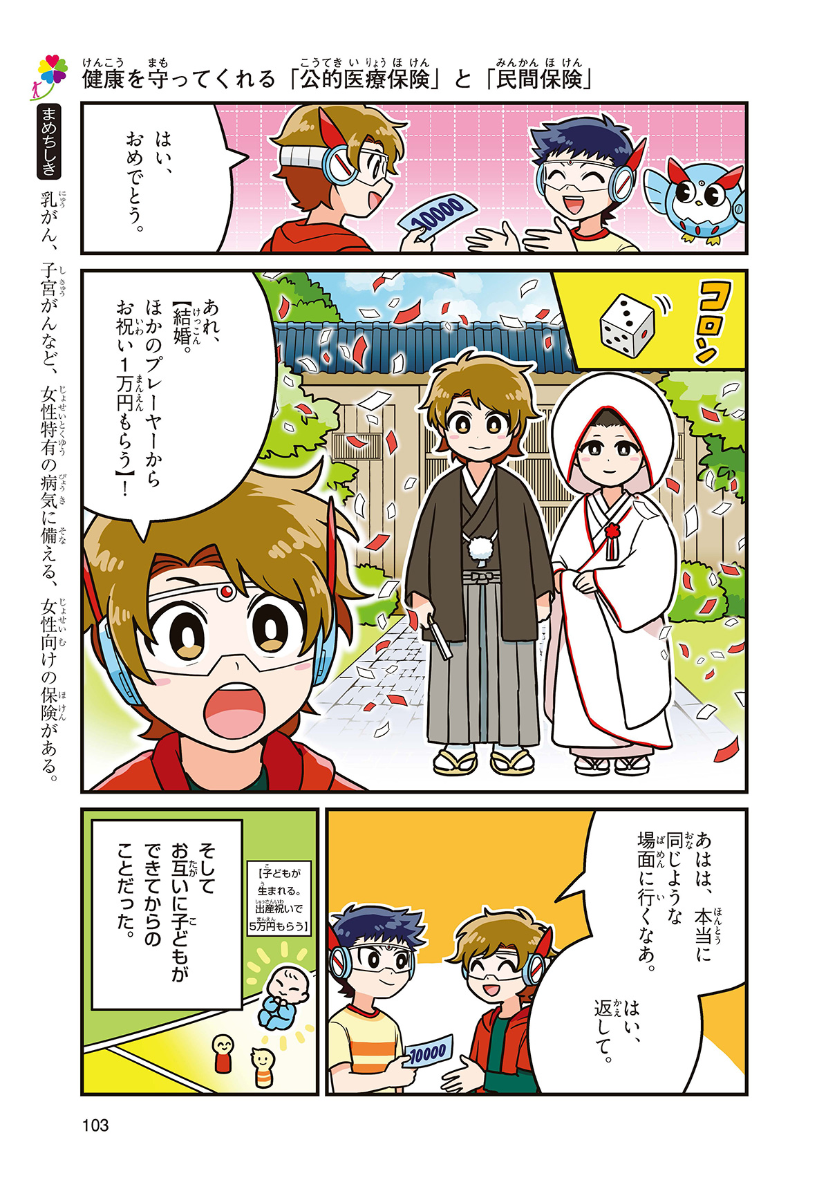 小学5年生のケントのひいおばあちゃんが100歳(さい)に! 100年の人生、色々なことがあったという話を聞くうちに、人生に起こるかもしれない危険(リスク)と、それに備える保険のしくみについて知りたくなるよ。ふしぎなゲーム『人生100年スコープ』を通じて、ケントたちと一緒に、自分らしい生き方や長い人生のために必要な準備、選択、そして自分で自分を助ける「自助」について、考えてみよう!