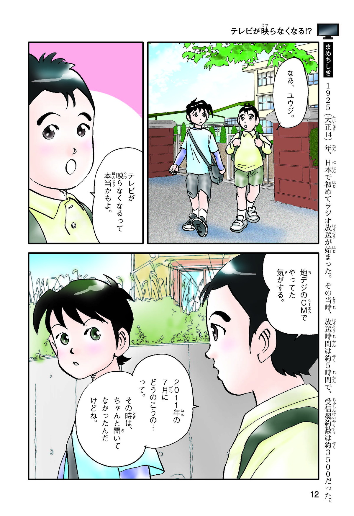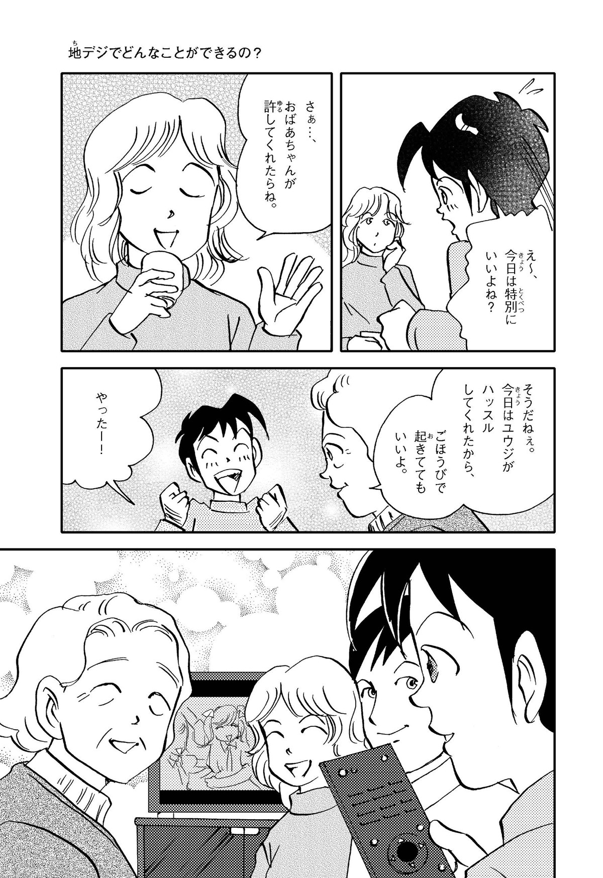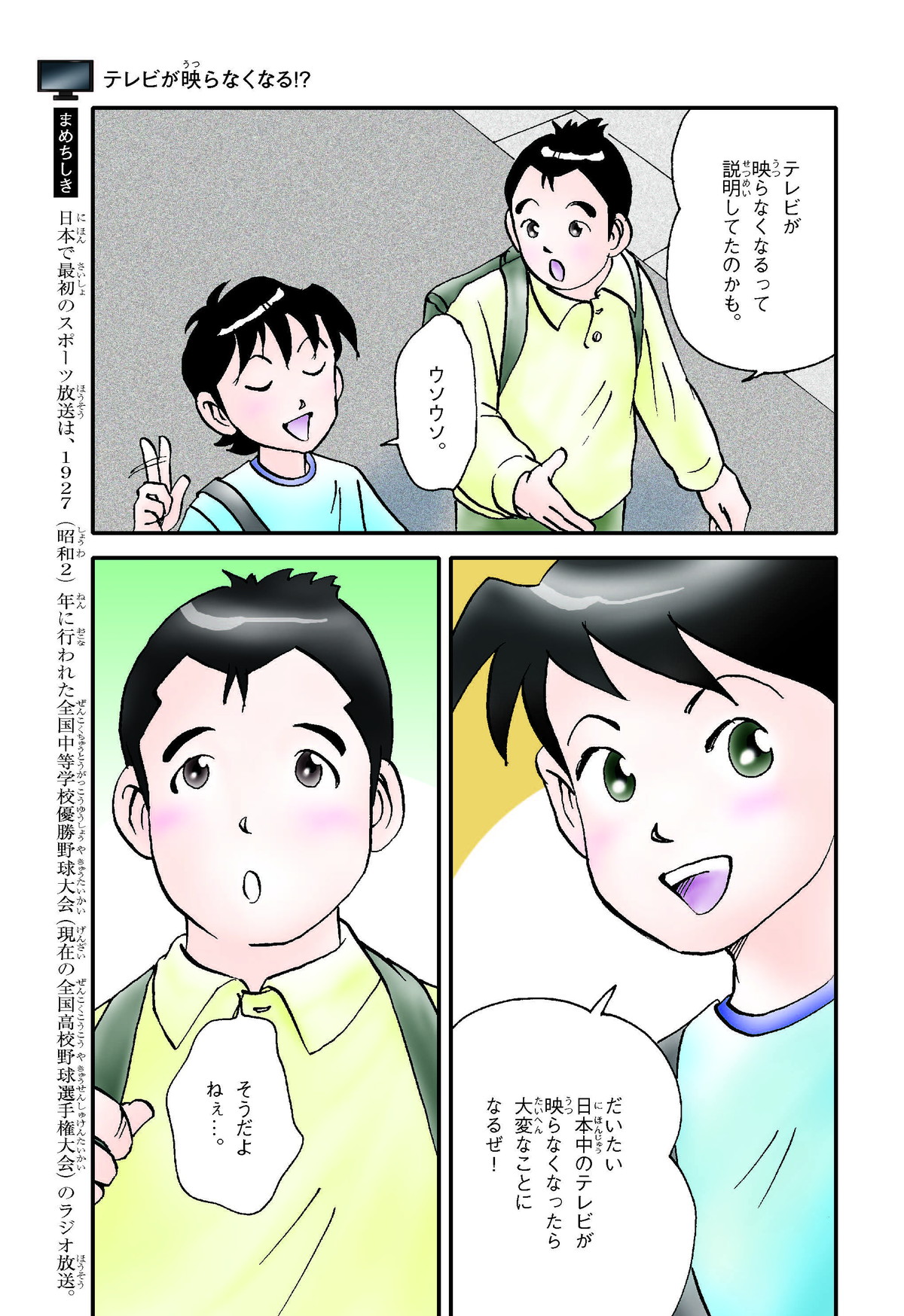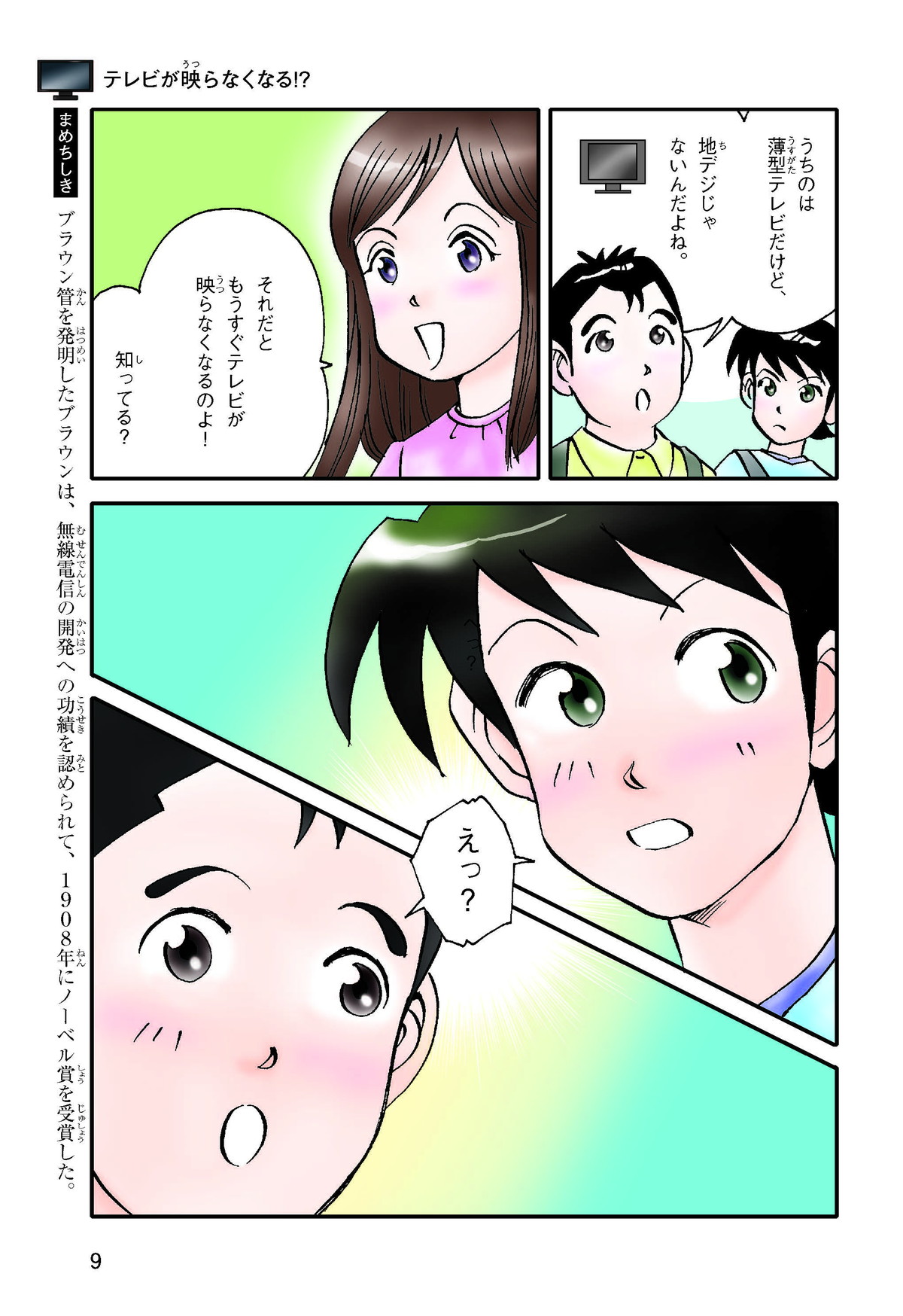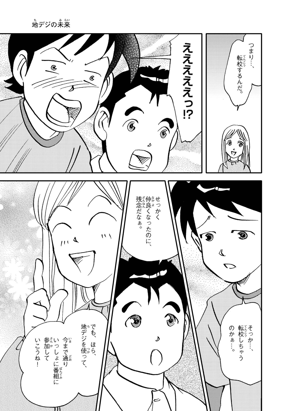 もうすぐテレビが映(うつ)らなくなる? ちょっと気になるアヤちゃんのことばを、はじめはぜんぜん信用しなかったユウジ。自分ちが地デジになったのをじまんしたかっただけでしょ、と思っていたんだけど、夢(ゆめ)の中で見ていた番組『少年刑事(しょうねんけいじ)カイト』が急に映らなくなっちゃった。心配になったユウジは、テレビ局で働いているアヤちゃんのパパに会いにアヤちゃんのおうちをたずねることに…。