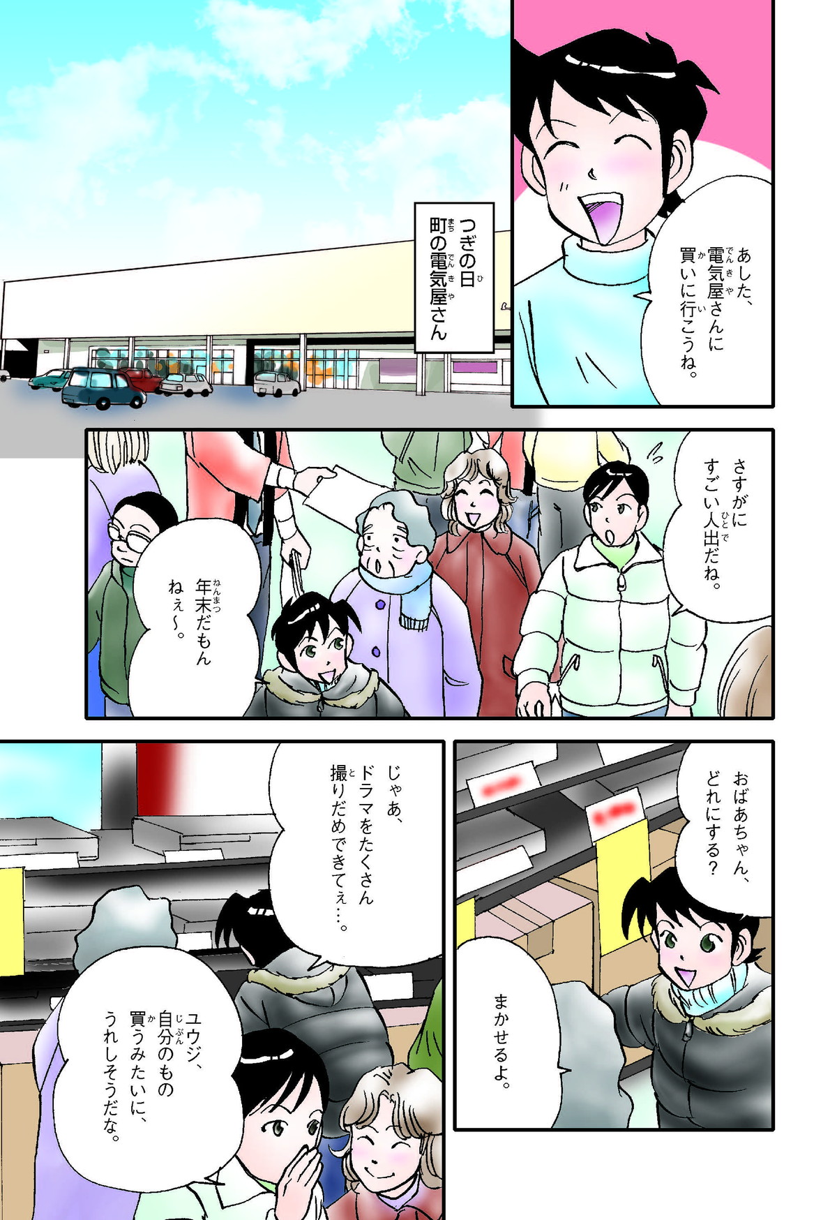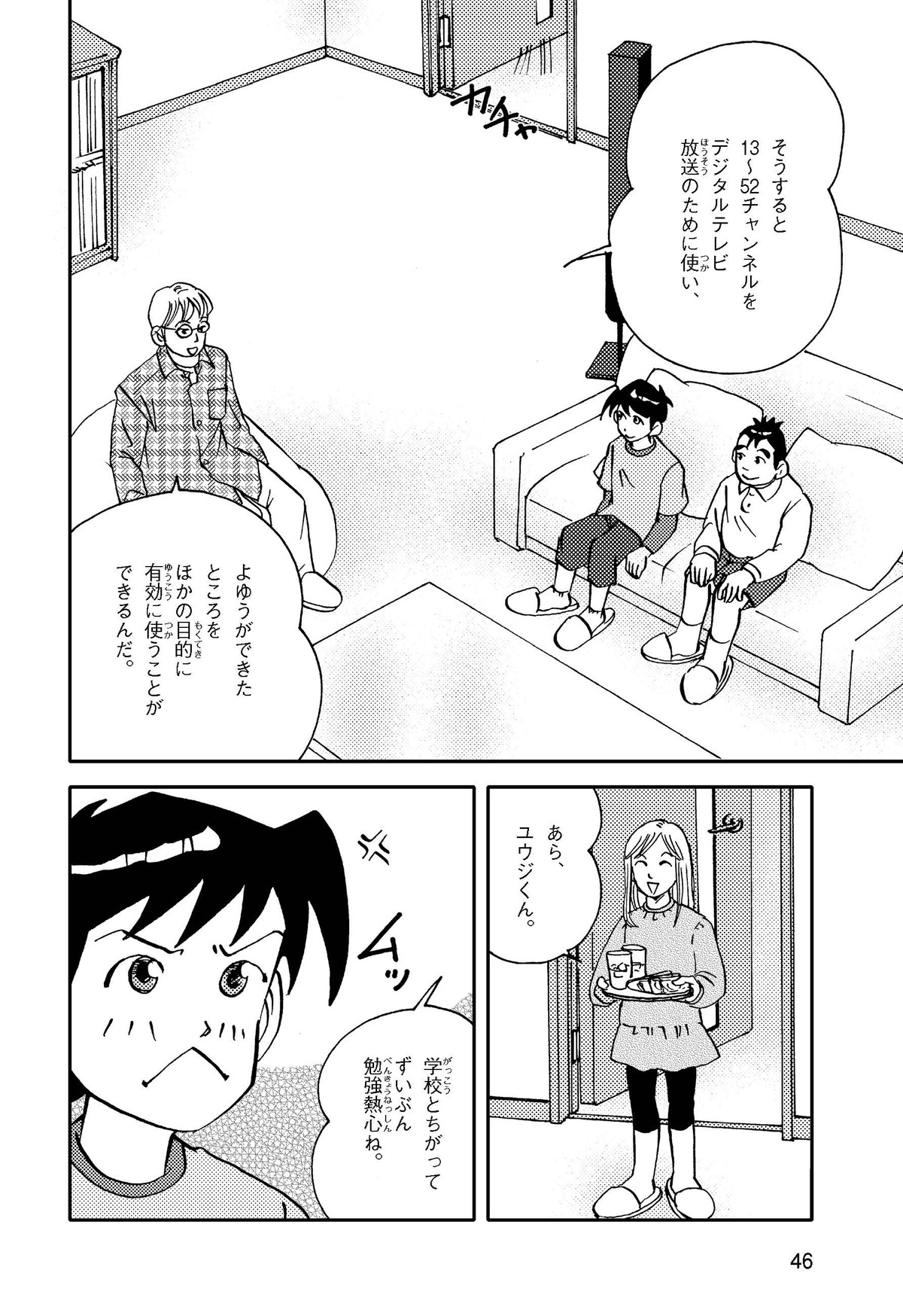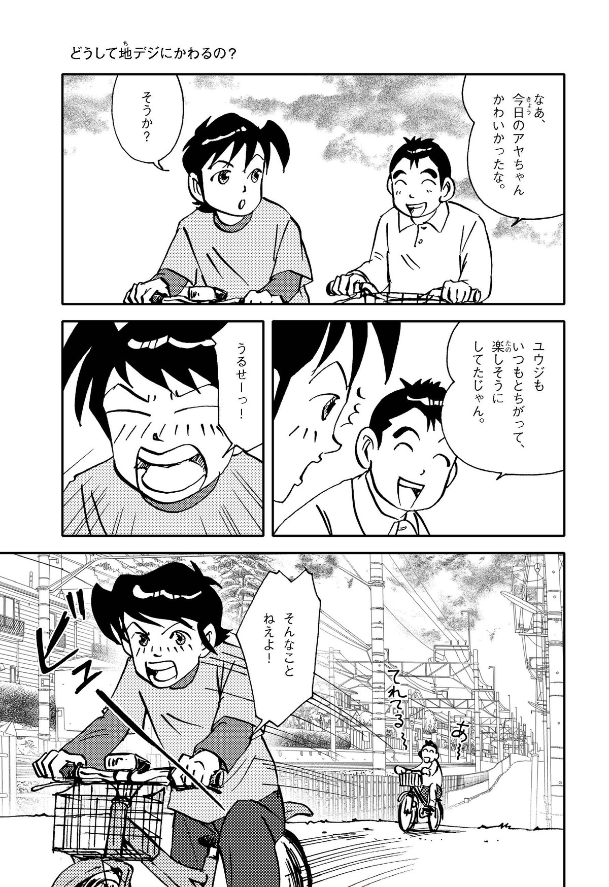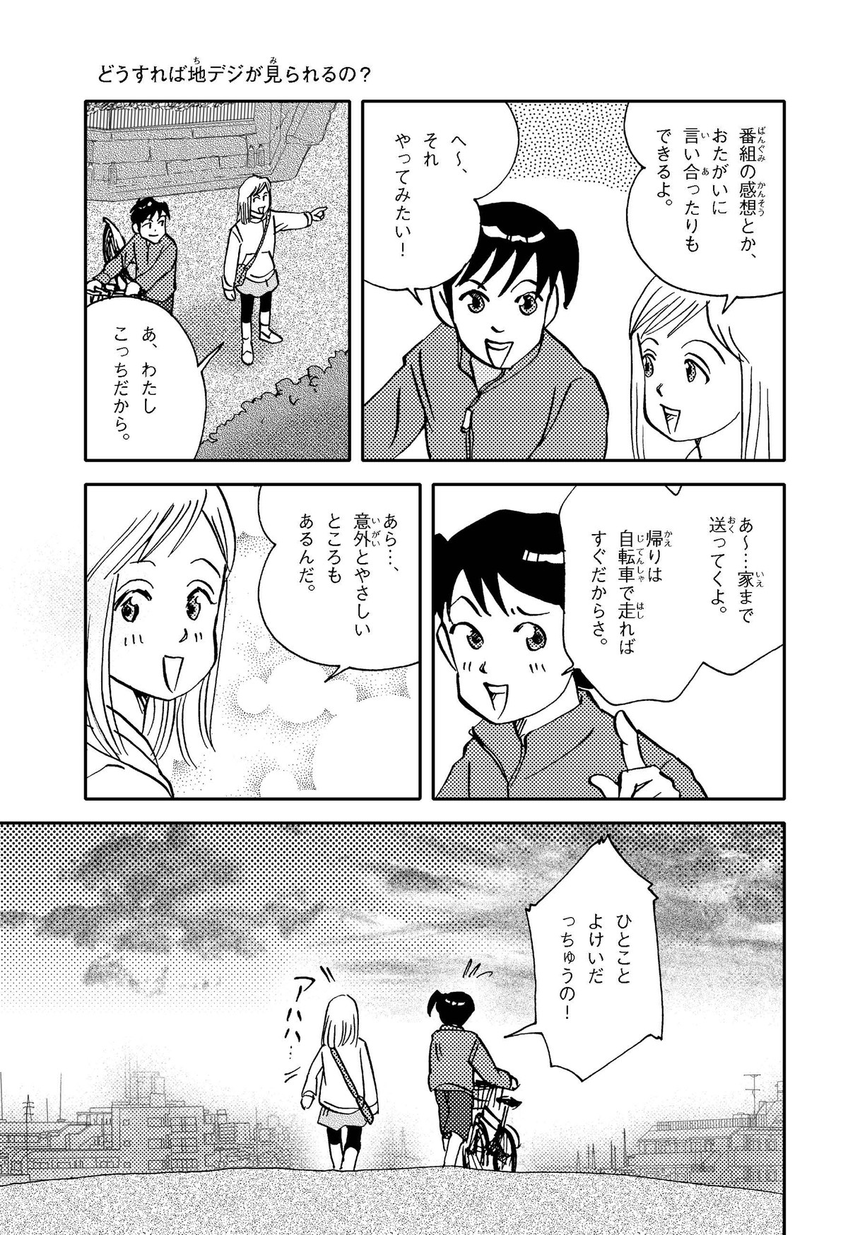 もうすぐテレビが映(うつ)らなくなる? ちょっと気になるアヤちゃんのことばを、はじめはぜんぜん信用しなかったユウジ。自分ちが地デジになったのをじまんしたかっただけでしょ、と思っていたんだけど、夢(ゆめ)の中で見ていた番組『少年刑事(しょうねんけいじ)カイト』が急に映らなくなっちゃった。心配になったユウジは、テレビ局で働いているアヤちゃんのパパに会いにアヤちゃんのおうちをたずねることに…。