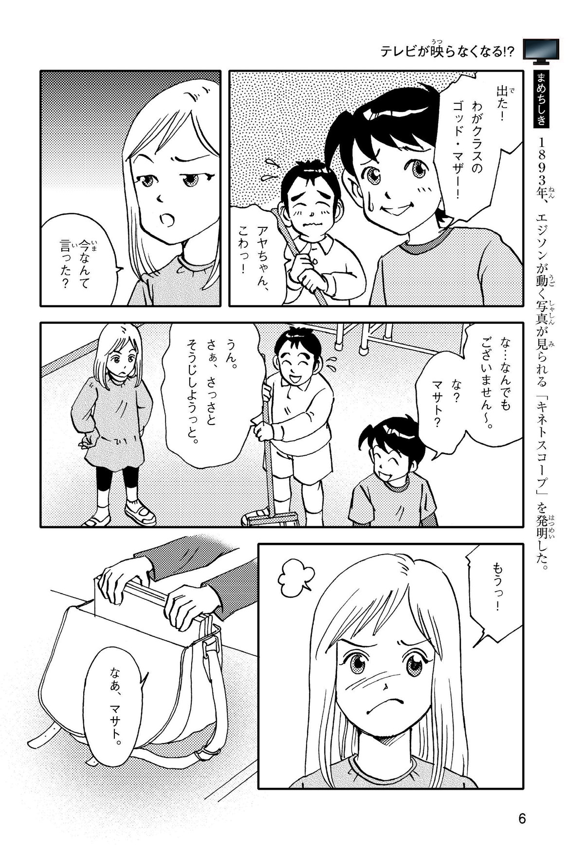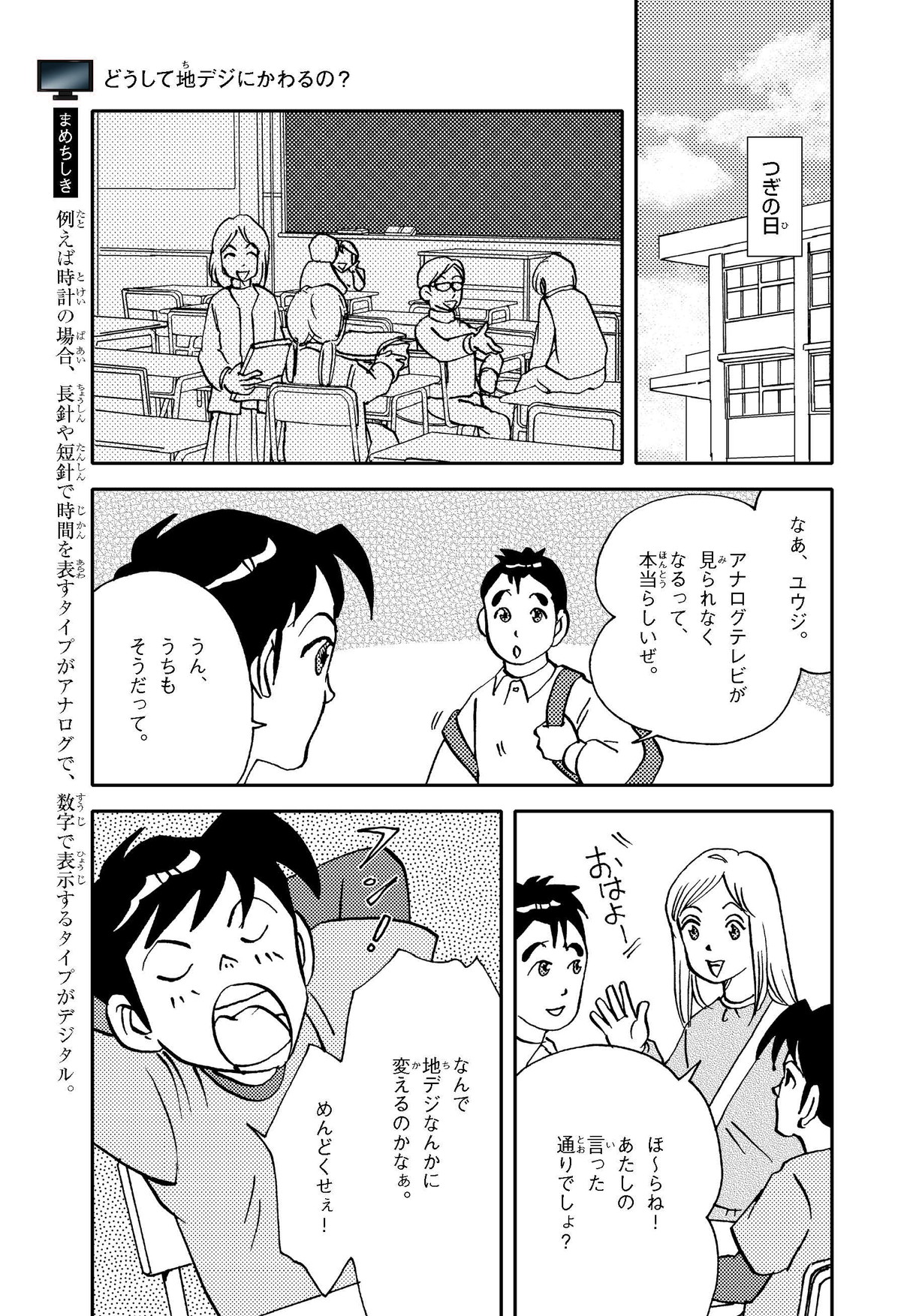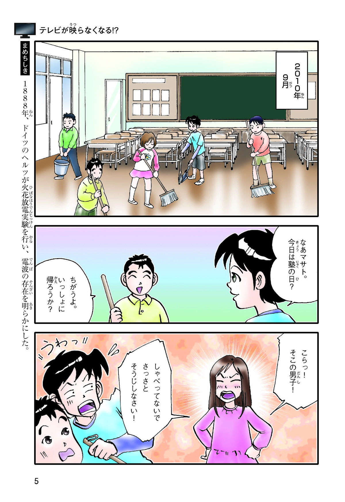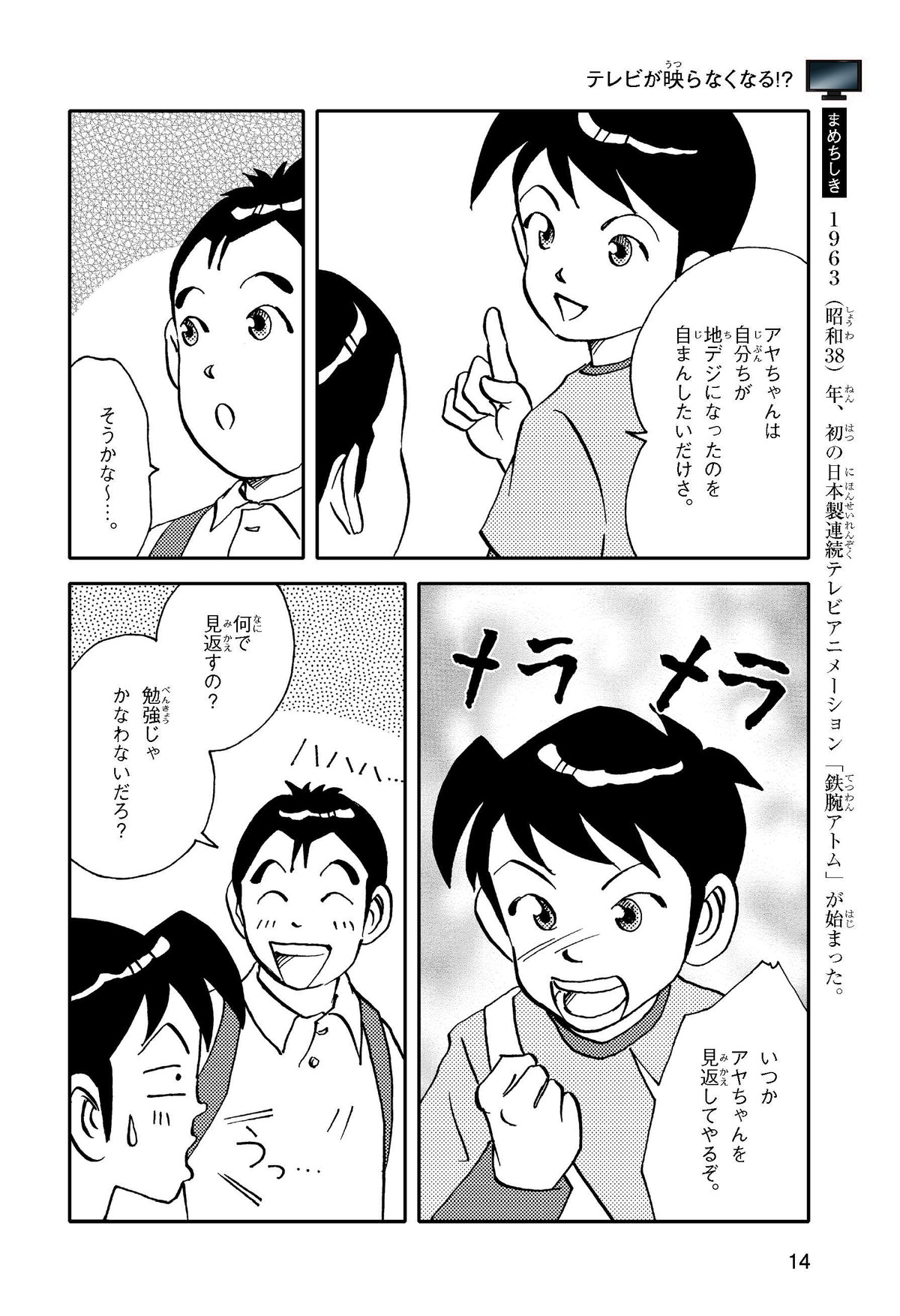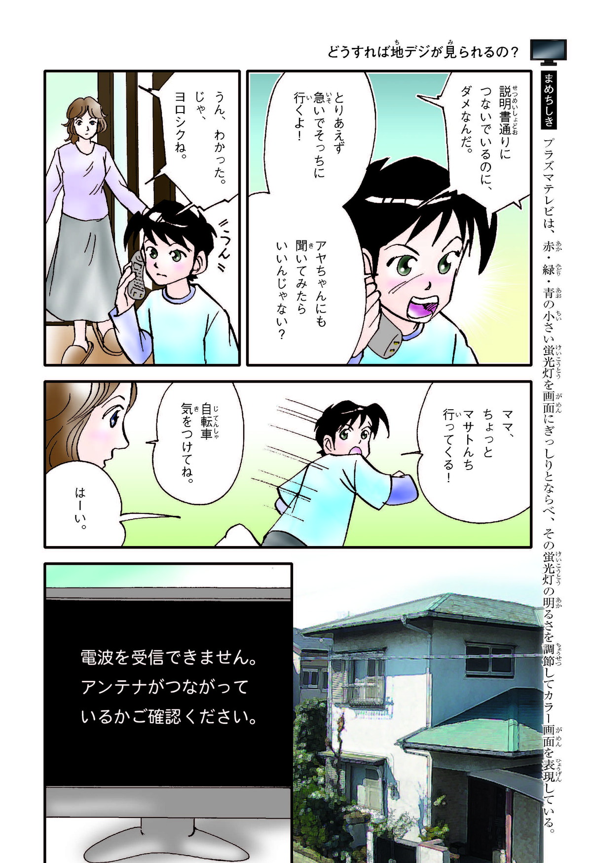 もうすぐテレビが映(うつ)らなくなる? ちょっと気になるアヤちゃんのことばを、はじめはぜんぜん信用しなかったユウジ。自分ちが地デジになったのをじまんしたかっただけでしょ、と思っていたんだけど、夢(ゆめ)の中で見ていた番組『少年刑事(しょうねんけいじ)カイト』が急に映らなくなっちゃった。心配になったユウジは、テレビ局で働いているアヤちゃんのパパに会いにアヤちゃんのおうちをたずねることに…。