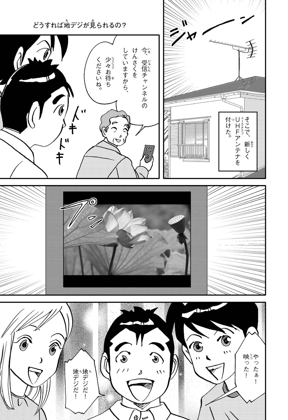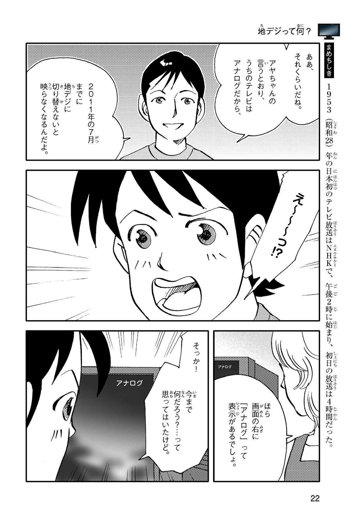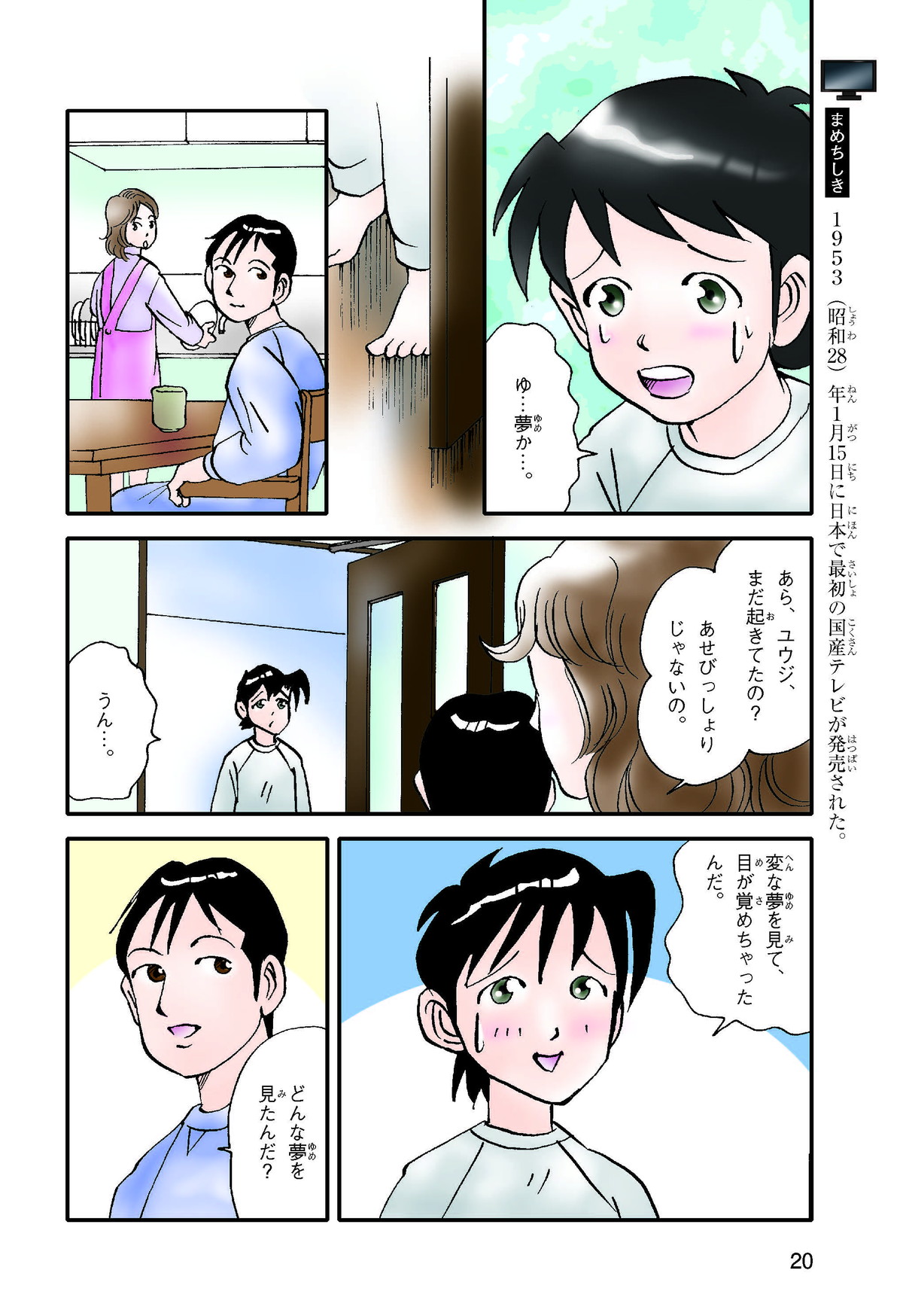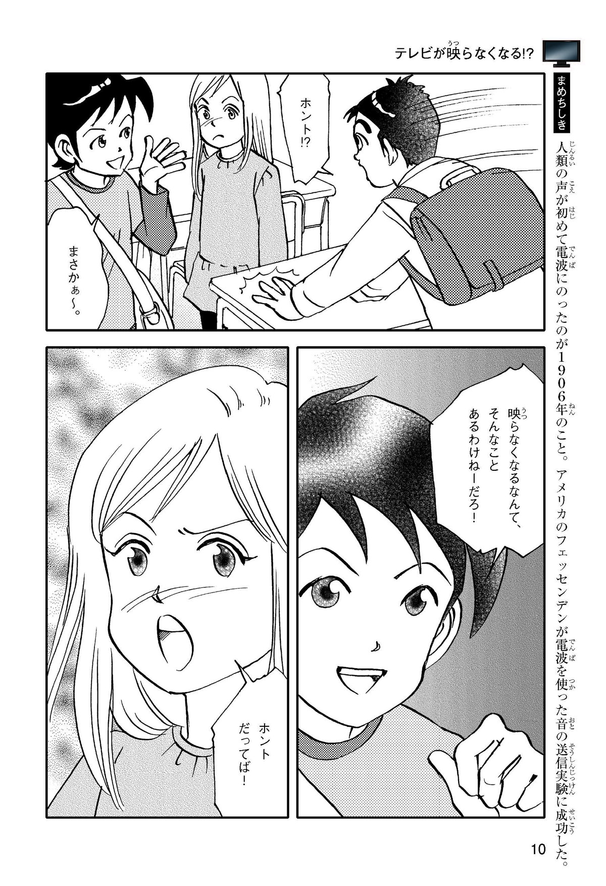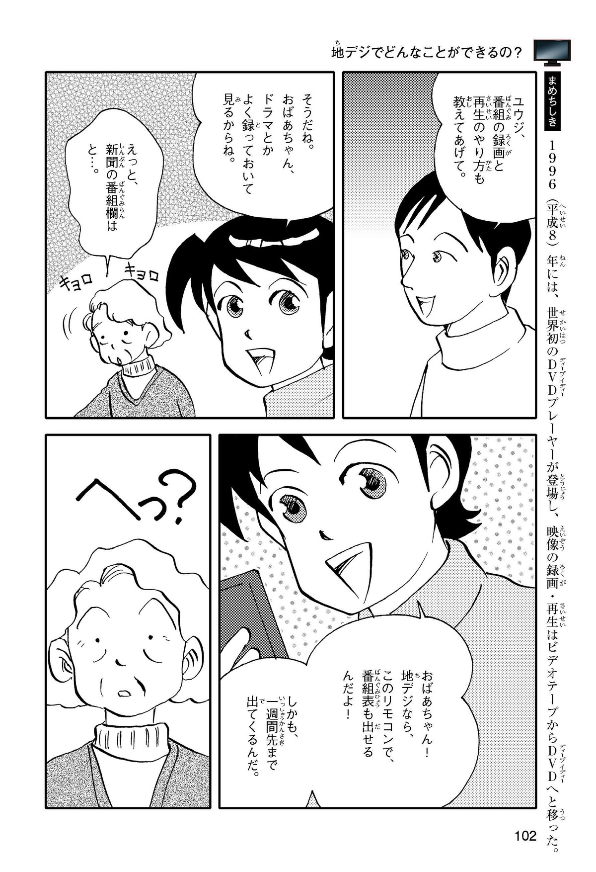 もうすぐテレビが映(うつ)らなくなる? ちょっと気になるアヤちゃんのことばを、はじめはぜんぜん信用しなかったユウジ。自分ちが地デジになったのをじまんしたかっただけでしょ、と思っていたんだけど、夢(ゆめ)の中で見ていた番組『少年刑事(しょうねんけいじ)カイト』が急に映らなくなっちゃった。心配になったユウジは、テレビ局で働いているアヤちゃんのパパに会いにアヤちゃんのおうちをたずねることに…。