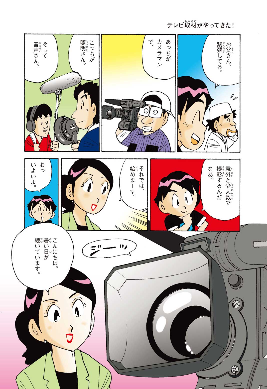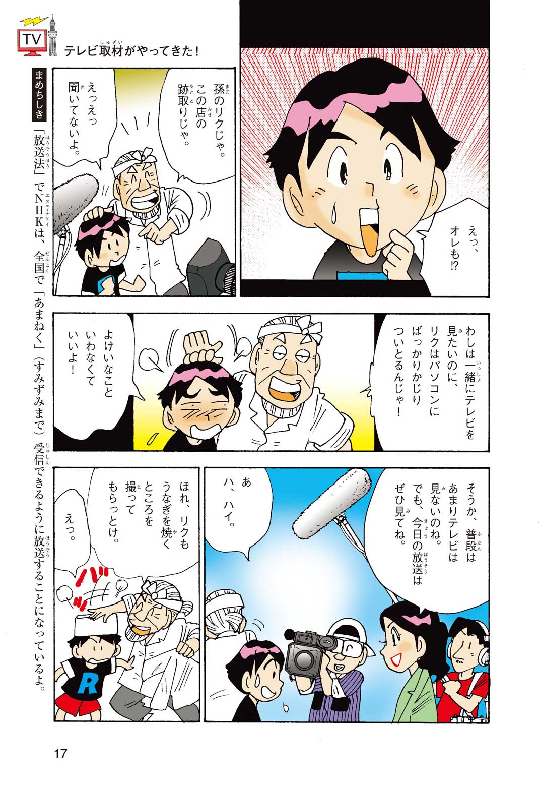 うなぎ屋をやっているリクの家に、テレビ取材がやってきた! リクもうつったその放送をみて、クラスのみんなに取材のようすを質問ぜめにされるリク。「テレビのことならまかせてよ、なんでも教える」と言ってしまったけれど実は何も知らない…。こまってしまったリクだけど、なんと、テレビ局に見学に行けることに! テレビ番組ってどうやって作っているんだろう!?