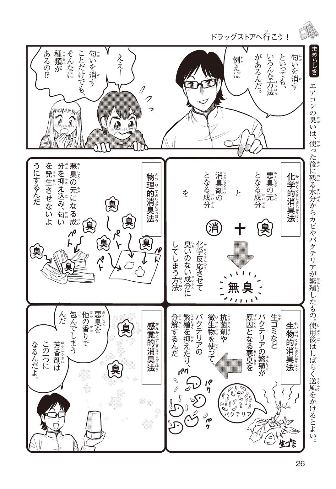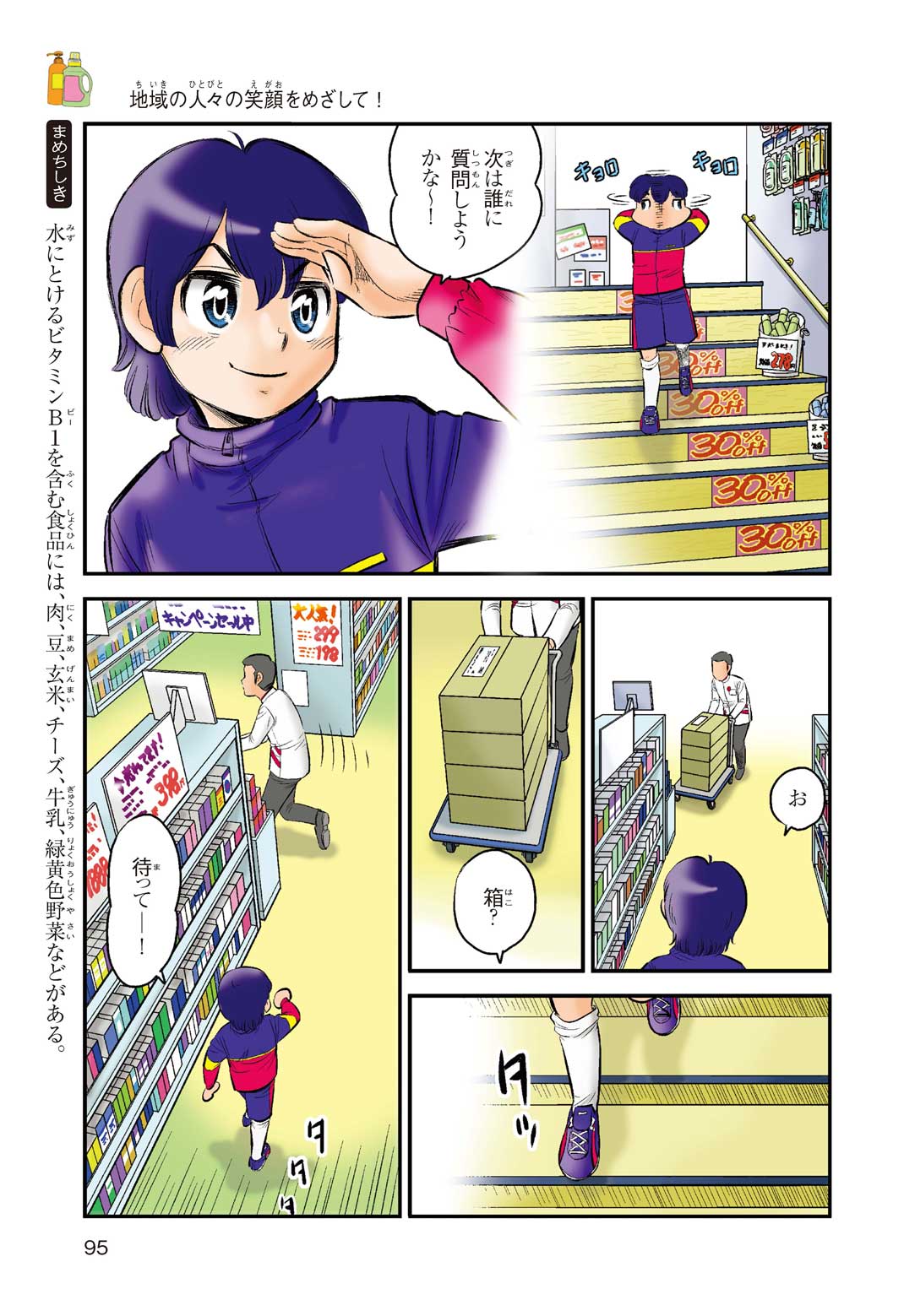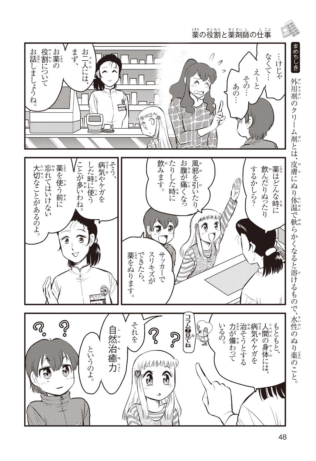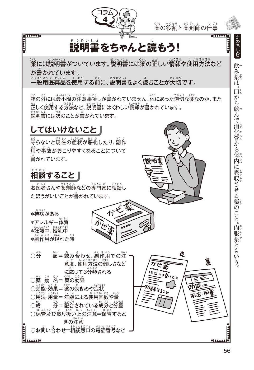 小学5年の正輝(まさき)がサッカーの練習から帰ると、妹の美海(みう)が熱を出してぐったりしていた。救急箱の中には熱を下げるために使うものがなく、正輝がドラッグストアに買いに行くことになった。ところが、お店には熱を下げるものがたくさんあって、どれを買えばいいのかわからない。早くしなくちゃ美海の熱が上がっちゃう! さて、どうする? 正輝。