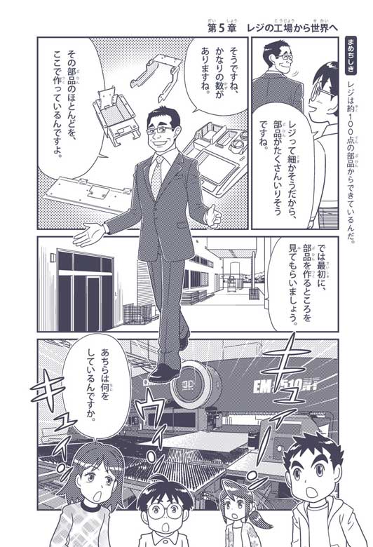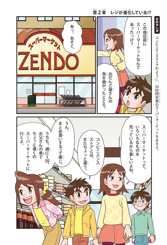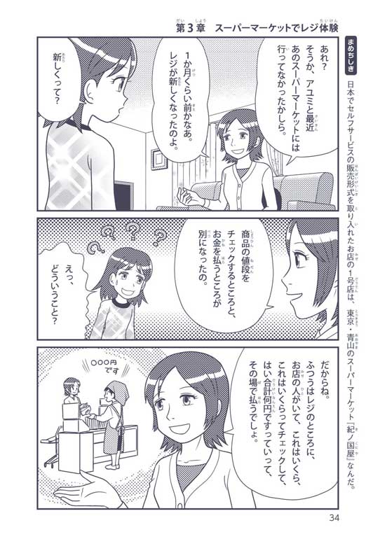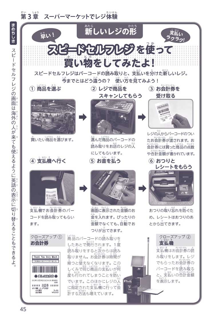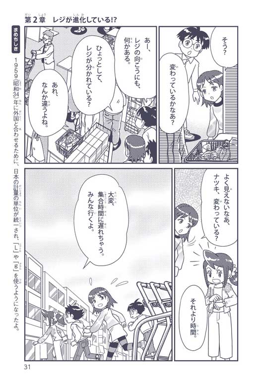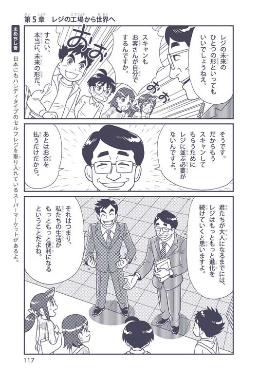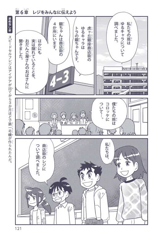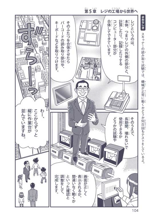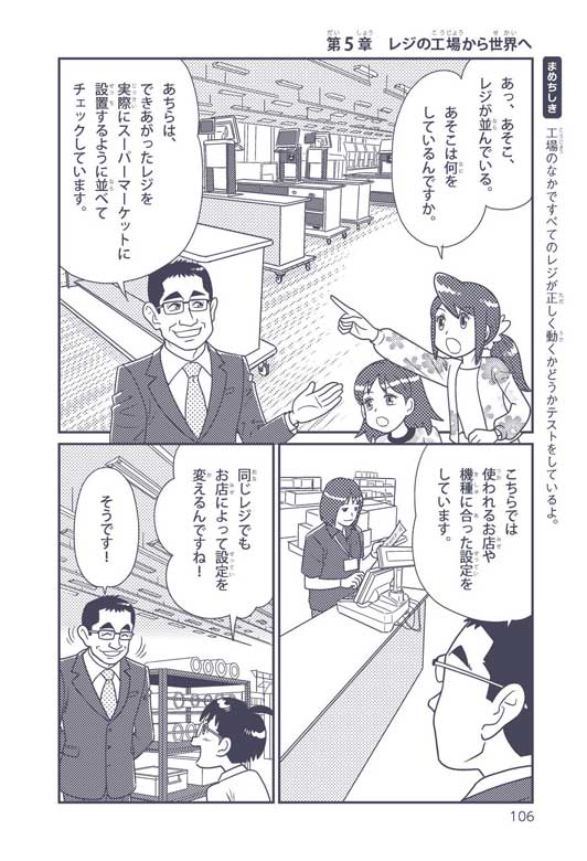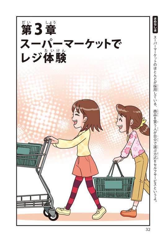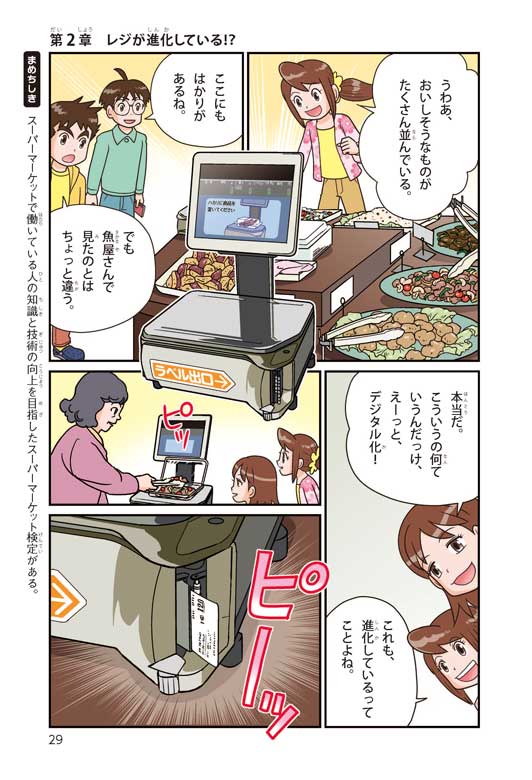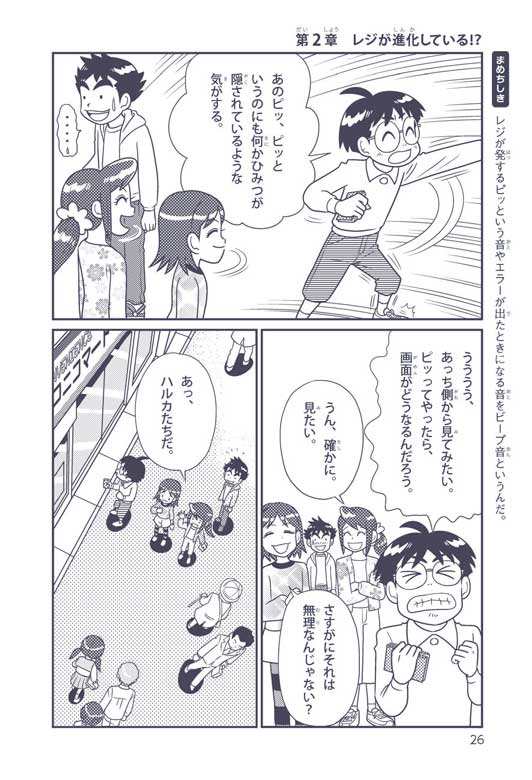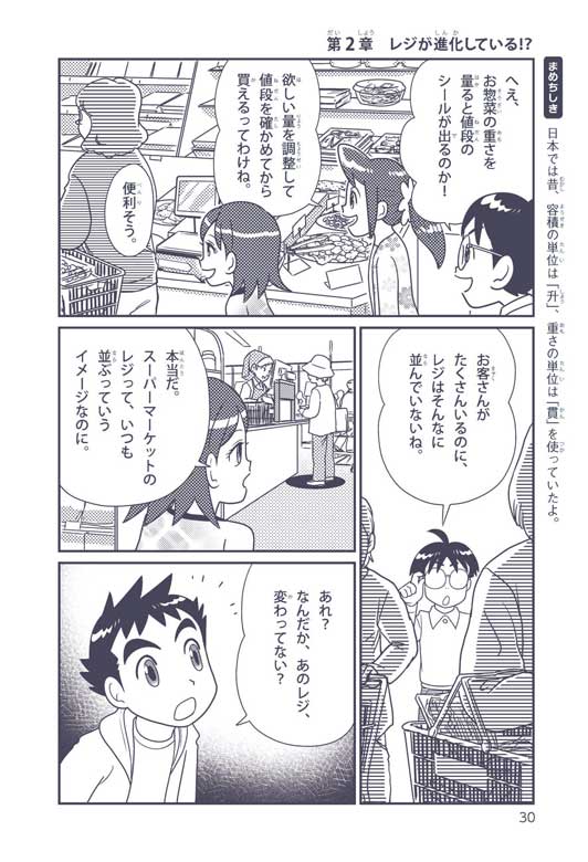 シュウタたちの住んでいる街の商店街のお店には、たくさんの種類のレジがある。重さをはかるはかりがついているレジ、ザルを使ったレジ、ポイントカードが使えるレジ・・・。同じ商店街の中でも、レジの種類はさまざまだ。その中でも、スーパーマーケットで見つけたレジは、待たなくてもすむ最先たんのレジだった! そのレジにはどんなひみつがかくされているのか?