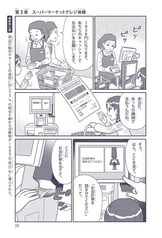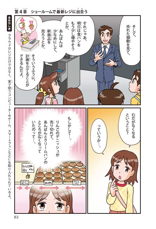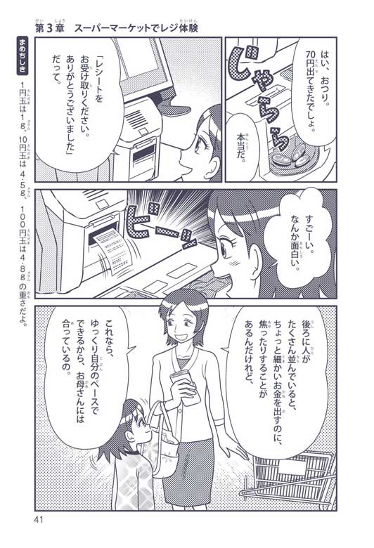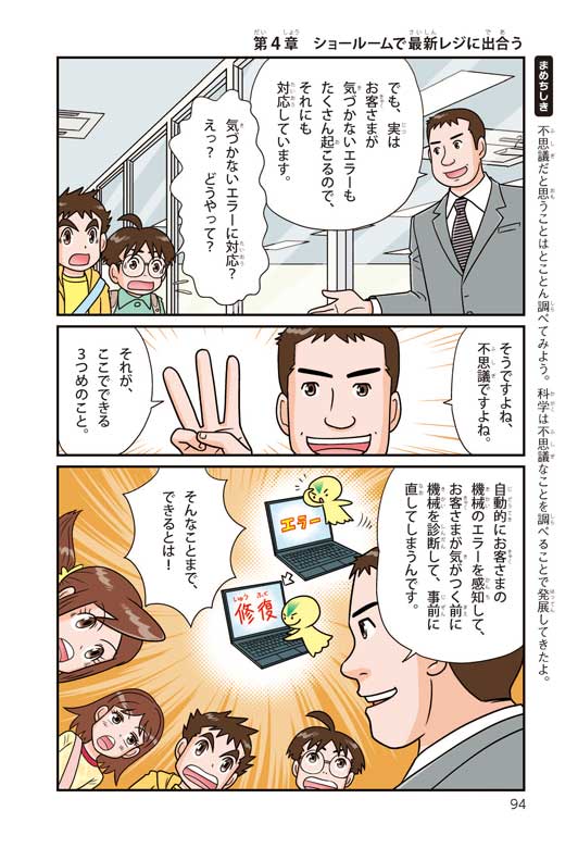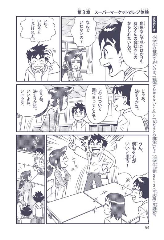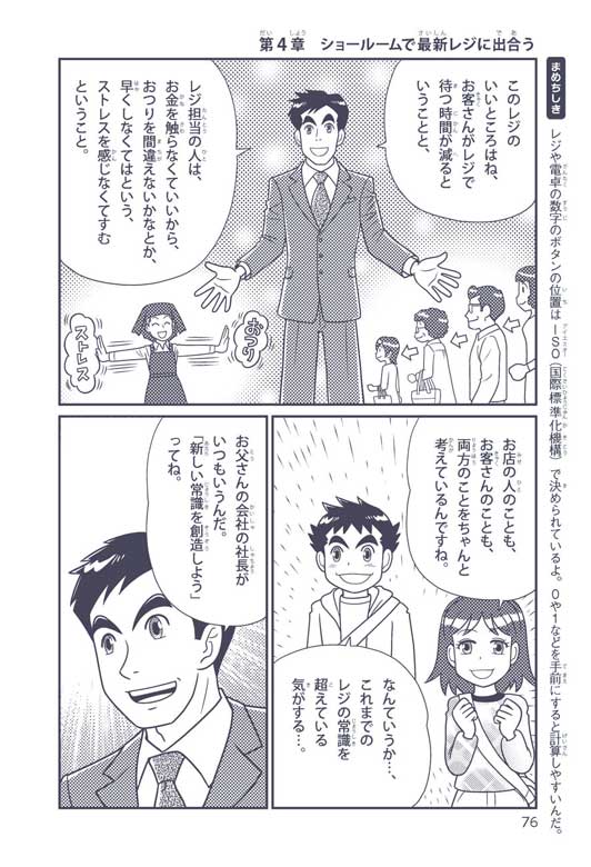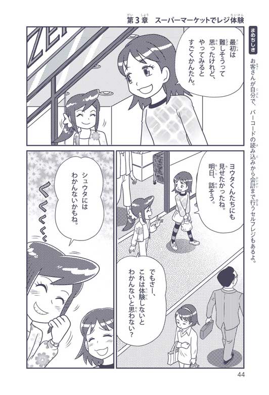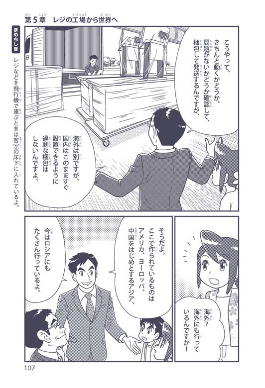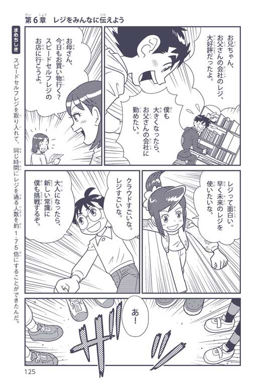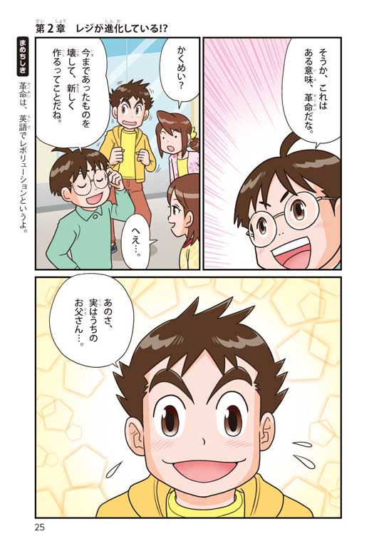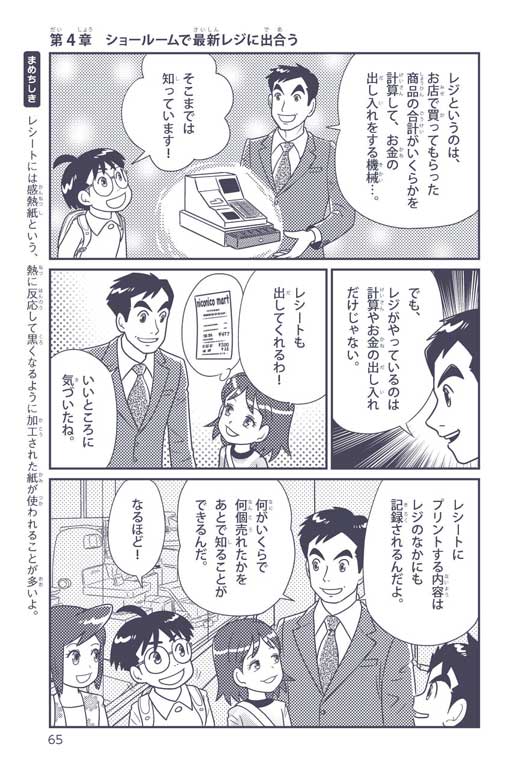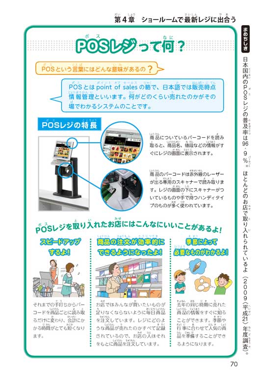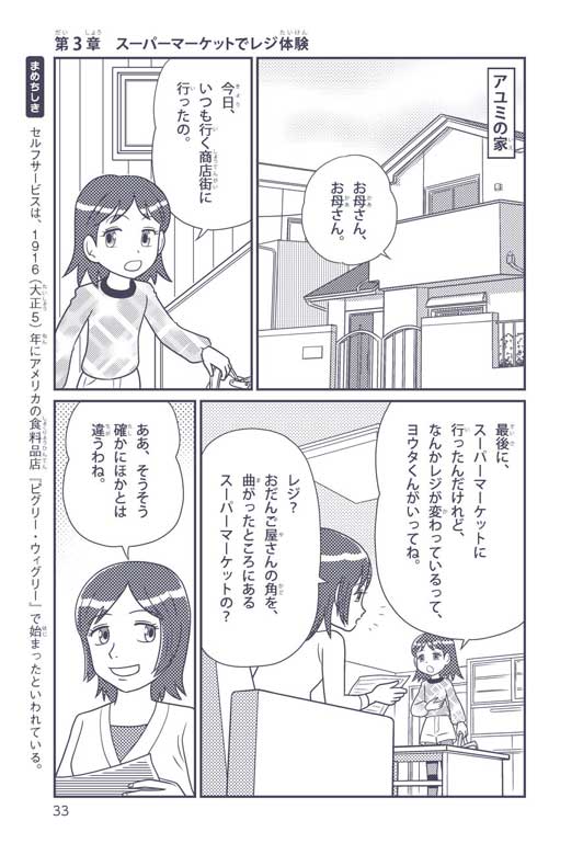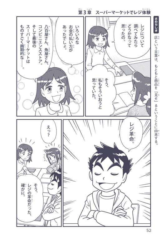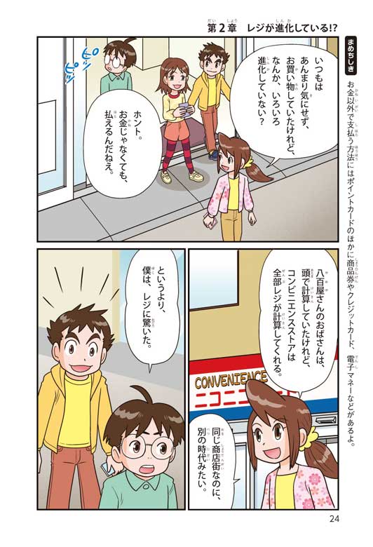 シュウタたちの住んでいる街の商店街のお店には、たくさんの種類のレジがある。重さをはかるはかりがついているレジ、ザルを使ったレジ、ポイントカードが使えるレジ・・・。同じ商店街の中でも、レジの種類はさまざまだ。その中でも、スーパーマーケットで見つけたレジは、待たなくてもすむ最先たんのレジだった! そのレジにはどんなひみつがかくされているのか?