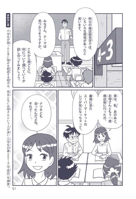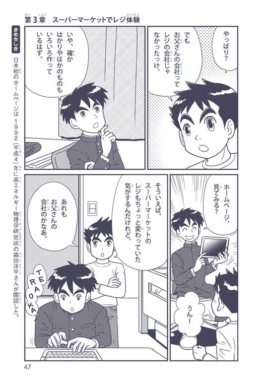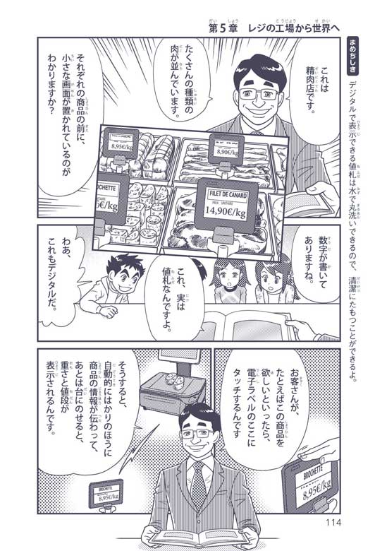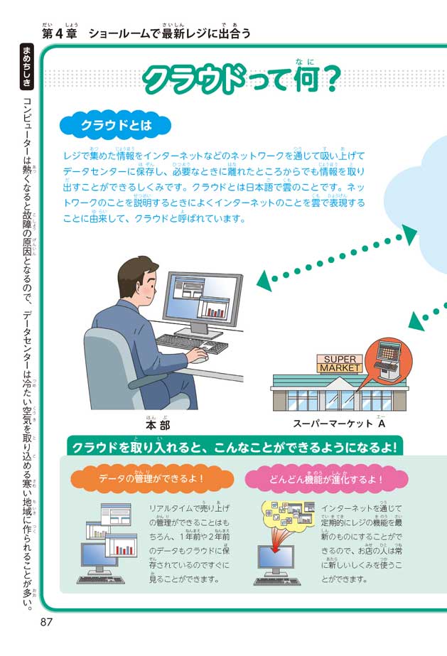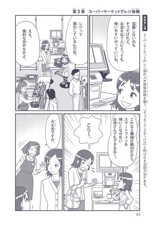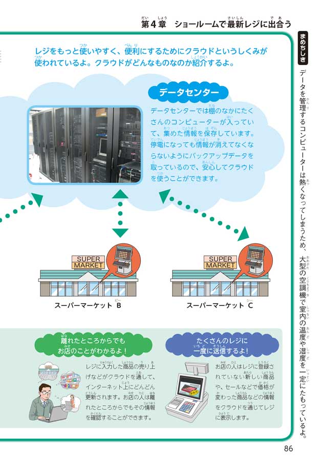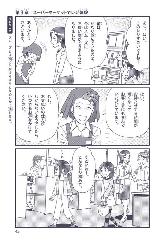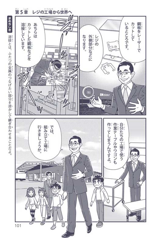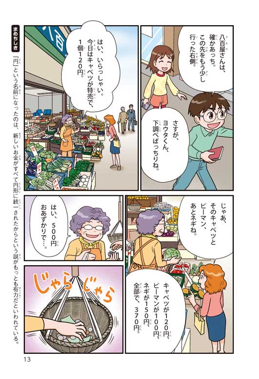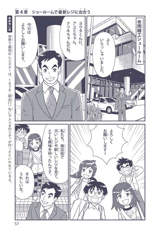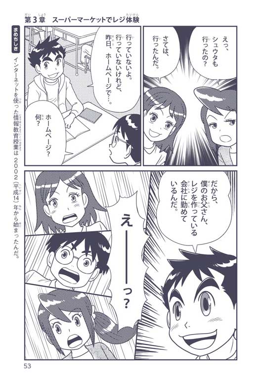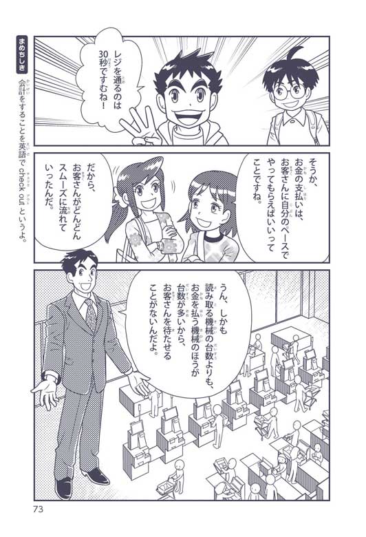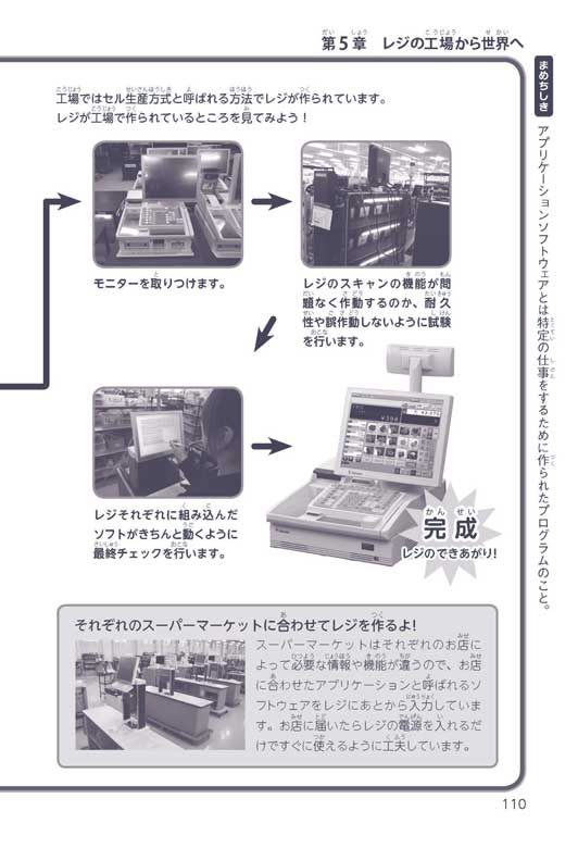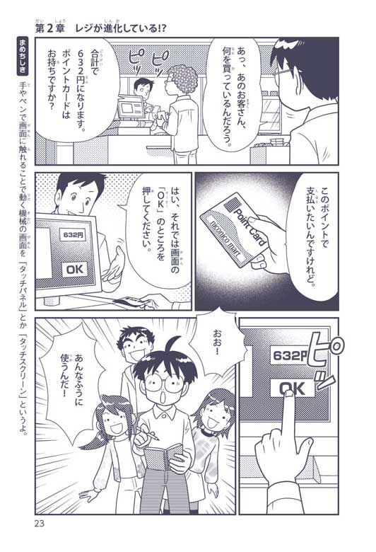 シュウタたちの住んでいる街の商店街のお店には、たくさんの種類のレジがある。重さをはかるはかりがついているレジ、ザルを使ったレジ、ポイントカードが使えるレジ・・・。同じ商店街の中でも、レジの種類はさまざまだ。その中でも、スーパーマーケットで見つけたレジは、待たなくてもすむ最先たんのレジだった! そのレジにはどんなひみつがかくされているのか?