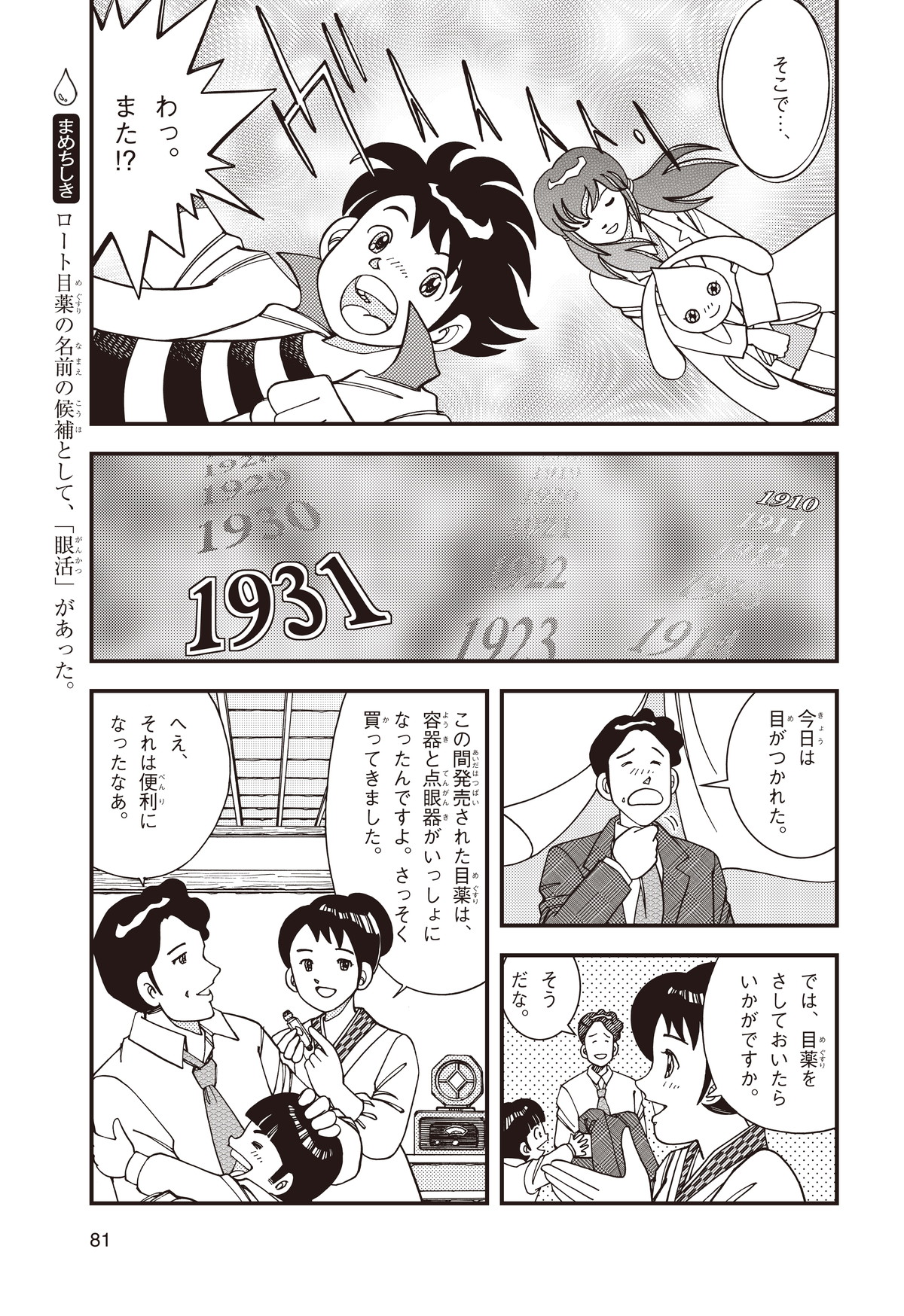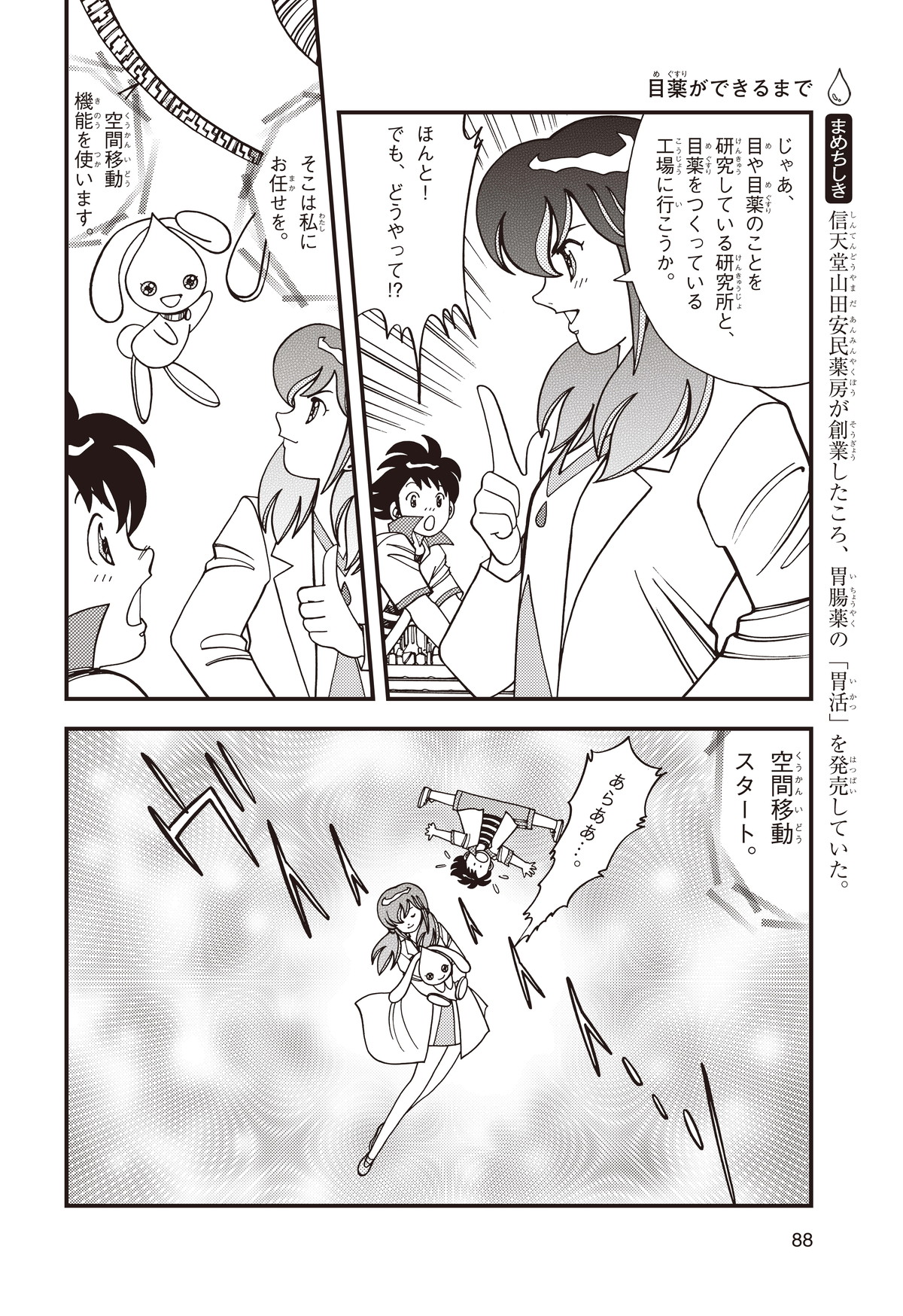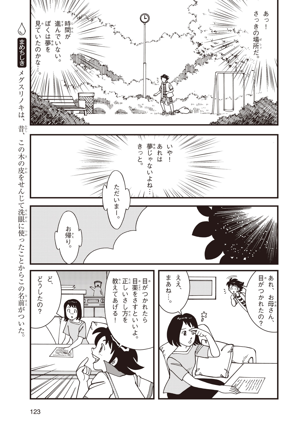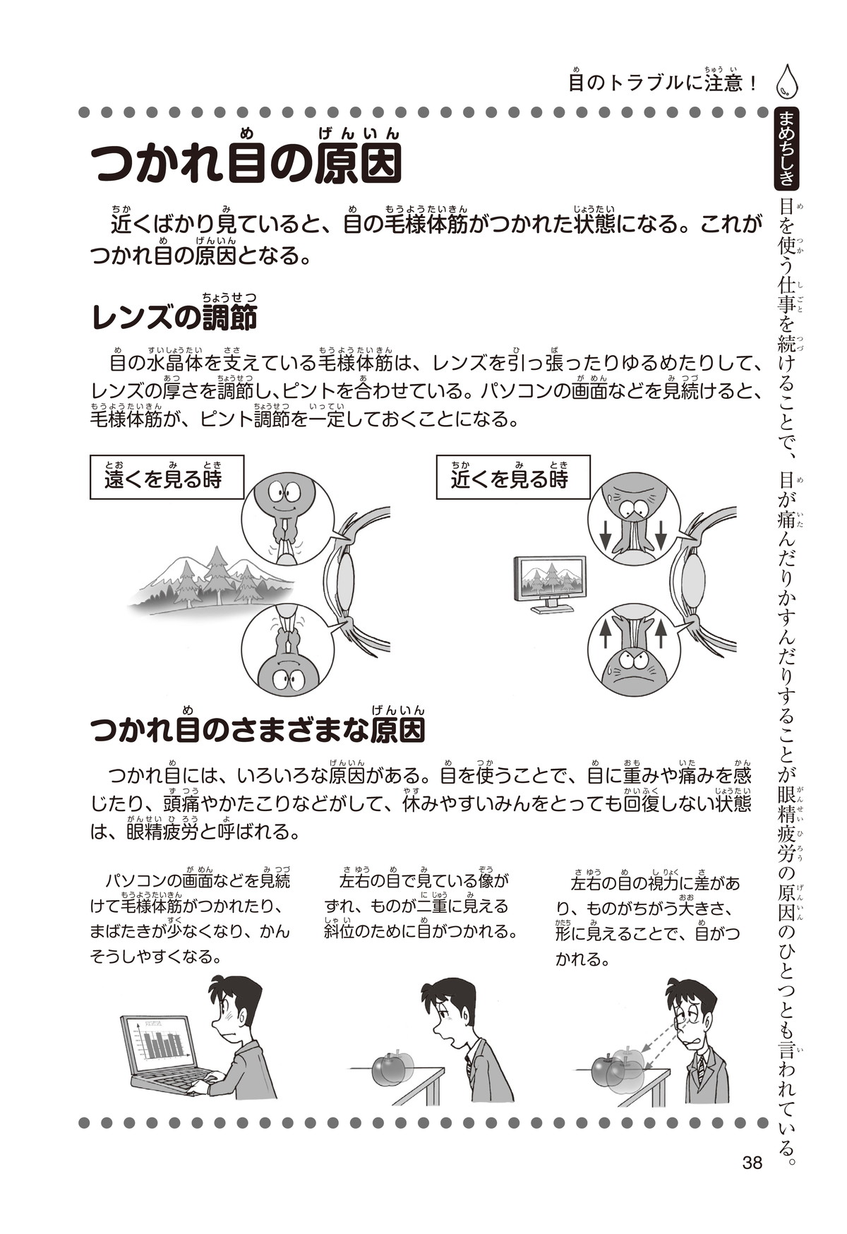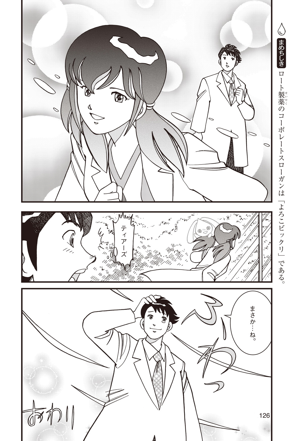 「きみ、目が赤いよ。」ハジメがゴーグルをつけずにプールで泳いだり、ゲームをしている時、ハジメの目がつかれている時にあらわれるなぞの少女・ヒトミとティアーズ3号。ハジメの目の中でトラブルが起こっているときに出てくるんだって。最近ふえているらしい目のトラブル。予防のカギは目薬にあった! でも目薬ってたくさんあるよね。どれを使えばいいの? 教えて、ヒトミ!
