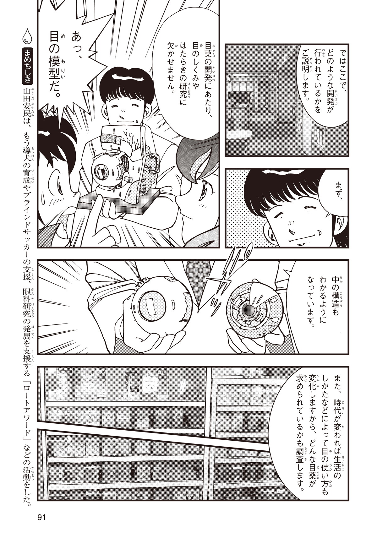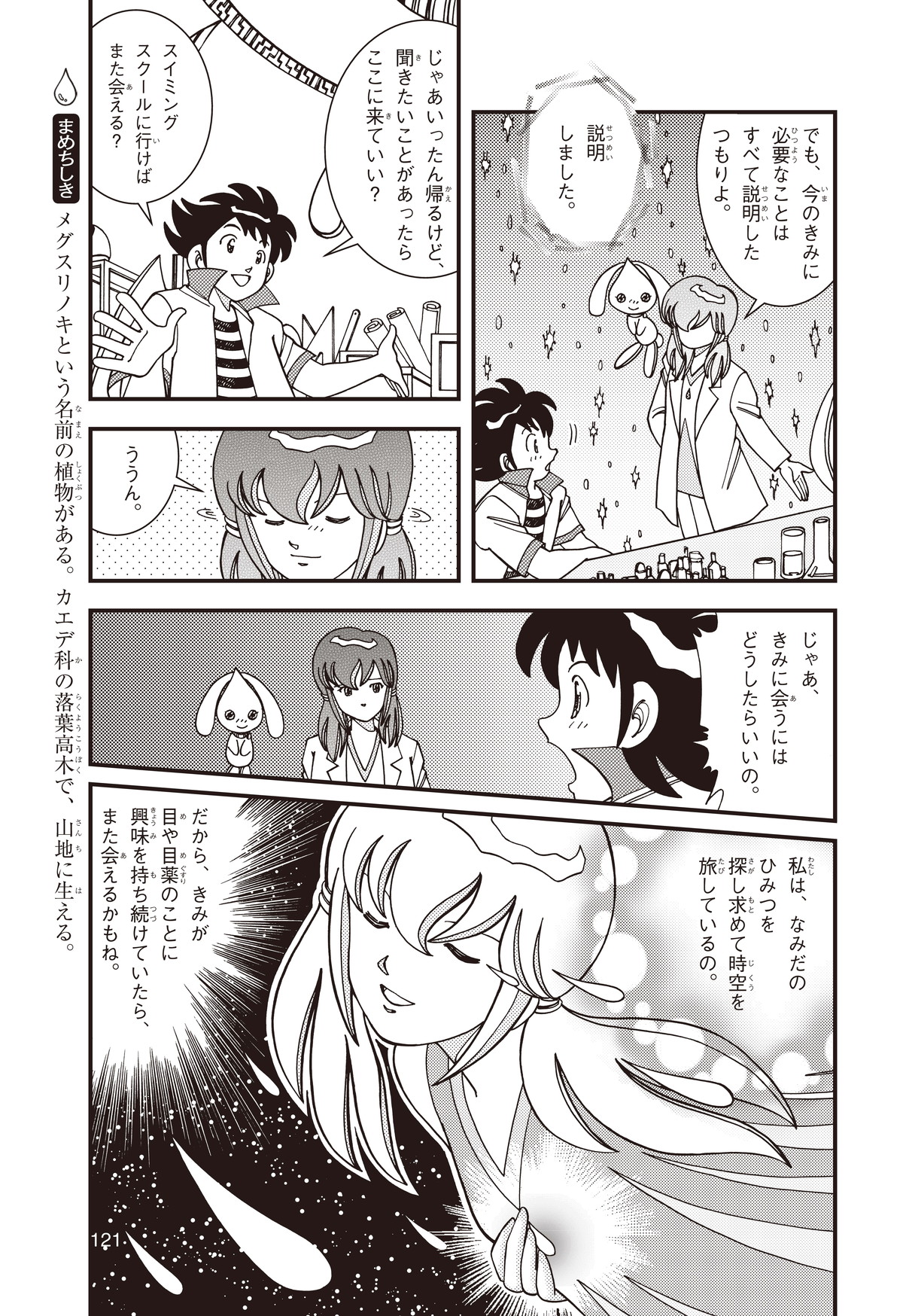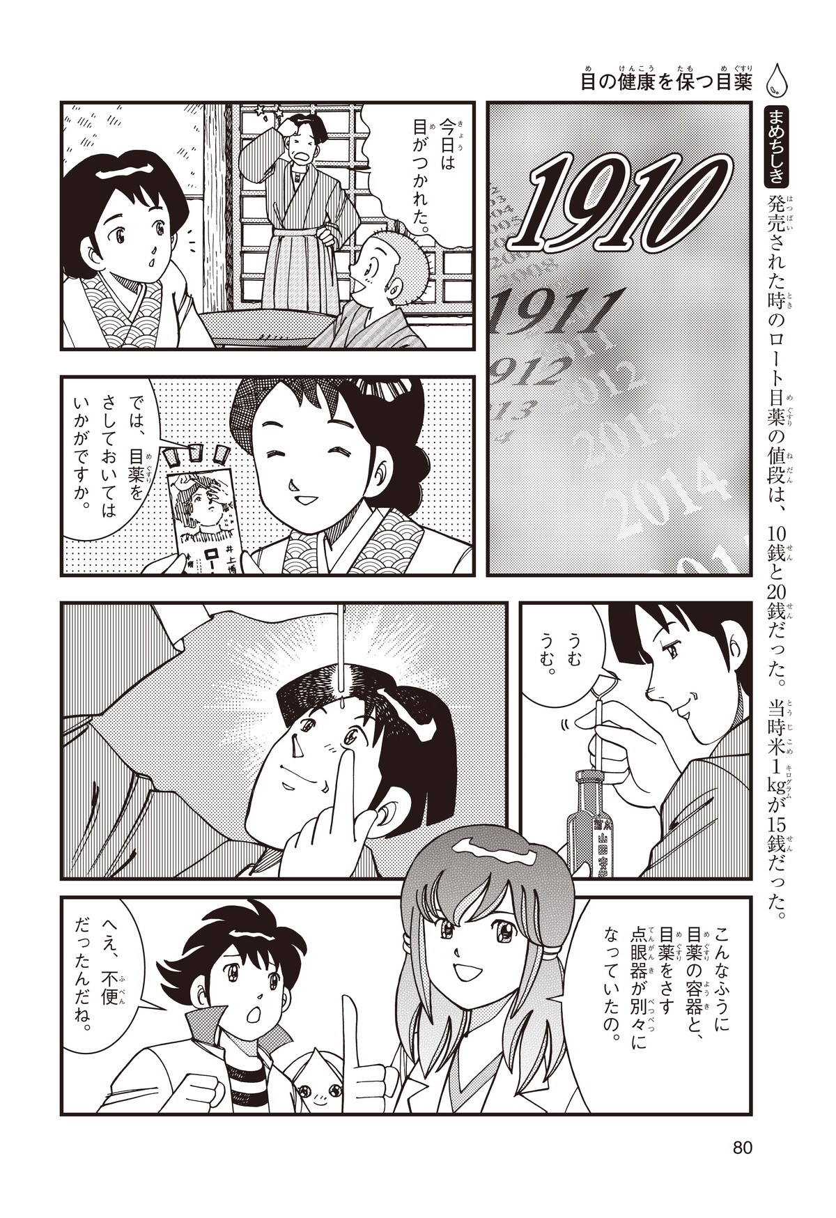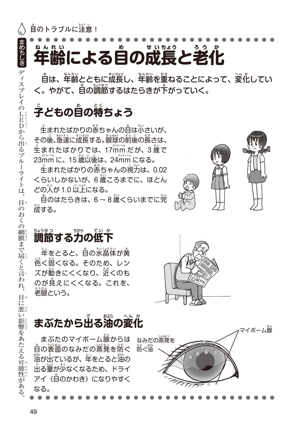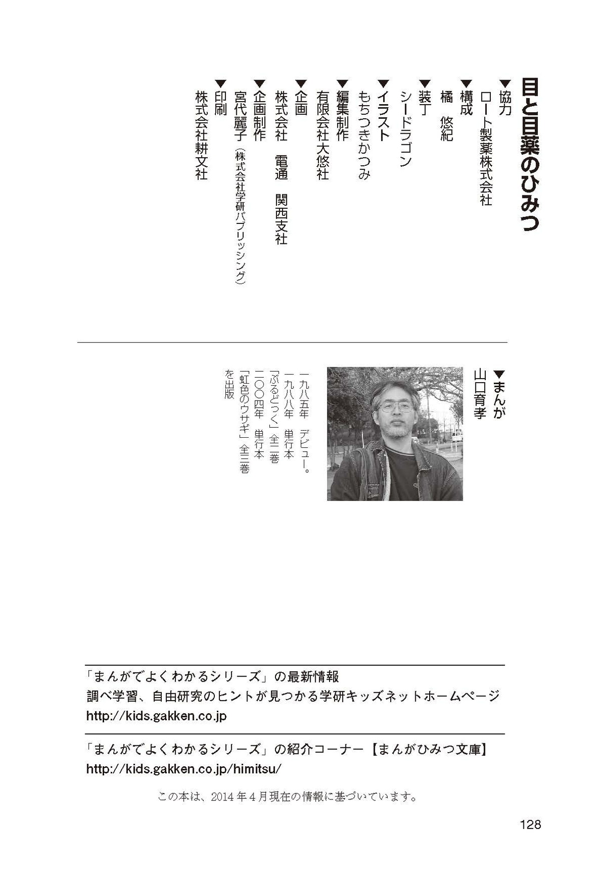 「きみ、目が赤いよ。」ハジメがゴーグルをつけずにプールで泳いだり、ゲームをしている時、ハジメの目がつかれている時にあらわれるなぞの少女・ヒトミとティアーズ3号。ハジメの目の中でトラブルが起こっているときに出てくるんだって。最近ふえているらしい目のトラブル。予防のカギは目薬にあった! でも目薬ってたくさんあるよね。どれを使えばいいの? 教えて、ヒトミ!